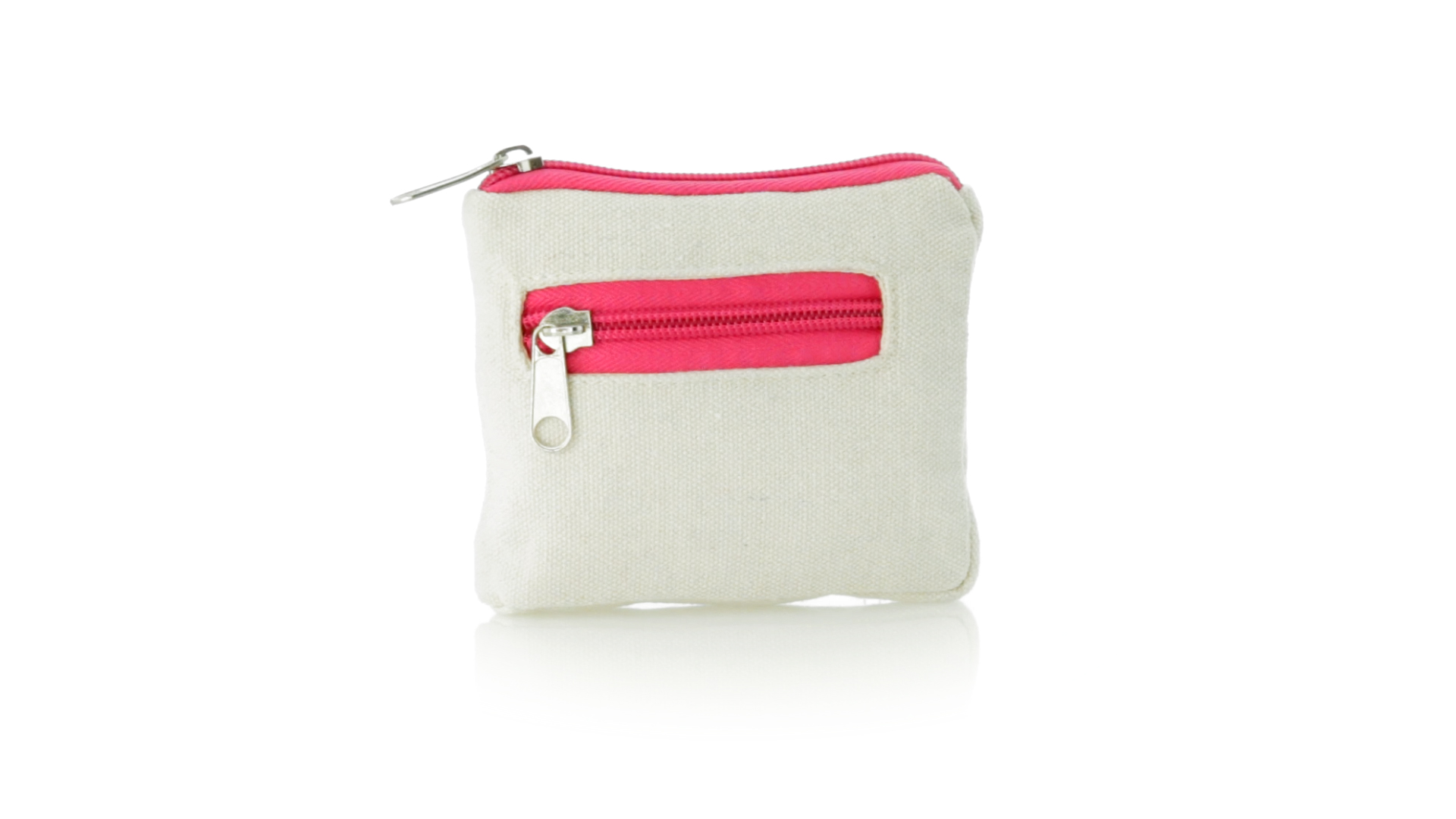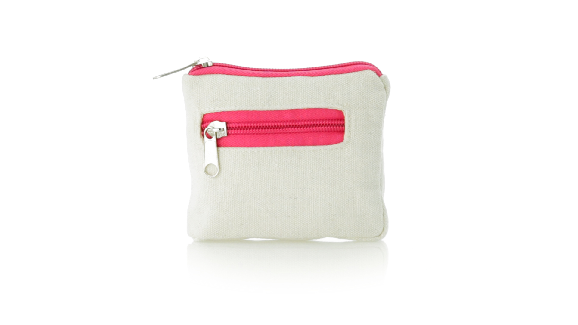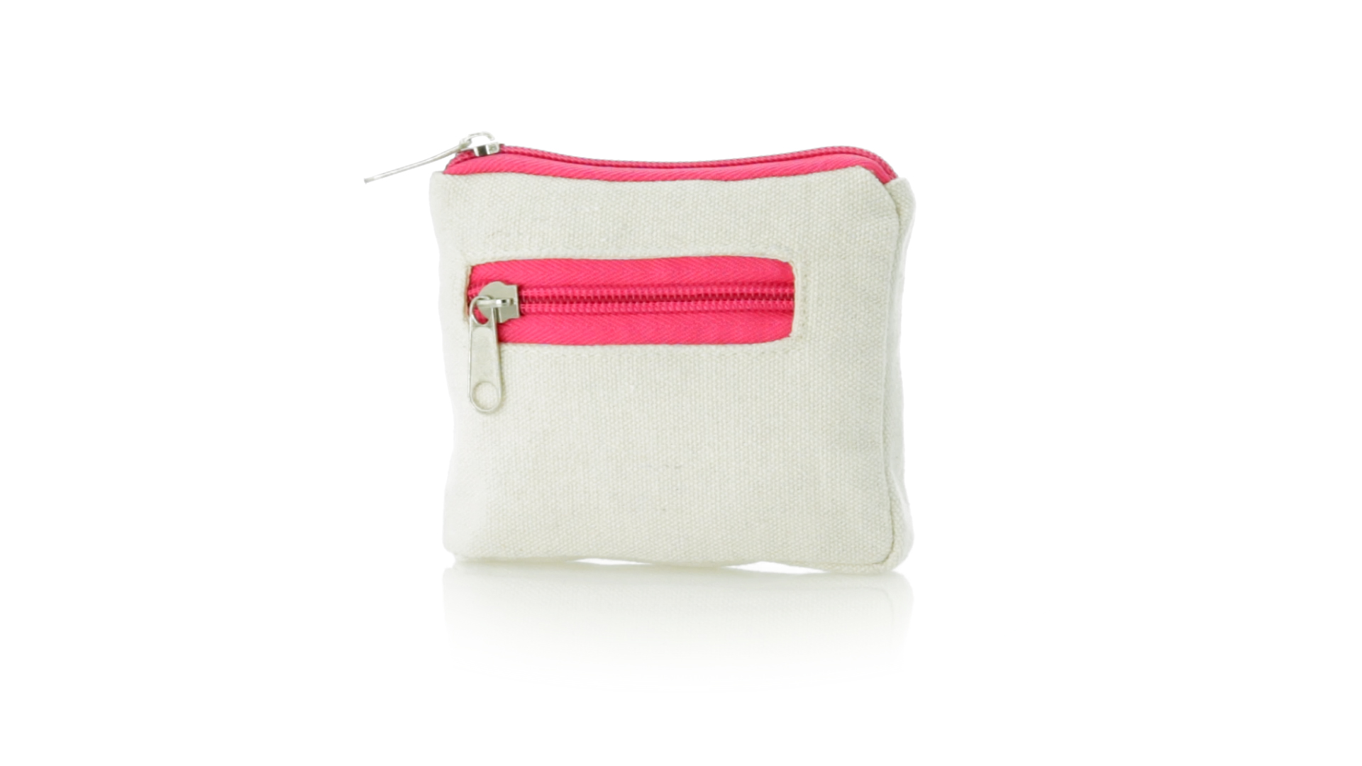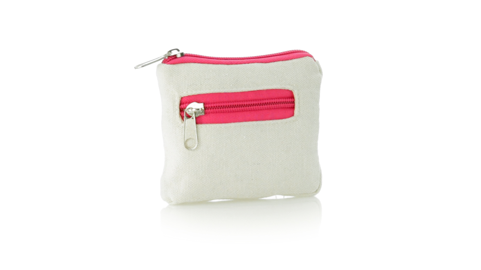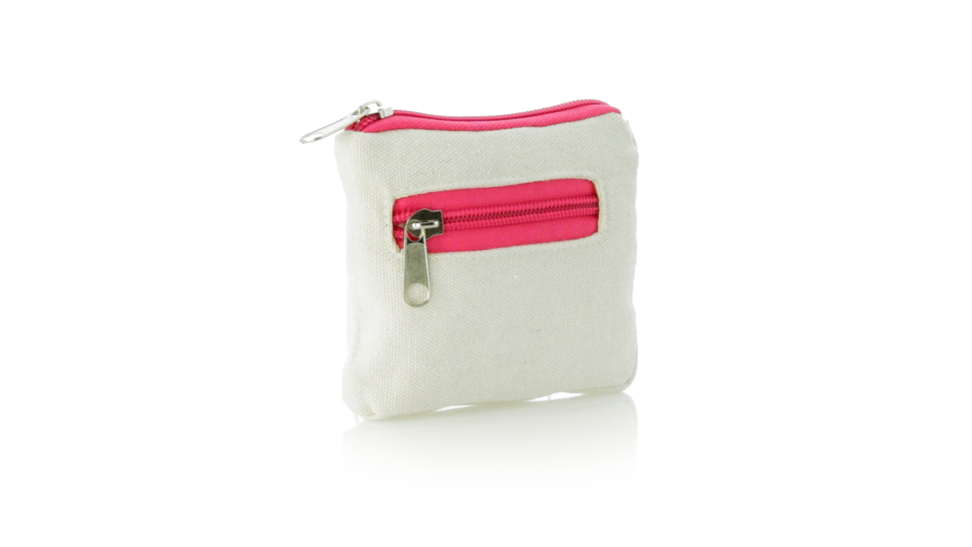 Geldbörse mit originellem, zweifarbigem Design aus 100 % Baumwolle in Weiss mit Reissverschlüssen in kräftigen Farben.