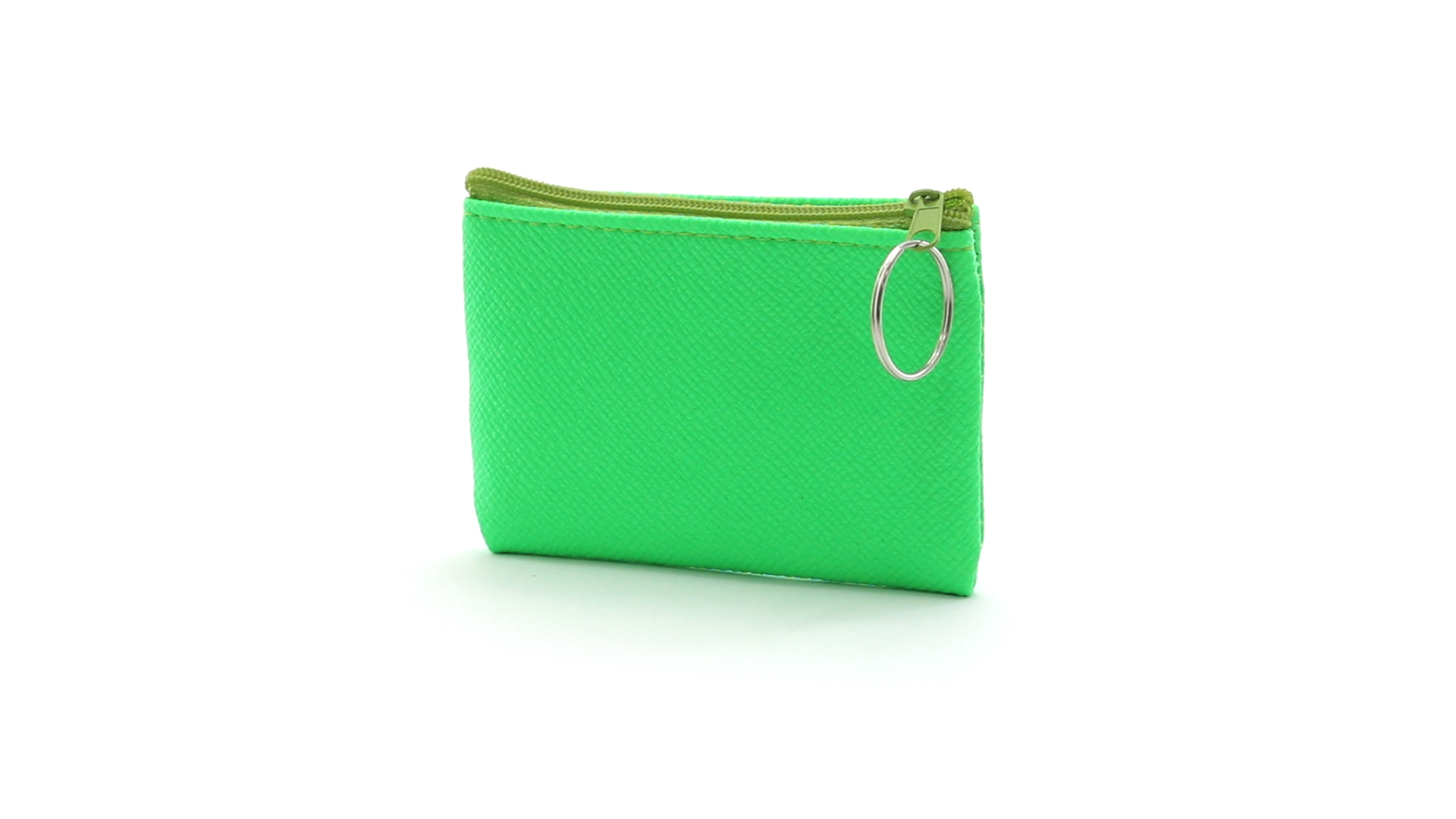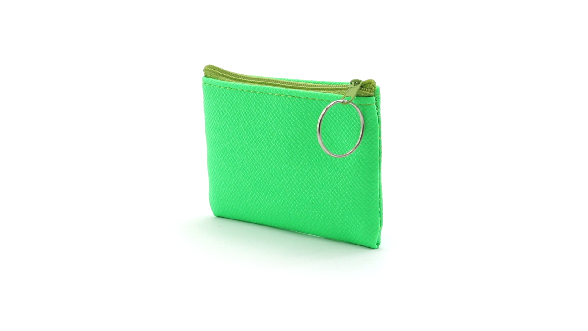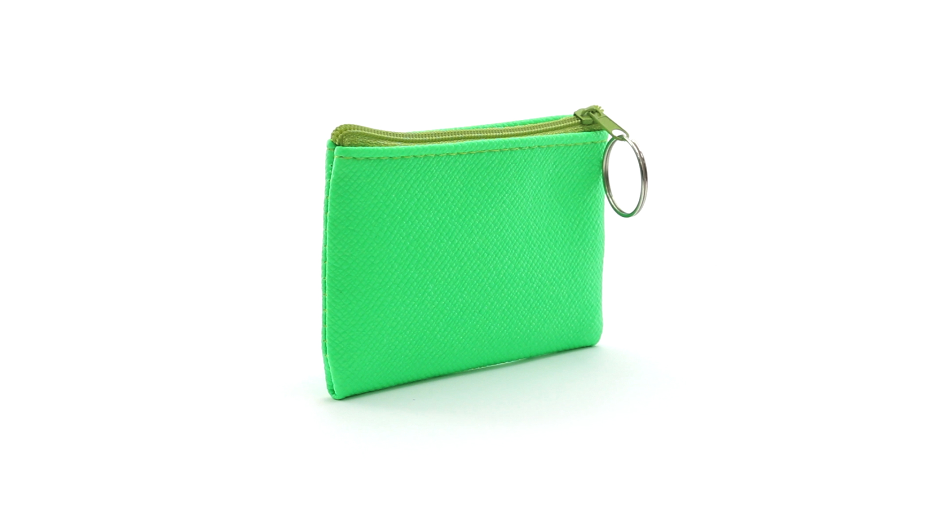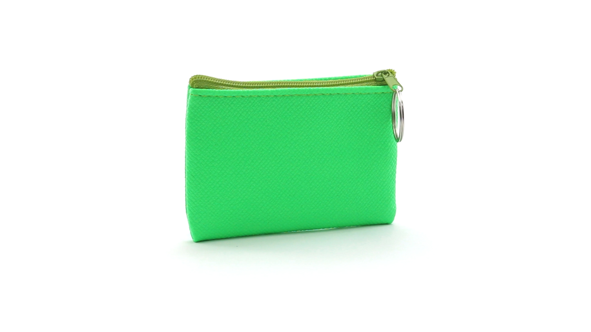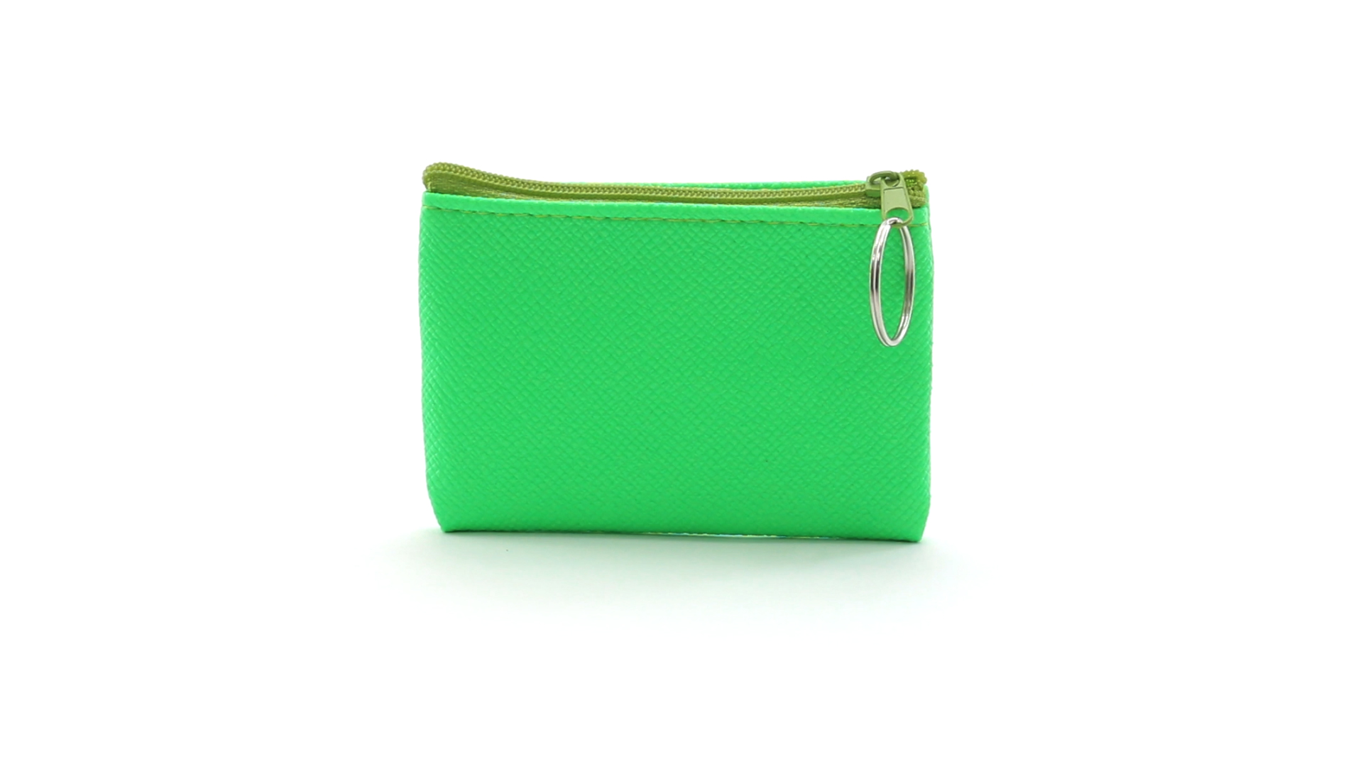 Geldbörse mit quadratischem Design aus weichem PVC in verschiedenen Neonfarben. Hauptfach mit Reissverschluss, farblich passend zum Schlüsselring.