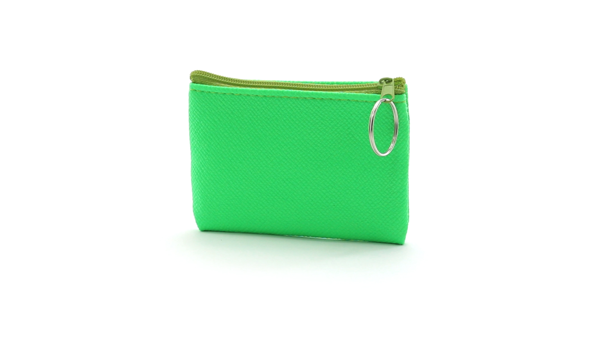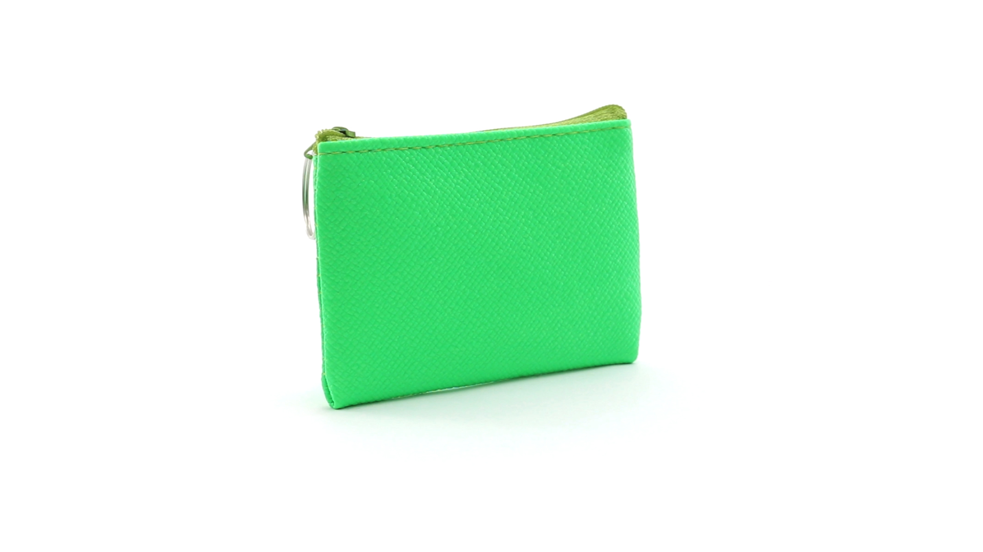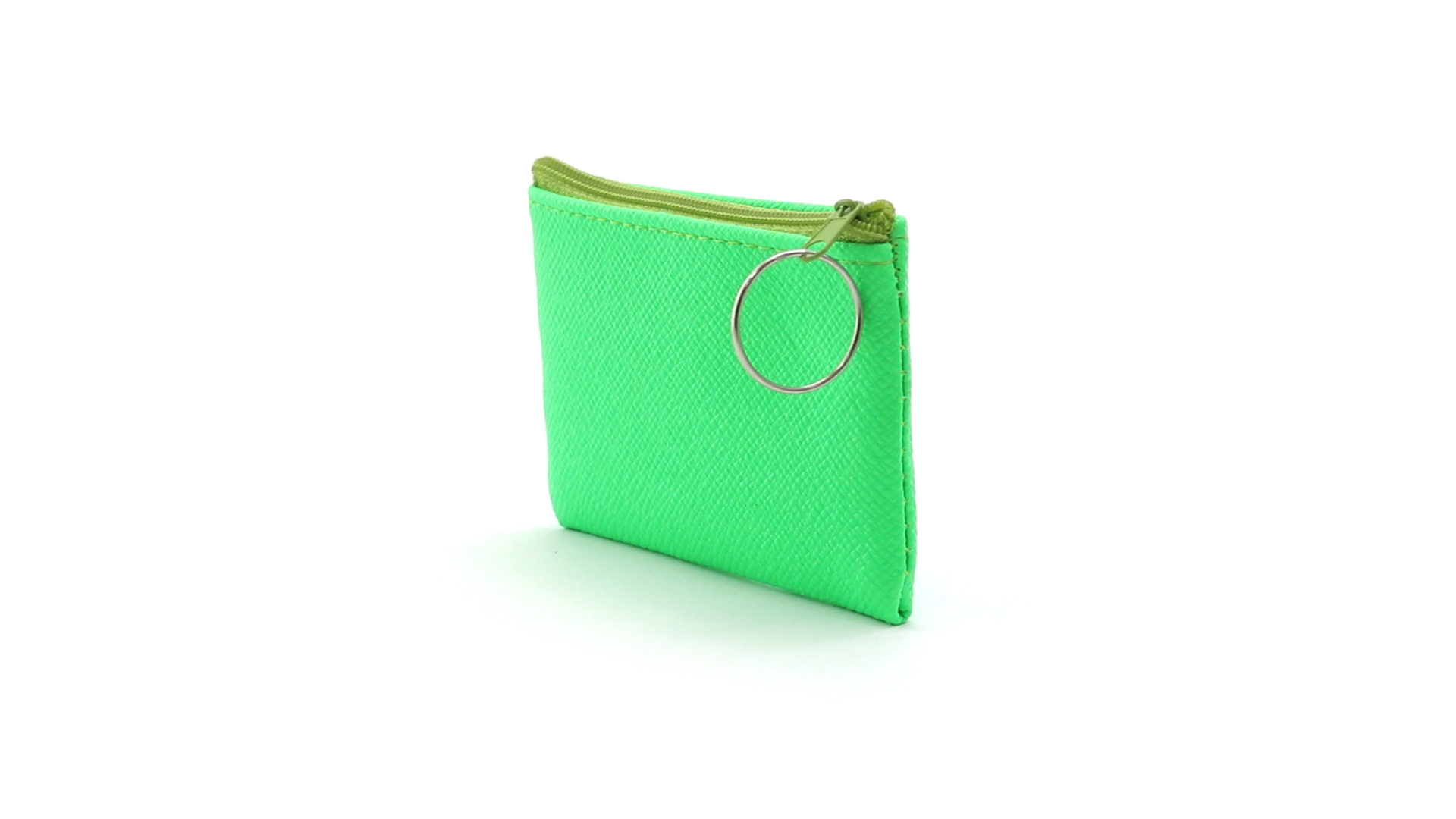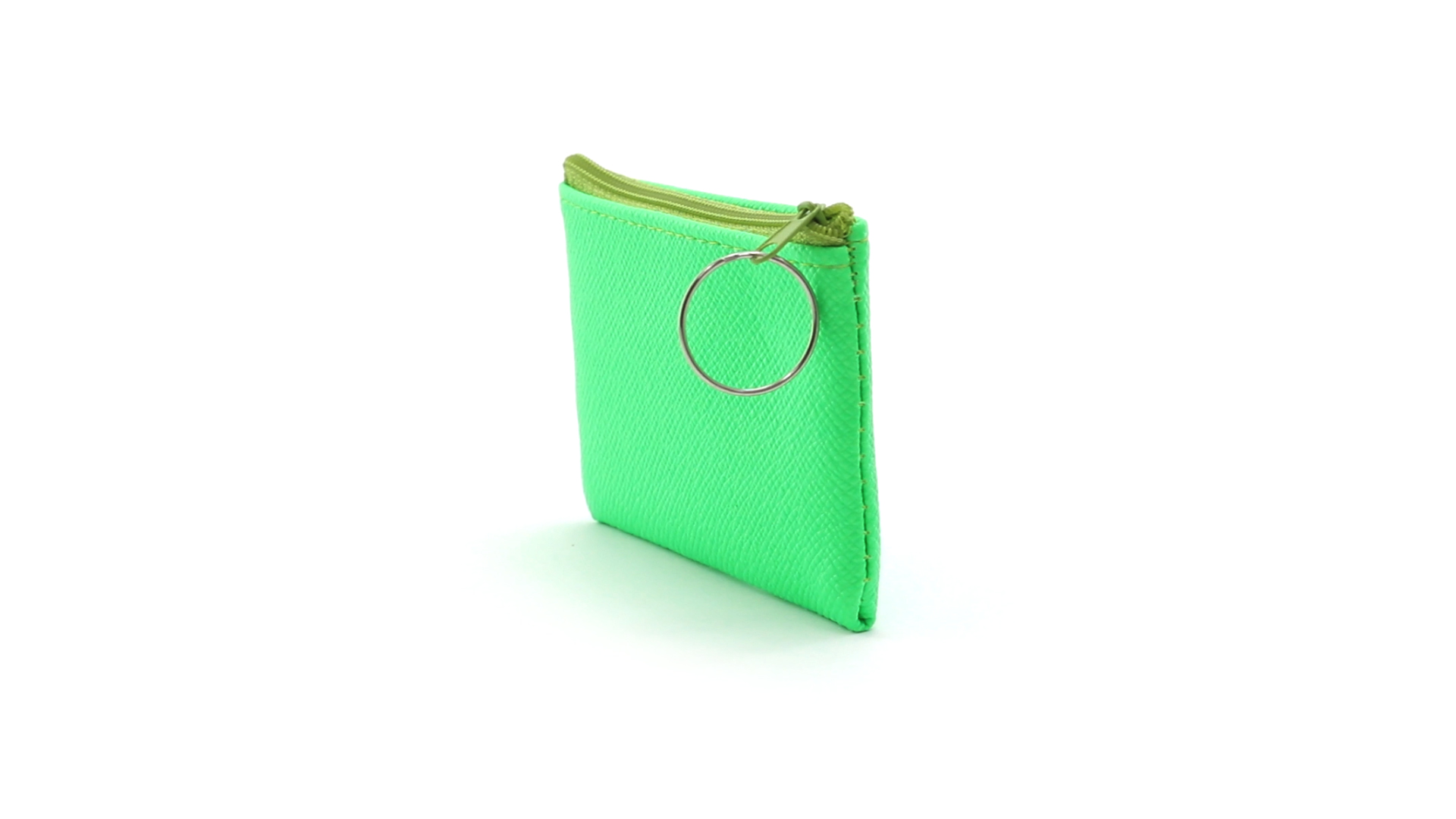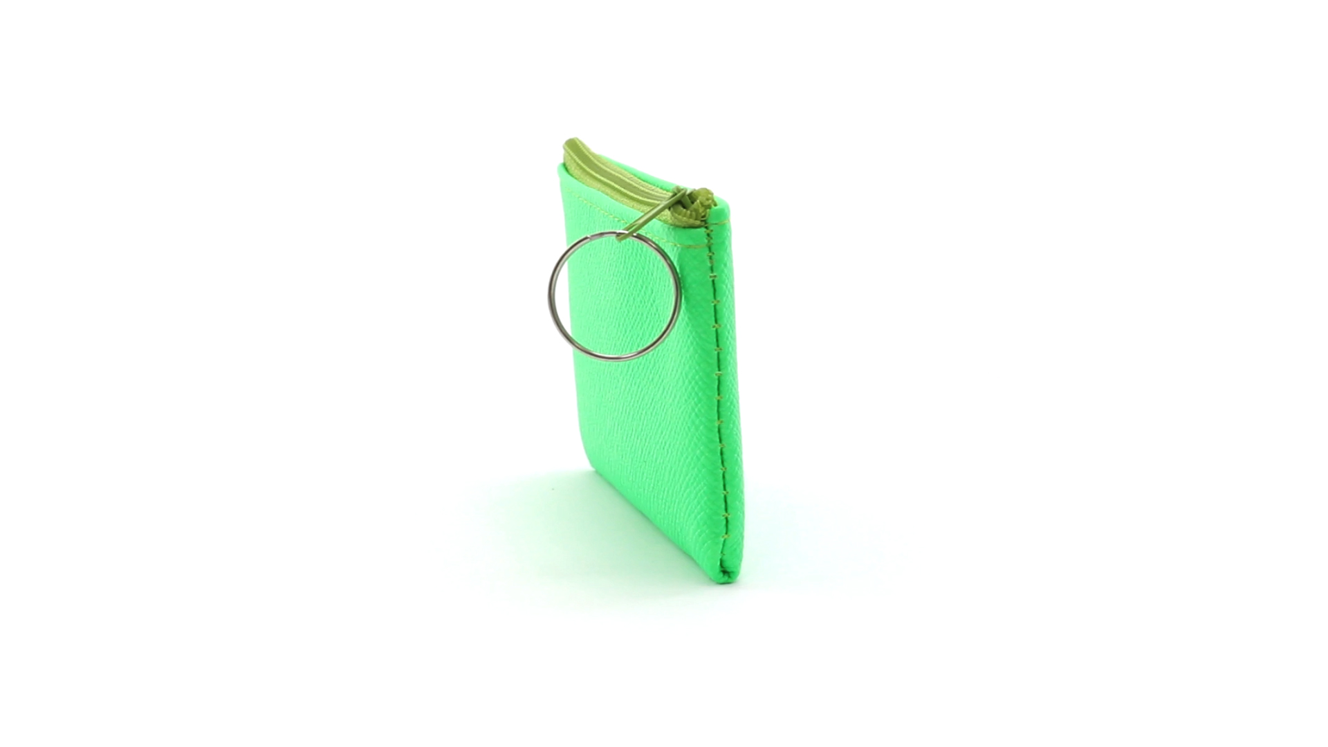 Geldbörse mit quadratischem Design aus weichem PVC in verschiedenen Neonfarben. Hauptfach mit Reissverschluss, farblich passend zum Schlüsselring.