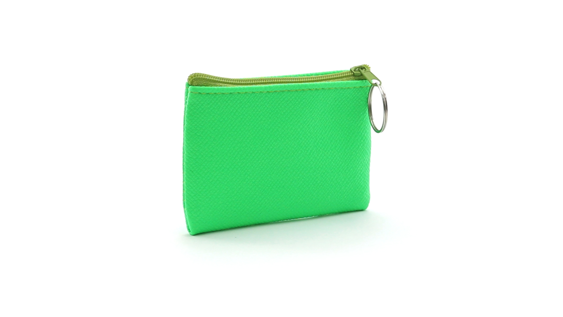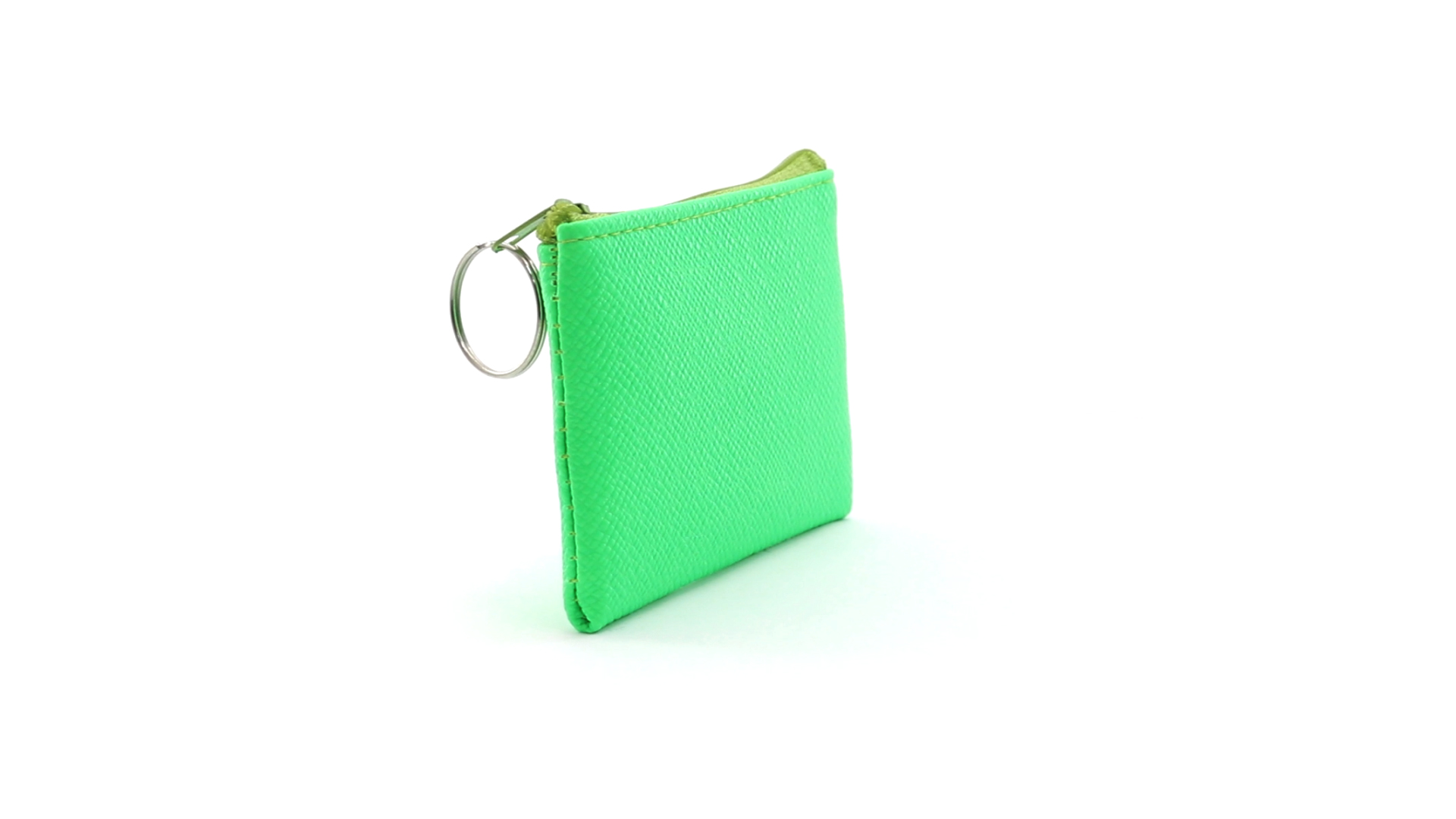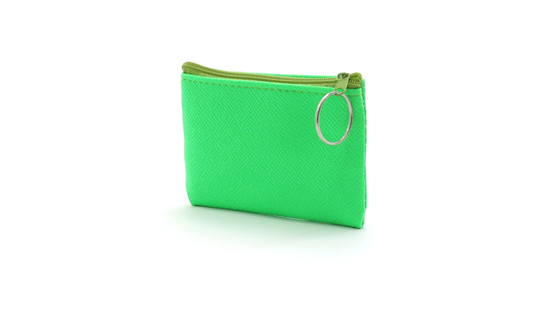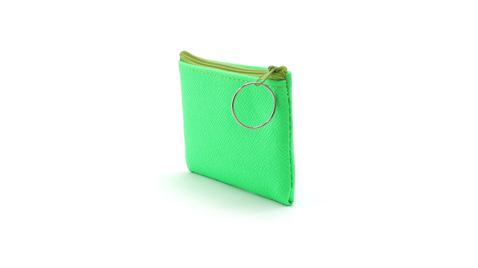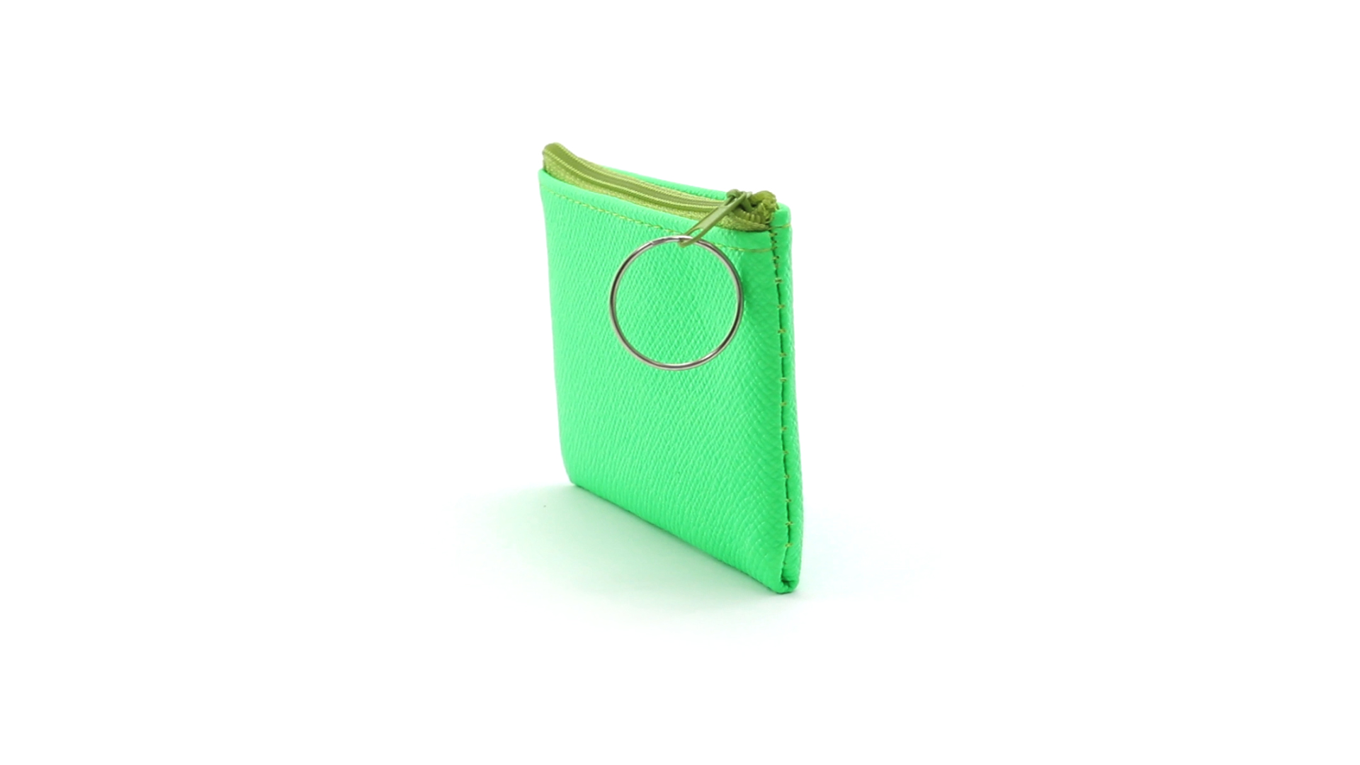 Geldbörse mit quadratischem Design aus weichem PVC in verschiedenen Neonfarben. Hauptfach mit Reissverschluss, farblich passend zum Schlüsselring.