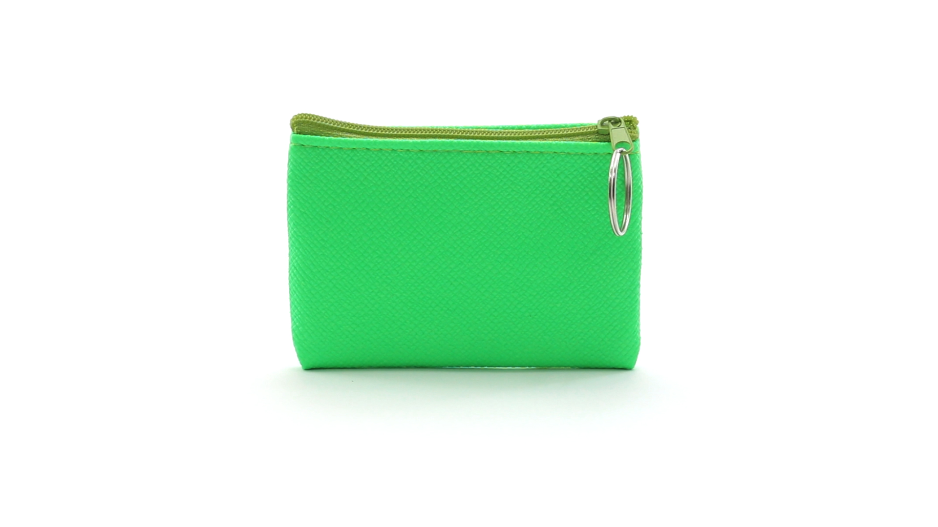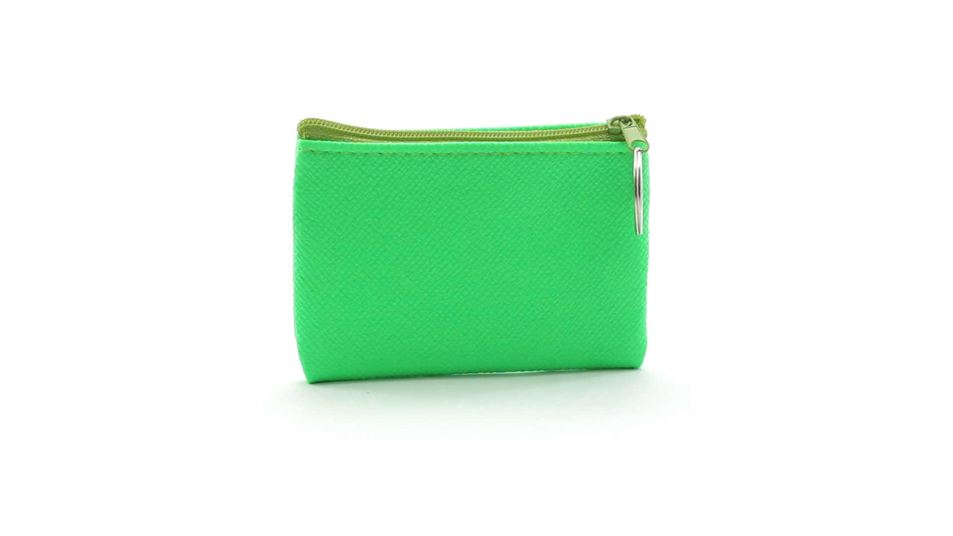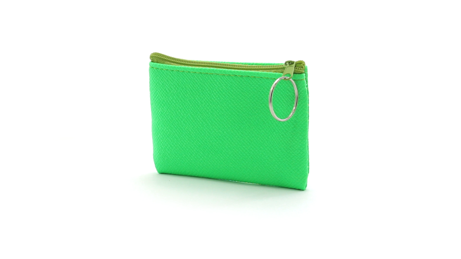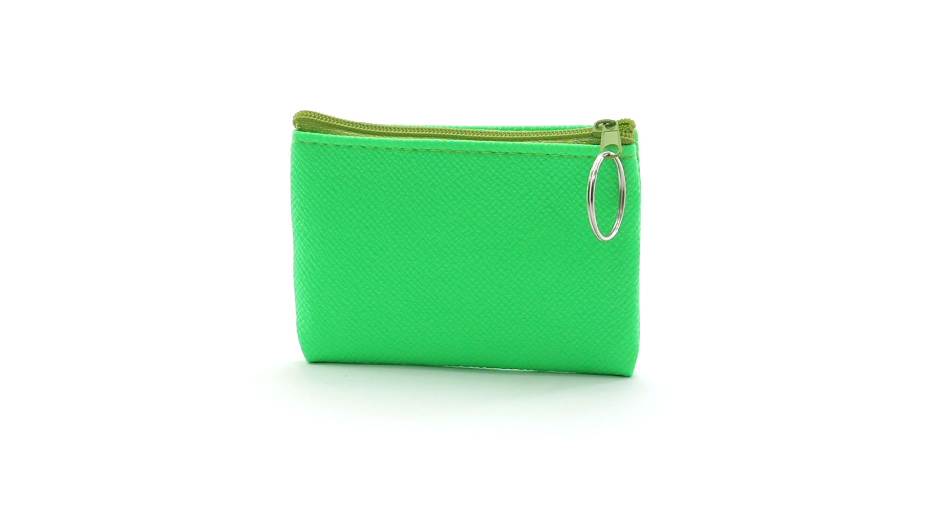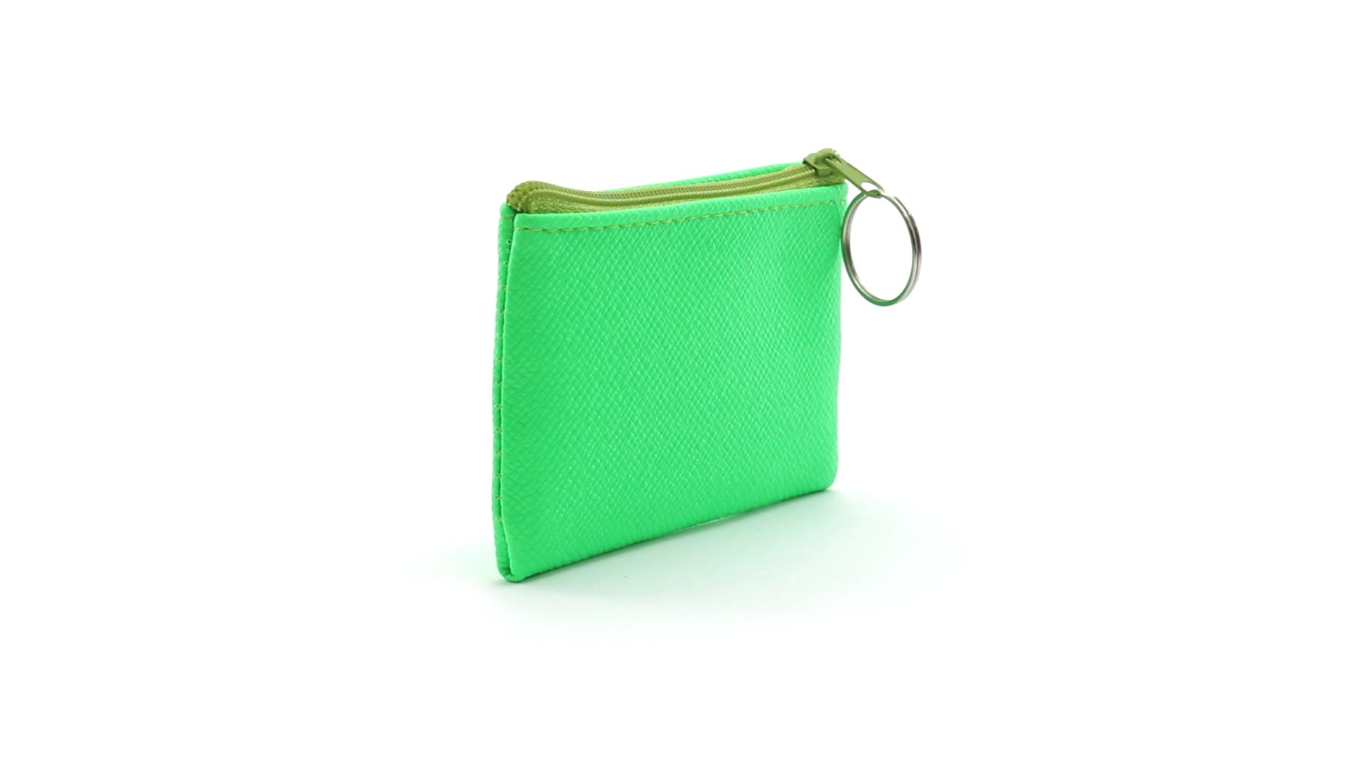 Geldbörse mit quadratischem Design aus weichem PVC in verschiedenen Neonfarben. Hauptfach mit Reissverschluss, farblich passend zum Schlüsselring.