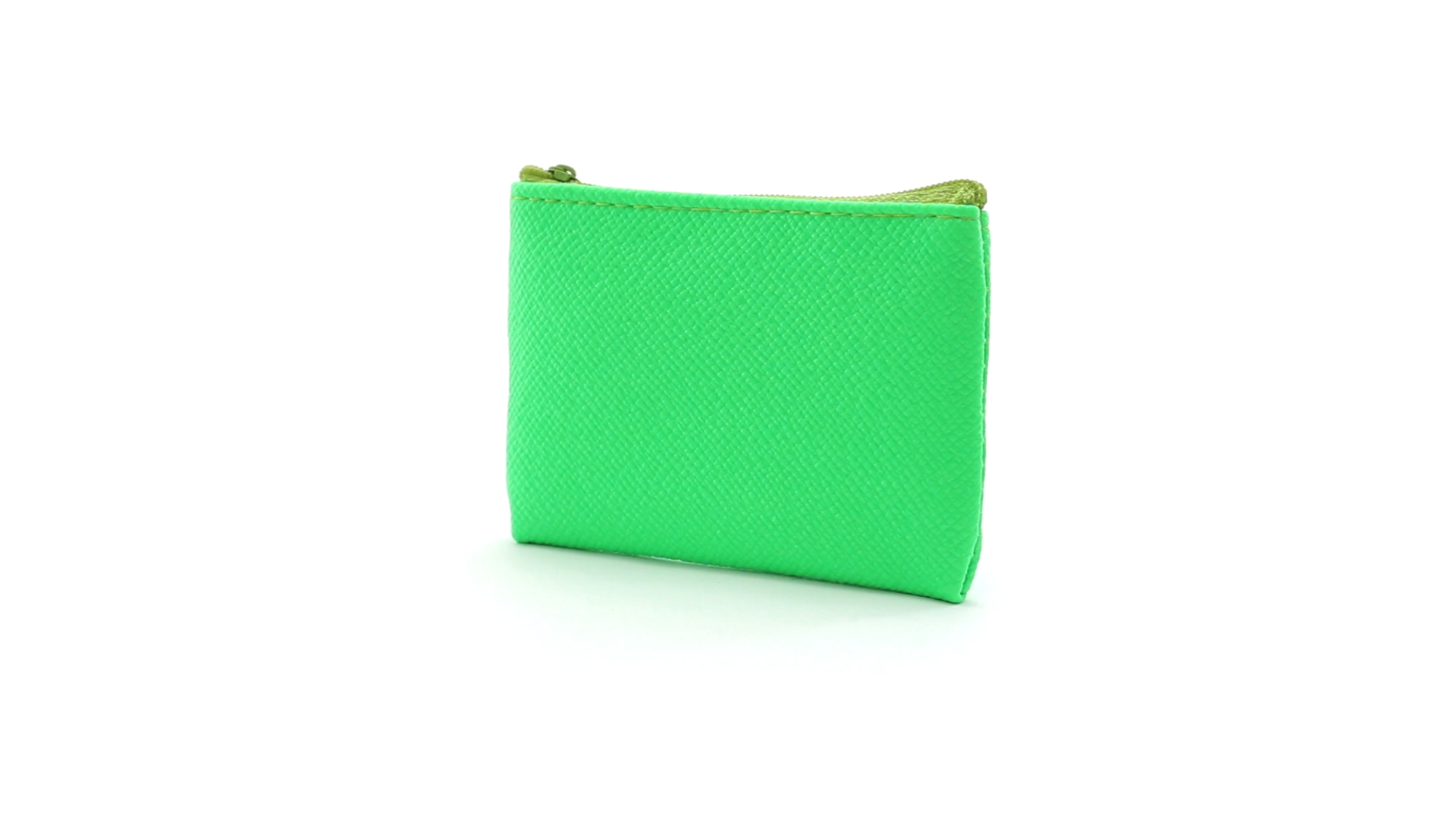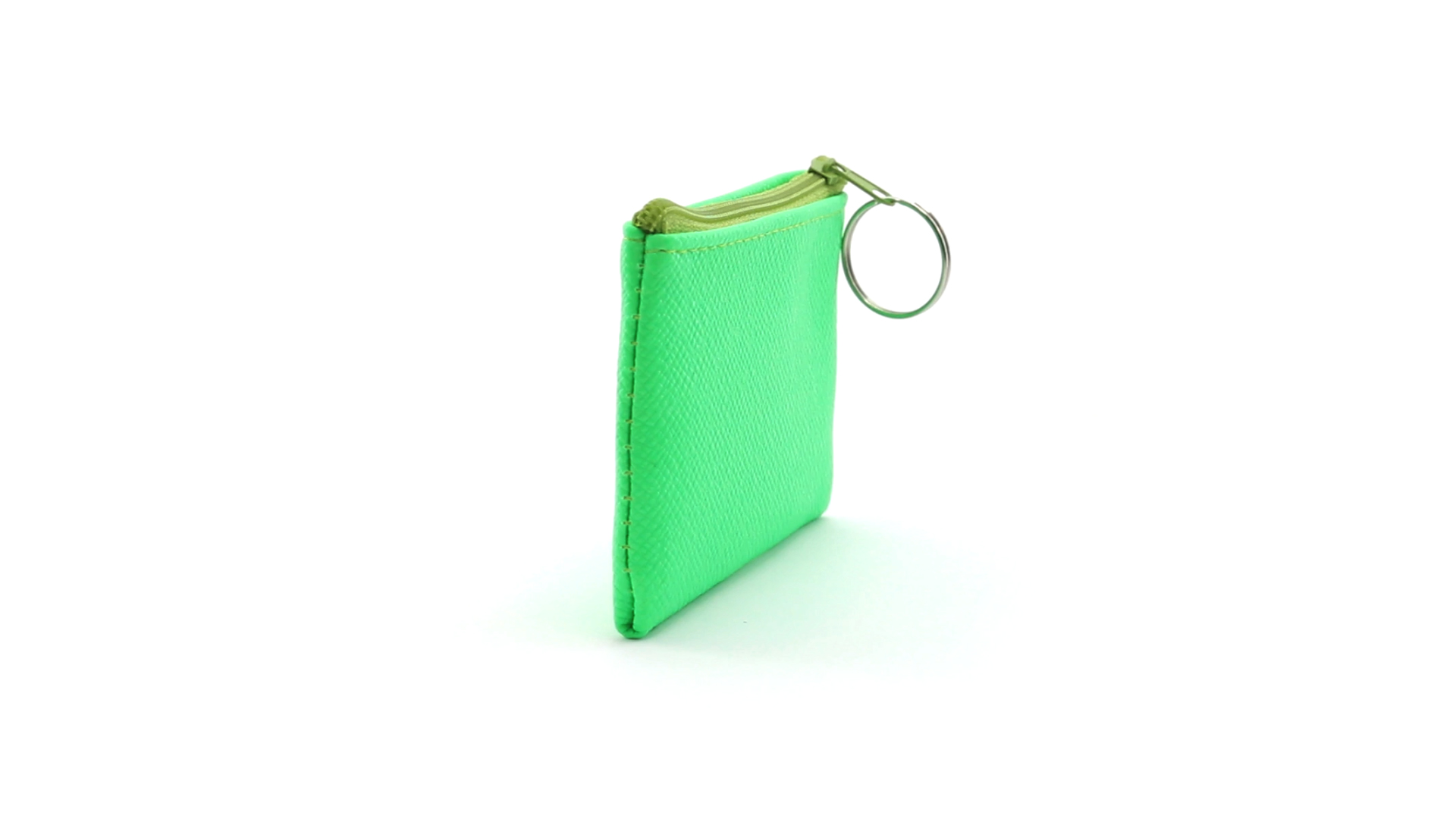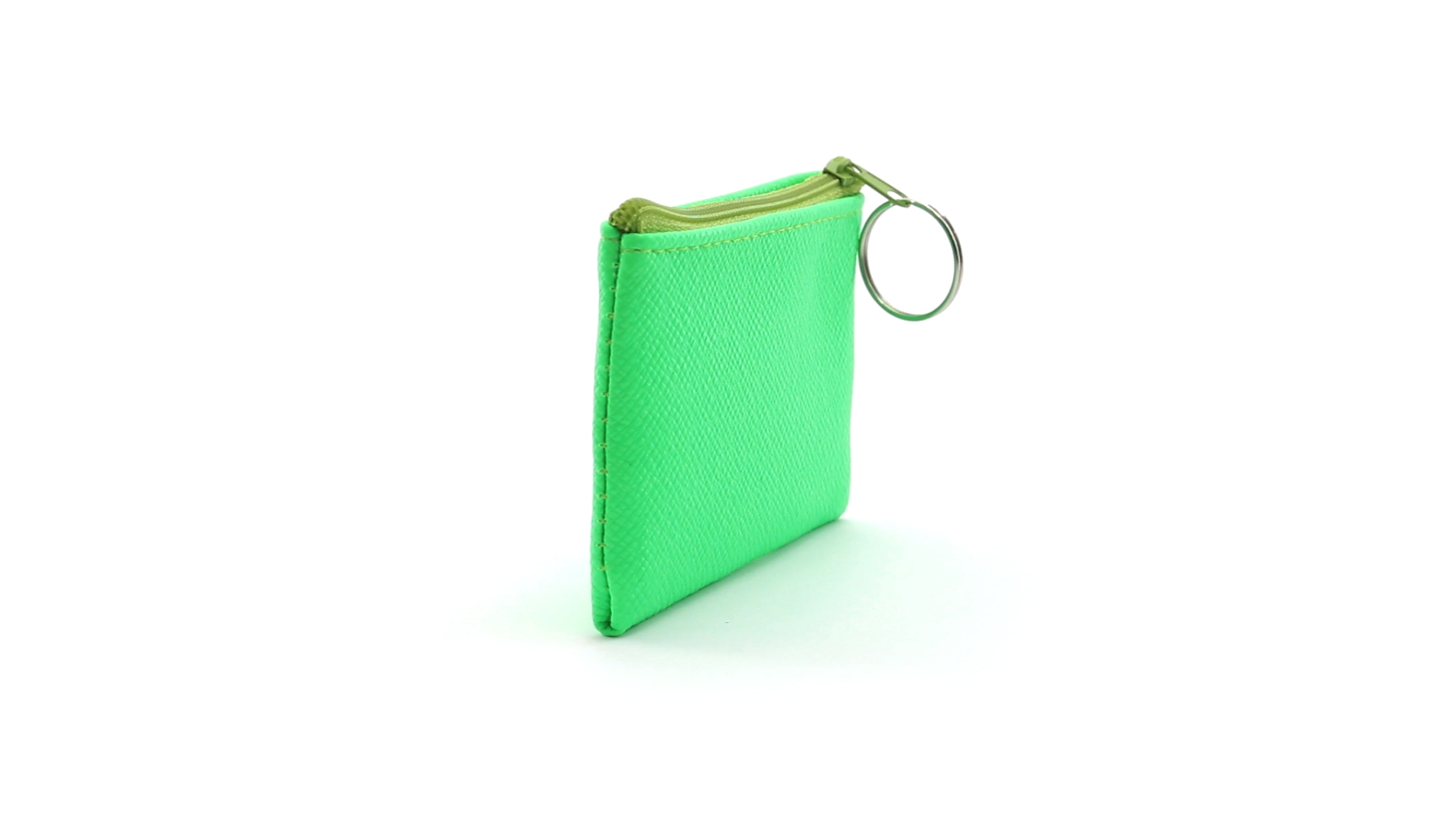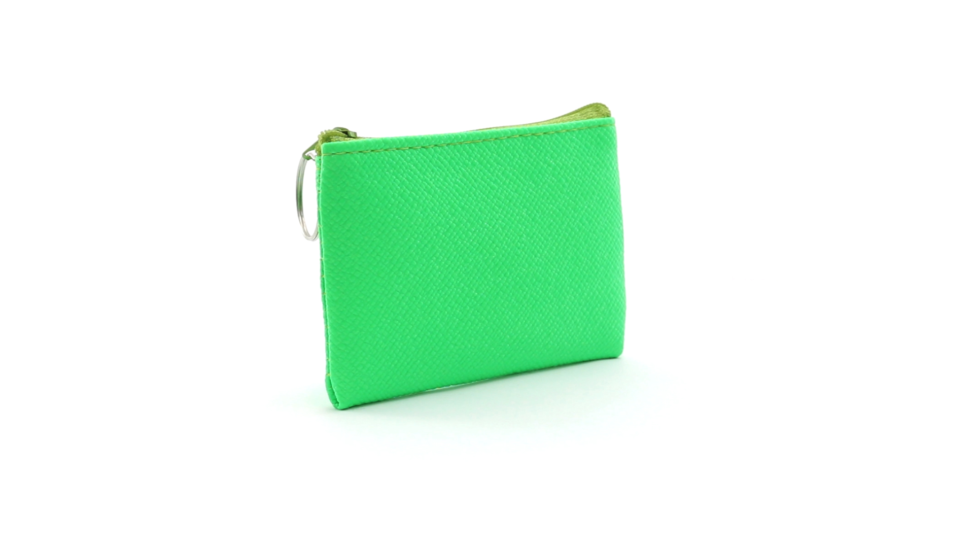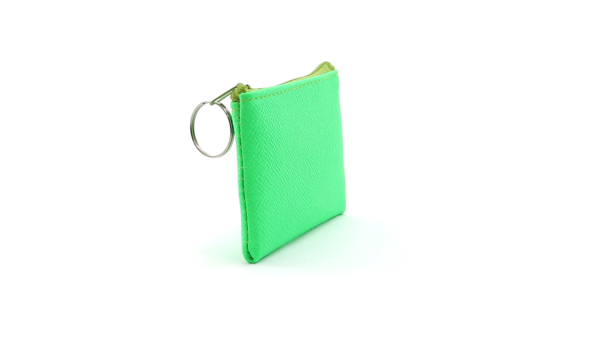Geldbörse mit quadratischem Design aus weichem PVC in verschiedenen Neonfarben. Hauptfach mit Reissverschluss, farblich passend zum Schlüsselring.