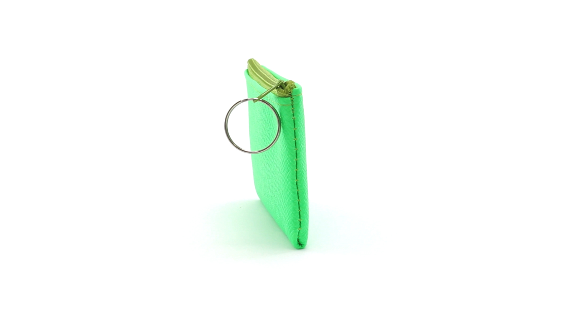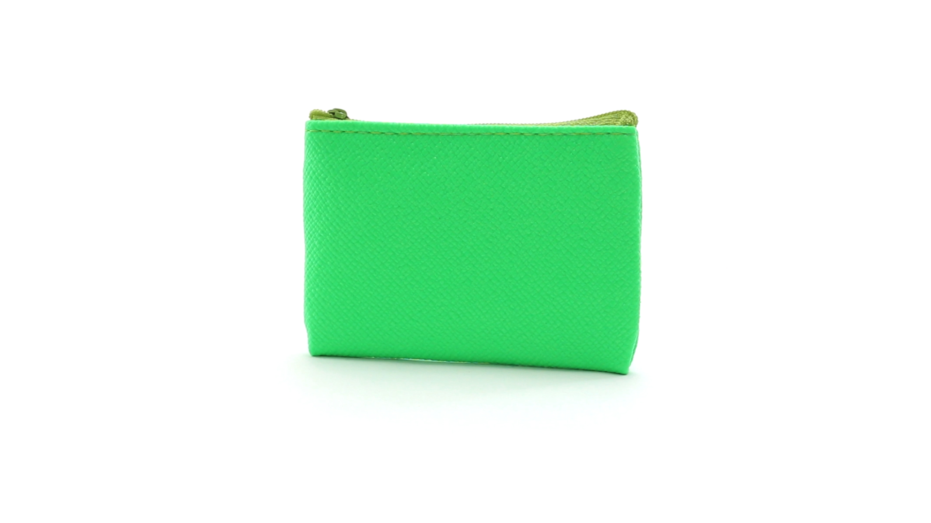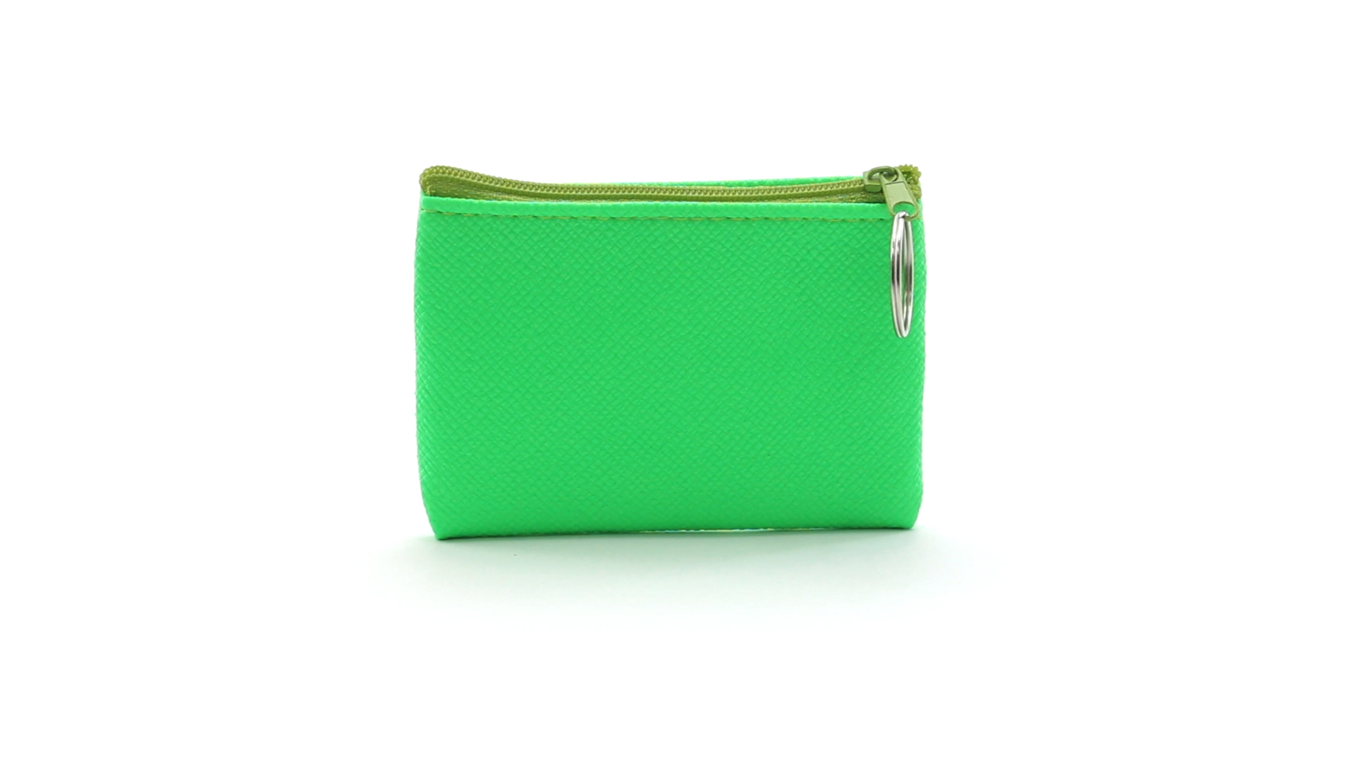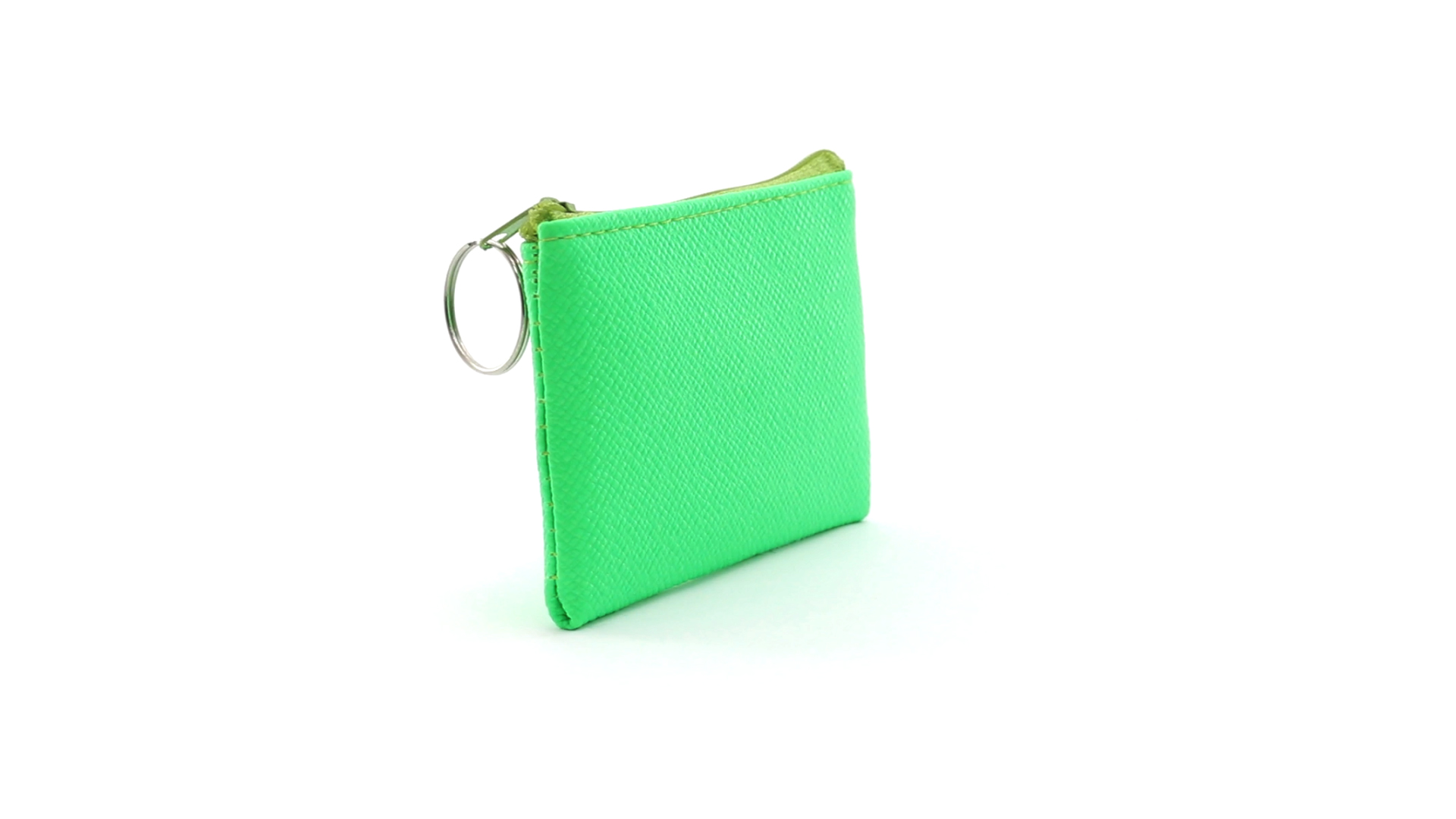 Geldbörse mit quadratischem Design aus weichem PVC in verschiedenen Neonfarben. Hauptfach mit Reissverschluss, farblich passend zum Schlüsselring.