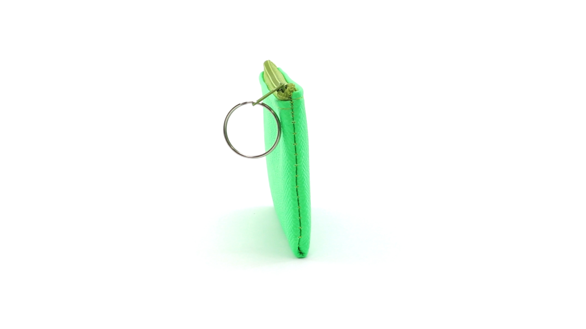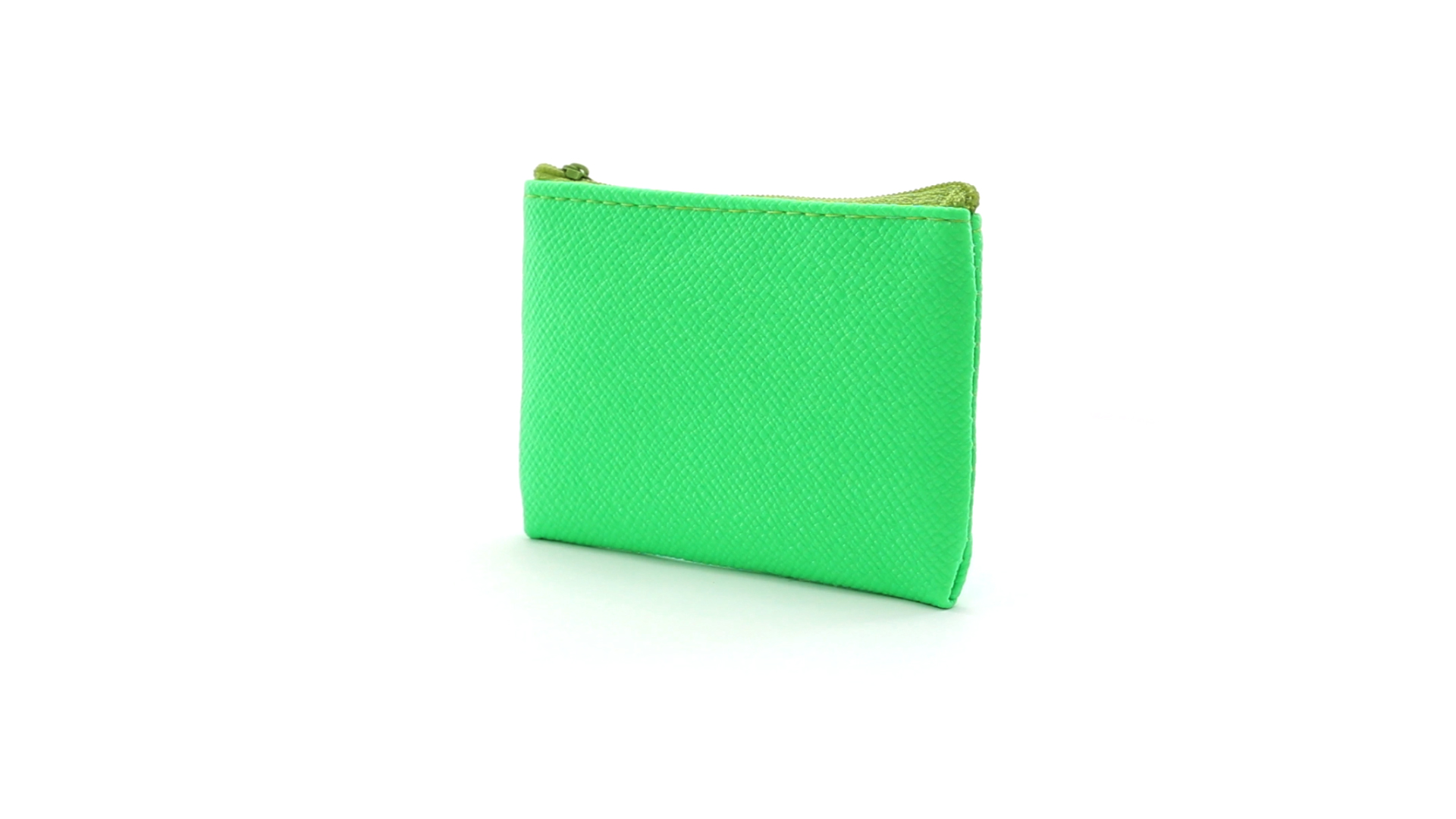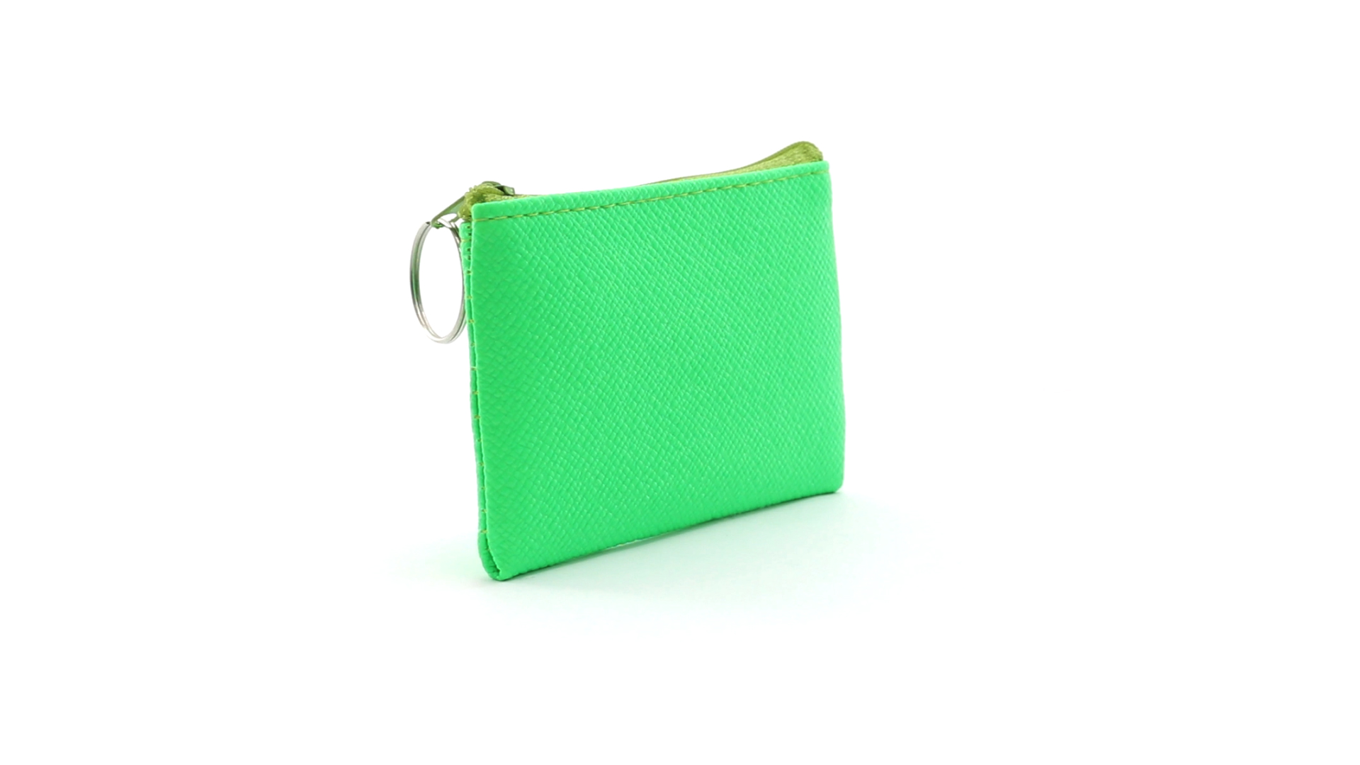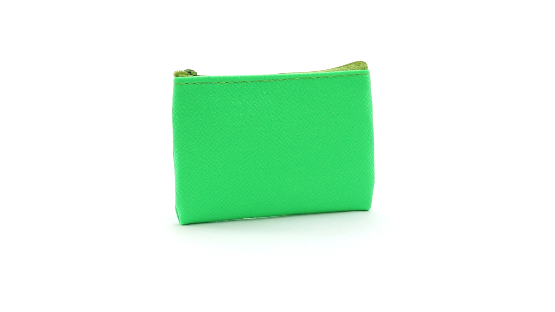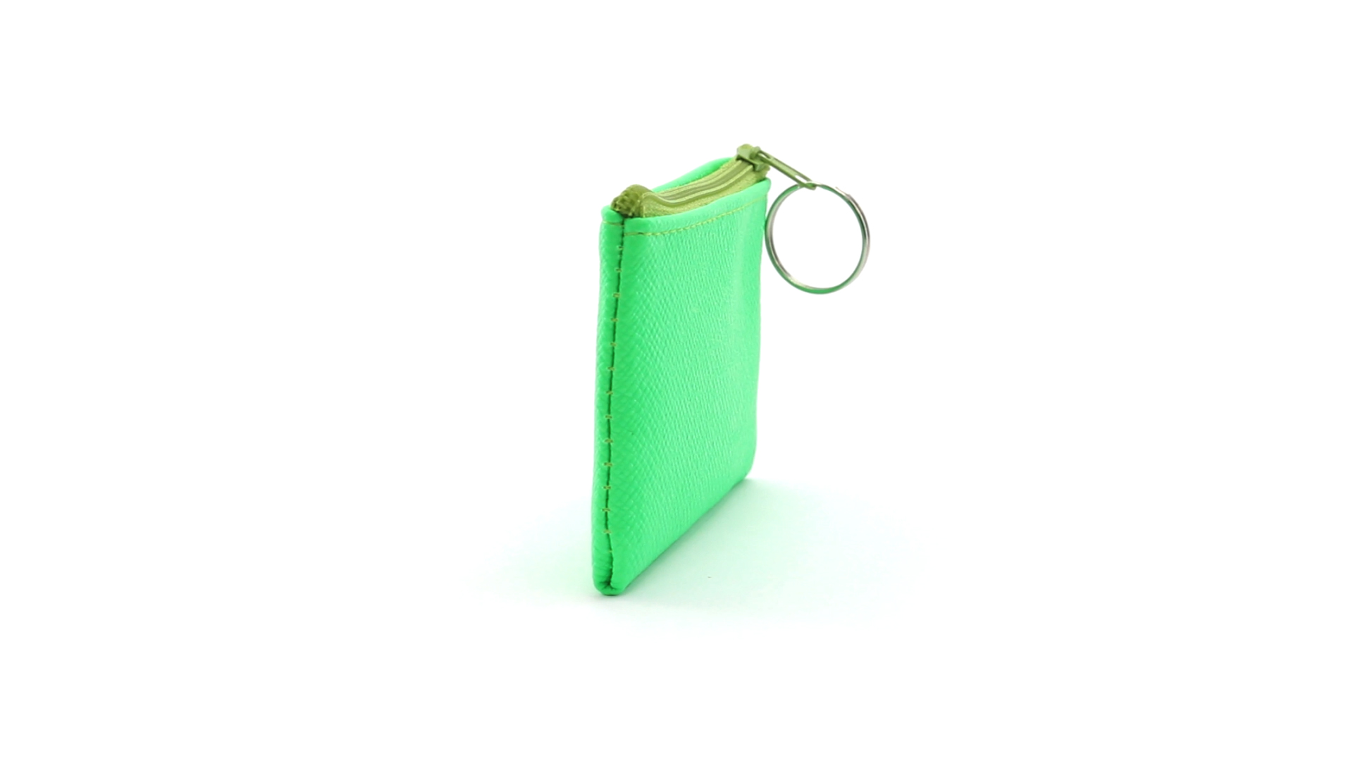 Geldbörse mit quadratischem Design aus weichem PVC in verschiedenen Neonfarben. Hauptfach mit Reissverschluss, farblich passend zum Schlüsselring.