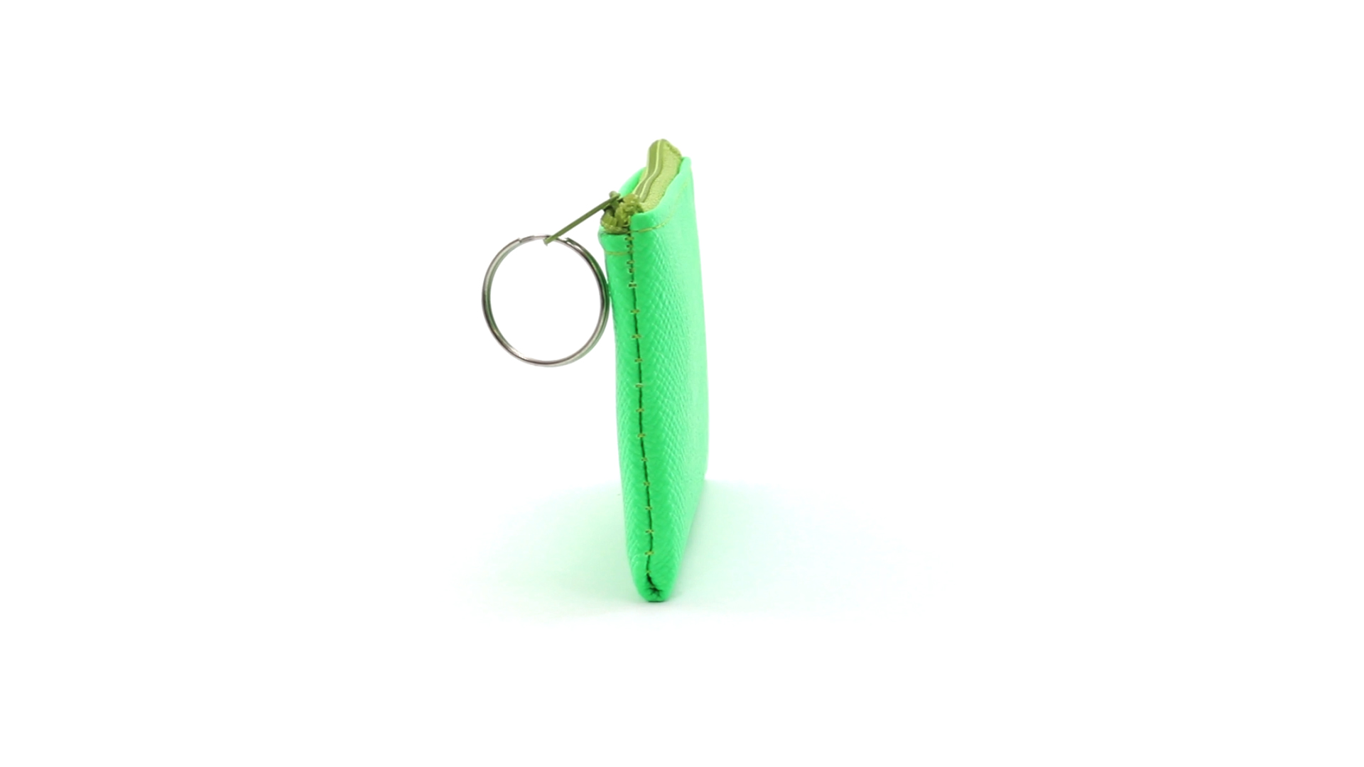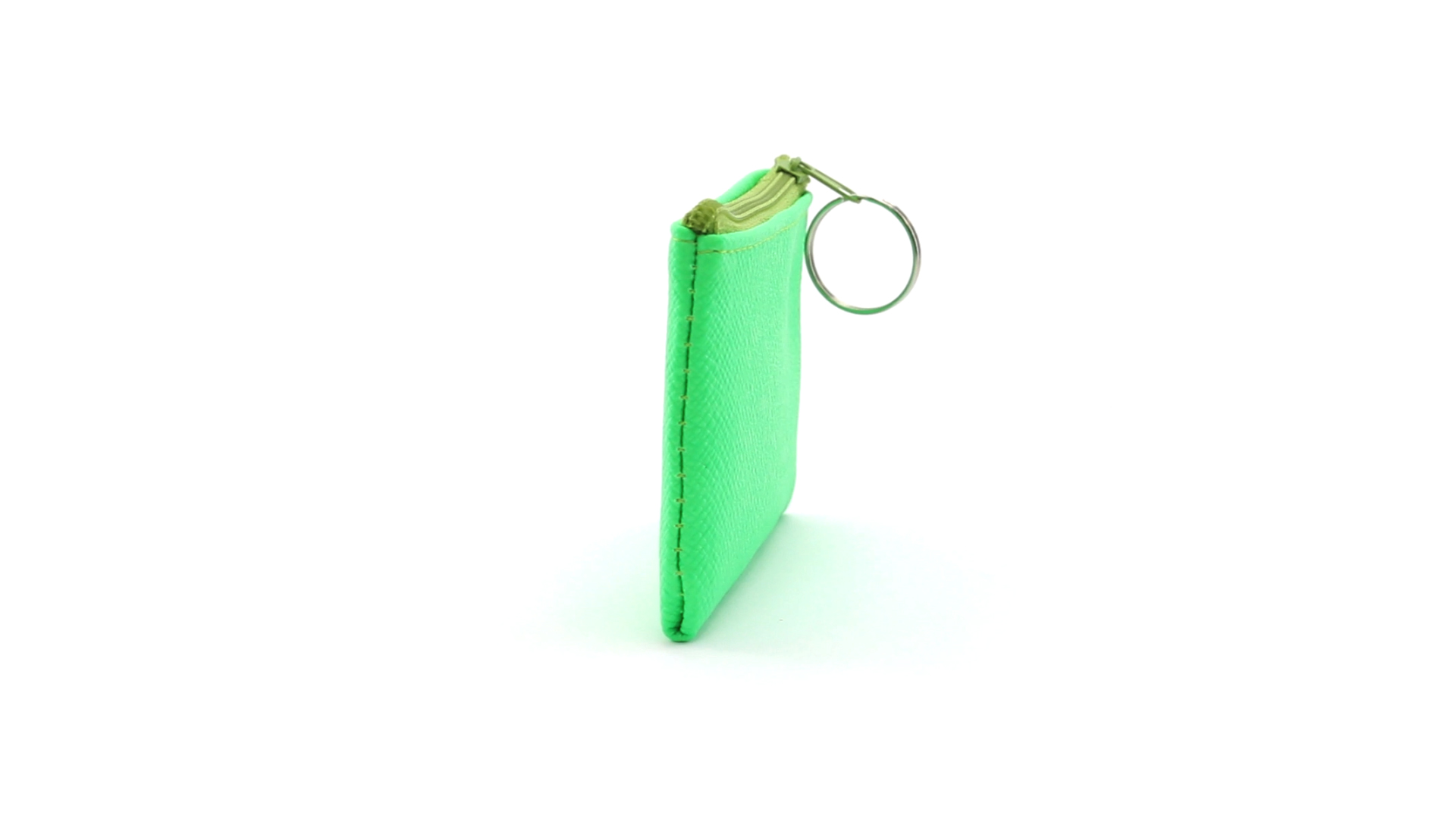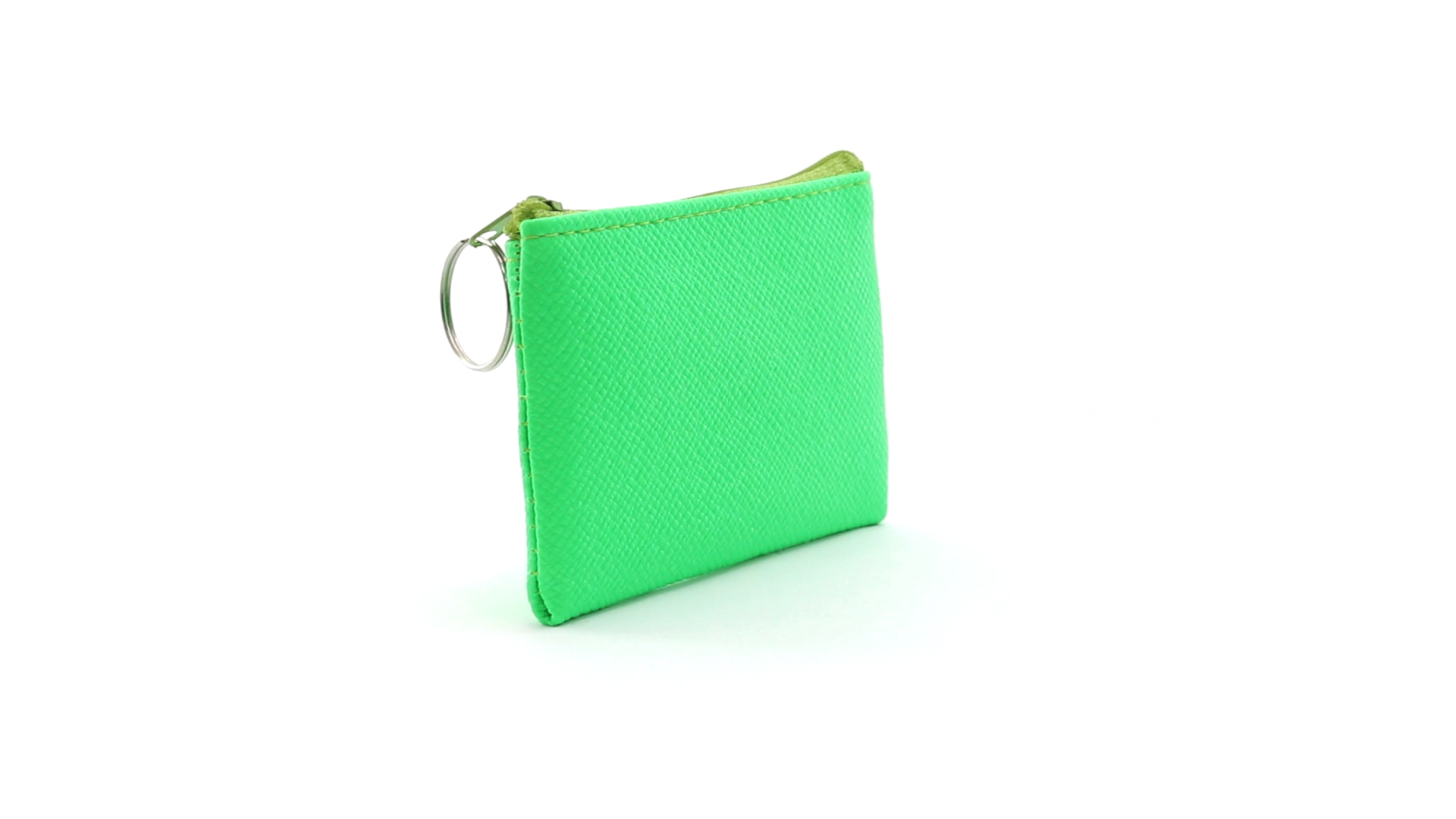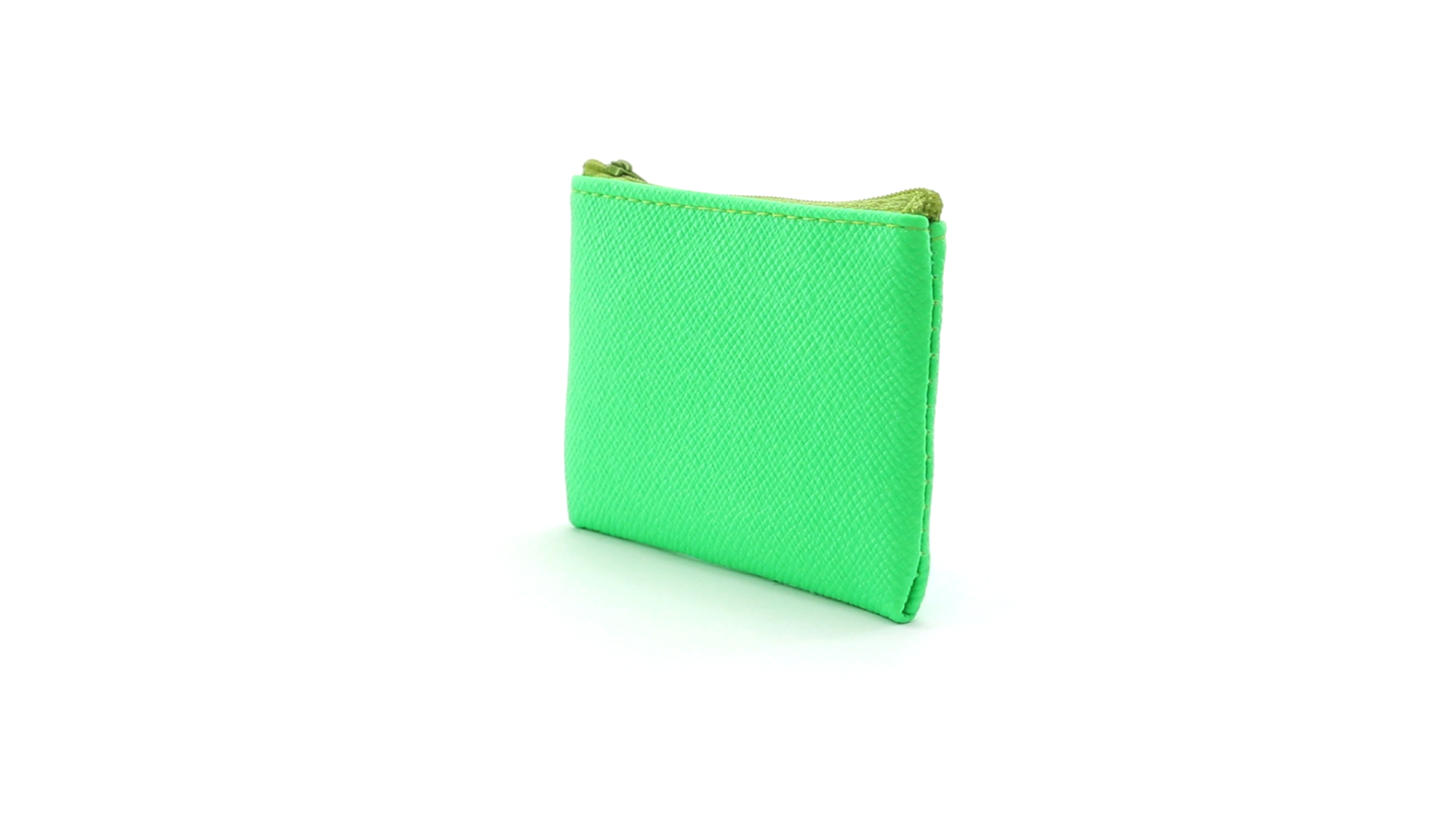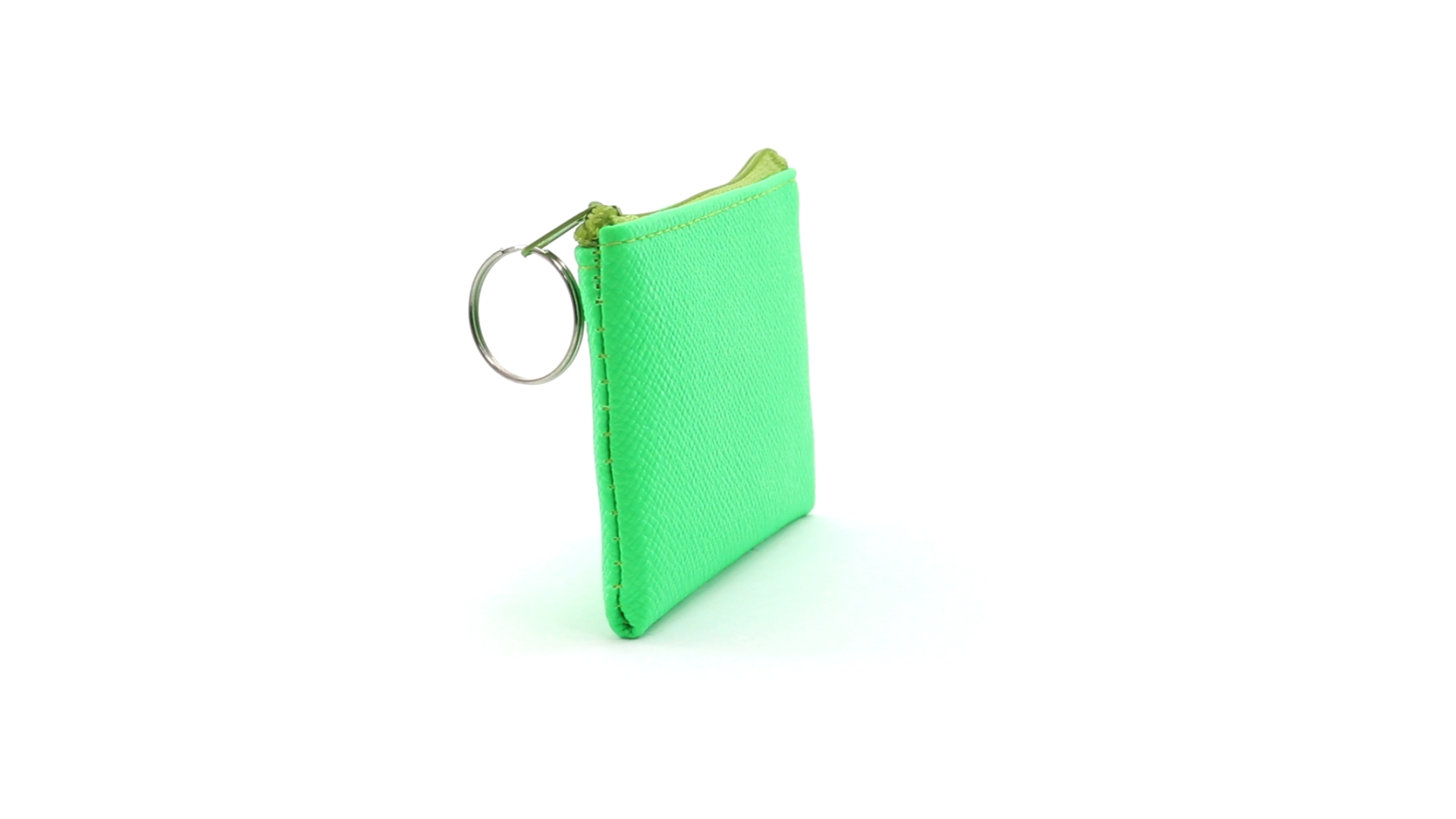 Geldbörse mit quadratischem Design aus weichem PVC in verschiedenen Neonfarben. Hauptfach mit Reissverschluss, farblich passend zum Schlüsselring.