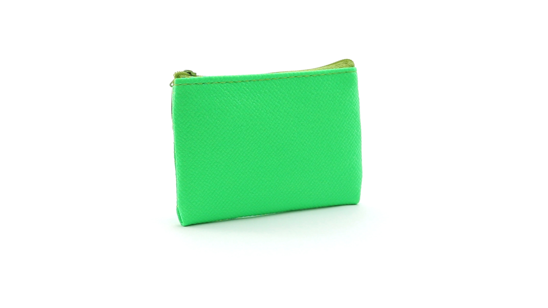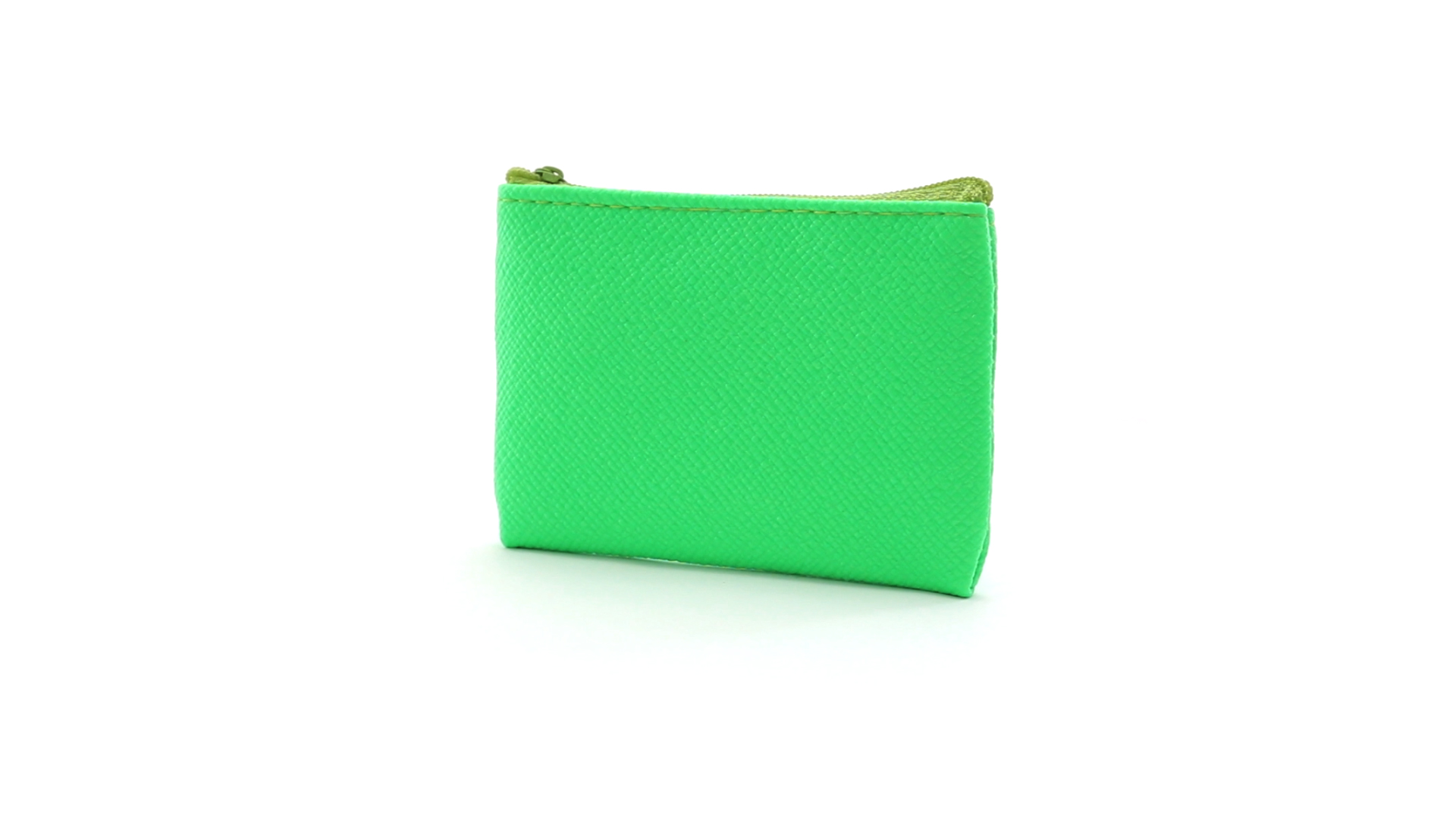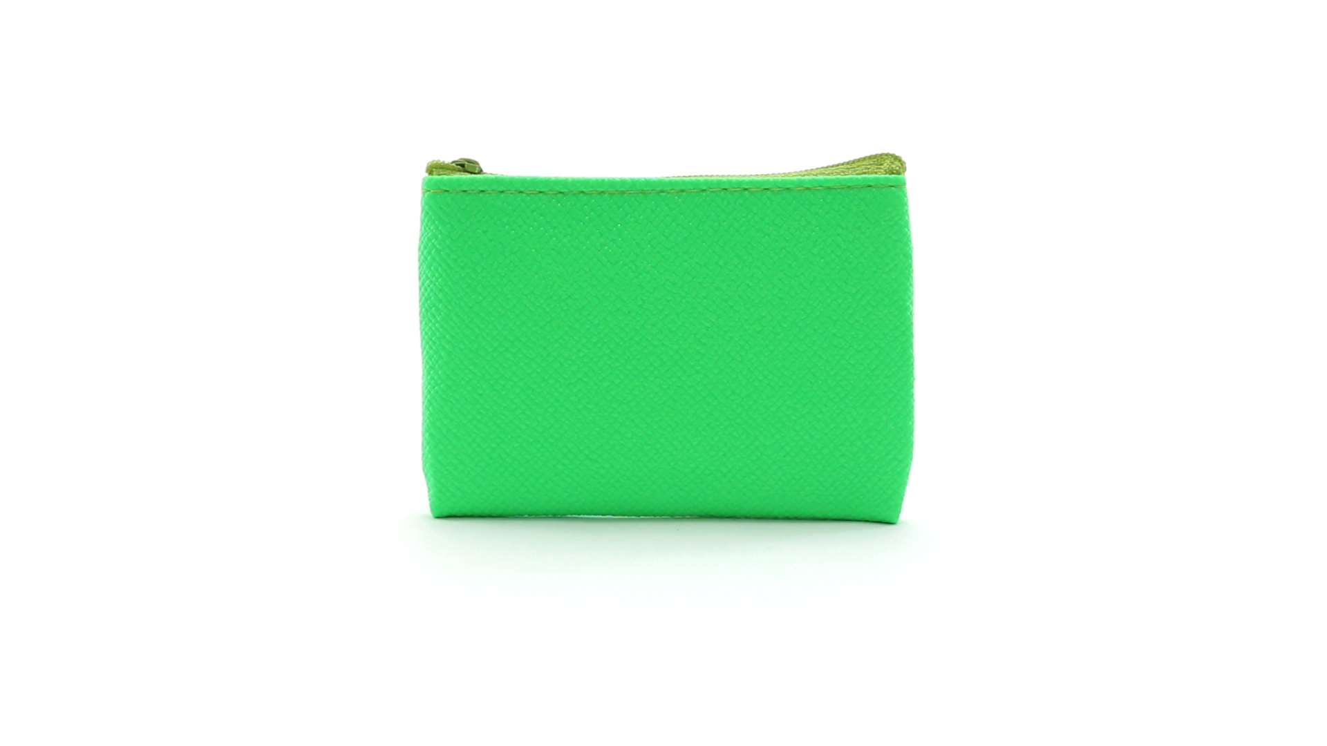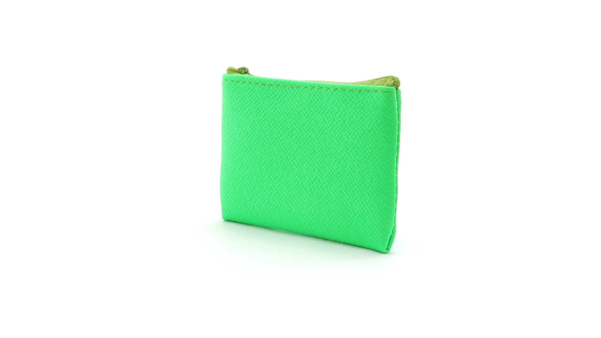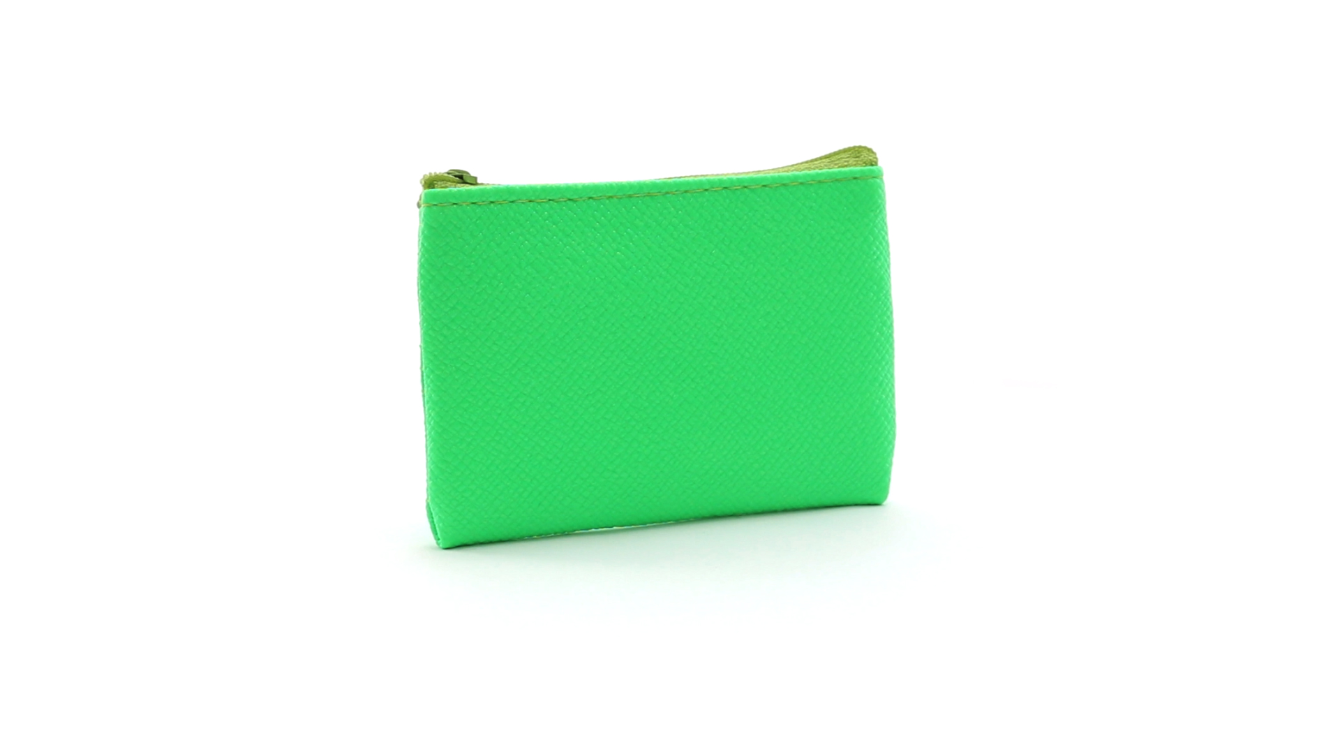 Geldbörse mit quadratischem Design aus weichem PVC in verschiedenen Neonfarben. Hauptfach mit Reissverschluss, farblich passend zum Schlüsselring.