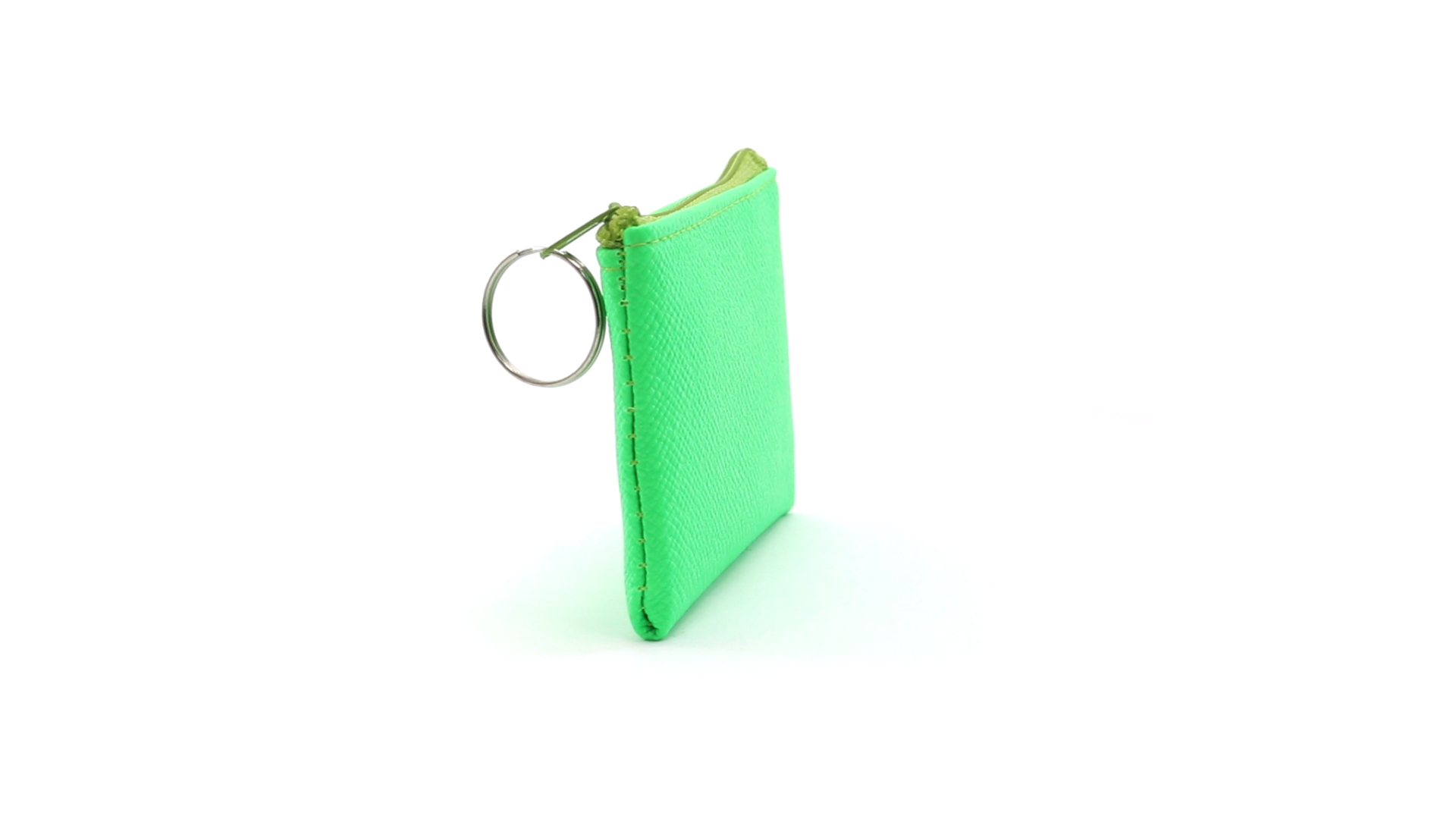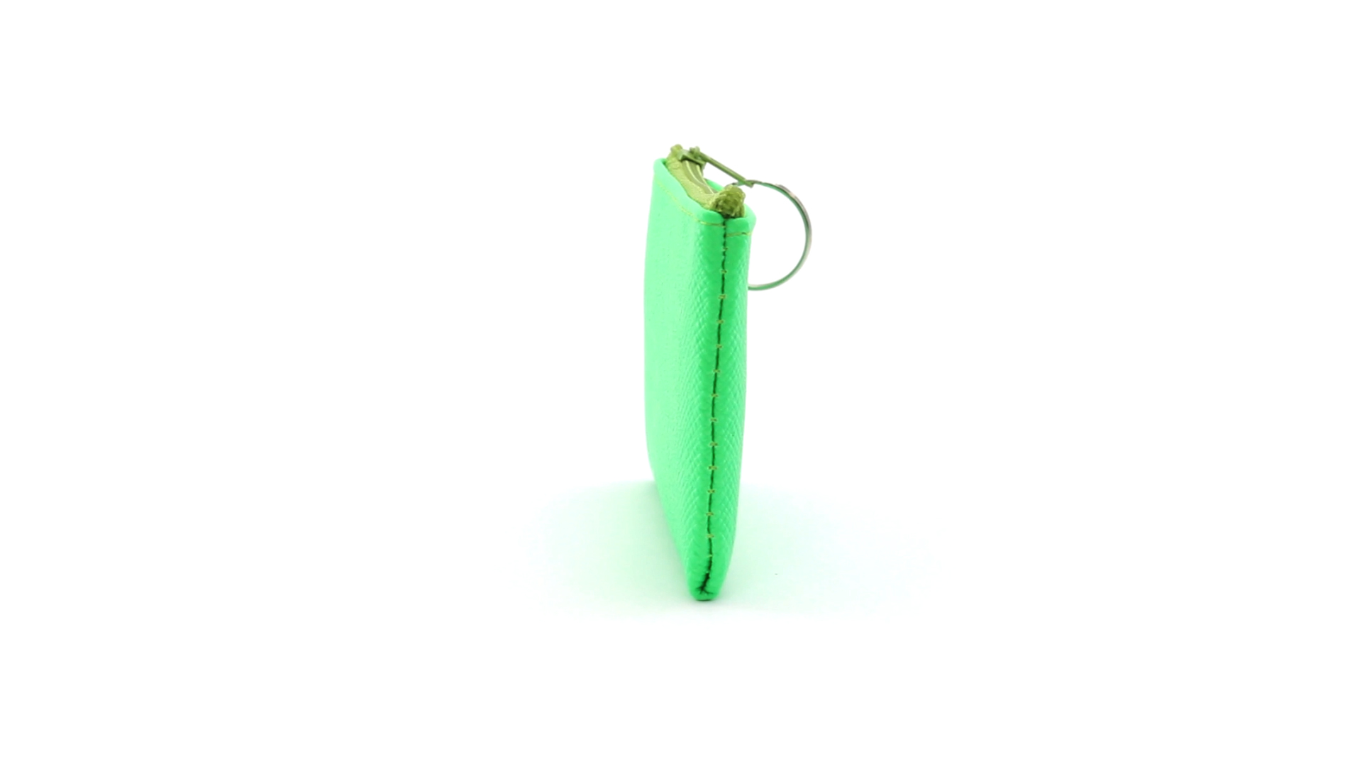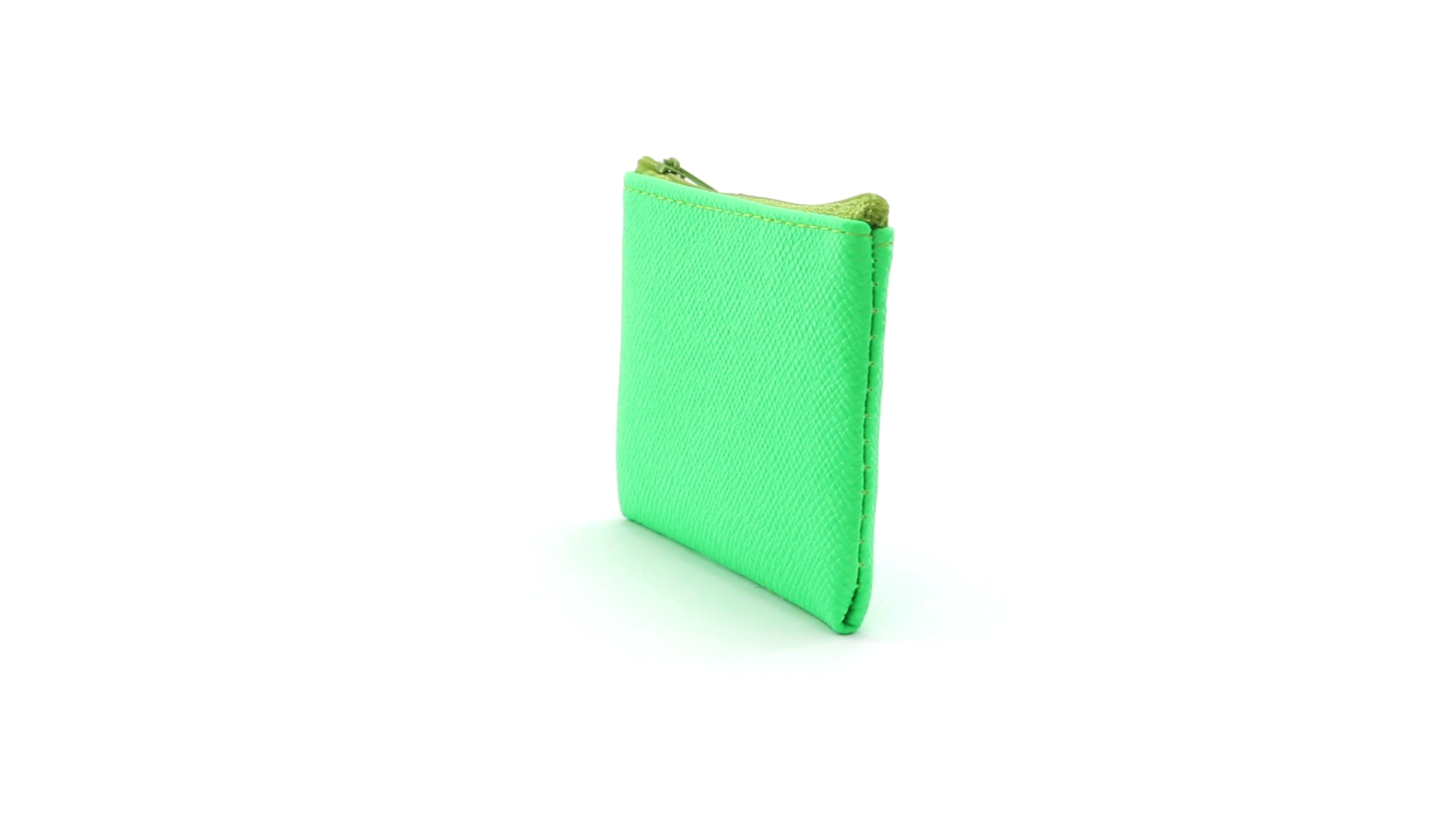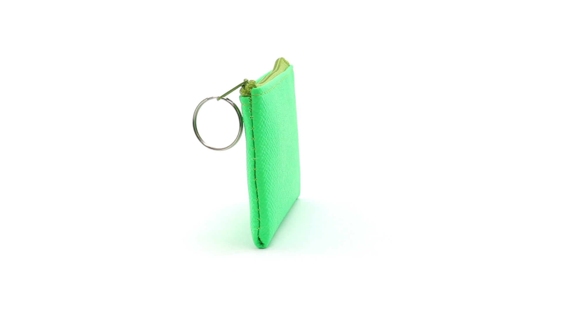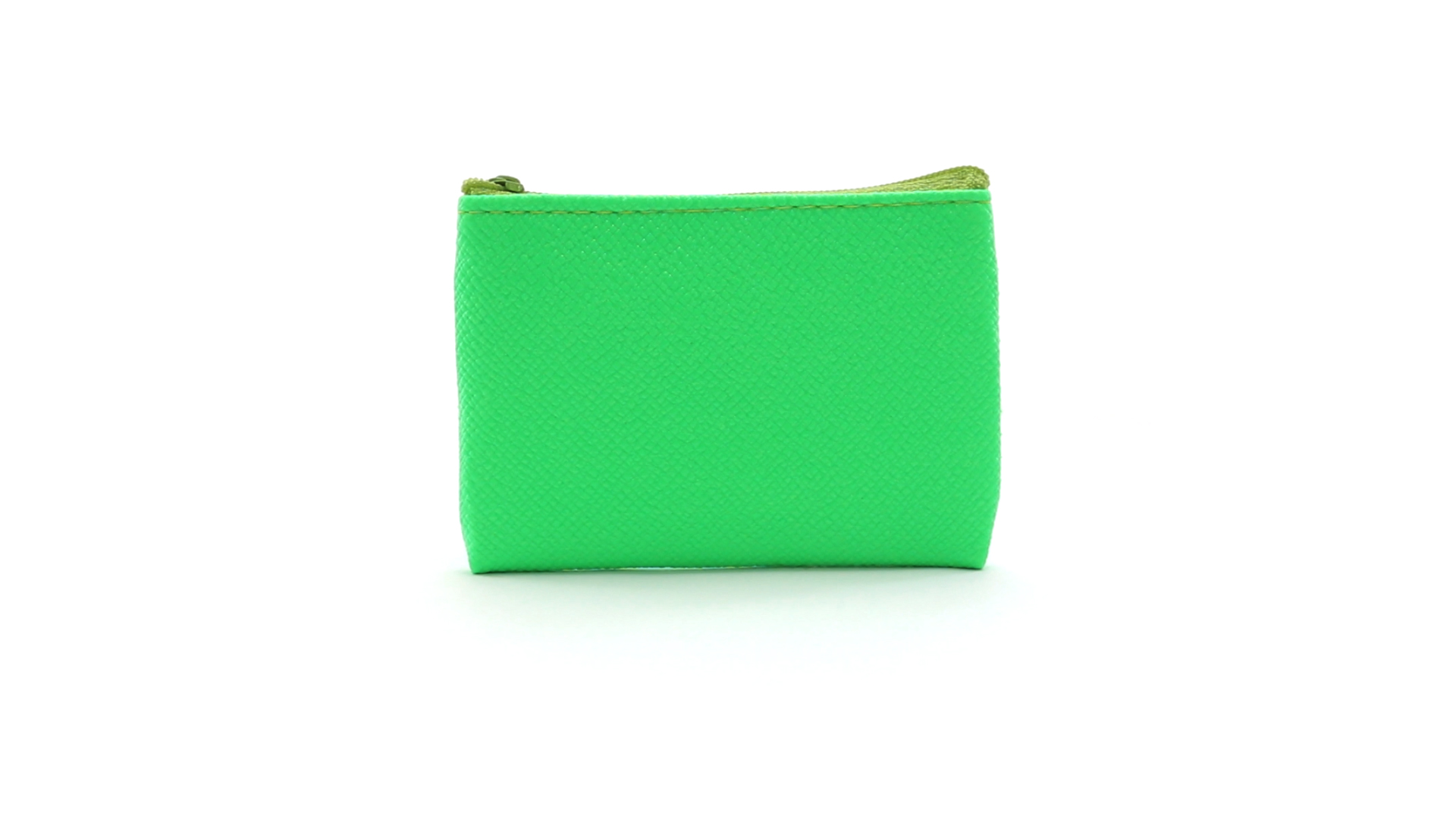 Geldbörse mit quadratischem Design aus weichem PVC in verschiedenen Neonfarben. Hauptfach mit Reissverschluss, farblich passend zum Schlüsselring.