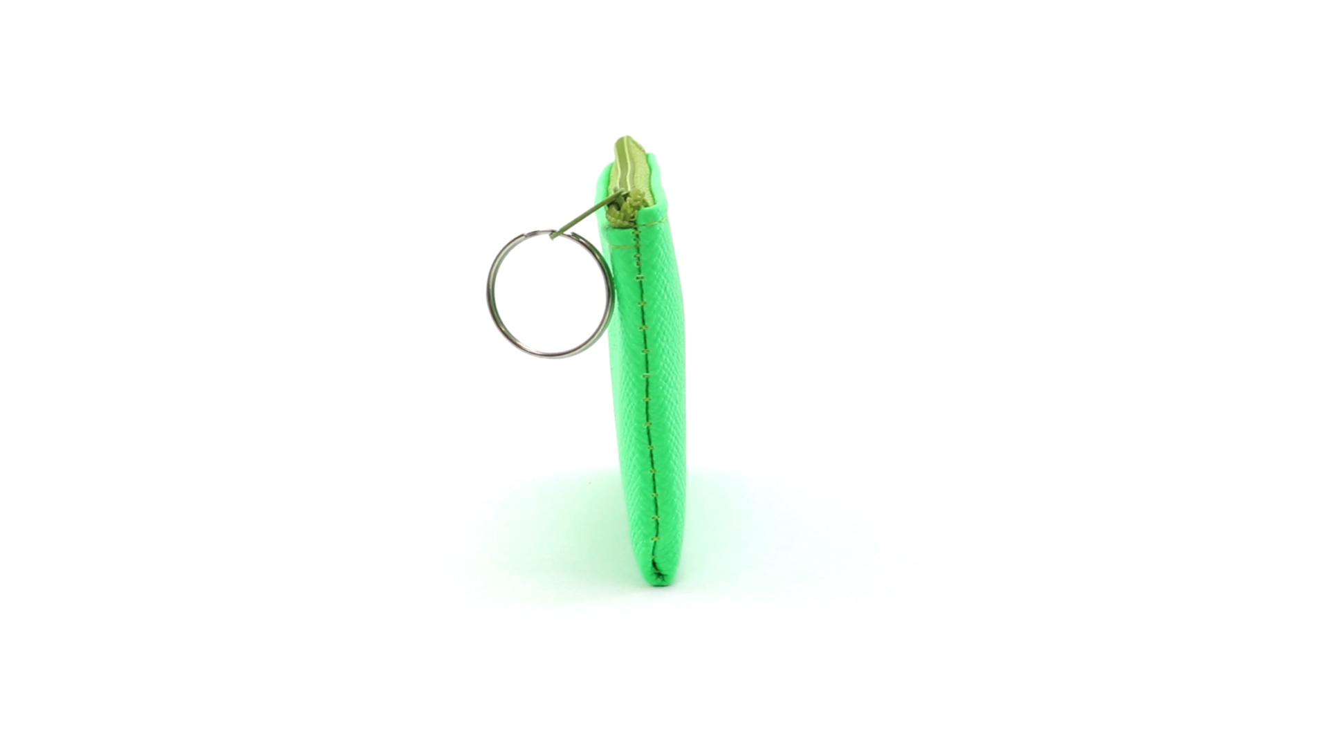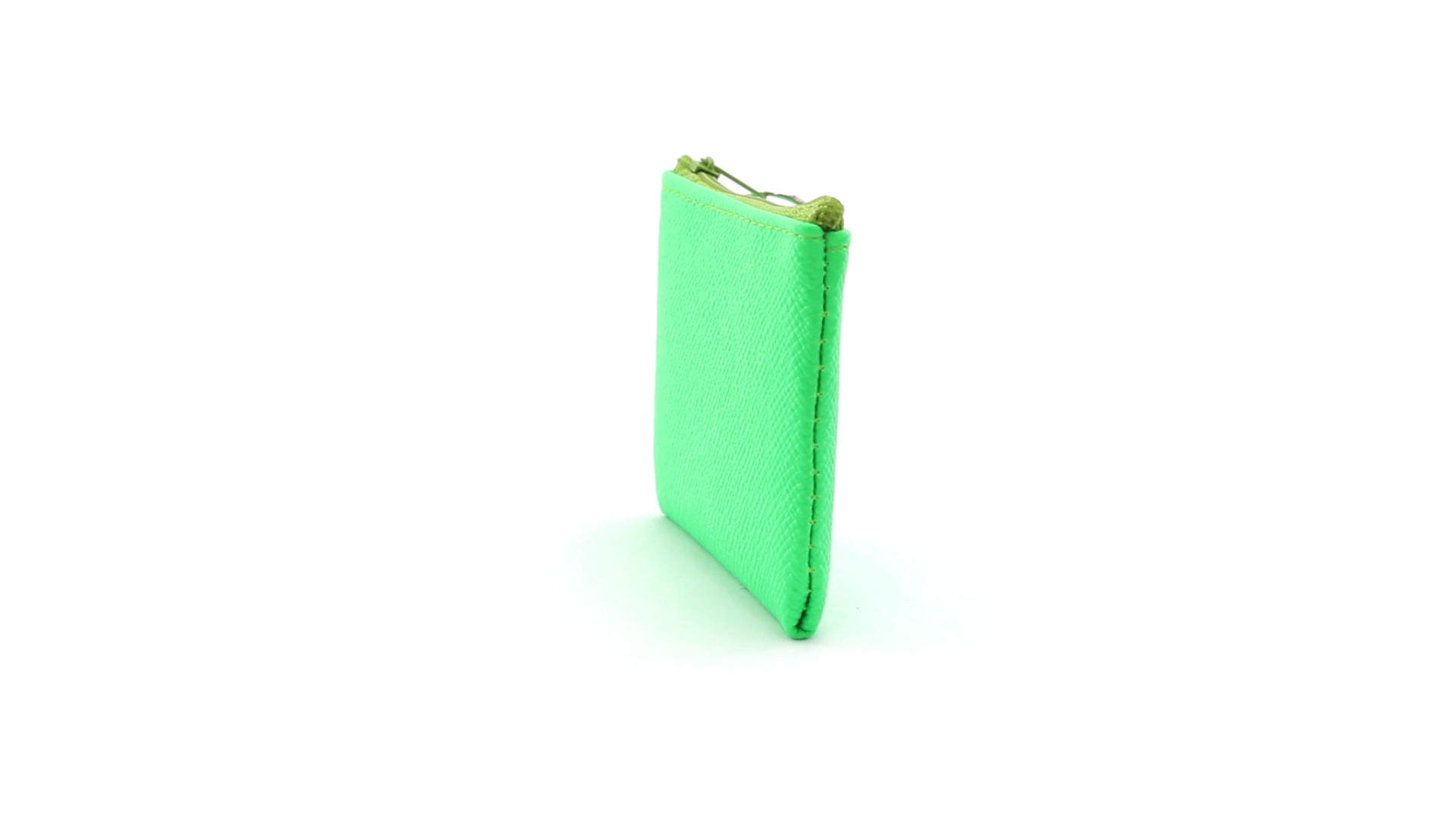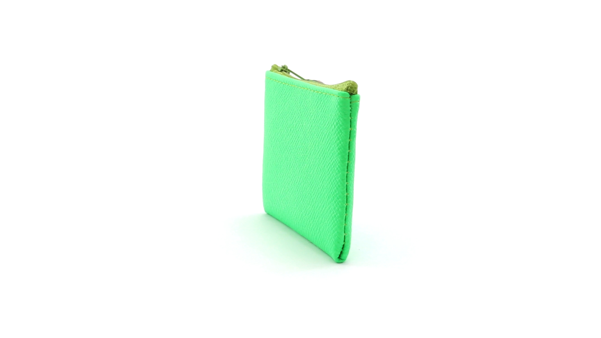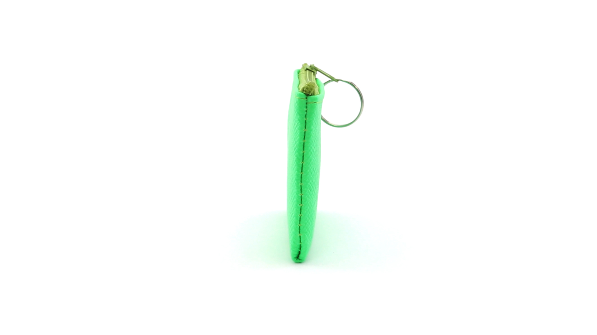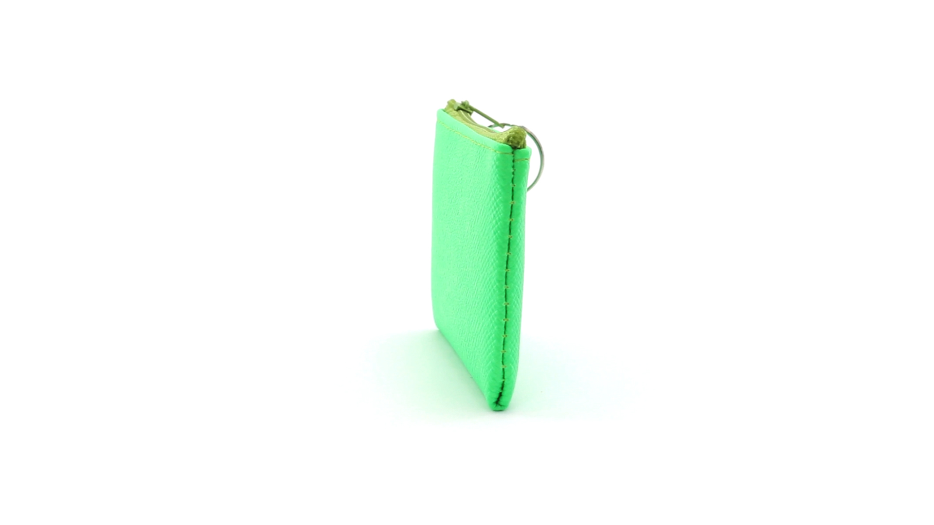 Geldbörse mit quadratischem Design aus weichem PVC in verschiedenen Neonfarben. Hauptfach mit Reissverschluss, farblich passend zum Schlüsselring.