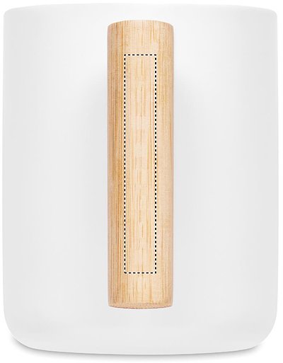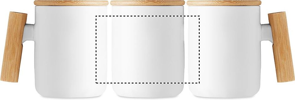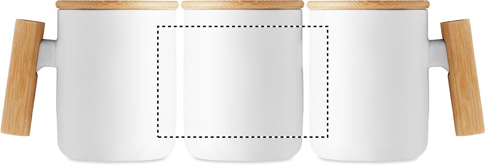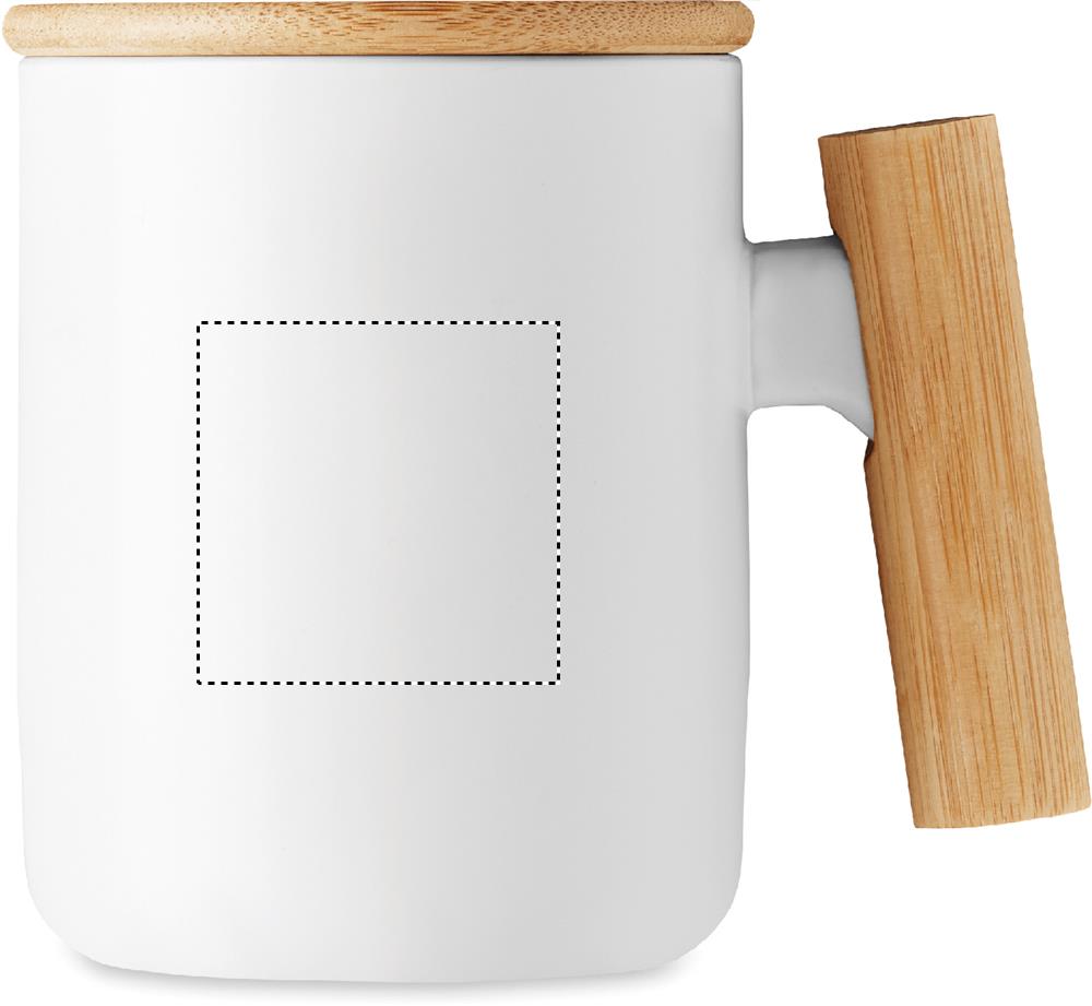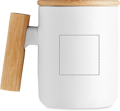 Kaffeebecher aus Porzellan mit Deckel und Henkel aus Bambus. Füllmenge: 380 ml. Bambus ist ein natürliches Produkt, es kann daher zu leichten Abweichungen in Farbe, Dekor und Massen kommen.