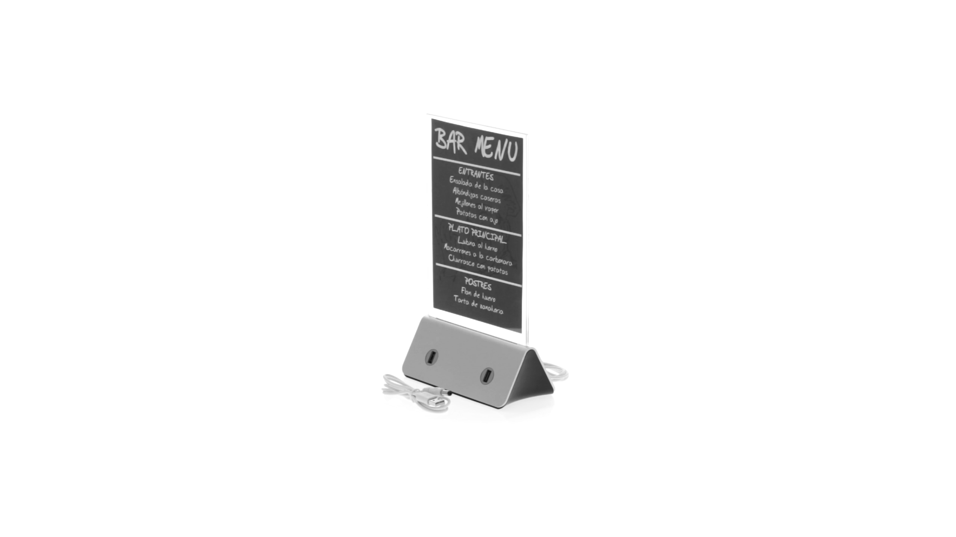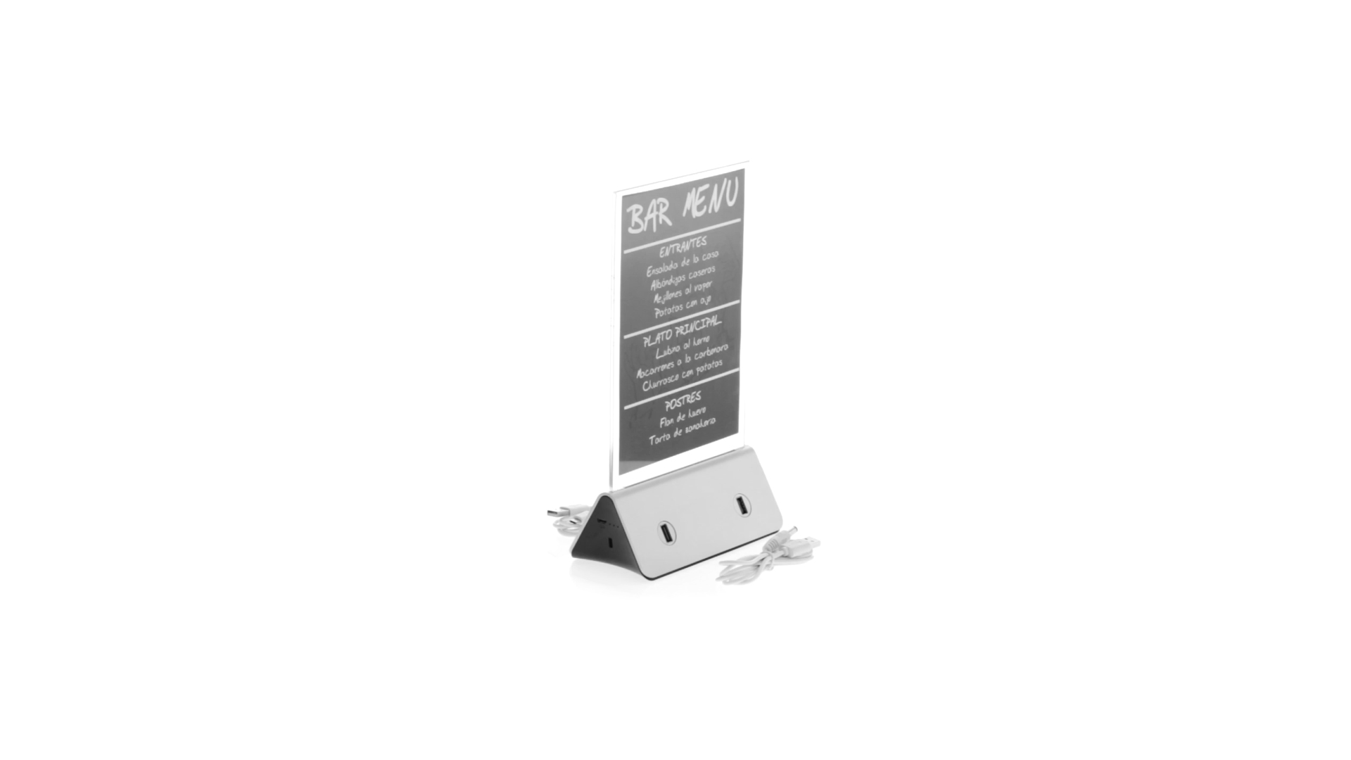Werbeaufsteller mit integriertem Lithium-Akku mit hoher Ladekapazität von 10.000 mAh. Mit verstärktem Display der Grösse 15 x 21,5 cm aus transparentem Acryl. Ermöglicht das gleichzeitige Laden von mehreren Mobilgeräten dank der 4 USB-Ausgänge. Micro-USB-Kabel inklusive. Dank seiner intelligenten Energieverteilungstechnologie ist der Akku in der Lage, weitere Energie zu speichern, während er die angeschlossenen Mobilgeräte mit Strom versorgt. Präsentiert in einer attraktiven und robusten Designbox.