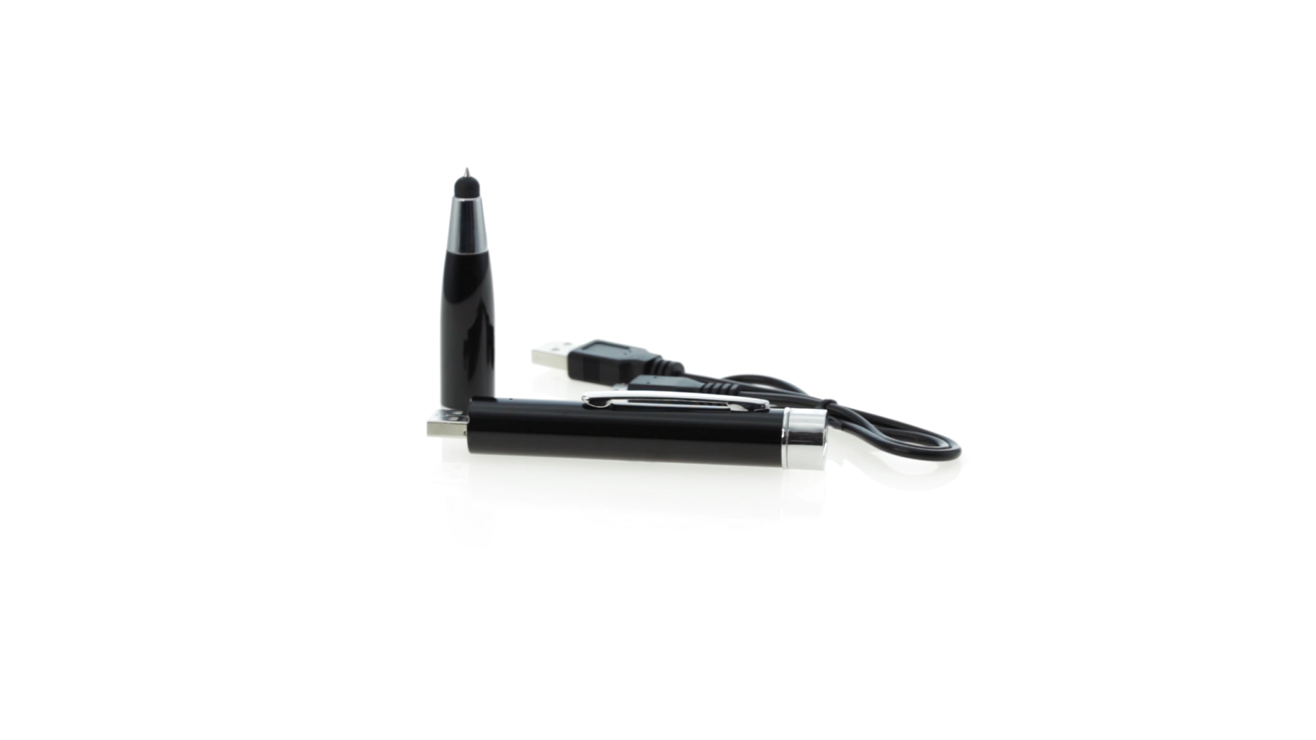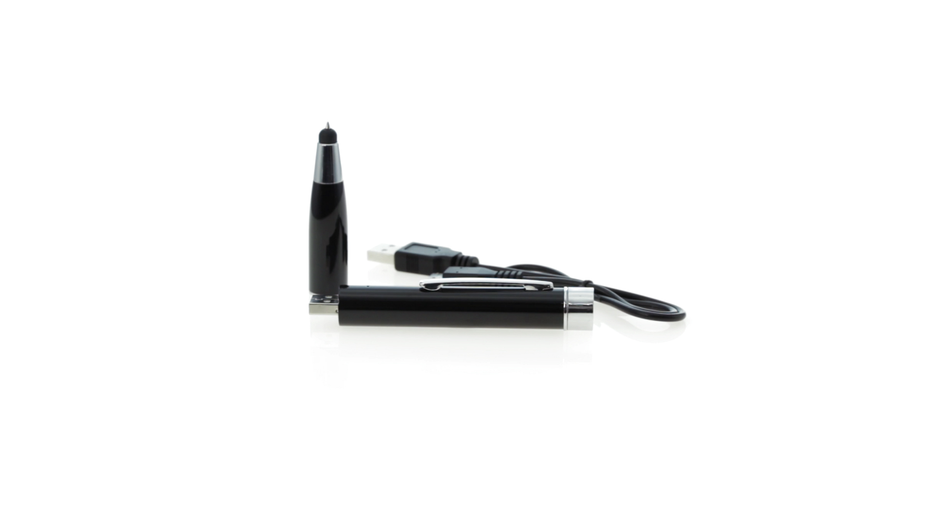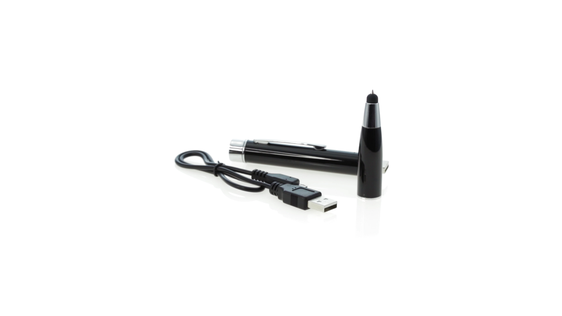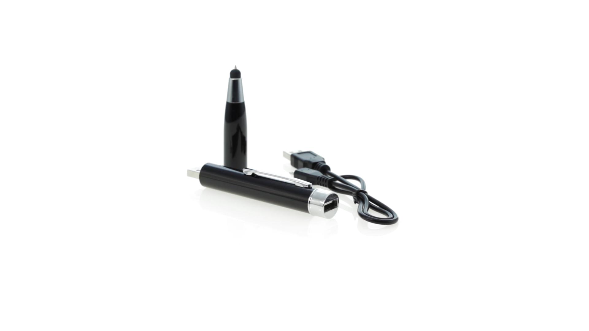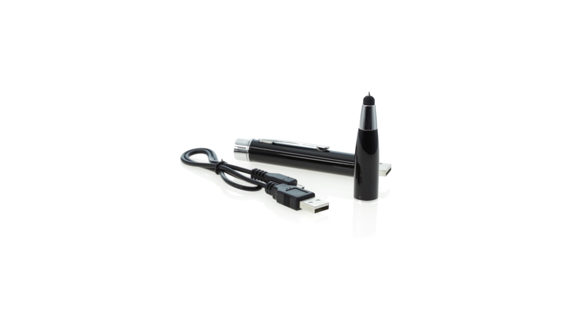 Multifunktioneller Dreh-Kugelschreiber mit externem Akku mit 650 mAh Ladekapazität und weichem Gummi-Stylus. Micro-USB-Kabel inklusive. Mit schwarzer Tinte. Präsentiert in einer attraktiven Designbox.