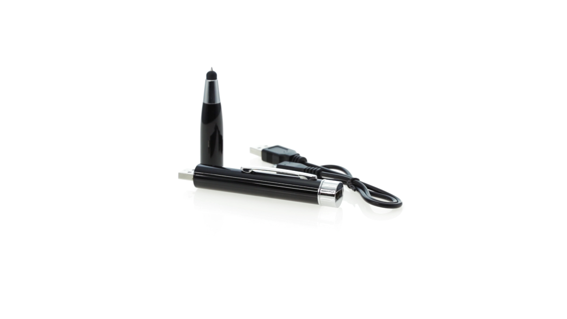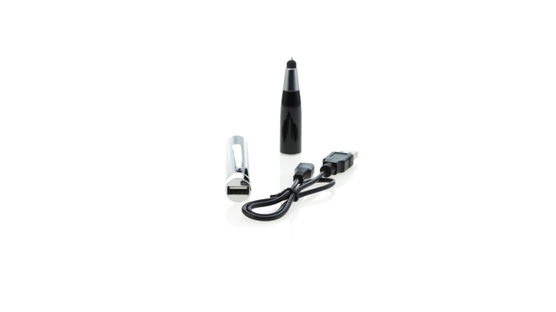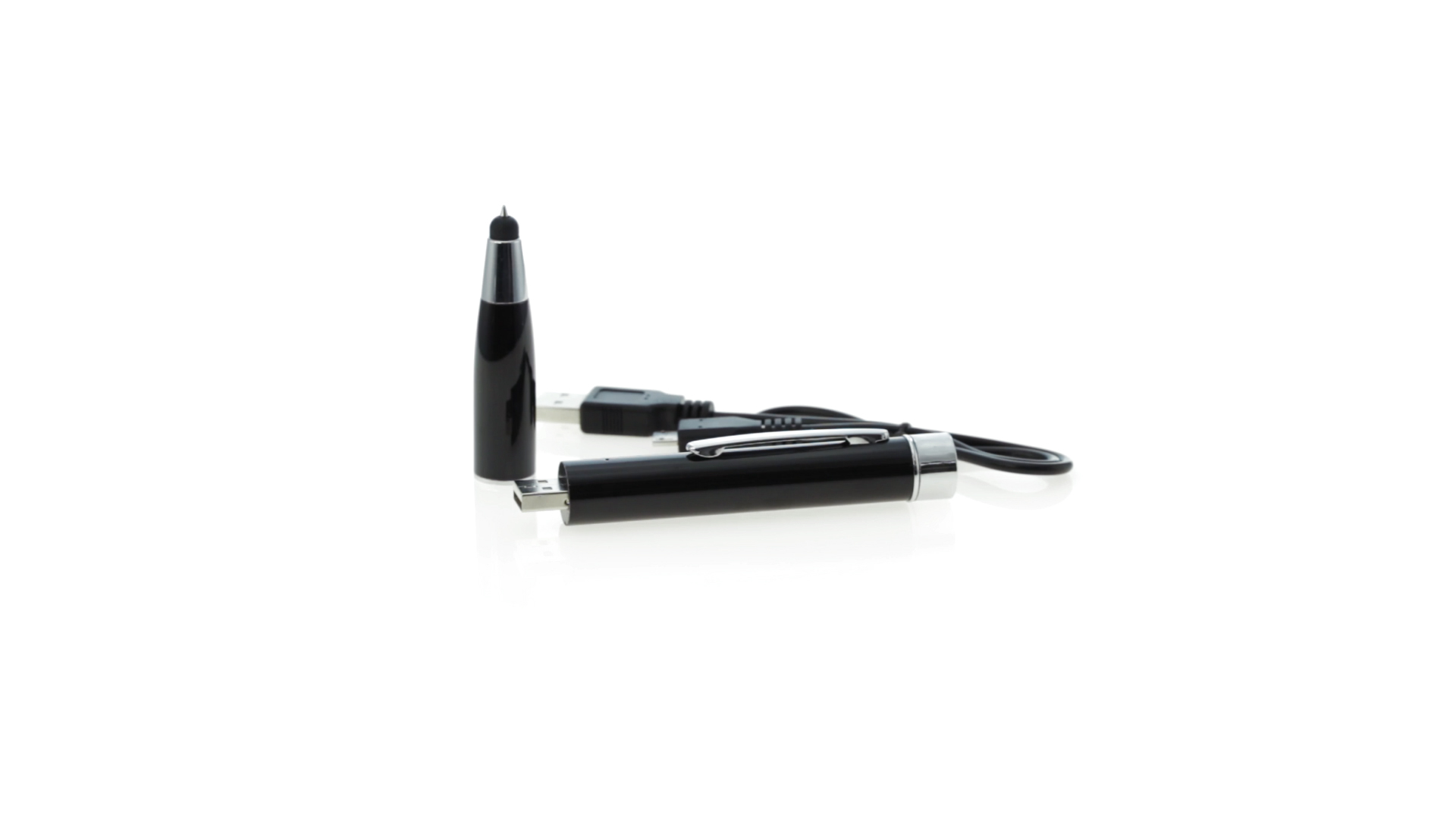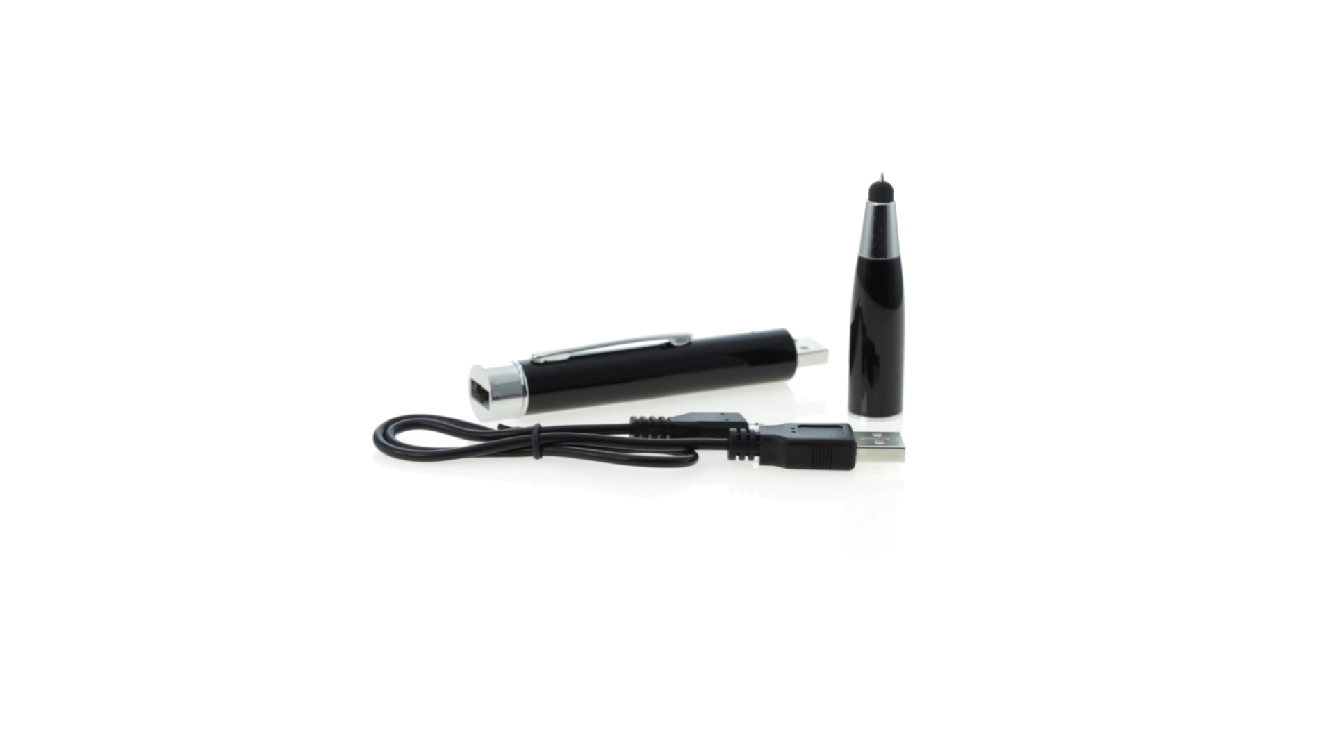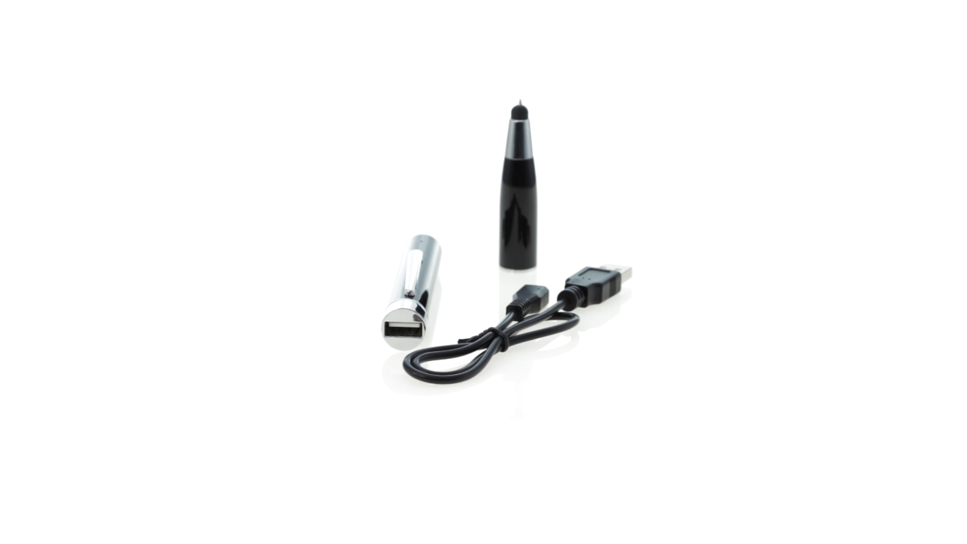 Multifunktioneller Dreh-Kugelschreiber mit externem Akku mit 650 mAh Ladekapazität und weichem Gummi-Stylus. Micro-USB-Kabel inklusive. Mit schwarzer Tinte. Präsentiert in einer attraktiven Designbox.