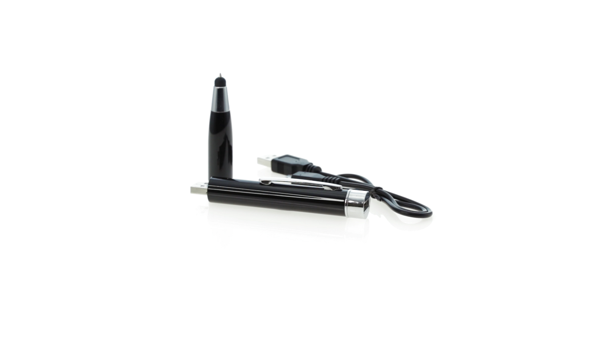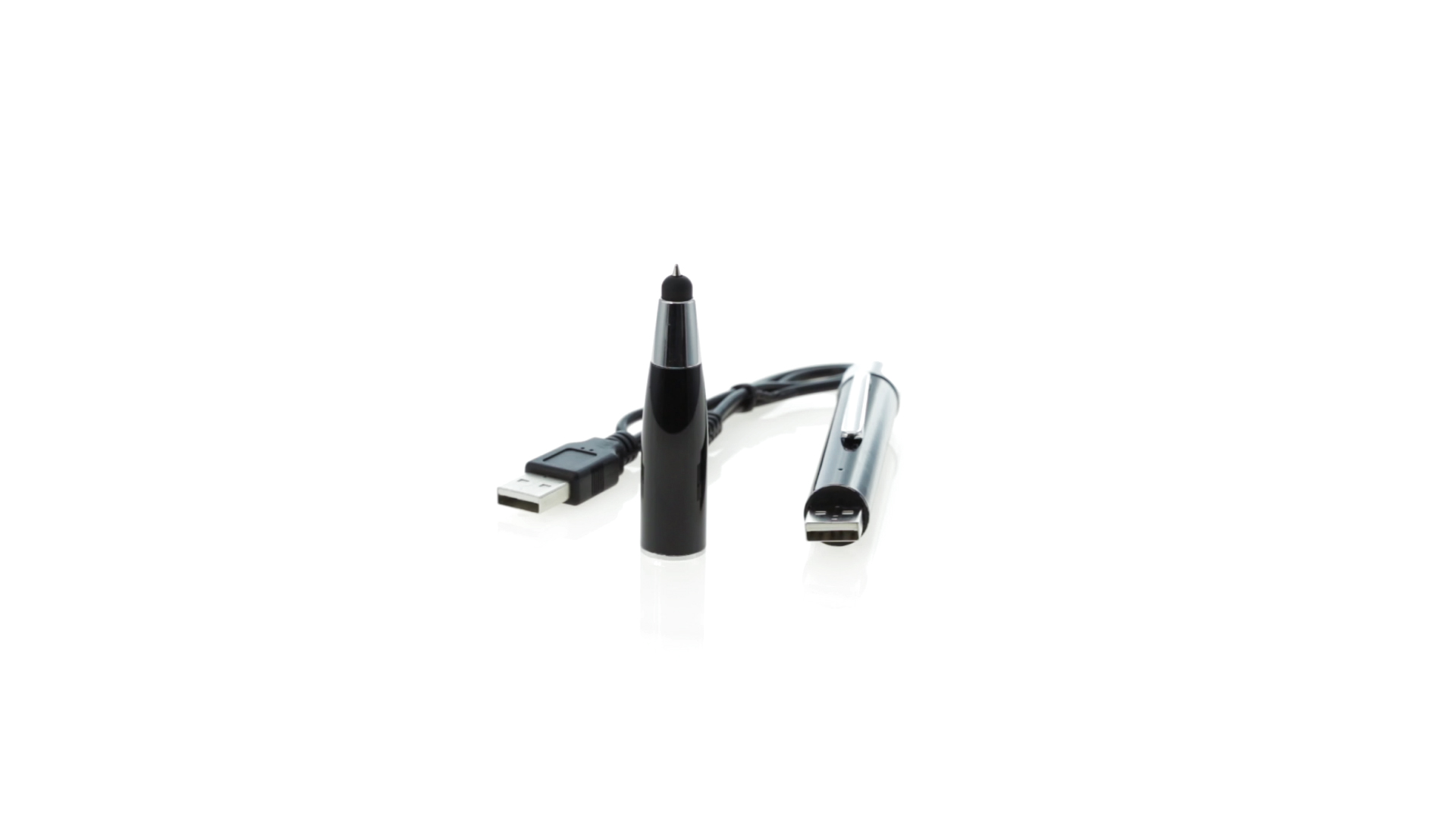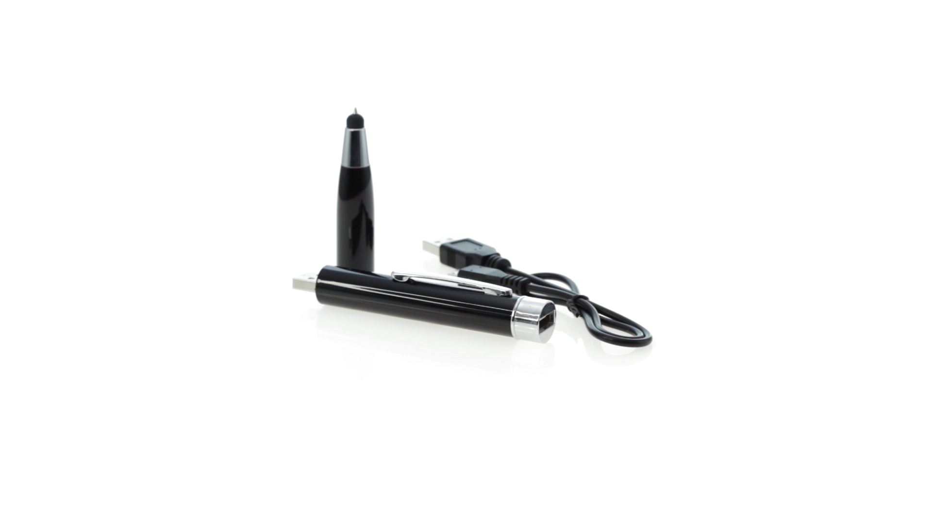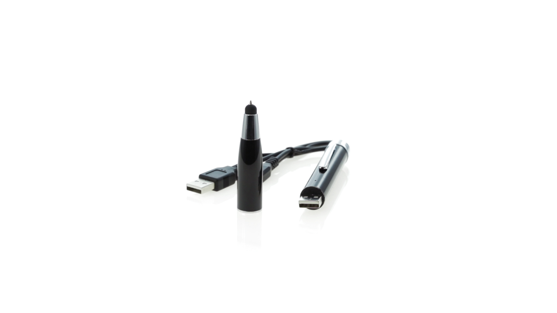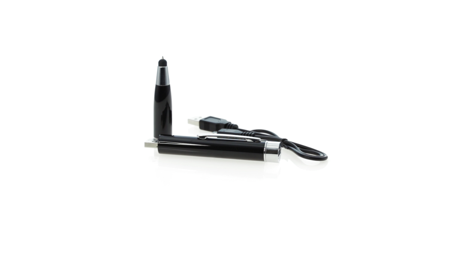 Multifunktioneller Dreh-Kugelschreiber mit externem Akku mit 650 mAh Ladekapazität und weichem Gummi-Stylus. Micro-USB-Kabel inklusive. Mit schwarzer Tinte. Präsentiert in einer attraktiven Designbox.