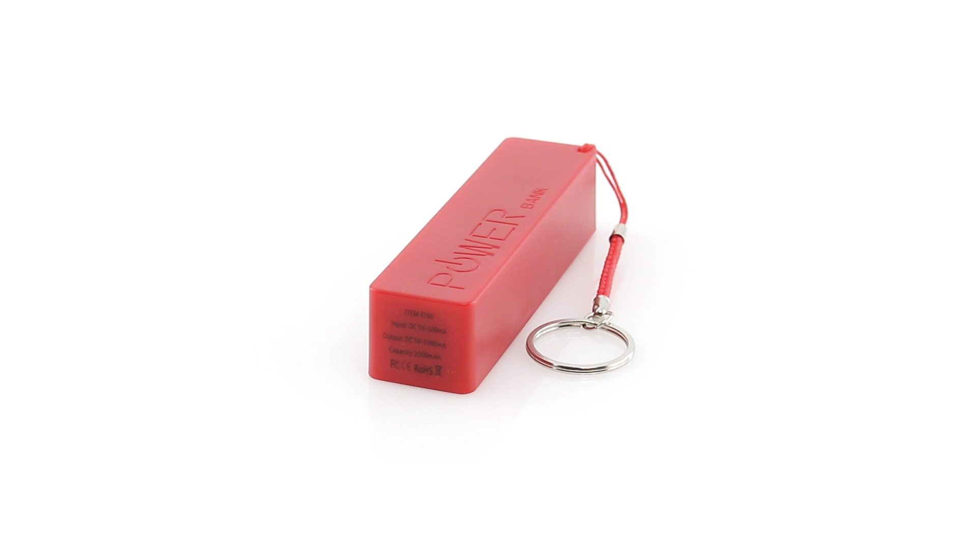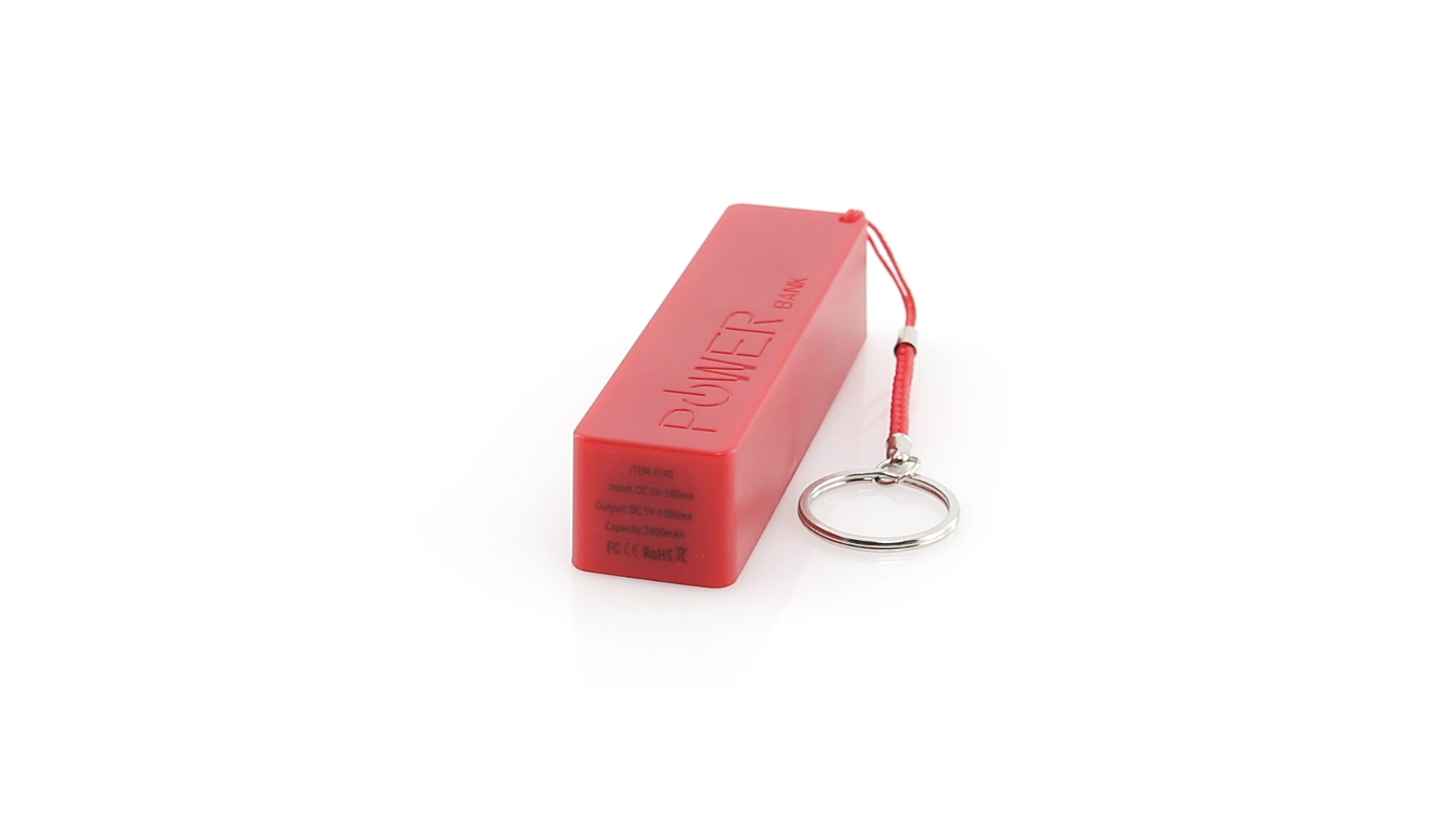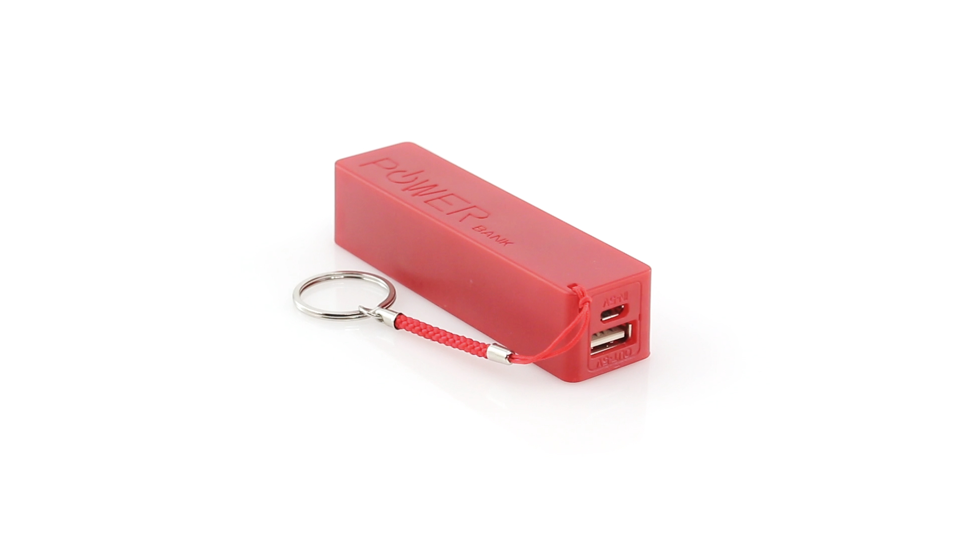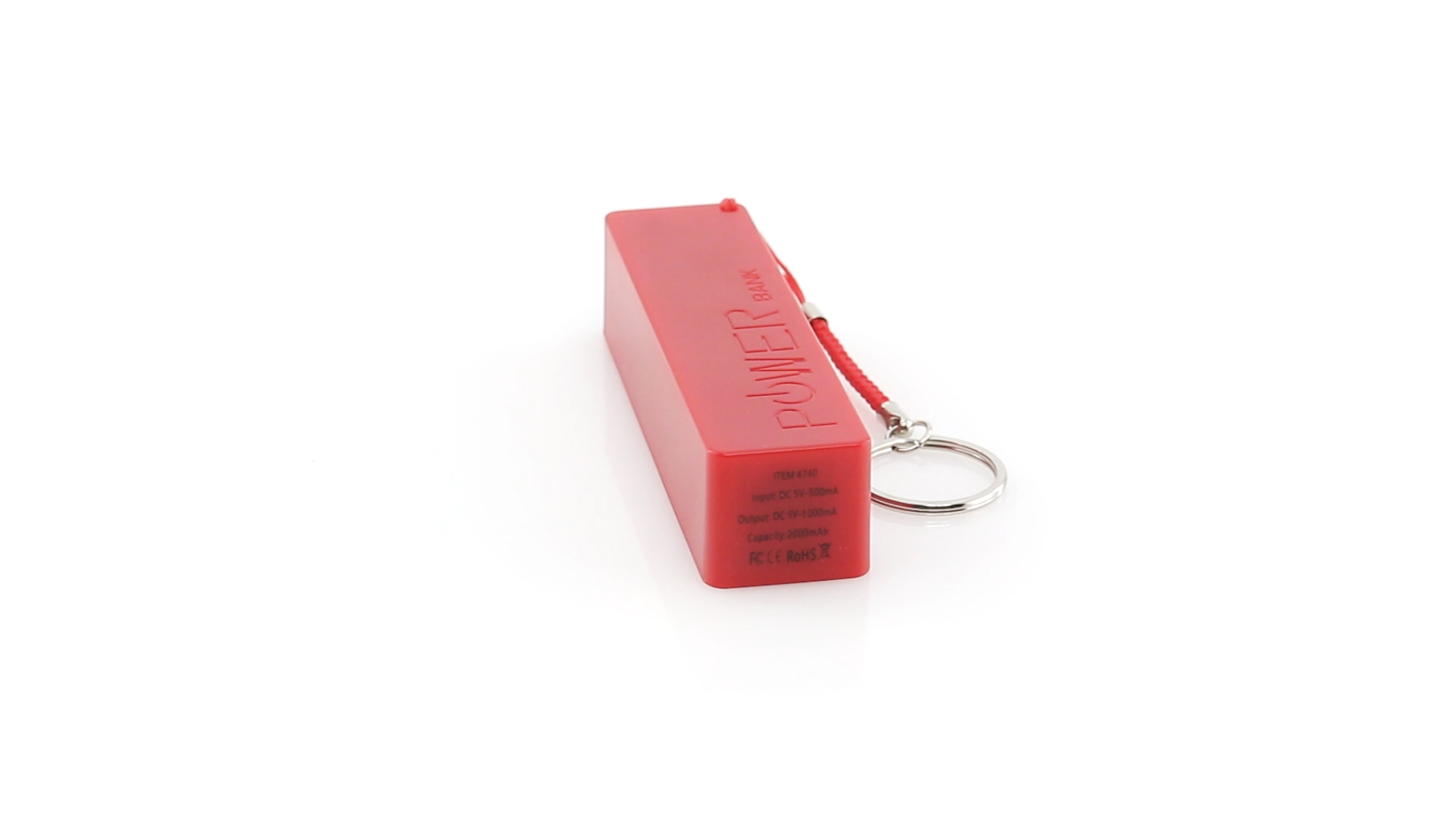 Externer Akku mit 2.000 mAh Ladekapazität in lebendigen Farben. Mit grosser Druckfläche und farblich passendem Band mit Schlüsselring. Präsentiert in einer attraktivem Designbox.