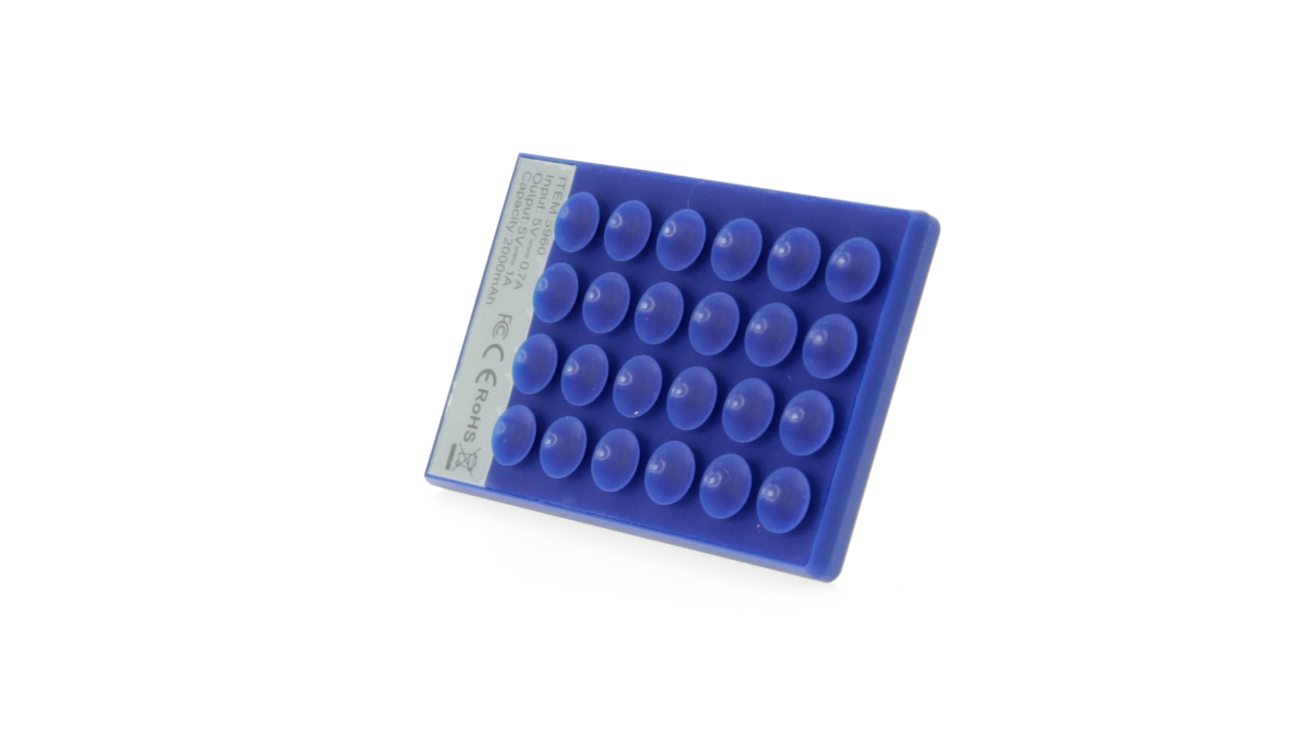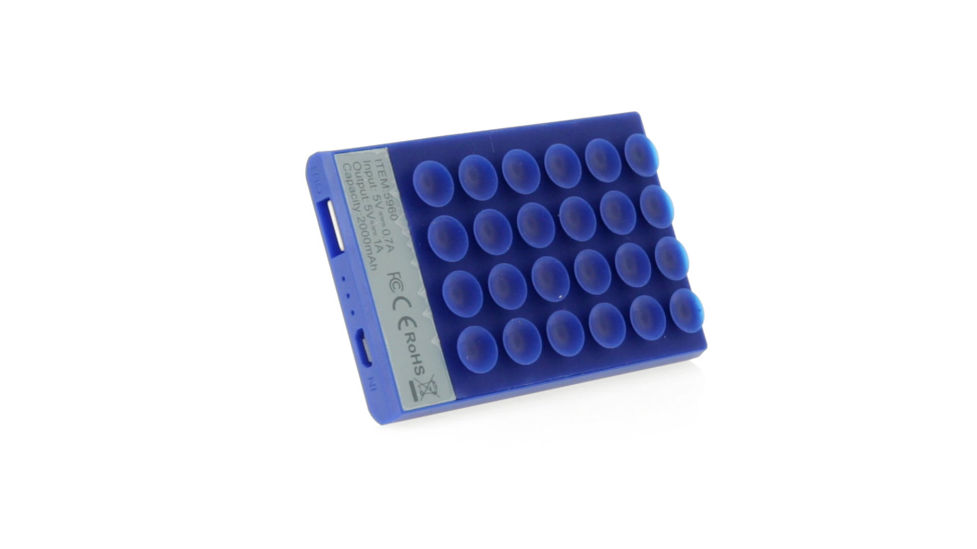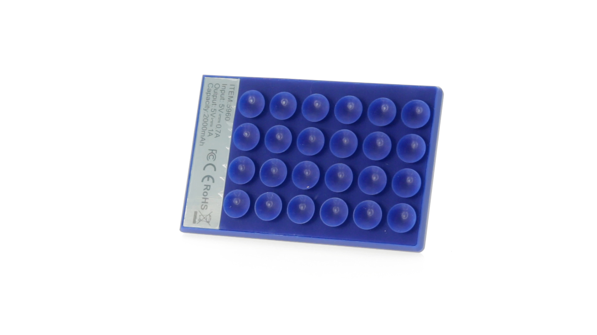Externe Powerbank - 2.000 mAh - mit Saugnapf und Selfie-Ring/Halterung. Mit Anschlüssen für Micro-USB und USB-Eingang/-Ausgang. Ladestatusanzeige-LEDs, flaches gewölbtes Design und grosse Druckfläche. Präsentiert in einer attraktiven Designerbox. Die Kapazitäten aller unseren externen Zusatzbatterien sind real und beinhalten alle Batterien der Klasse A und nicht recycelte Batterien, mit einer Lebensdauer von mindestens 500 Ladezyklen und sind CE-konform. Darüber hinaus werden sie gemäss den RoHS-Normen und in Übereinstimmung mit den folgenden Sicherheitsanforderungen hergestellt: Überladeschutzsystem der Powerbank, vollständiger Entladungsschutz für eine längere Lebensdauer der Powerbank, verriegelungssystem zur Vermeidung von Kurzschlüssen, konstantes Ladungstransfersystem je nach Kapazität des Zielgeräts. nbsp