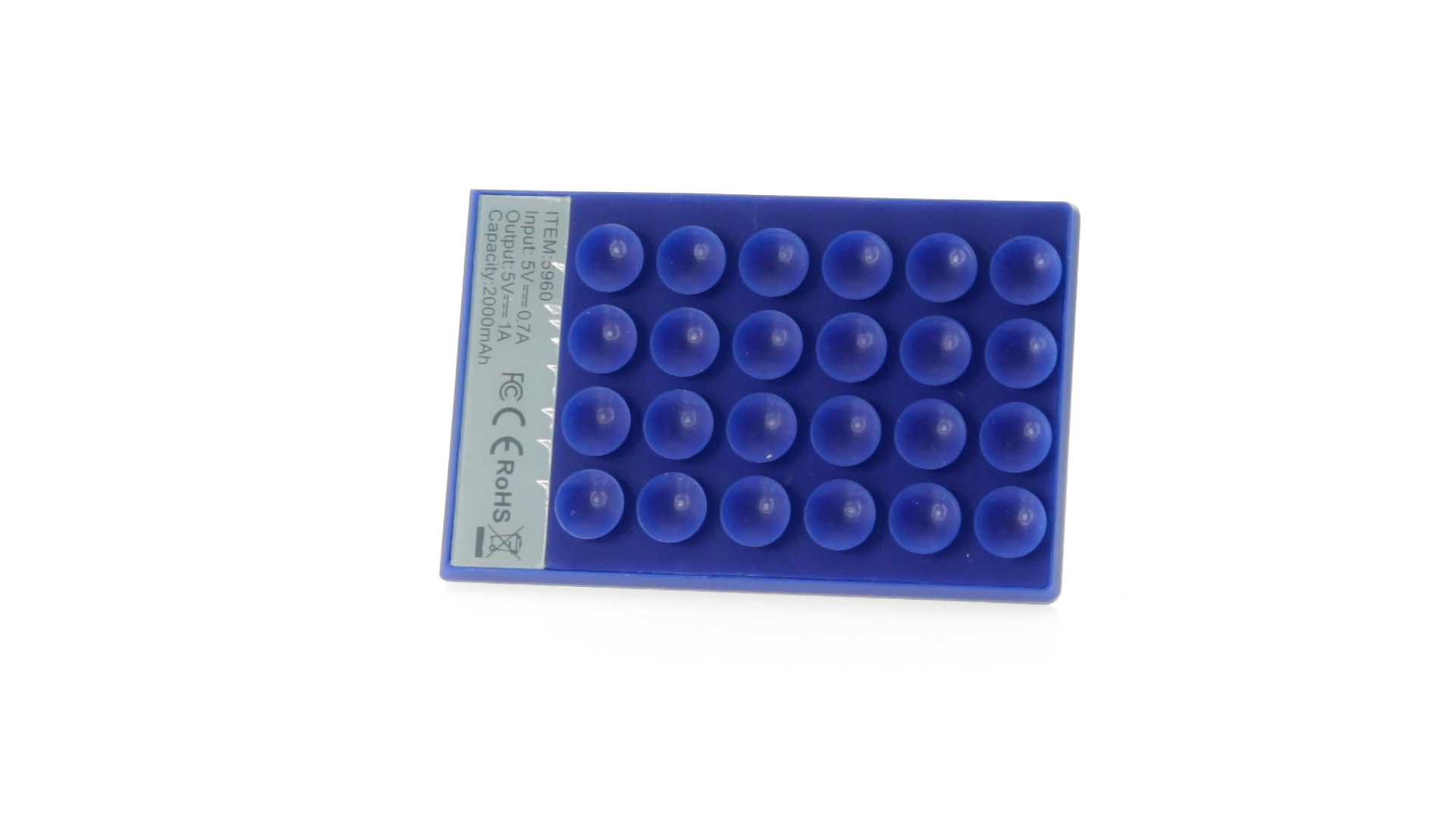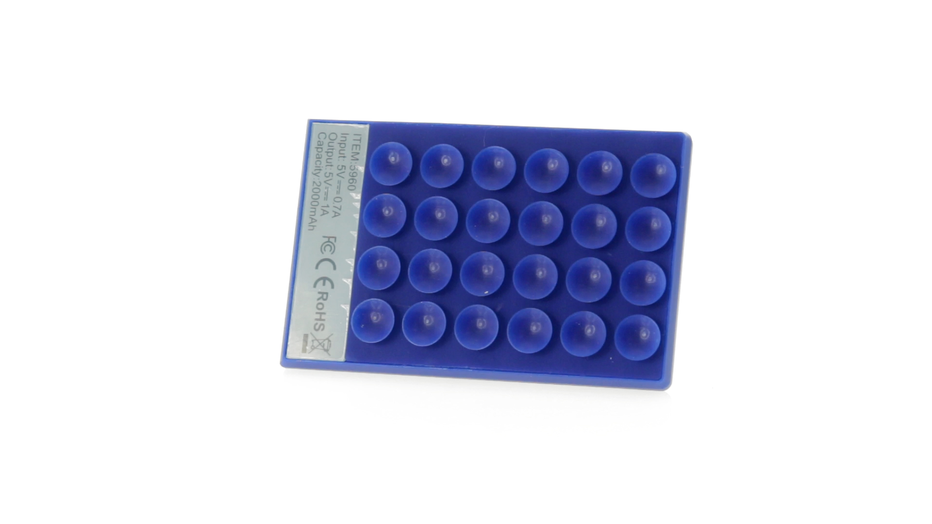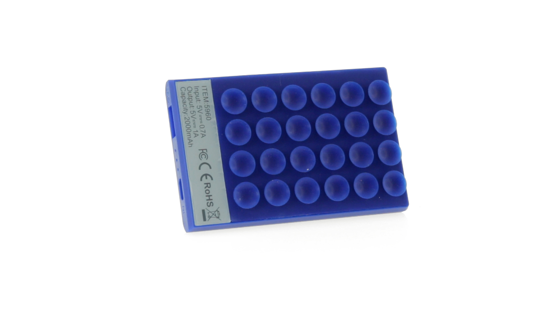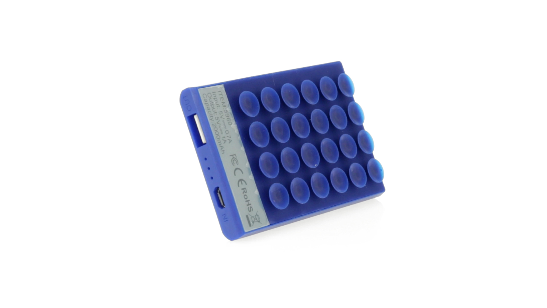 Externe Powerbank - 2.000 mAh - mit Saugnapf und Selfie-Ring/Halterung. Mit Anschlüssen für Micro-USB und USB-Eingang/-Ausgang. Ladestatusanzeige-LEDs, flaches gewölbtes Design und grosse Druckfläche. Präsentiert in einer attraktiven Designerbox. Die Kapazitäten aller unseren externen Zusatzbatterien sind real und beinhalten alle Batterien der Klasse A und nicht recycelte Batterien, mit einer Lebensdauer von mindestens 500 Ladezyklen und sind CE-konform. Darüber hinaus werden sie gemäss den RoHS-Normen und in Übereinstimmung mit den folgenden Sicherheitsanforderungen hergestellt: Überladeschutzsystem der Powerbank, vollständiger Entladungsschutz für eine längere Lebensdauer der Powerbank, verriegelungssystem zur Vermeidung von Kurzschlüssen, konstantes Ladungstransfersystem je nach Kapazität des Zielgeräts. nbsp
