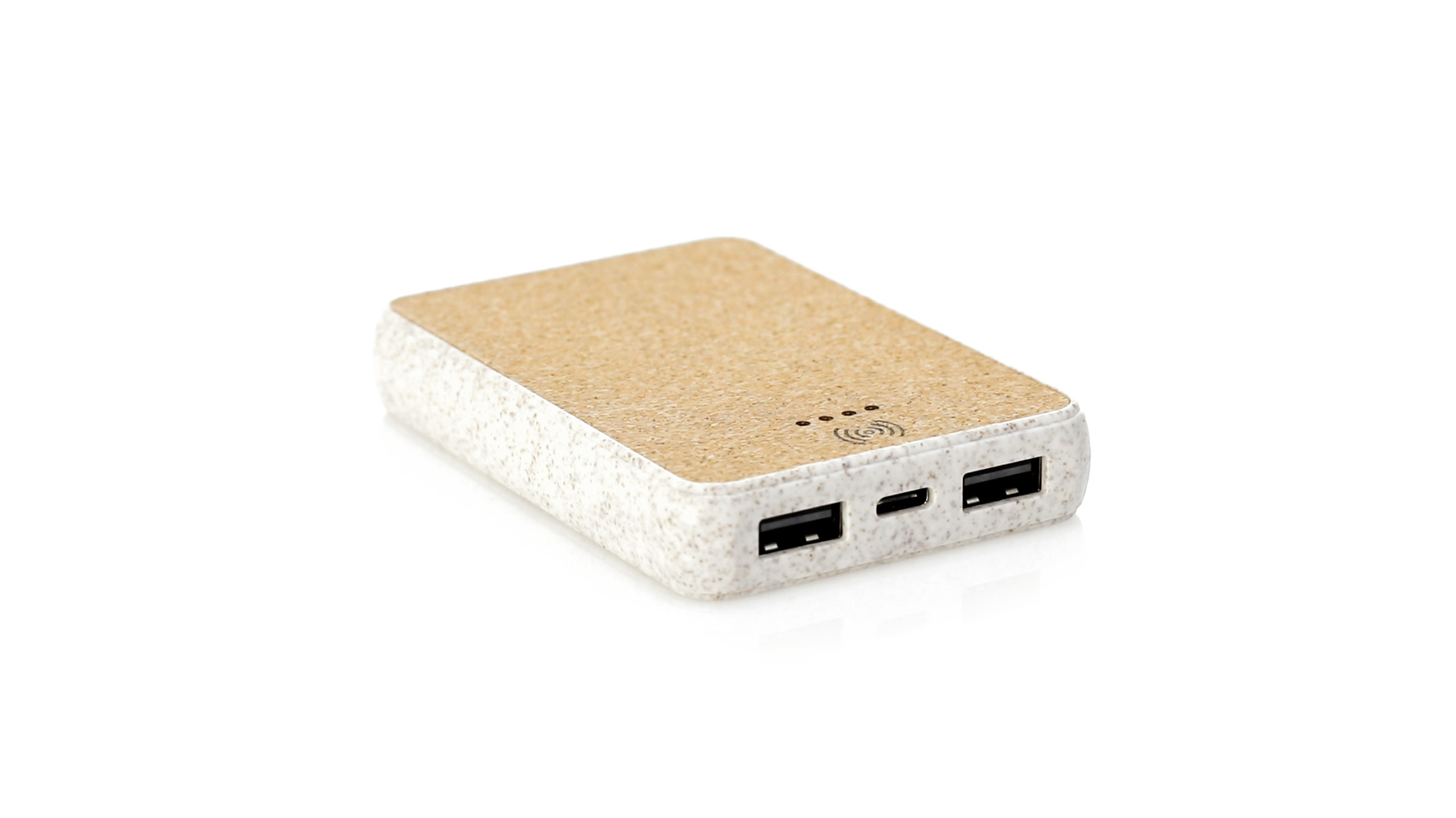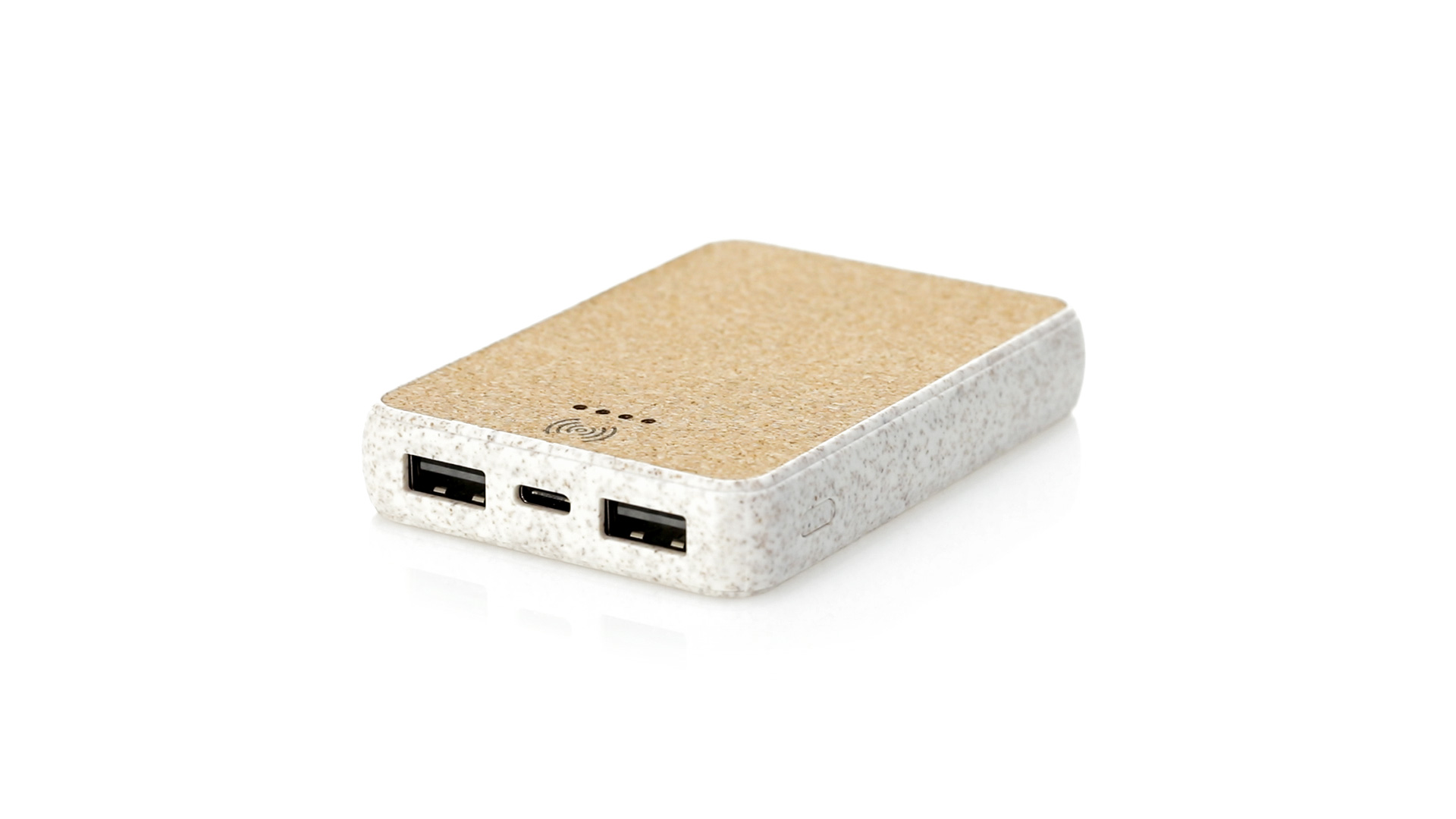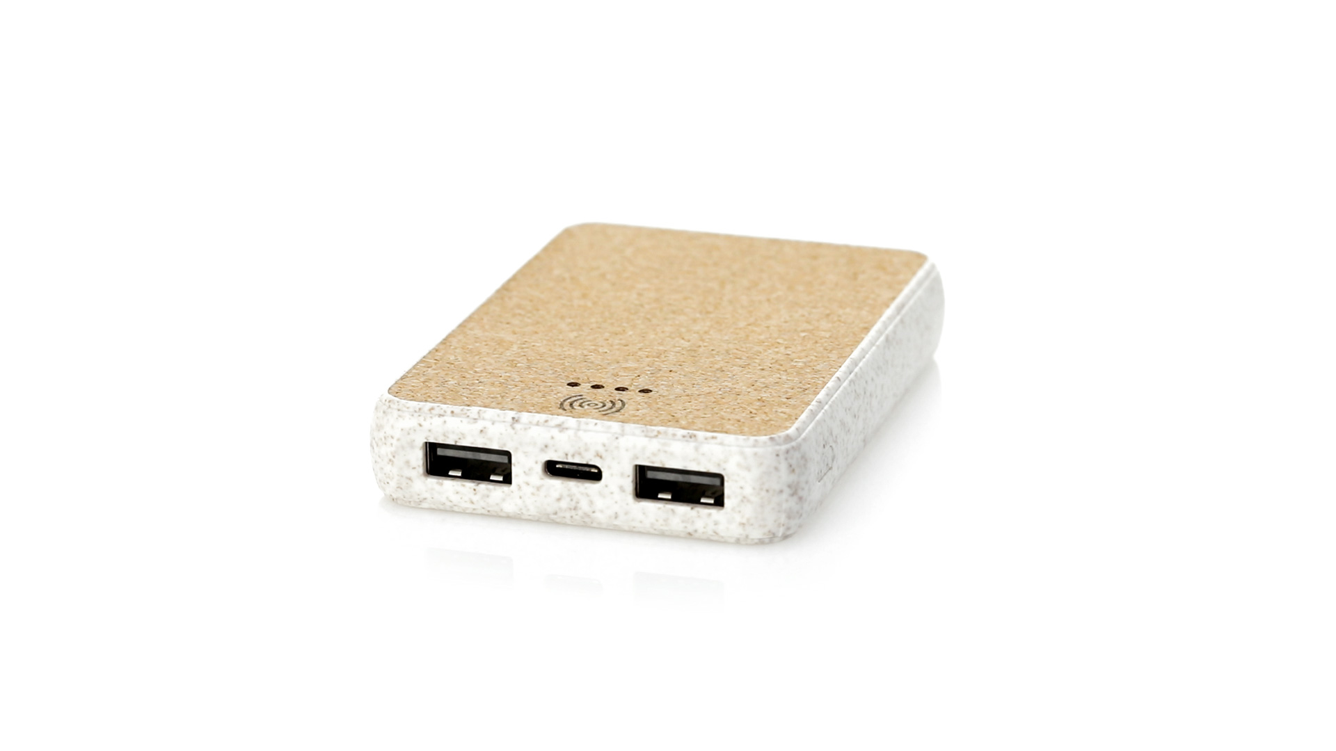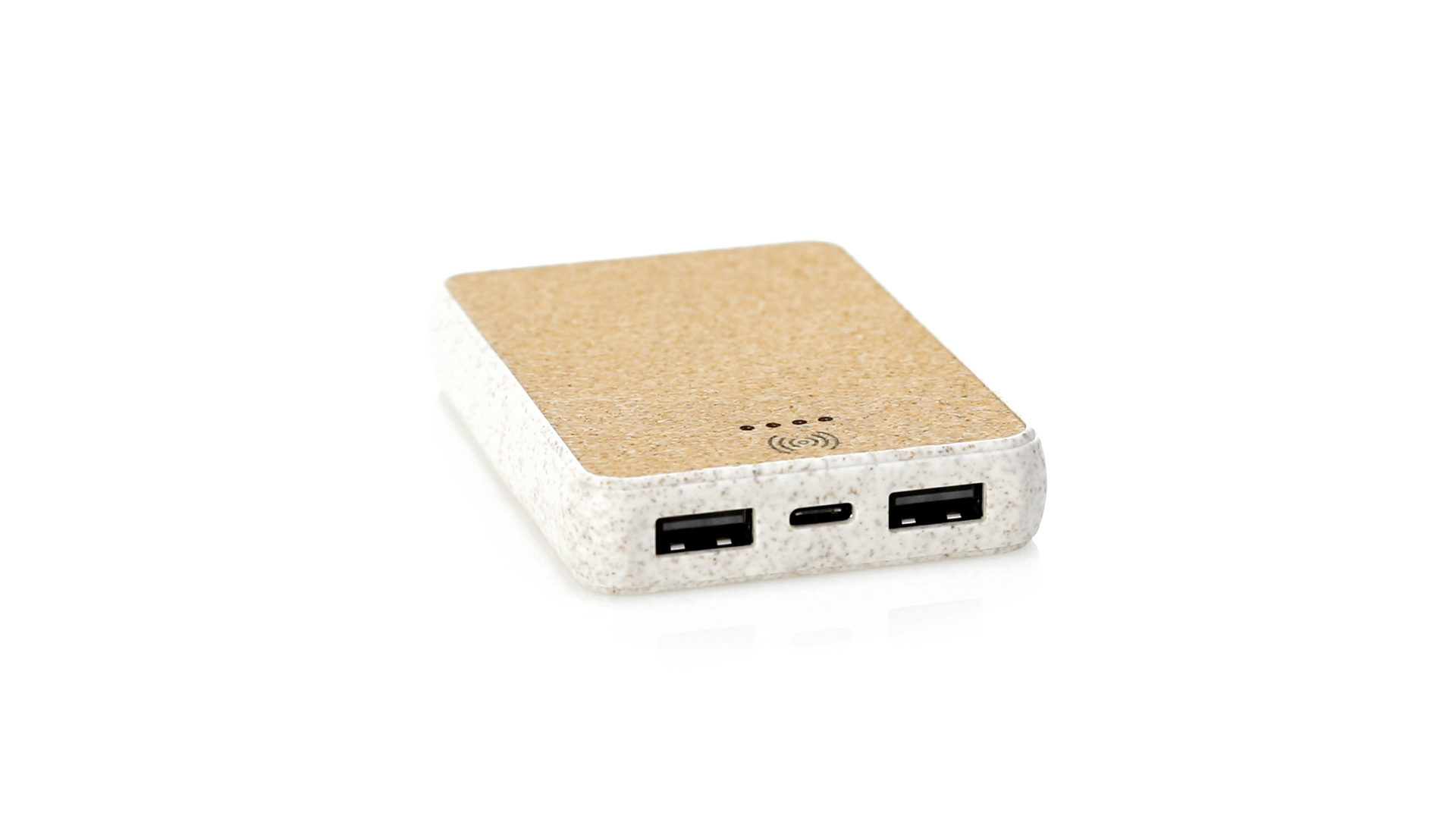 Externer Zusatzakku der Nature Line mit integriertem kabellosen 5W-Ladegerät. Gehäuse aus einer Kombination von Naturkork und Weizenrohrmaterialien. 5.000 mAh Kapazität und Ladezustandsanzeige. Doppelter USB-Ausgang und Typ-C-Eingang. Mit grosser Beschriftungsfläche und präsentiert in einer attraktiven Öko-Design-Box. Die Kapazitäten, die auf allen unseren externen Zusatzbatterien angegeben sind, sind real und beinhalten alle Batterien der Klasse A und nicht recycelt, mit einer Lebensdauer von mindestens 500 Ladezyklen und gemäss den CE-Normen. Darüber hinaus werden sie nach RoHS-Standards und unter Einhaltung der folgenden Sicherheitsanforderungen hergestellt: Überladeschutzsystem für Powerbank. Vollständiges Entladeschutzsystem für eine längere Lebensdauer der Powerbank. Verriegelungssystem zur Vermeidung von Kurzschlüssen. Konstantes Ladungstransfersystem, entsprechend der Kapazität des Zielgerätes.