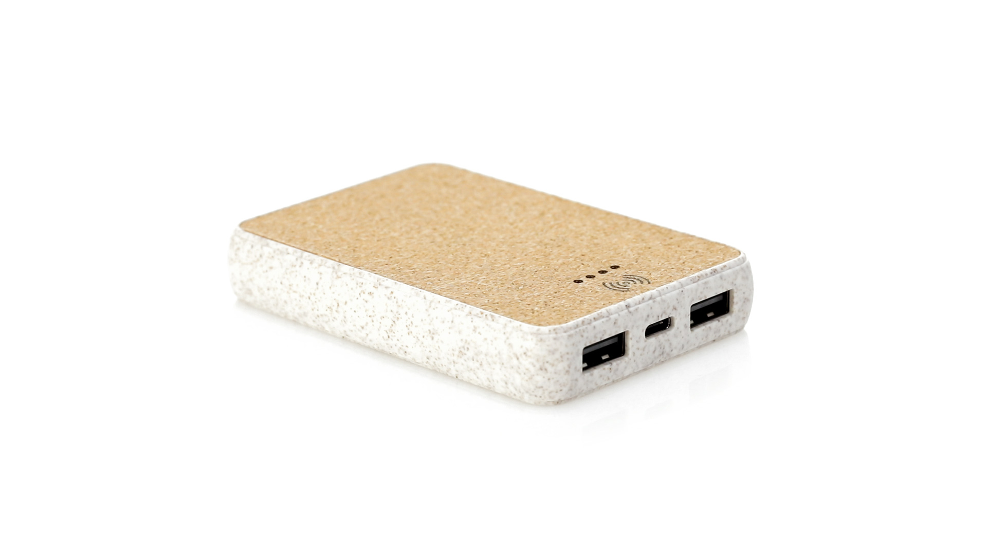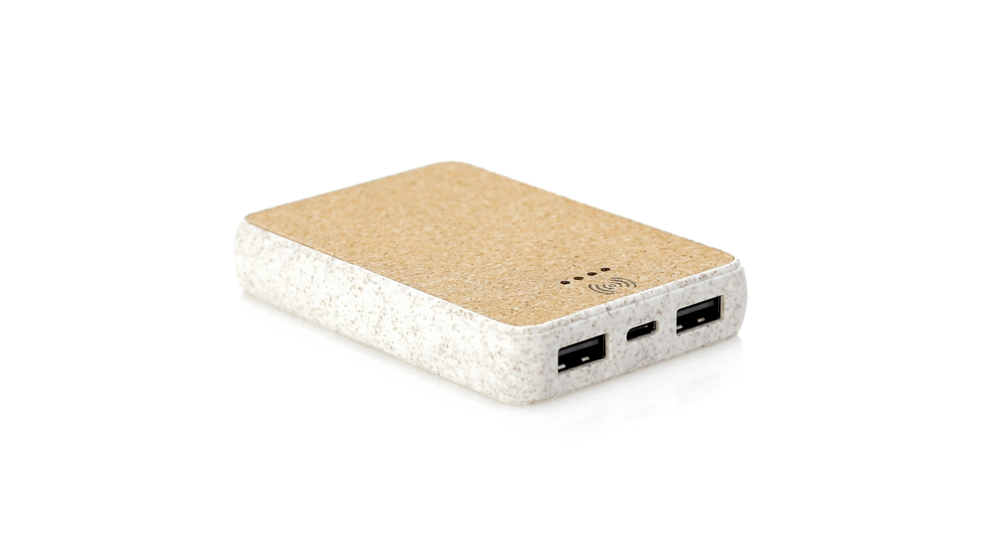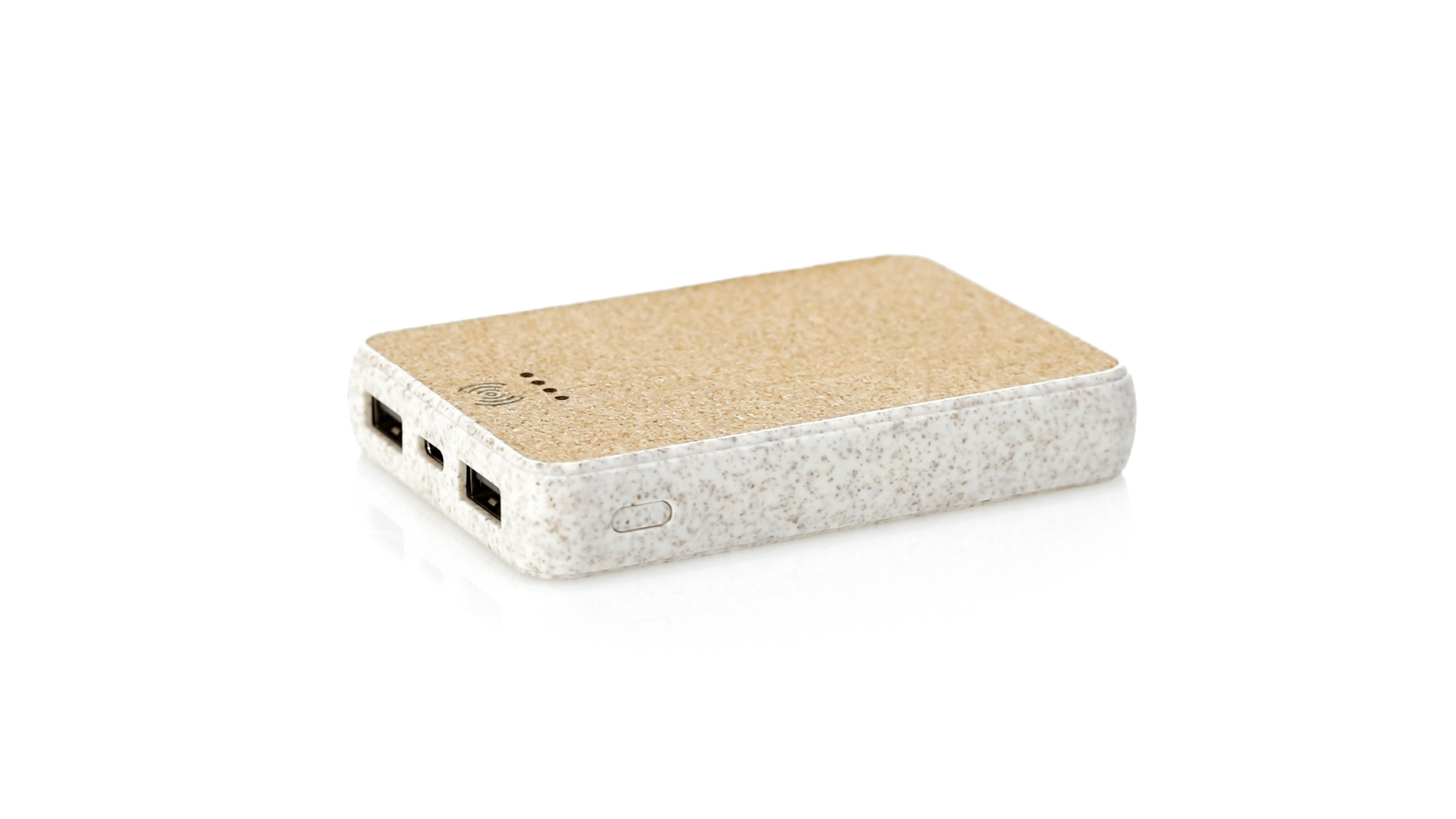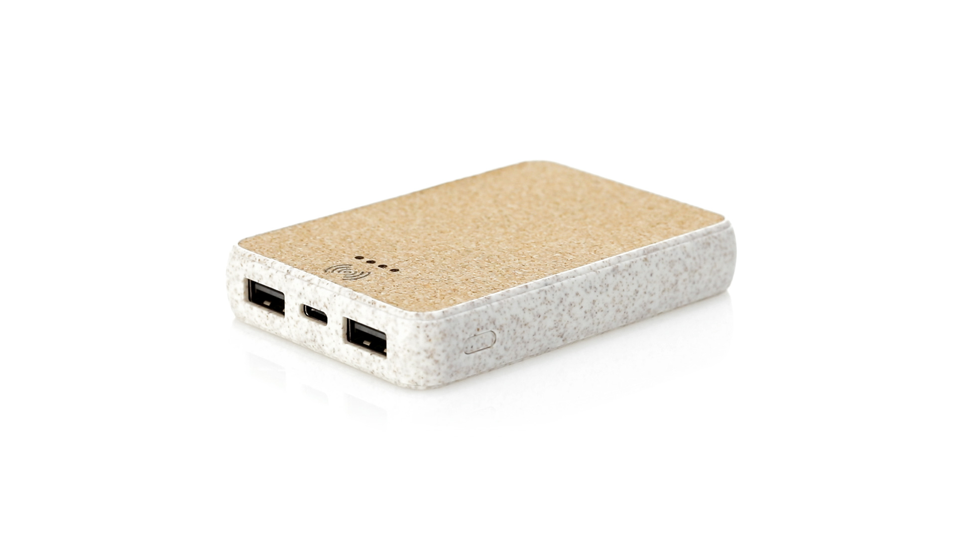 Externer Zusatzakku der Nature Line mit integriertem kabellosen 5W-Ladegerät. Gehäuse aus einer Kombination von Naturkork und Weizenrohrmaterialien. 5.000 mAh Kapazität und Ladezustandsanzeige. Doppelter USB-Ausgang und Typ-C-Eingang. Mit grosser Beschriftungsfläche und präsentiert in einer attraktiven Öko-Design-Box. Die Kapazitäten, die auf allen unseren externen Zusatzbatterien angegeben sind, sind real und beinhalten alle Batterien der Klasse A und nicht recycelt, mit einer Lebensdauer von mindestens 500 Ladezyklen und gemäss den CE-Normen. Darüber hinaus werden sie nach RoHS-Standards und unter Einhaltung der folgenden Sicherheitsanforderungen hergestellt: Überladeschutzsystem für Powerbank. Vollständiges Entladeschutzsystem für eine längere Lebensdauer der Powerbank. Verriegelungssystem zur Vermeidung von Kurzschlüssen. Konstantes Ladungstransfersystem, entsprechend der Kapazität des Zielgerätes.