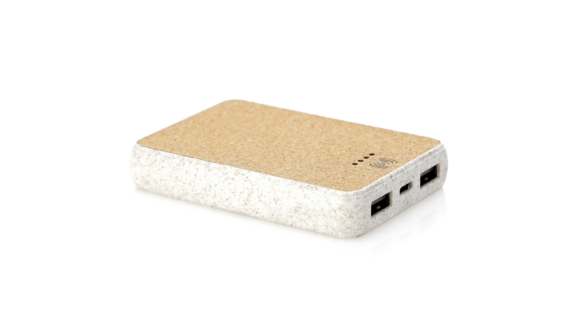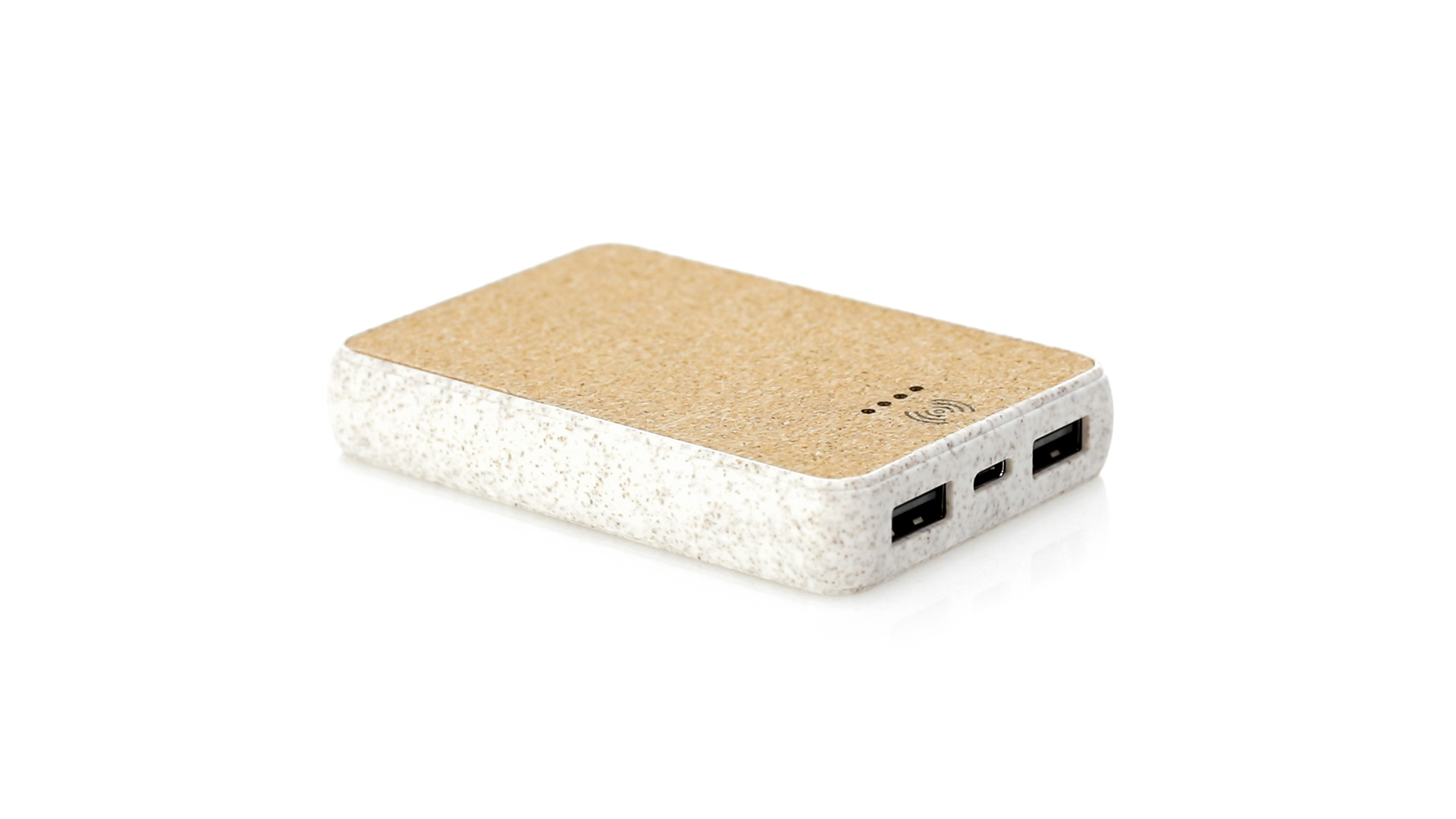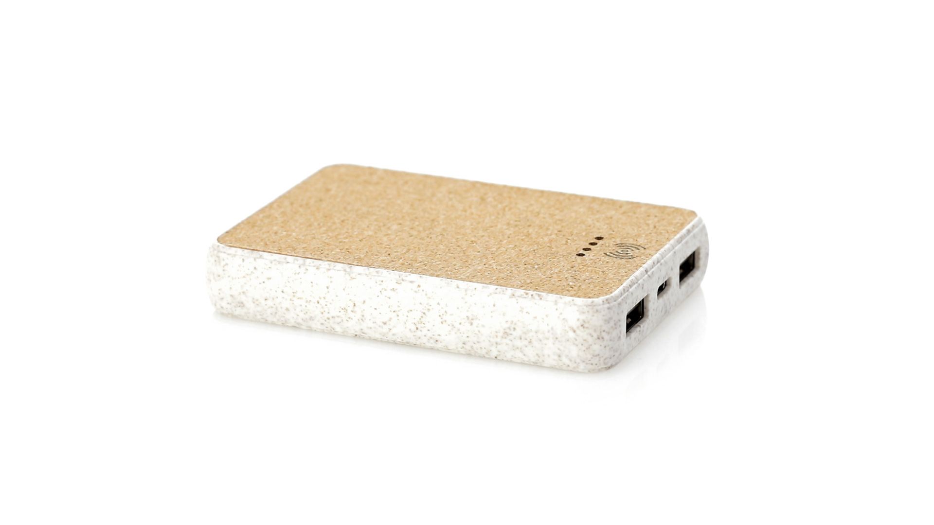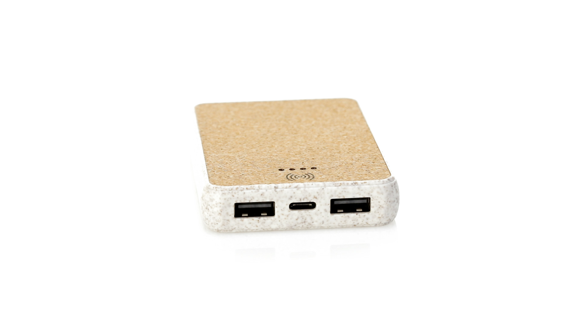 Externer Zusatzakku der Nature Line mit integriertem kabellosen 5W-Ladegerät. Gehäuse aus einer Kombination von Naturkork und Weizenrohrmaterialien. 5.000 mAh Kapazität und Ladezustandsanzeige. Doppelter USB-Ausgang und Typ-C-Eingang. Mit grosser Beschriftungsfläche und präsentiert in einer attraktiven Öko-Design-Box. Die Kapazitäten, die auf allen unseren externen Zusatzbatterien angegeben sind, sind real und beinhalten alle Batterien der Klasse A und nicht recycelt, mit einer Lebensdauer von mindestens 500 Ladezyklen und gemäss den CE-Normen. Darüber hinaus werden sie nach RoHS-Standards und unter Einhaltung der folgenden Sicherheitsanforderungen hergestellt: Überladeschutzsystem für Powerbank. Vollständiges Entladeschutzsystem für eine längere Lebensdauer der Powerbank. Verriegelungssystem zur Vermeidung von Kurzschlüssen. Konstantes Ladungstransfersystem, entsprechend der Kapazität des Zielgerätes.