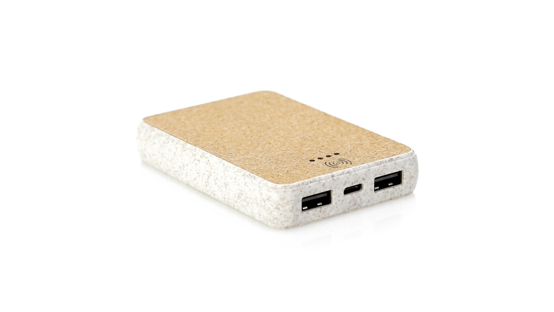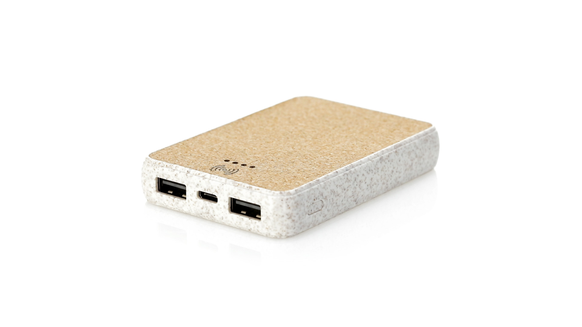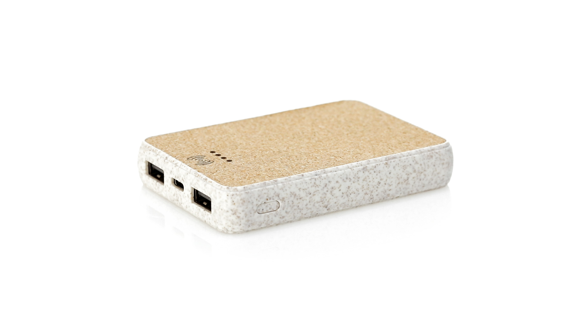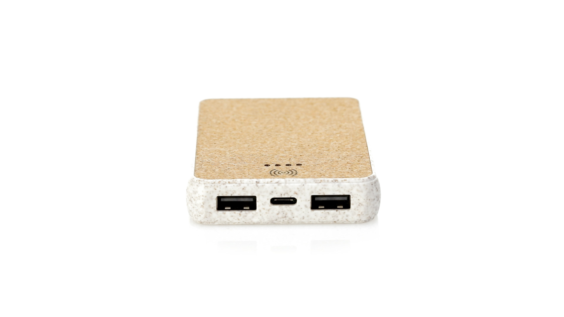 Externer Zusatzakku der Nature Line mit integriertem kabellosen 5W-Ladegerät. Gehäuse aus einer Kombination von Naturkork und Weizenrohrmaterialien. 5.000 mAh Kapazität und Ladezustandsanzeige. Doppelter USB-Ausgang und Typ-C-Eingang. Mit grosser Beschriftungsfläche und präsentiert in einer attraktiven Öko-Design-Box. Die Kapazitäten, die auf allen unseren externen Zusatzbatterien angegeben sind, sind real und beinhalten alle Batterien der Klasse A und nicht recycelt, mit einer Lebensdauer von mindestens 500 Ladezyklen und gemäss den CE-Normen. Darüber hinaus werden sie nach RoHS-Standards und unter Einhaltung der folgenden Sicherheitsanforderungen hergestellt: Überladeschutzsystem für Powerbank. Vollständiges Entladeschutzsystem für eine längere Lebensdauer der Powerbank. Verriegelungssystem zur Vermeidung von Kurzschlüssen. Konstantes Ladungstransfersystem, entsprechend der Kapazität des Zielgerätes.
