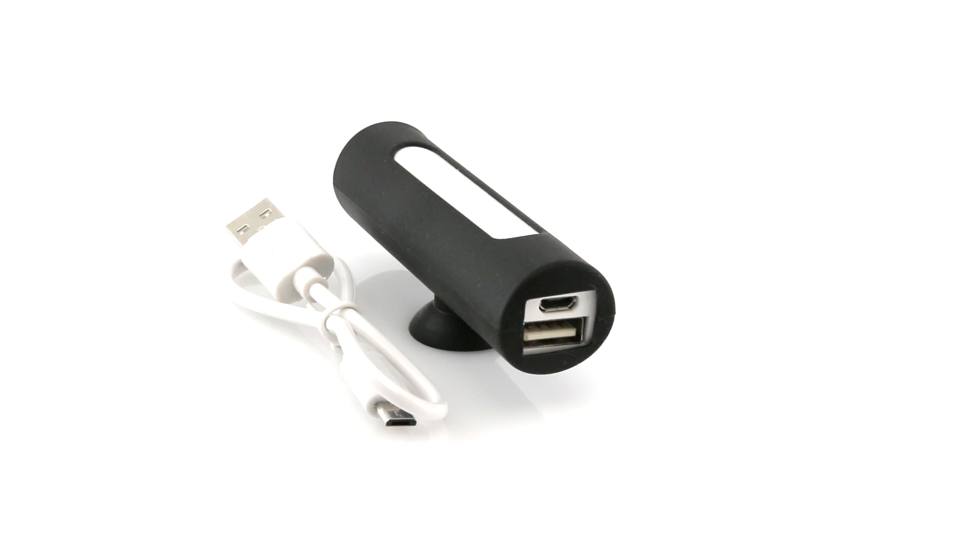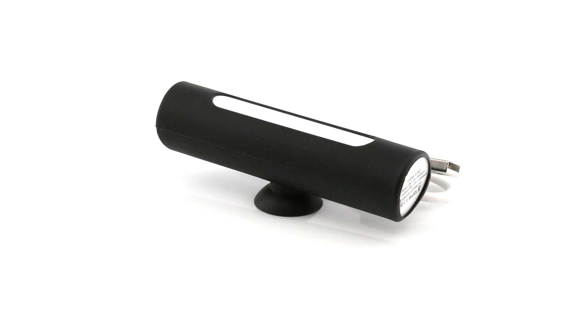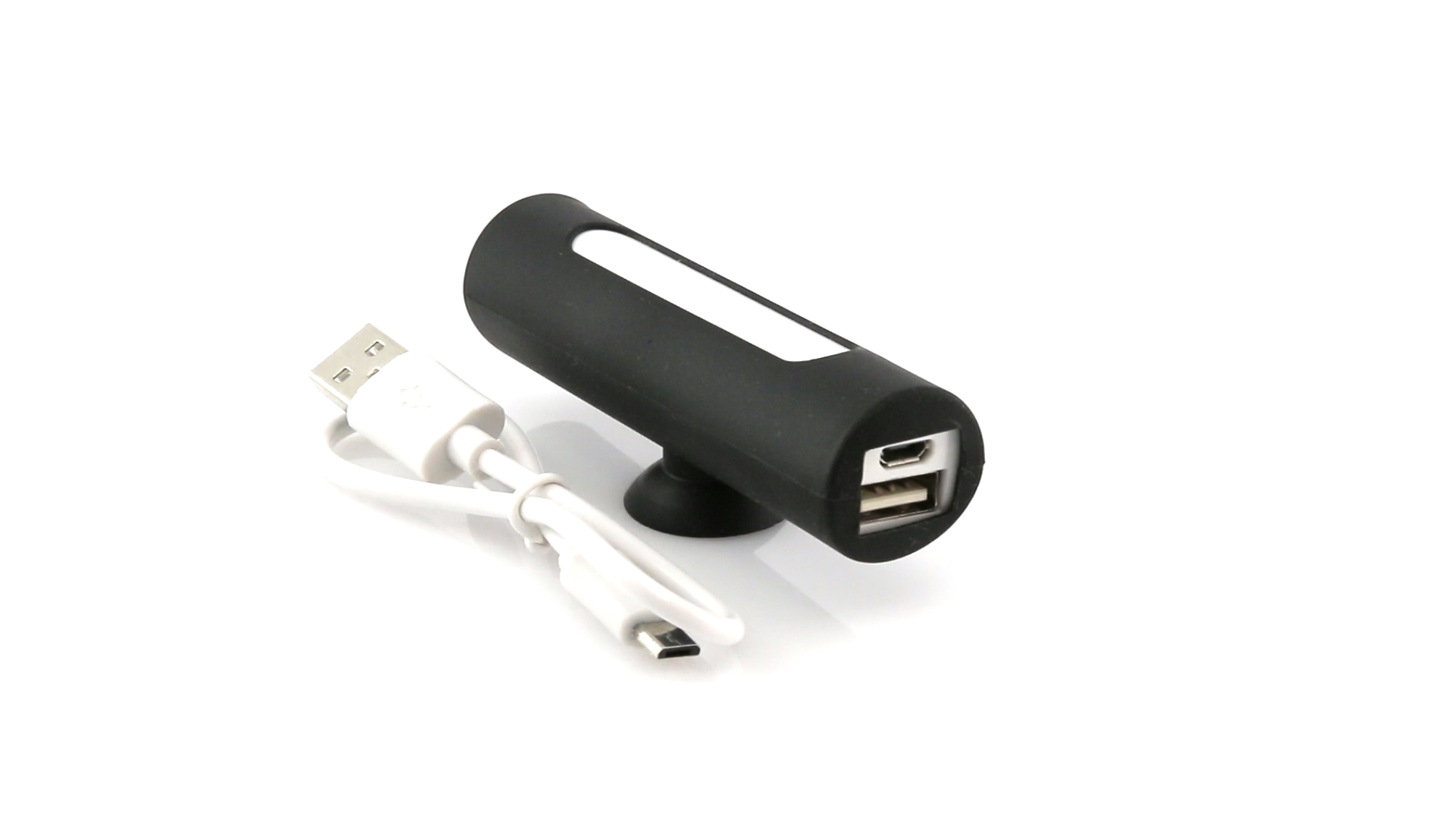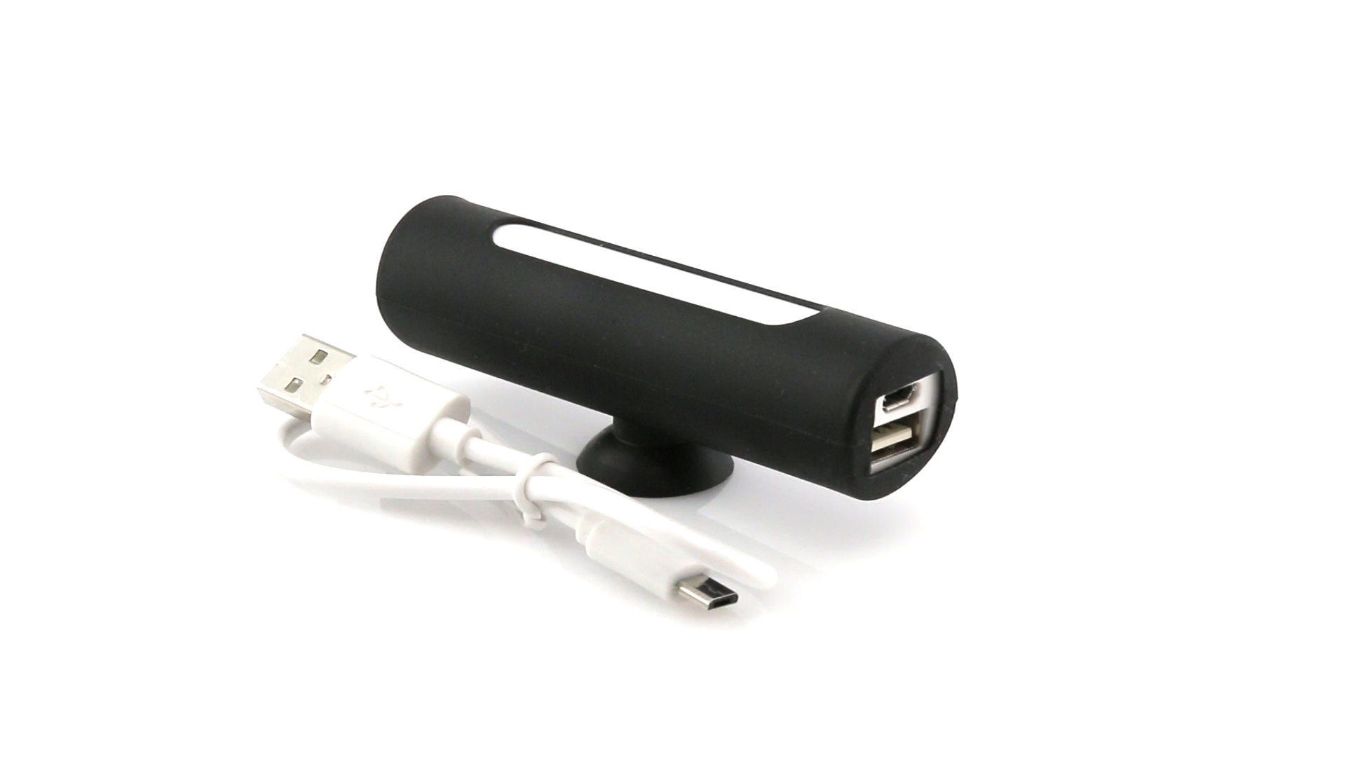 Zweifarbiger externer Akku mit 2.200 mAh Ladekapazität. Mit zylinderförmigen Körper aus Gummi und Saugnapf für die Befestigung an der Rückseite des Smartphones, durch den die Batterie auch gleichermassen als Smartphone-Ständer dient. Mit Micro-USB-Kabel und Kunststoff-Druckfläche auf der Vorderseite - besonders geeignet für Tampondruck. Präsentiert in einer attraktiven Designbox.