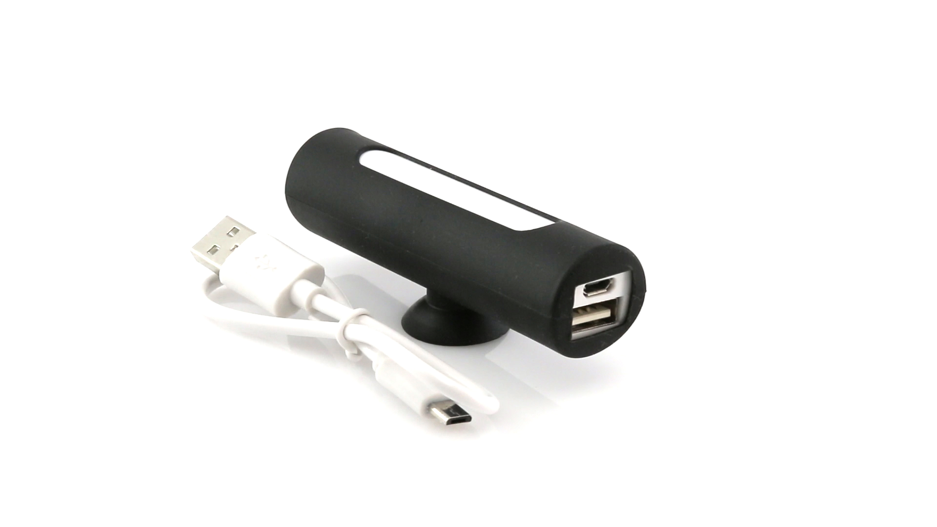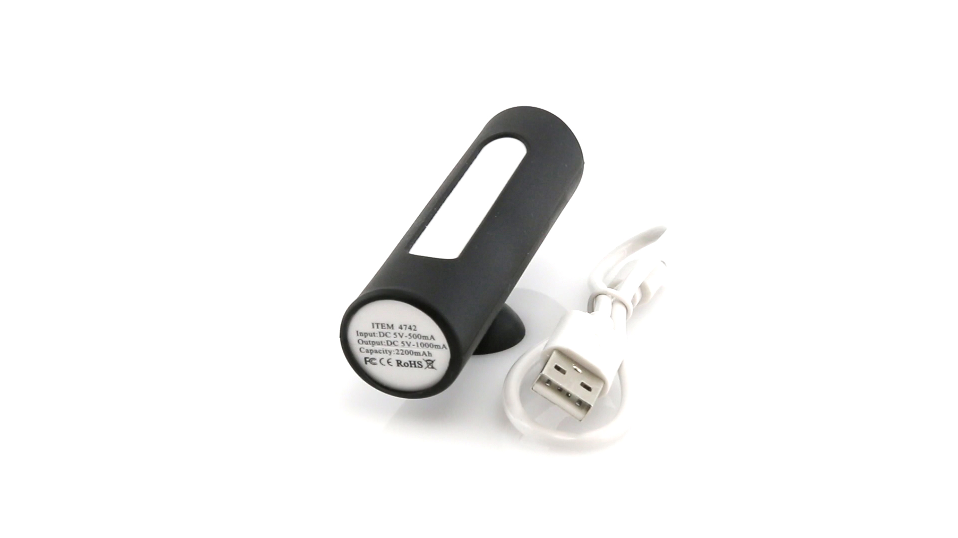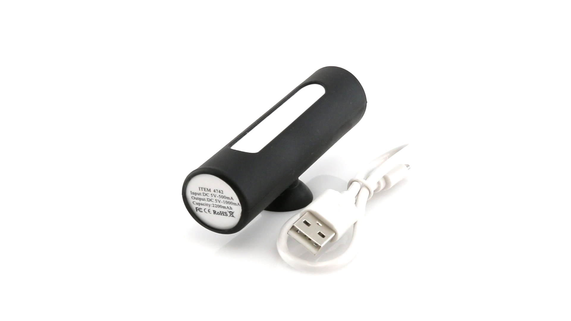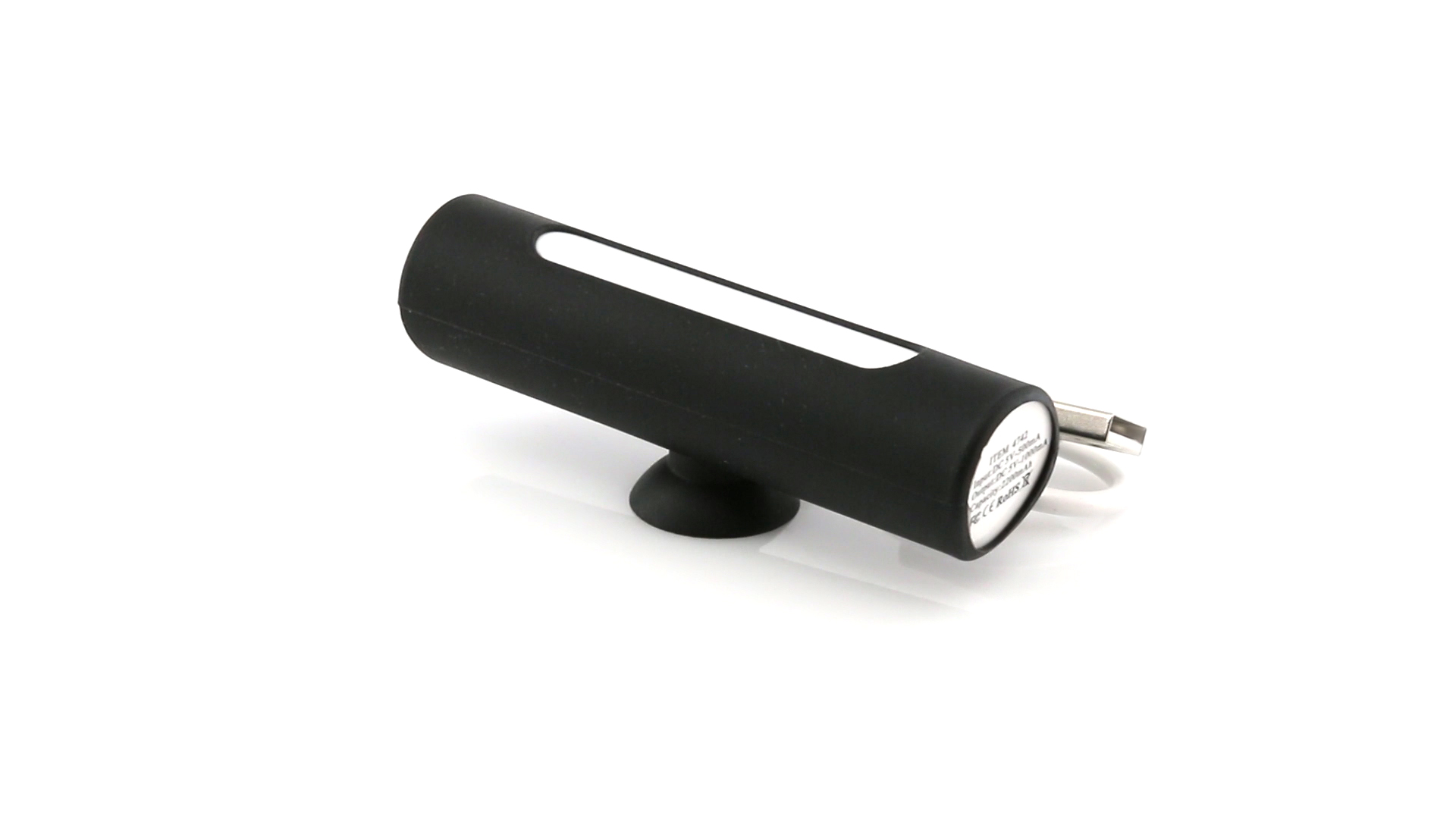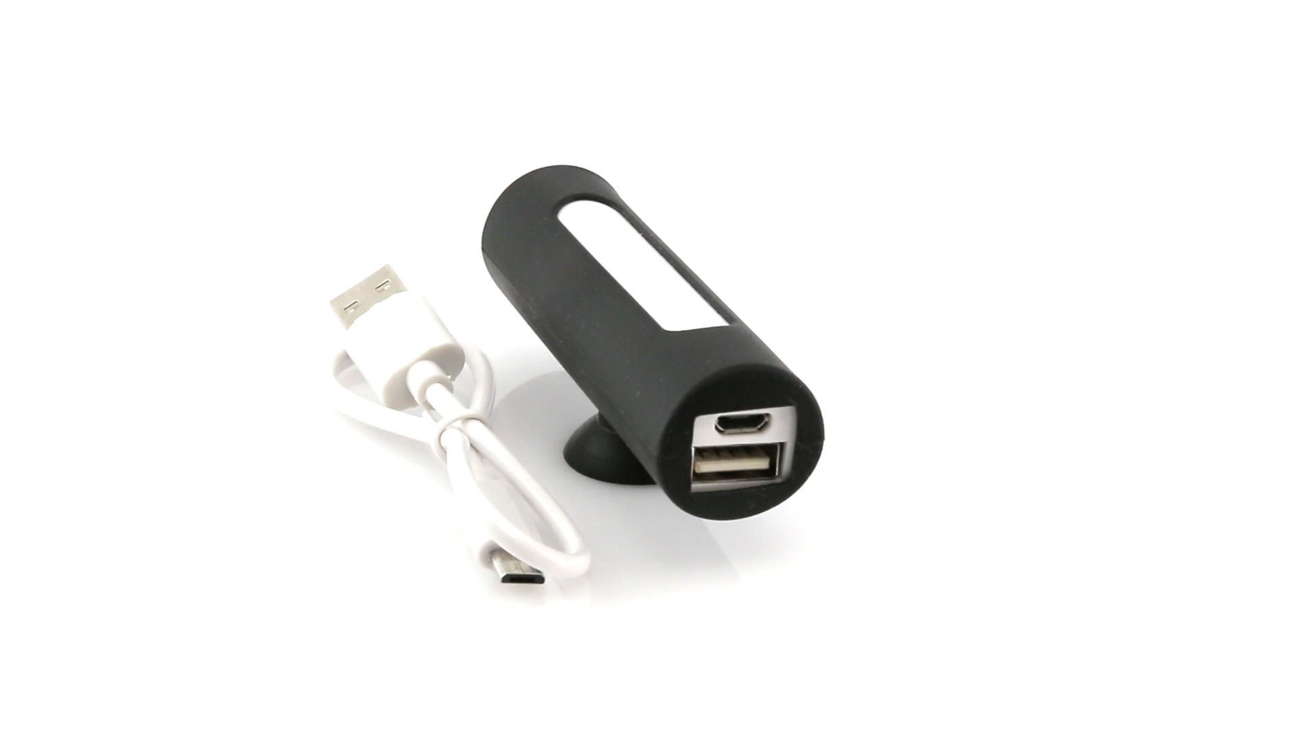 Zweifarbiger externer Akku mit 2.200 mAh Ladekapazität. Mit zylinderförmigen Körper aus Gummi und Saugnapf für die Befestigung an der Rückseite des Smartphones, durch den die Batterie auch gleichermassen als Smartphone-Ständer dient. Mit Micro-USB-Kabel und Kunststoff-Druckfläche auf der Vorderseite - besonders geeignet für Tampondruck. Präsentiert in einer attraktiven Designbox.