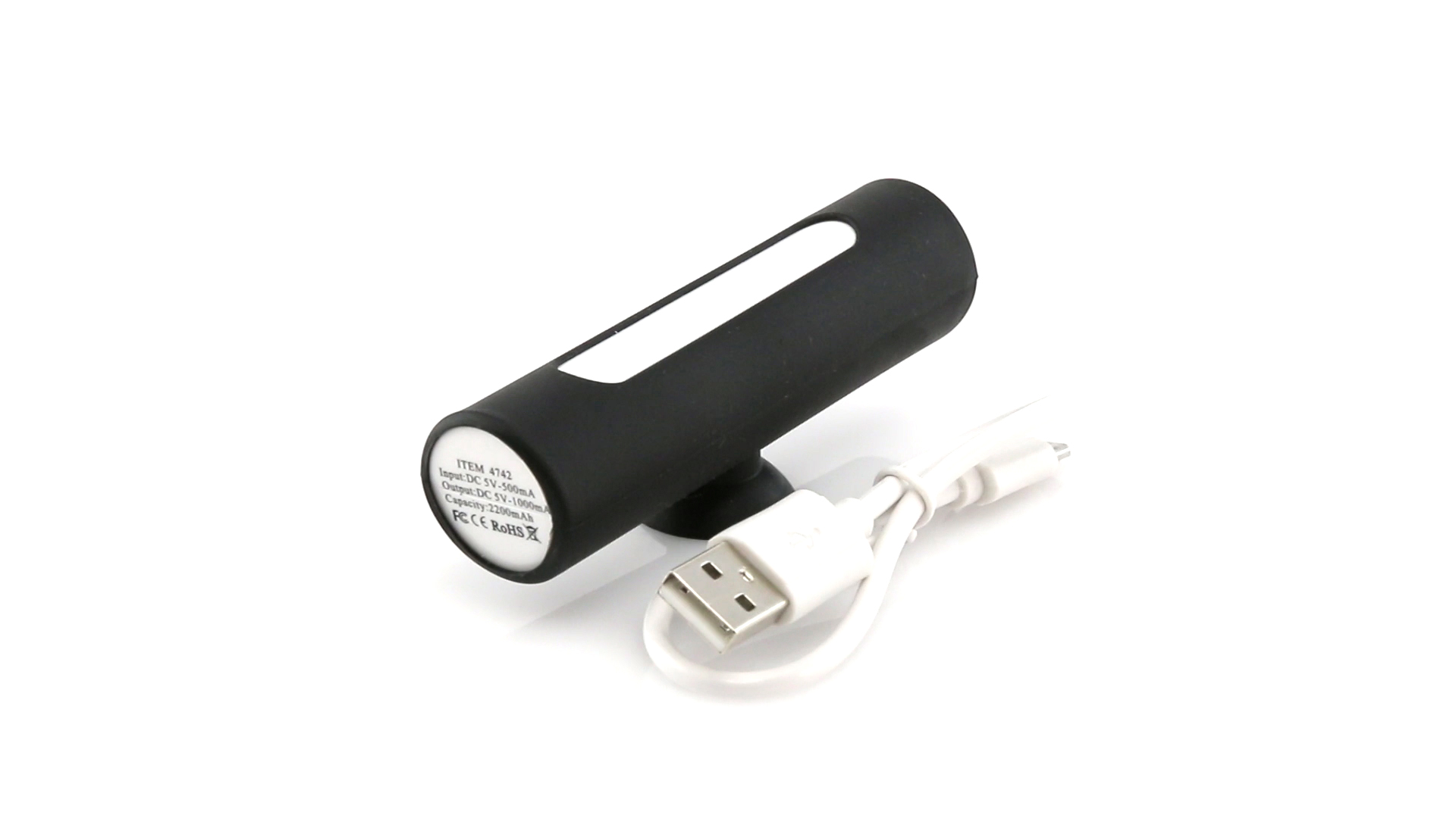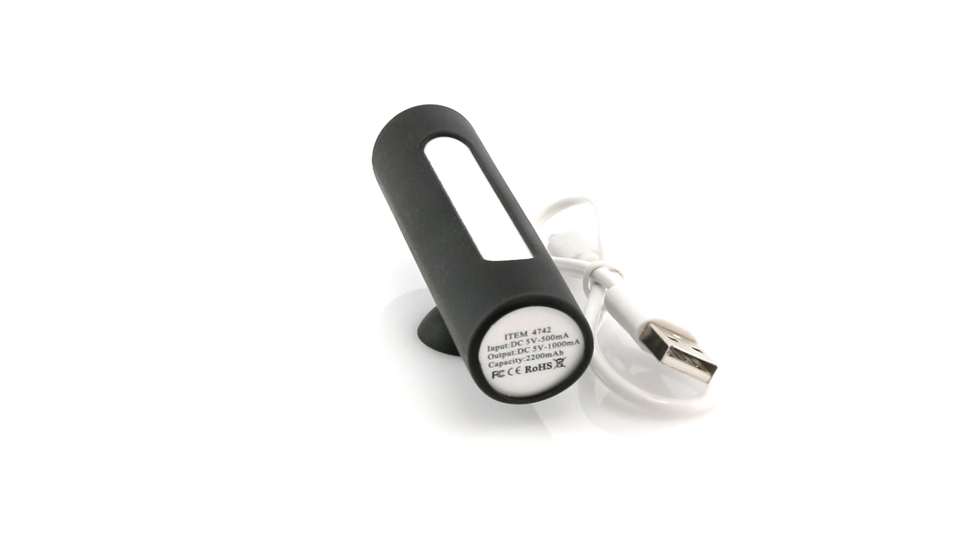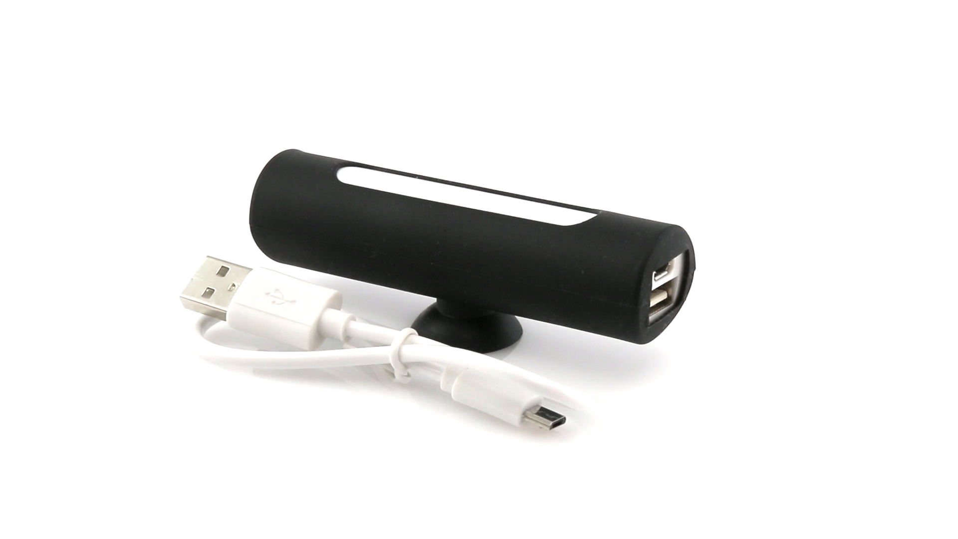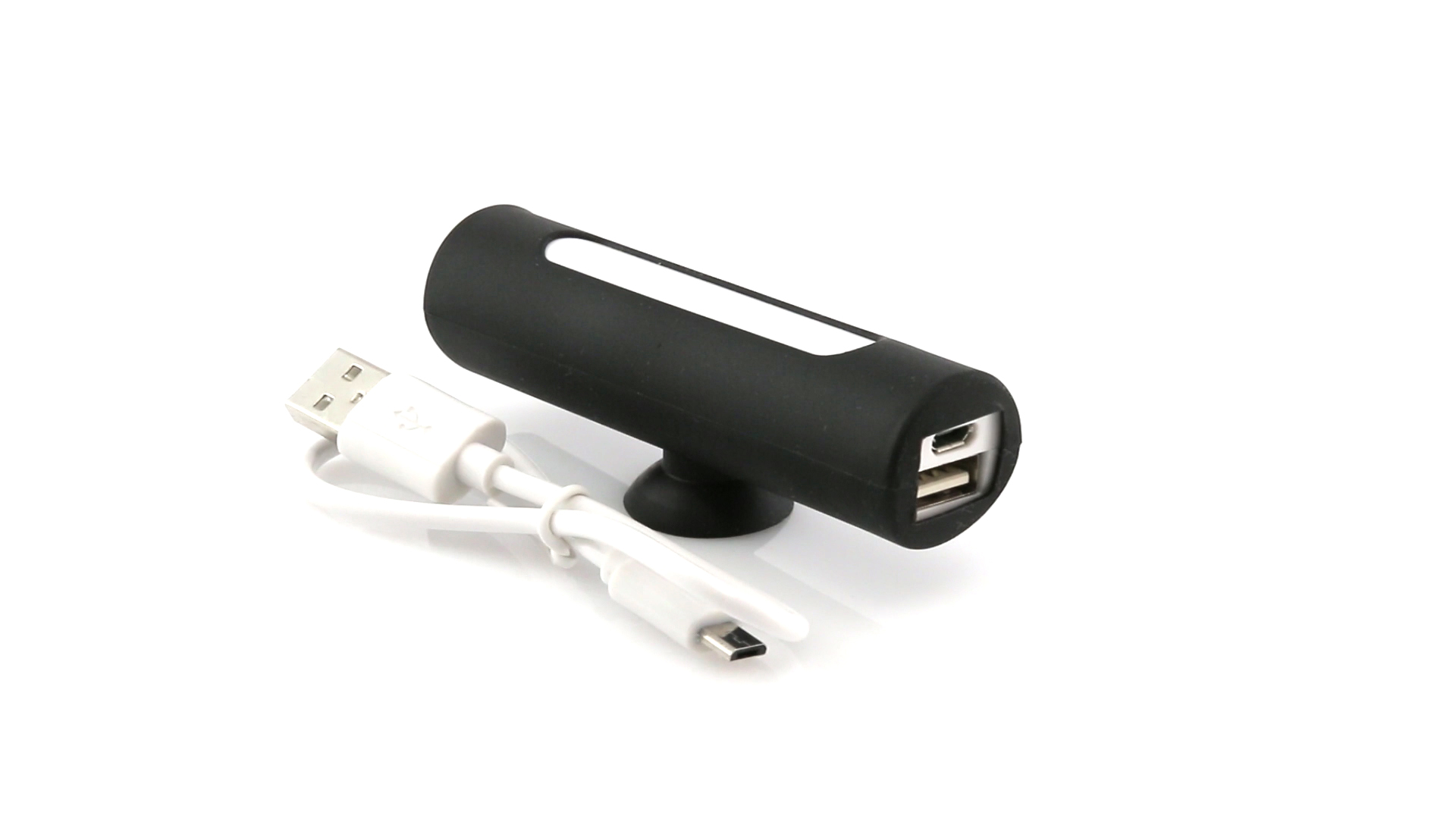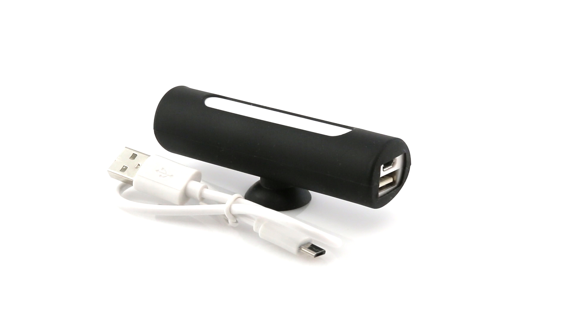 Zweifarbiger externer Akku mit 2.200 mAh Ladekapazität. Mit zylinderförmigen Körper aus Gummi und Saugnapf für die Befestigung an der Rückseite des Smartphones, durch den die Batterie auch gleichermassen als Smartphone-Ständer dient. Mit Micro-USB-Kabel und Kunststoff-Druckfläche auf der Vorderseite - besonders geeignet für Tampondruck. Präsentiert in einer attraktiven Designbox.