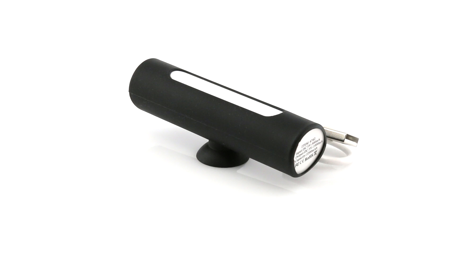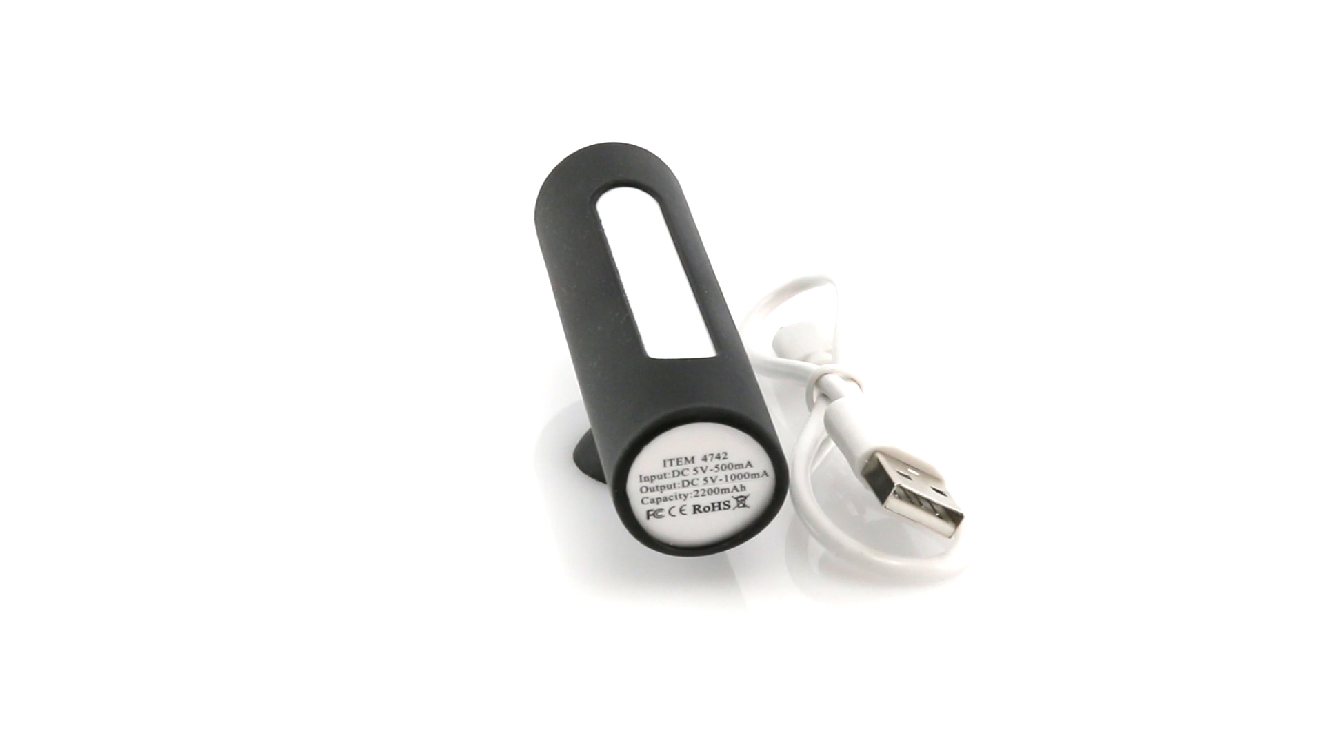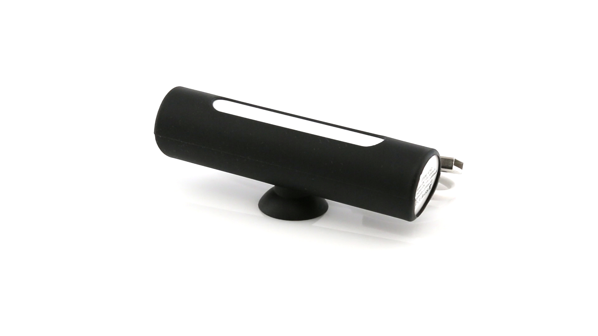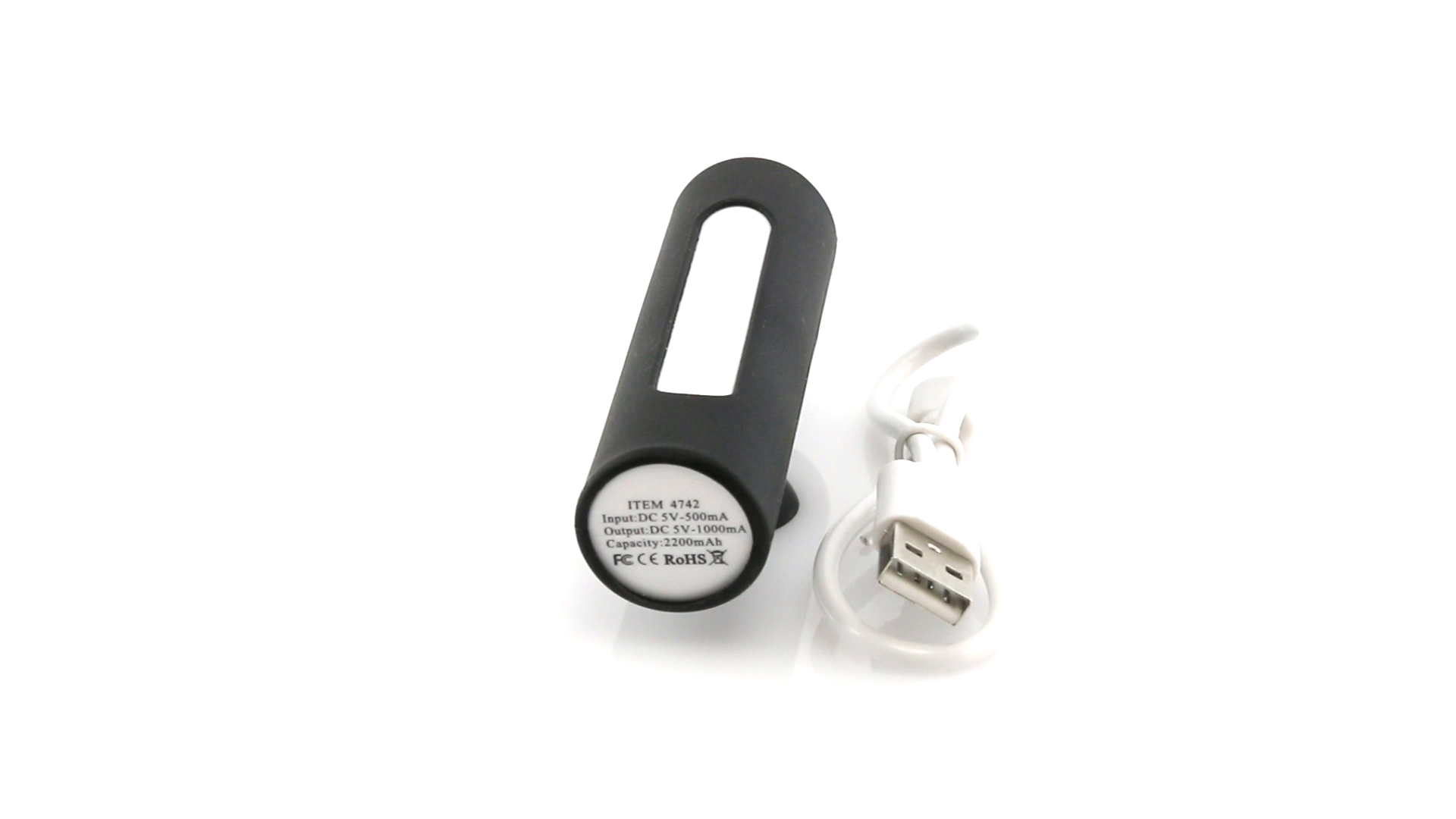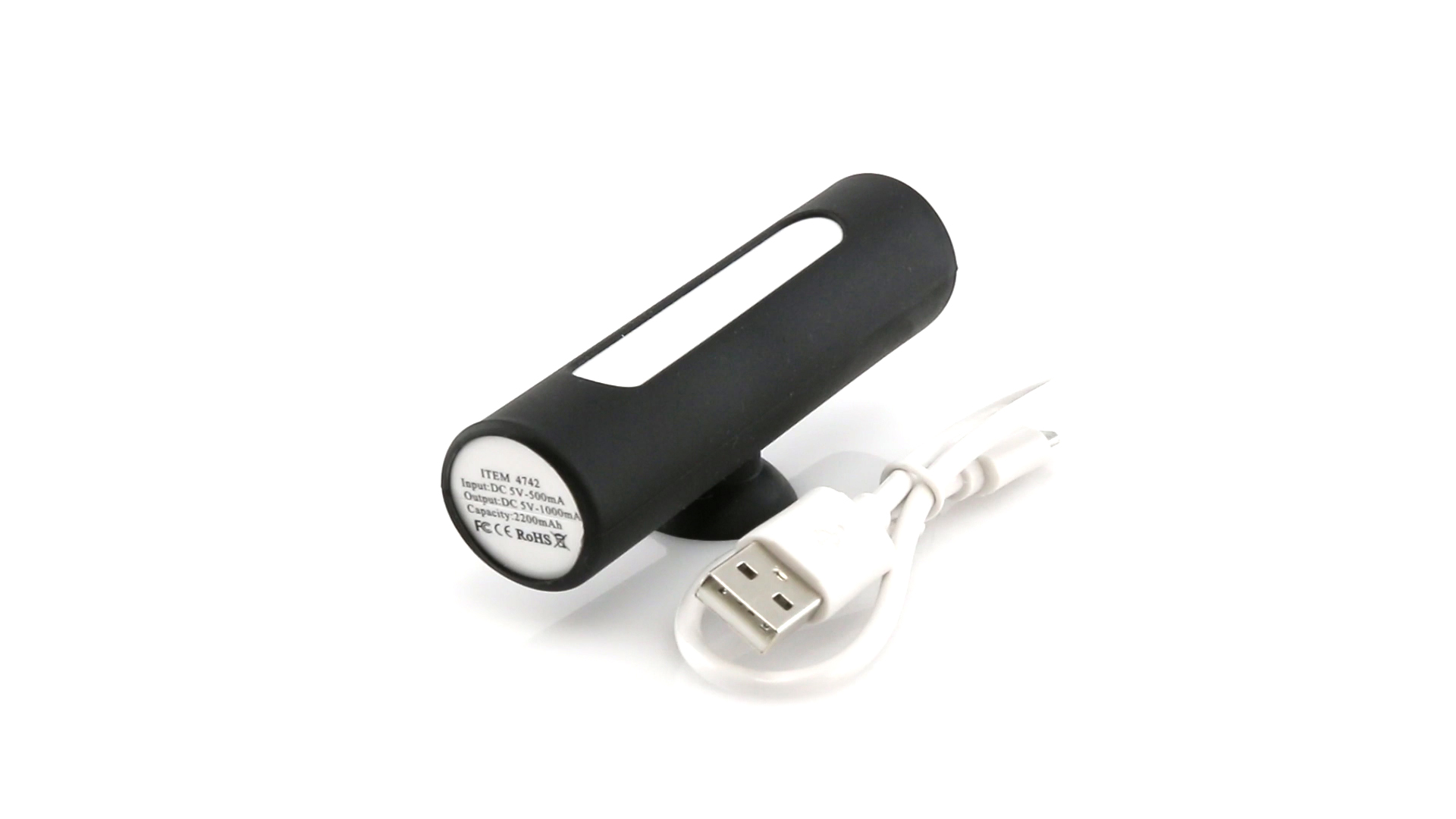 Zweifarbiger externer Akku mit 2.200 mAh Ladekapazität. Mit zylinderförmigen Körper aus Gummi und Saugnapf für die Befestigung an der Rückseite des Smartphones, durch den die Batterie auch gleichermassen als Smartphone-Ständer dient. Mit Micro-USB-Kabel und Kunststoff-Druckfläche auf der Vorderseite - besonders geeignet für Tampondruck. Präsentiert in einer attraktiven Designbox.