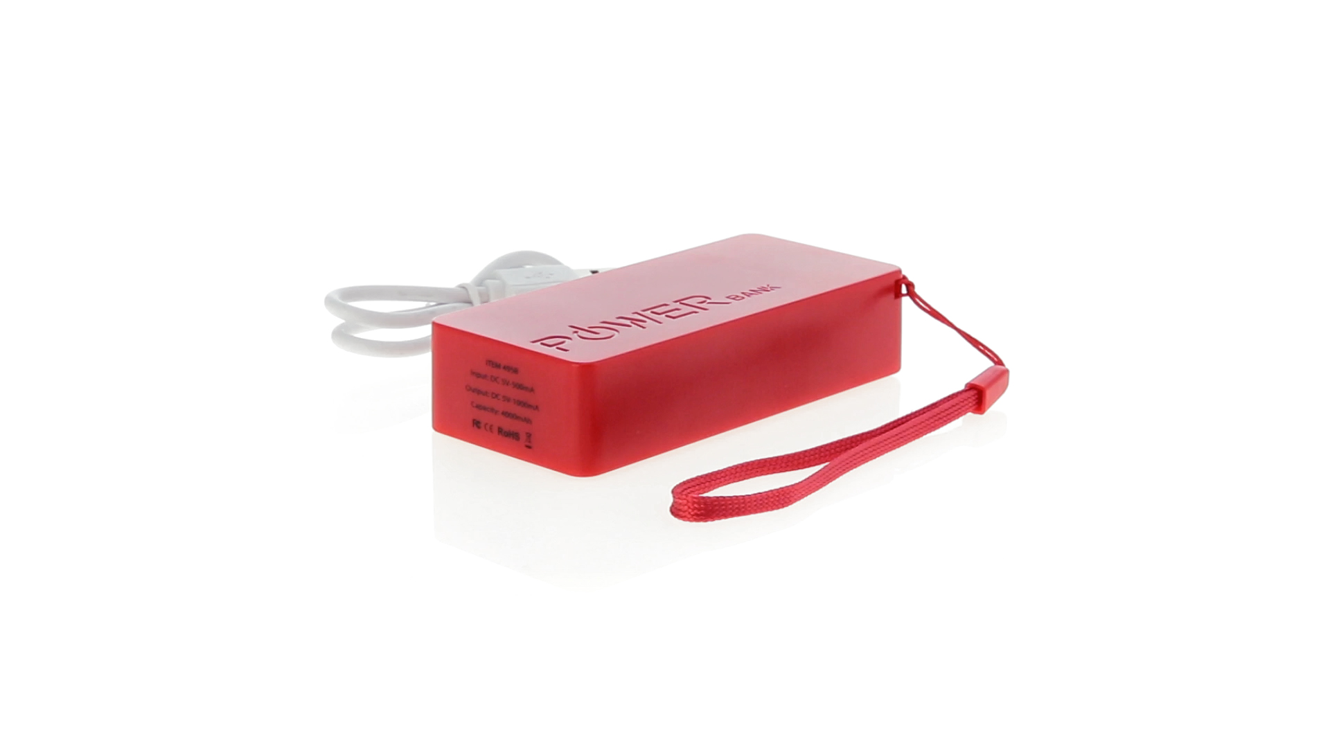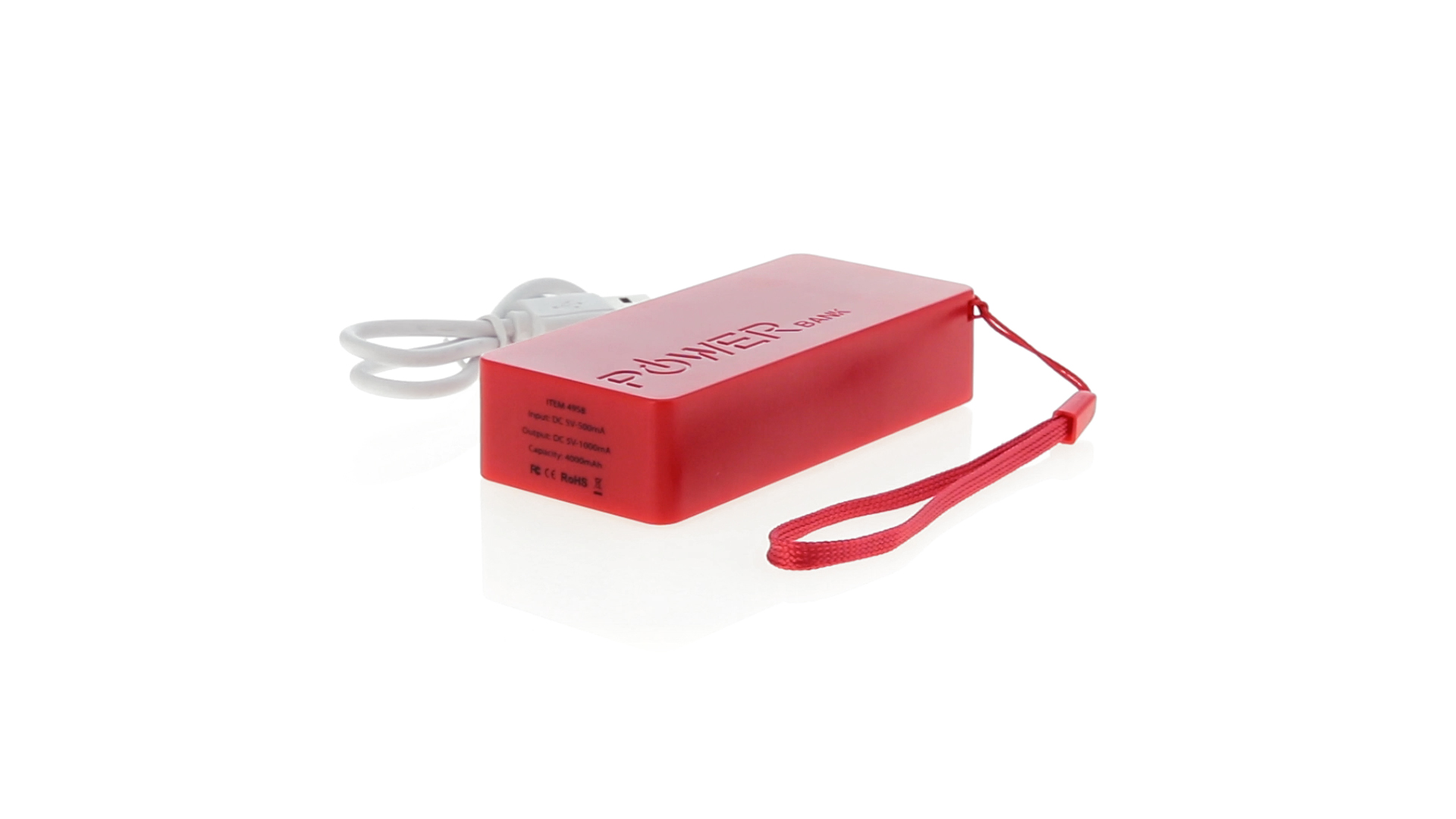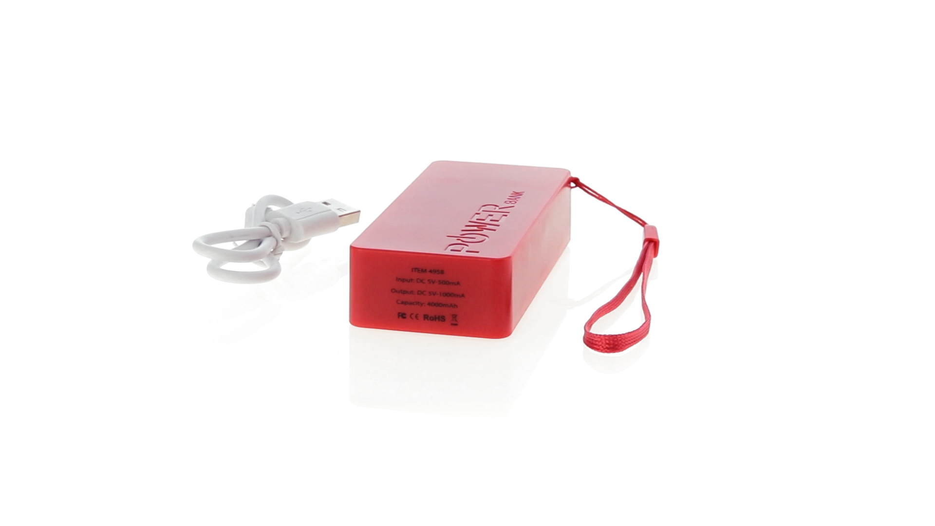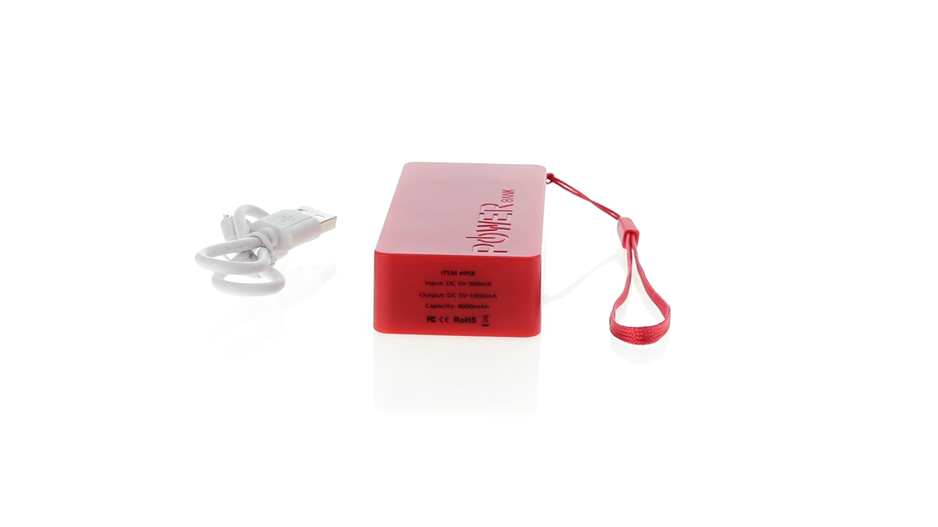 Viereckiger externer Akku mit hoher Ladekapazität von 4.000 mAh in auffälligen Farben. Mit Micro-USB-Kabel und farblich passender Trageschlaufe sowie grosser Druckfläche. Präsentiert in einer attraktiven Designbox.