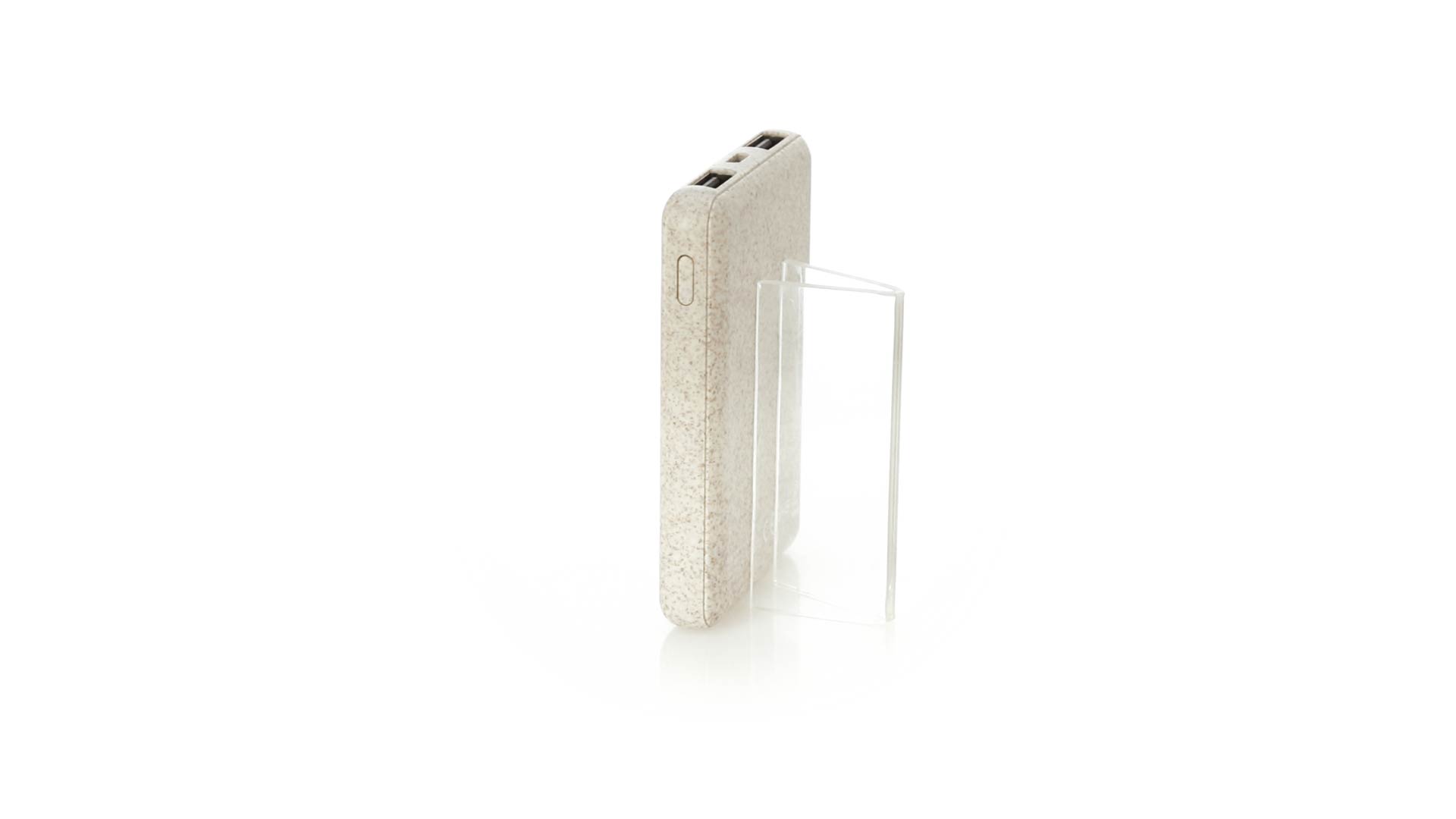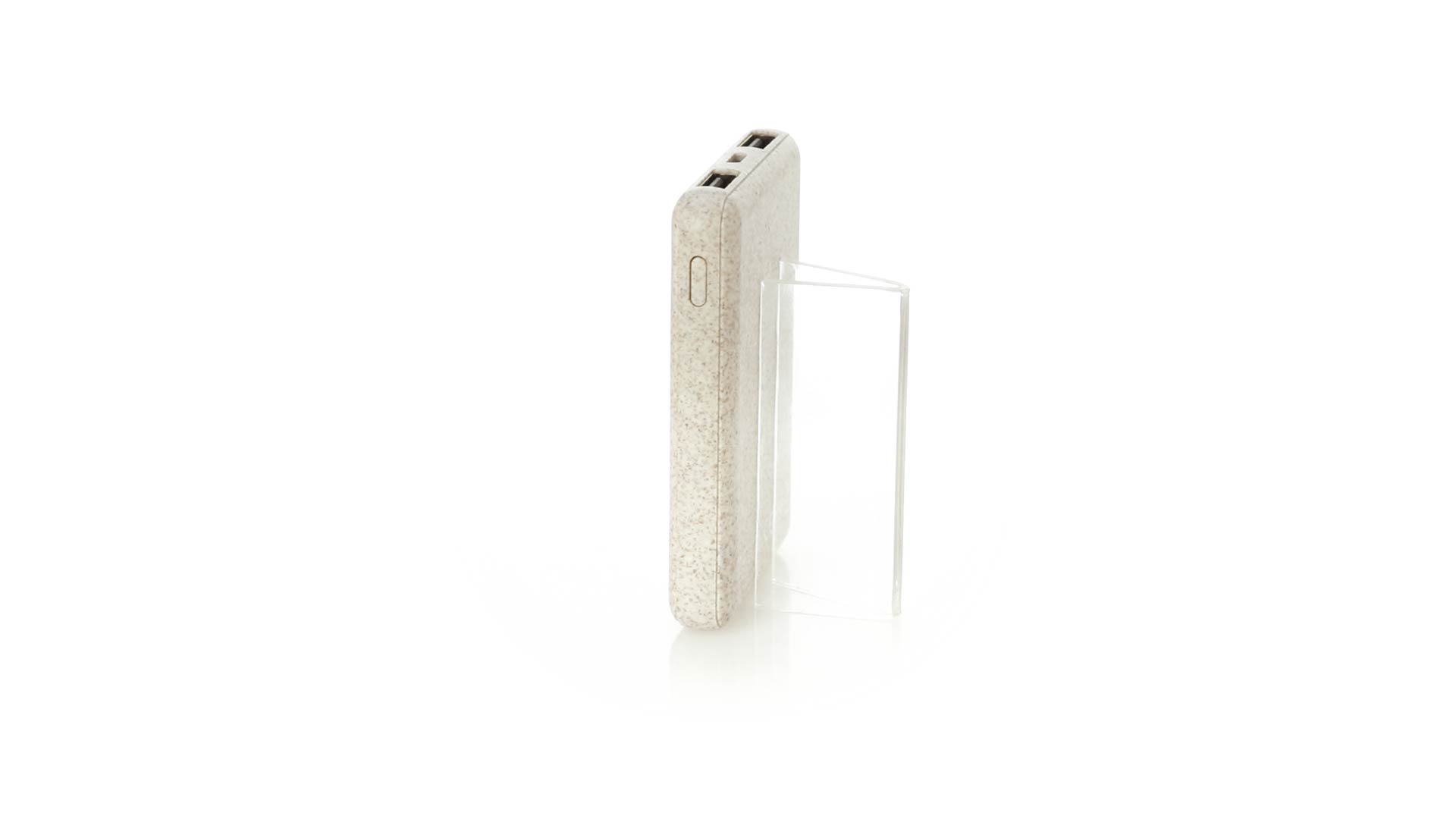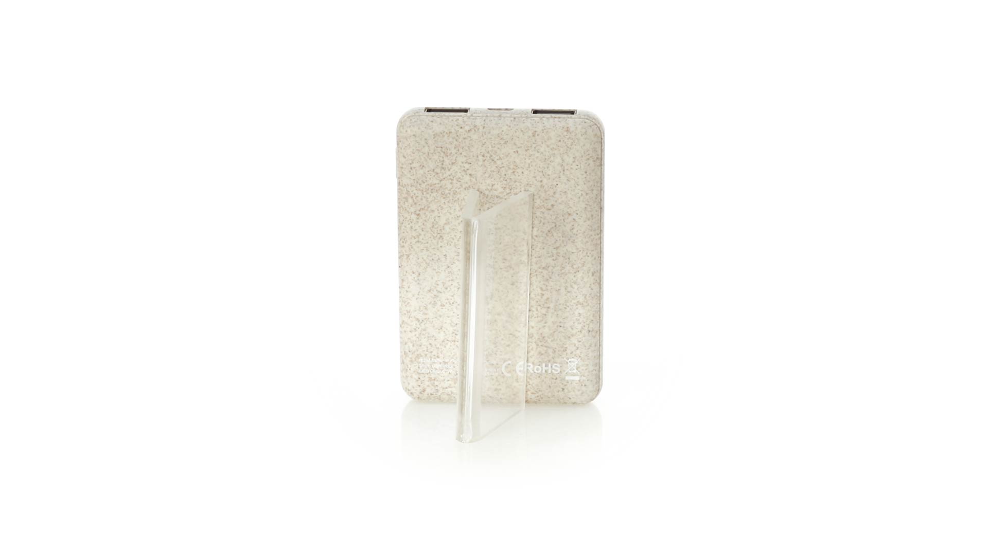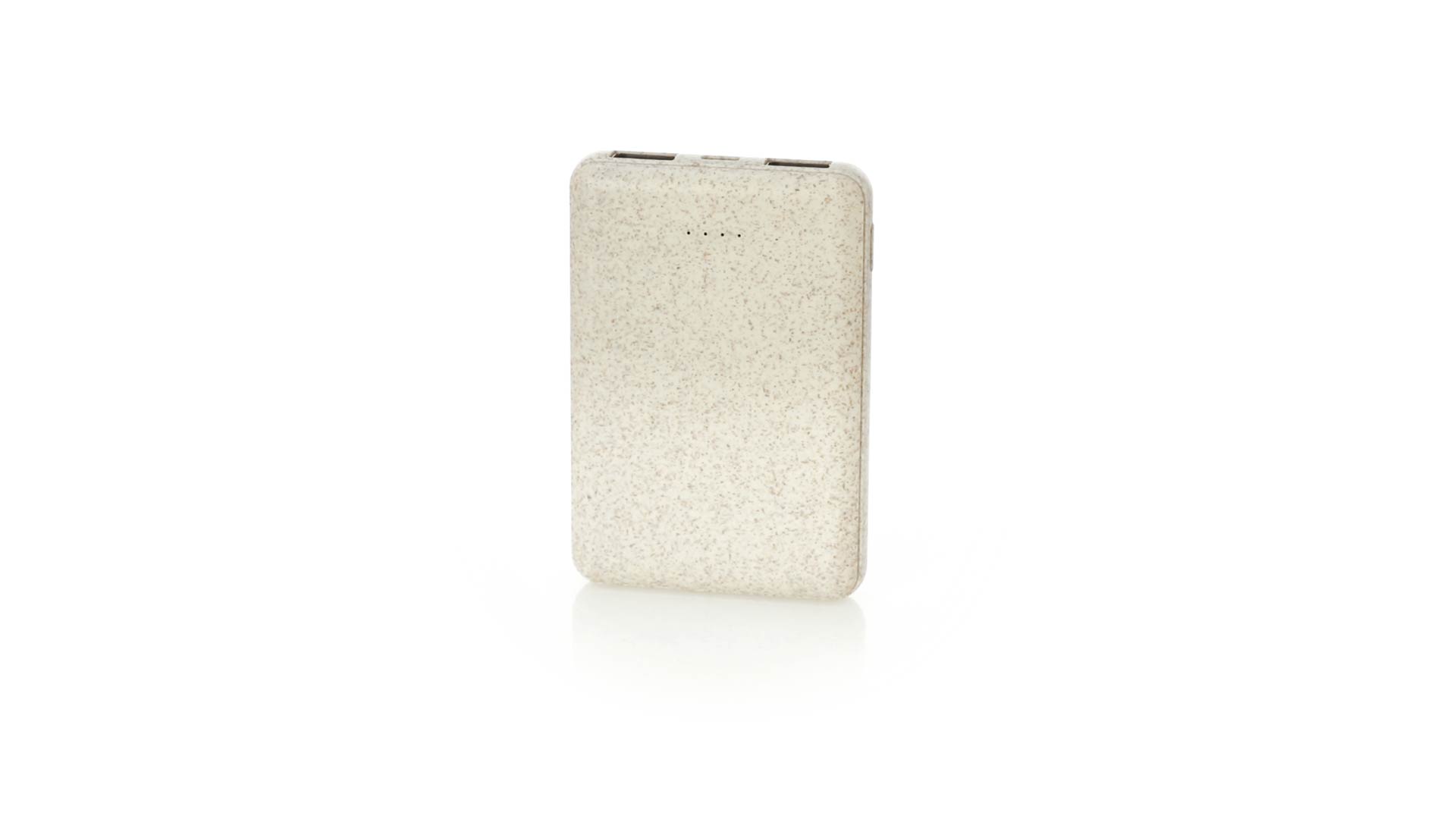 5.000 mAh, ultrakompakte, externe Zusatzbatterie in Naturbauweise, mit Schale aus Weizenstroh, um die Verwendung natürlicher Rohstoffe zu fördern und Schadstoffemissionen zu reduzieren. Dualer USB-Ausgang und Mikro-USB-Eingang (Kabel im Lieferumfang enthalten). Grosser Druckbereich und präsentiert in einer attraktiven, individuellen Öko-Design-Box. Die in allen unseren externen Zusatzbatterien angegebenen Kapazitäten sind reell, alle enthalten nicht recycelte Batterien der Klasse A mit einer Lebensdauer von mindestens 500 Ladezyklen und entsprechen den CE-Vorschriften. Darüber hinaus werden sie gemäss den RoHS-Normen und in Übereinstimmung mit den folgenden Sicherheitsanforderungen hergestellt: Überladungsschutzsystem für die Stromversorgung. Vollständiges Entladeschutzsystem, das die Haltbarkeit der Power Bank erhöht. Blockierungssystem zur Verhinderung von Kurzschlüssen. Konstantladungstransfersystem, entsprechend der Kapazität des Zielgerätes.