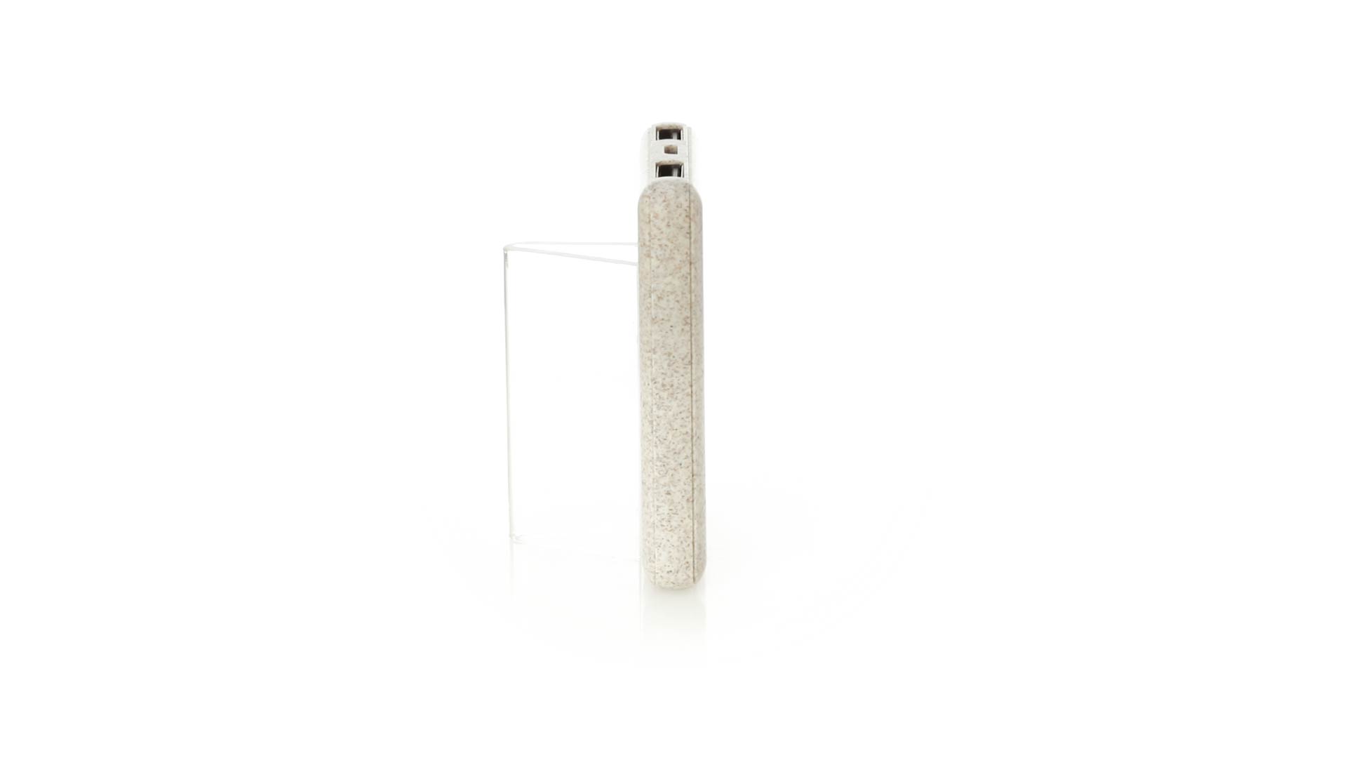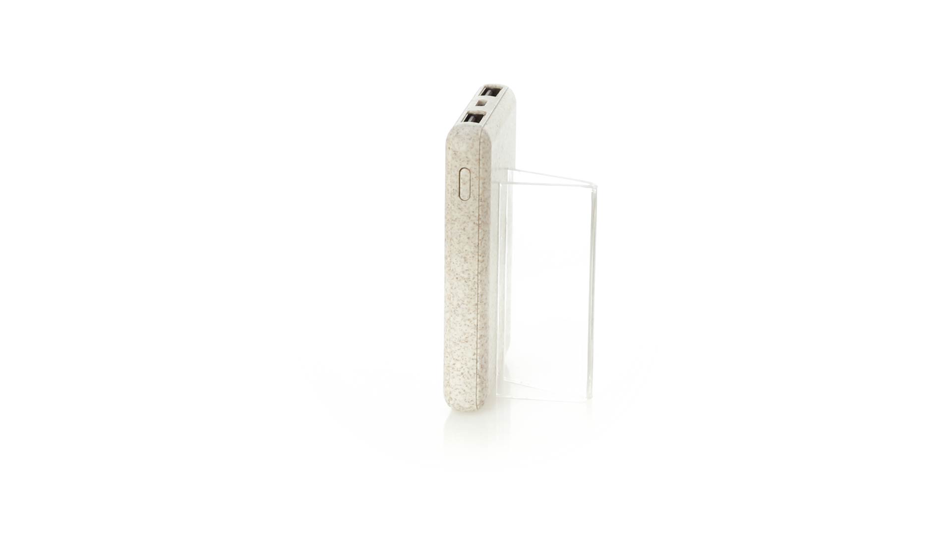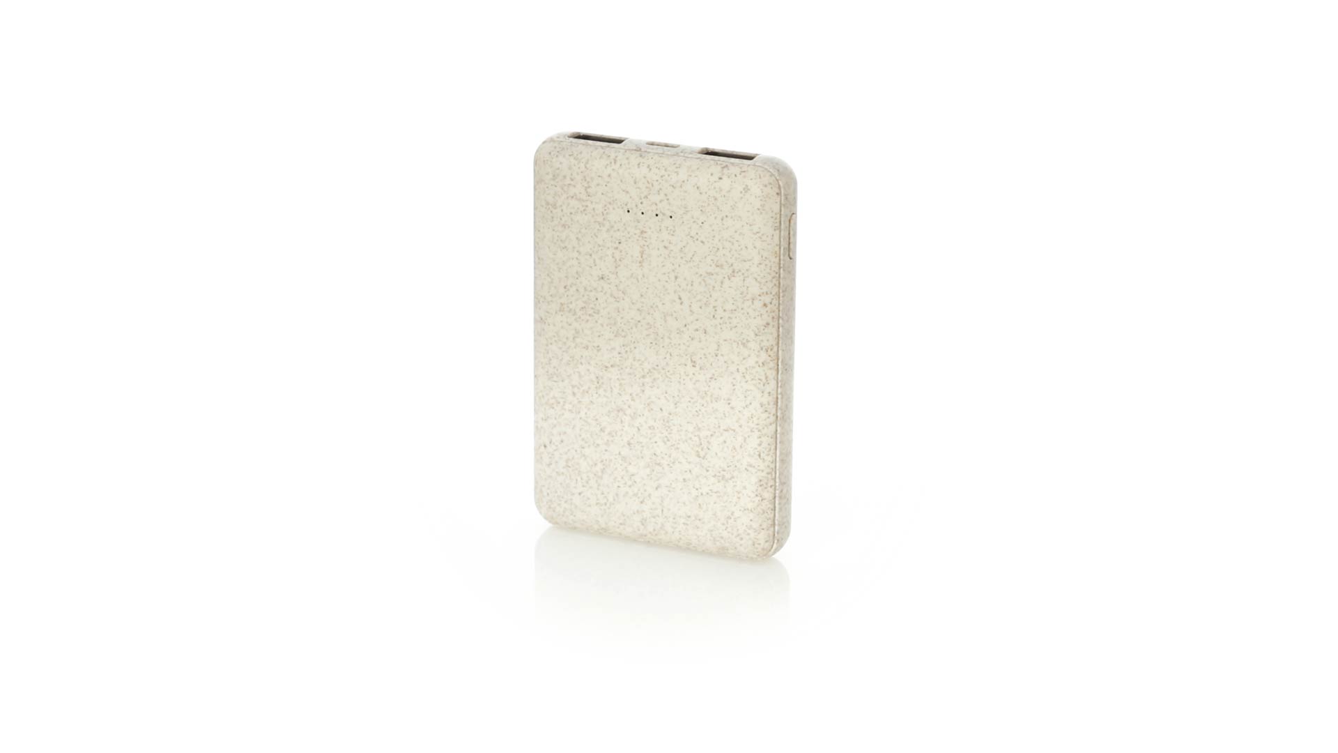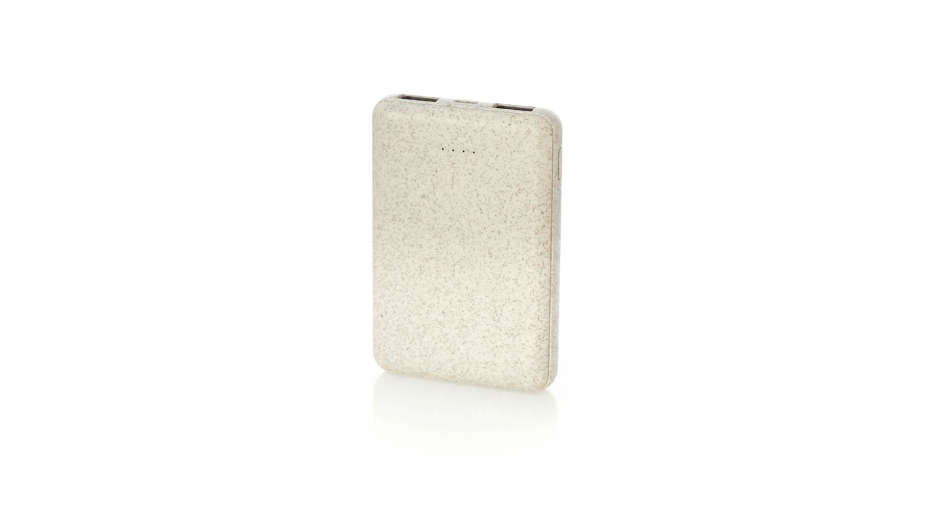 5.000 mAh, ultrakompakte, externe Zusatzbatterie in Naturbauweise, mit Schale aus Weizenstroh, um die Verwendung natürlicher Rohstoffe zu fördern und Schadstoffemissionen zu reduzieren. Dualer USB-Ausgang und Mikro-USB-Eingang (Kabel im Lieferumfang enthalten). Grosser Druckbereich und präsentiert in einer attraktiven, individuellen Öko-Design-Box. Die in allen unseren externen Zusatzbatterien angegebenen Kapazitäten sind reell, alle enthalten nicht recycelte Batterien der Klasse A mit einer Lebensdauer von mindestens 500 Ladezyklen und entsprechen den CE-Vorschriften. Darüber hinaus werden sie gemäss den RoHS-Normen und in Übereinstimmung mit den folgenden Sicherheitsanforderungen hergestellt: Überladungsschutzsystem für die Stromversorgung. Vollständiges Entladeschutzsystem, das die Haltbarkeit der Power Bank erhöht. Blockierungssystem zur Verhinderung von Kurzschlüssen. Konstantladungstransfersystem, entsprechend der Kapazität des Zielgerätes.