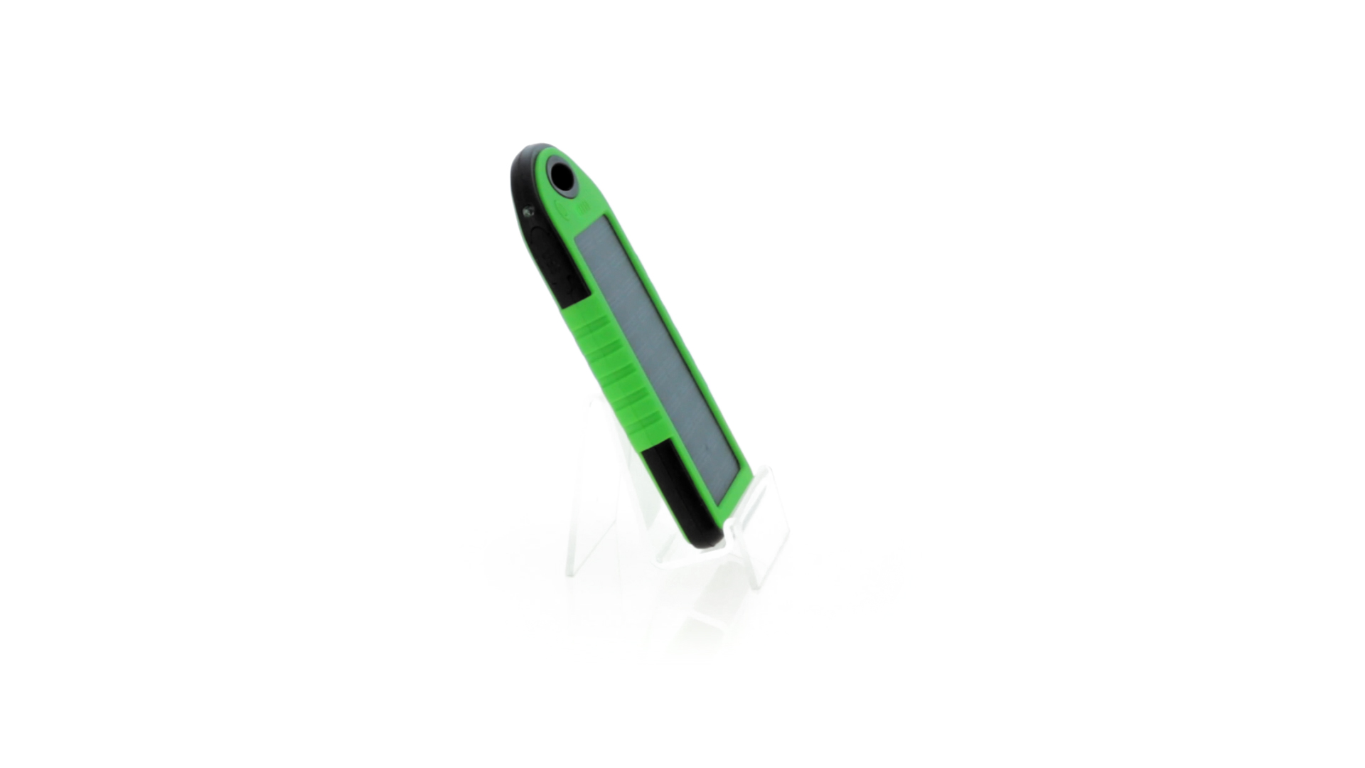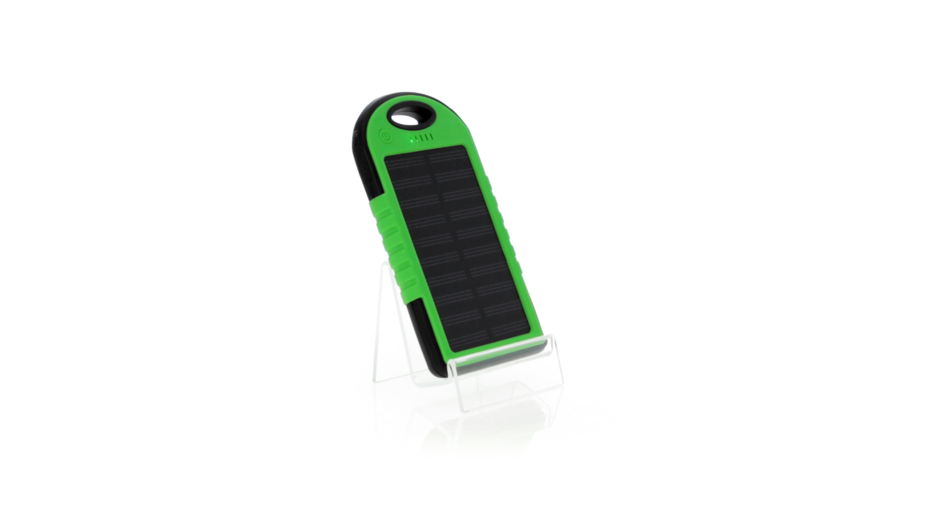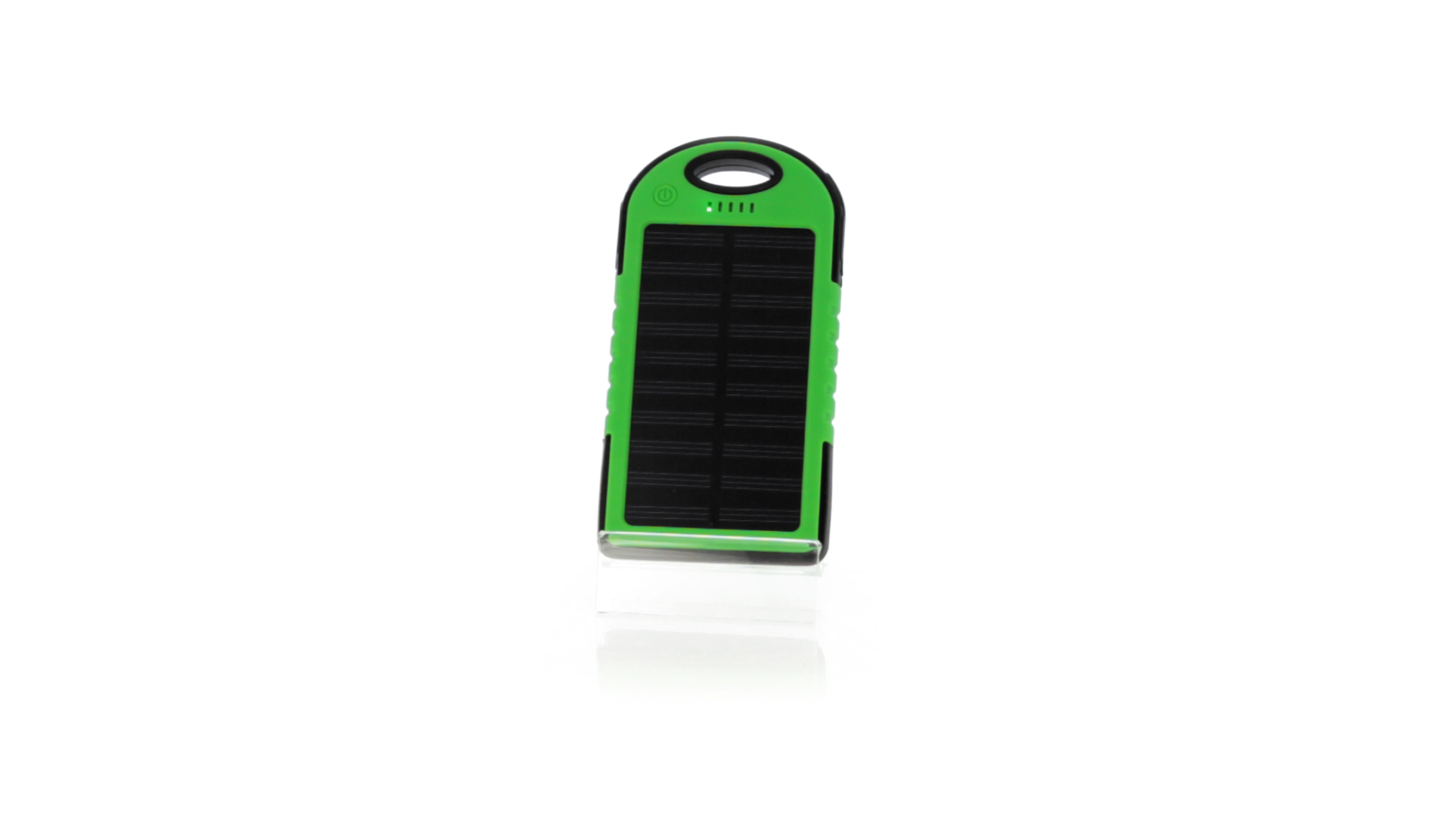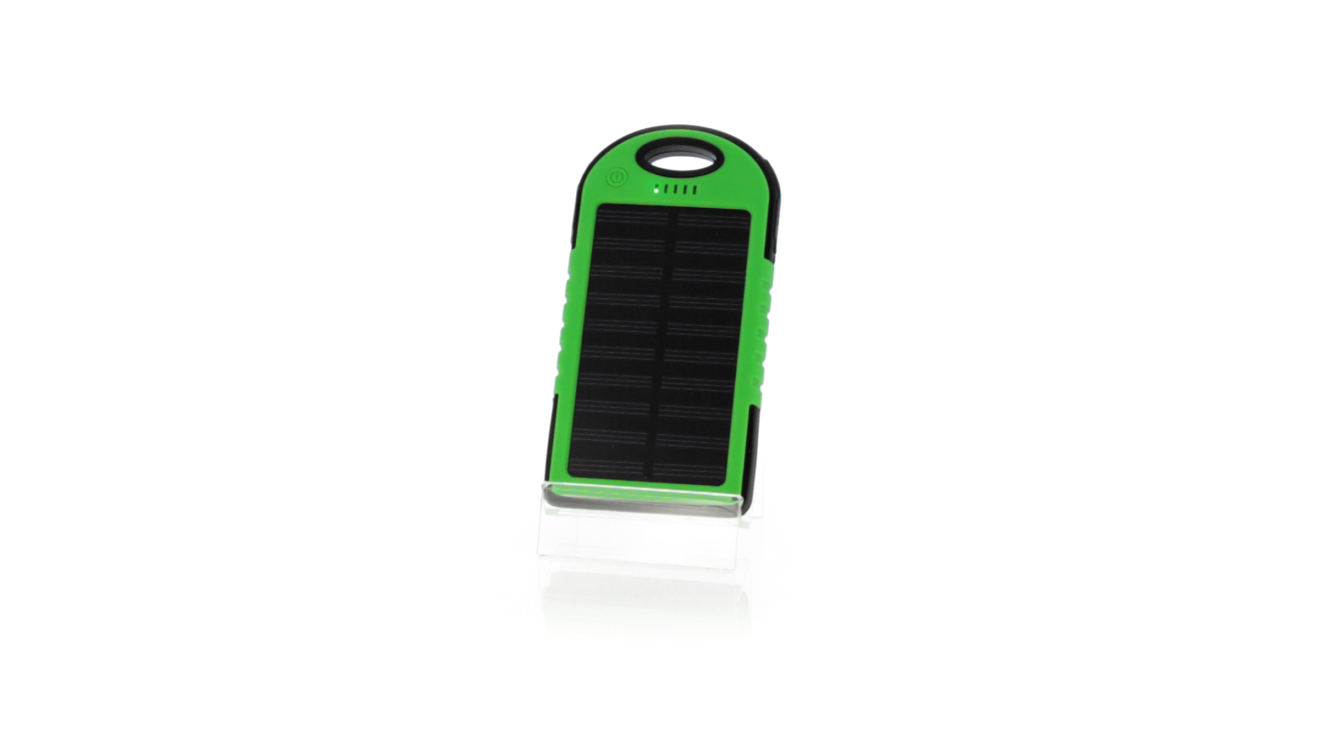 Robuster externer Zusatzakku mit Solarladung und hoher Kapazität -4.000mAh-. Sportlich geschnitten und mit weichem Silikon überzogen. Speziell für Outdoor-Aktivitäten entwickelt, spritzwassergeschützt und mit Aluminium-Tragekarabiner. Dualer USB-Ausgang zum gleichzeitigen Aufladen von zwei Geräten, mit LED-Ladestatusanzeige und leistungsstarker LED-Leuchte mit SOS-Signalisierung für den Einsatz in Notfällen. Micro-USB-Ladekabel im Lieferumfang enthalten. Erhältlich in einer Reihe von Farben, verpackt in einer attraktiven, individuell gestalteten Box.