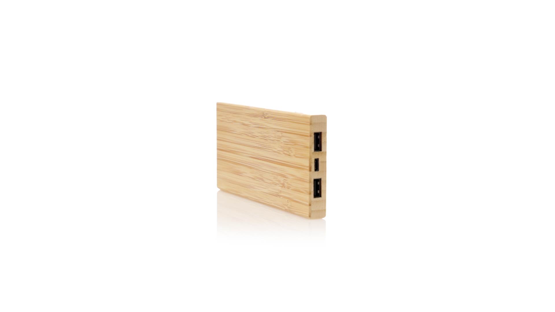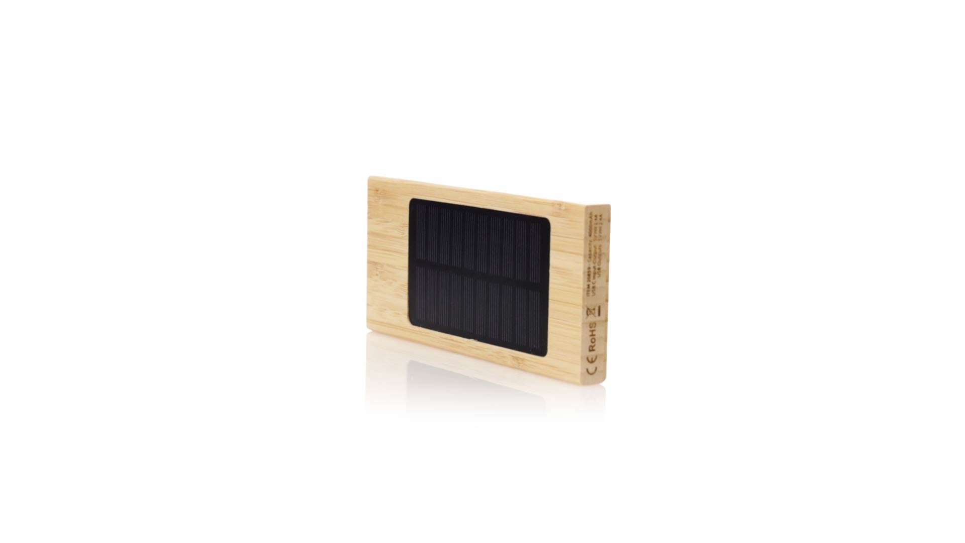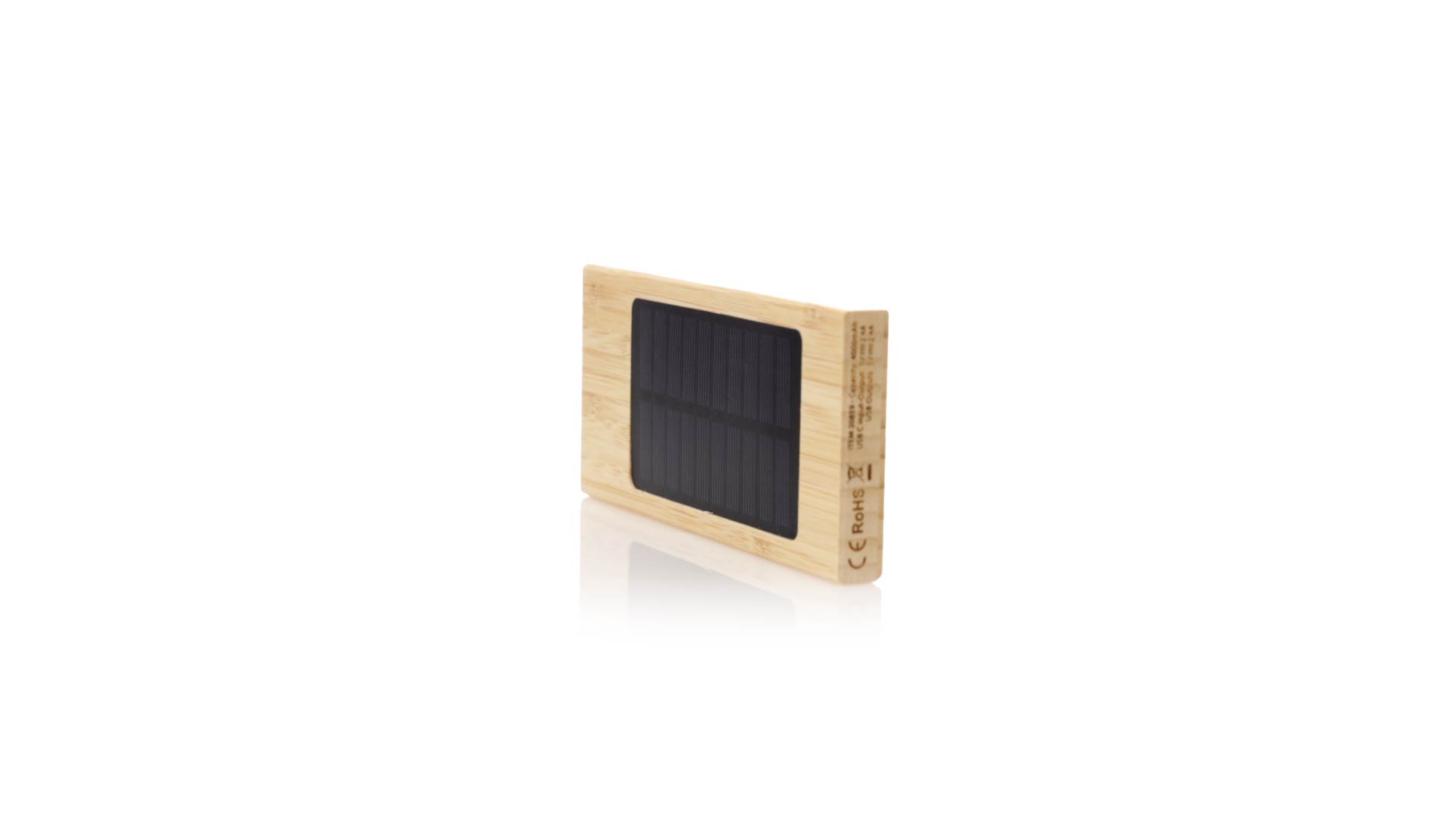 Externer Zusatzakku mit Solarladung und 4.000 mAh Ladekapazität. Hergestellt aus Bambus, mit Typ-C-Eingangs-/Ausgangsanschluss und 2 USB-Ausgängen. Präsentiert in einer individuellen Kraft-Design-Box. Gebrauchsanweisung in Englisch und Spanisch erhältlich.Die angegebenen Kapazitäten aller unserer externen Zusatzbatterien sind real, da sie alle aus nicht recycelten Batterien der Klasse A bestehen, die eine Lebensdauer von mindestens 500 Ladezyklen haben und den CE-Vorschriften entsprechen.Darüber hinaus werden sie gemäss den RoHS-Normen und unter Einhaltung der folgenden Sicherheitsanforderungen hergestellt:Überladungsschutzsystem der Powerbank.Vollständiges Entladeschutzsystem, das die Haltbarkeit der Powerbank erhöht.Blockiersystem zur Vermeidung von Kurzschlüssen.Konstantes Ladetransfersystem, entsprechend der Kapazität des Zielgeräts.