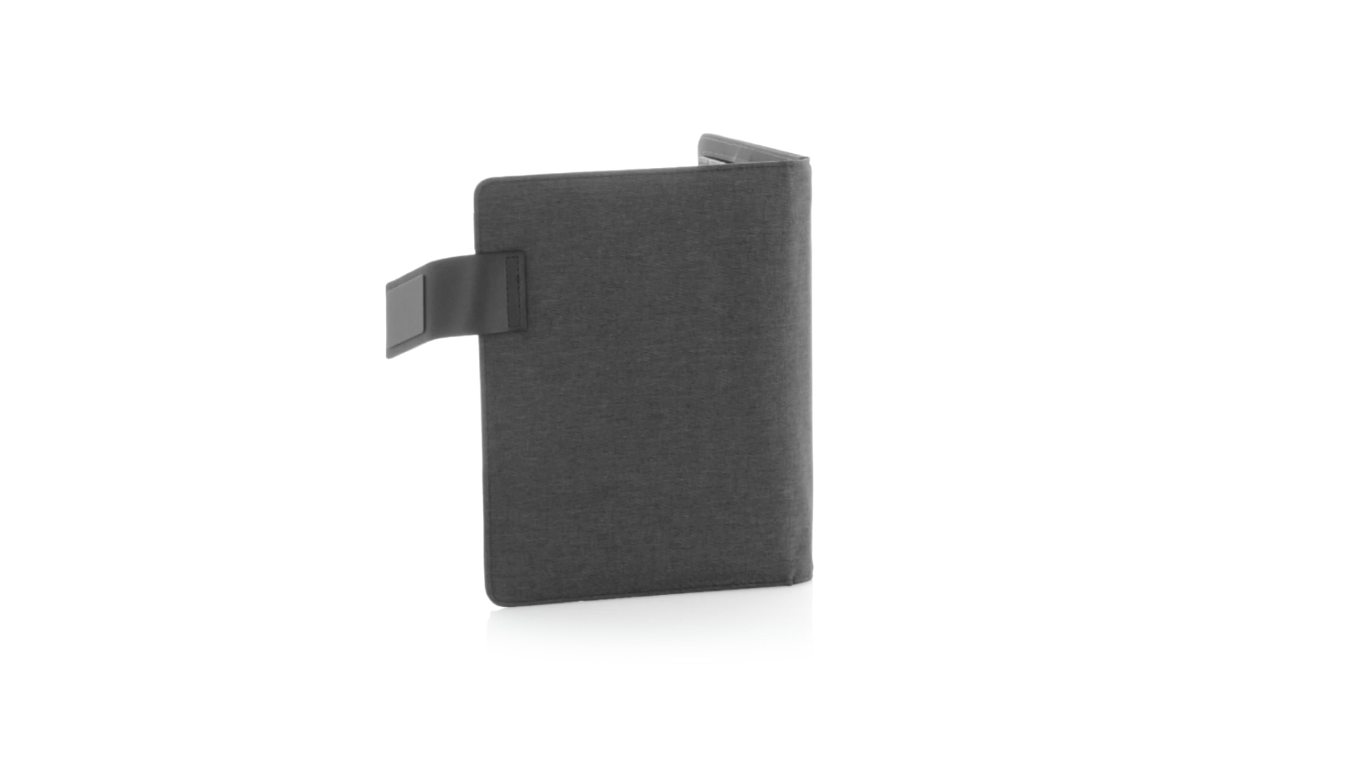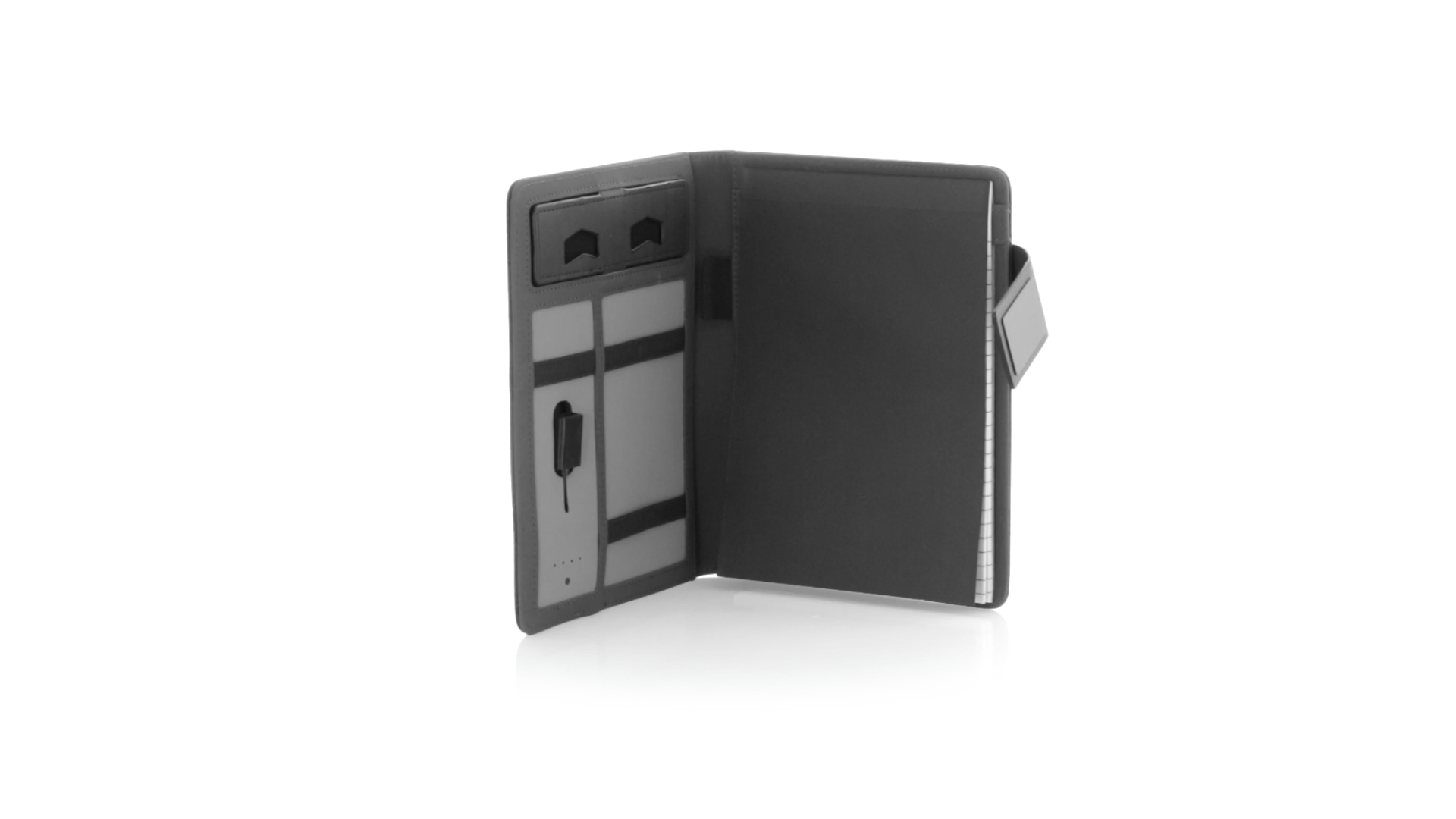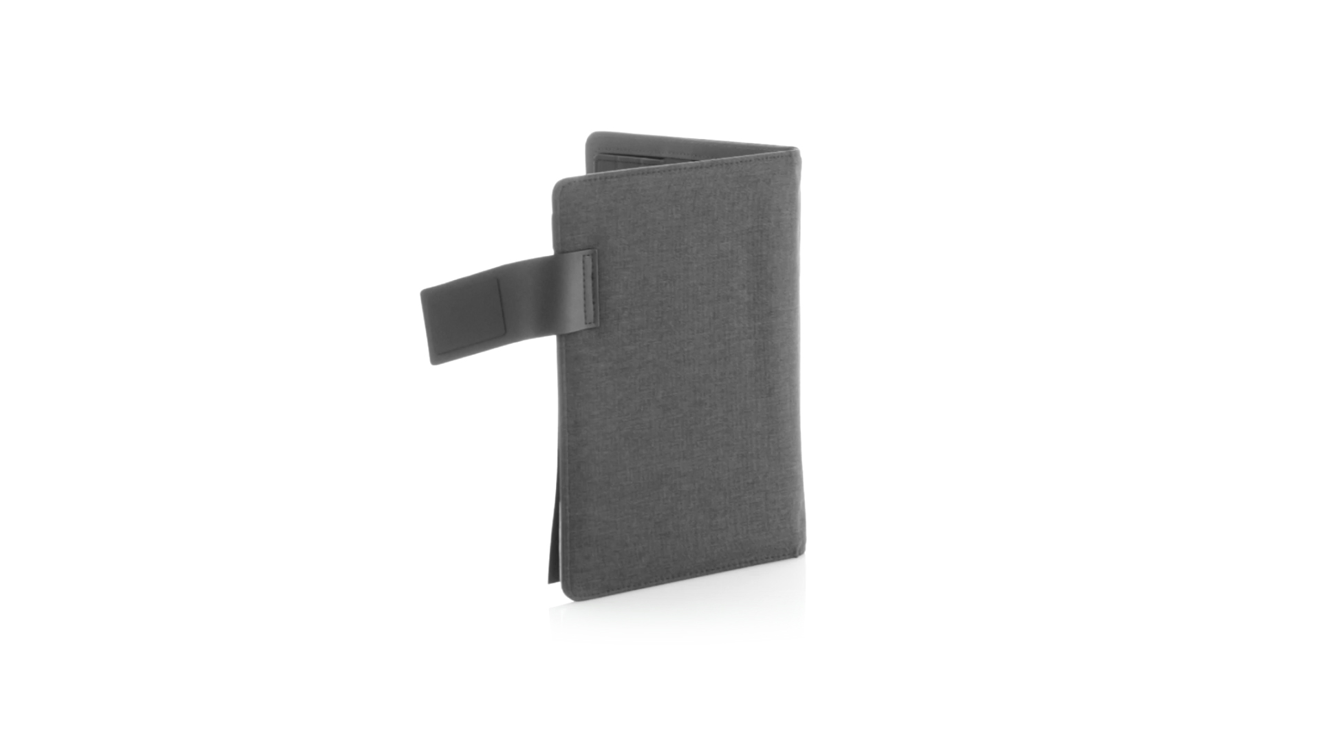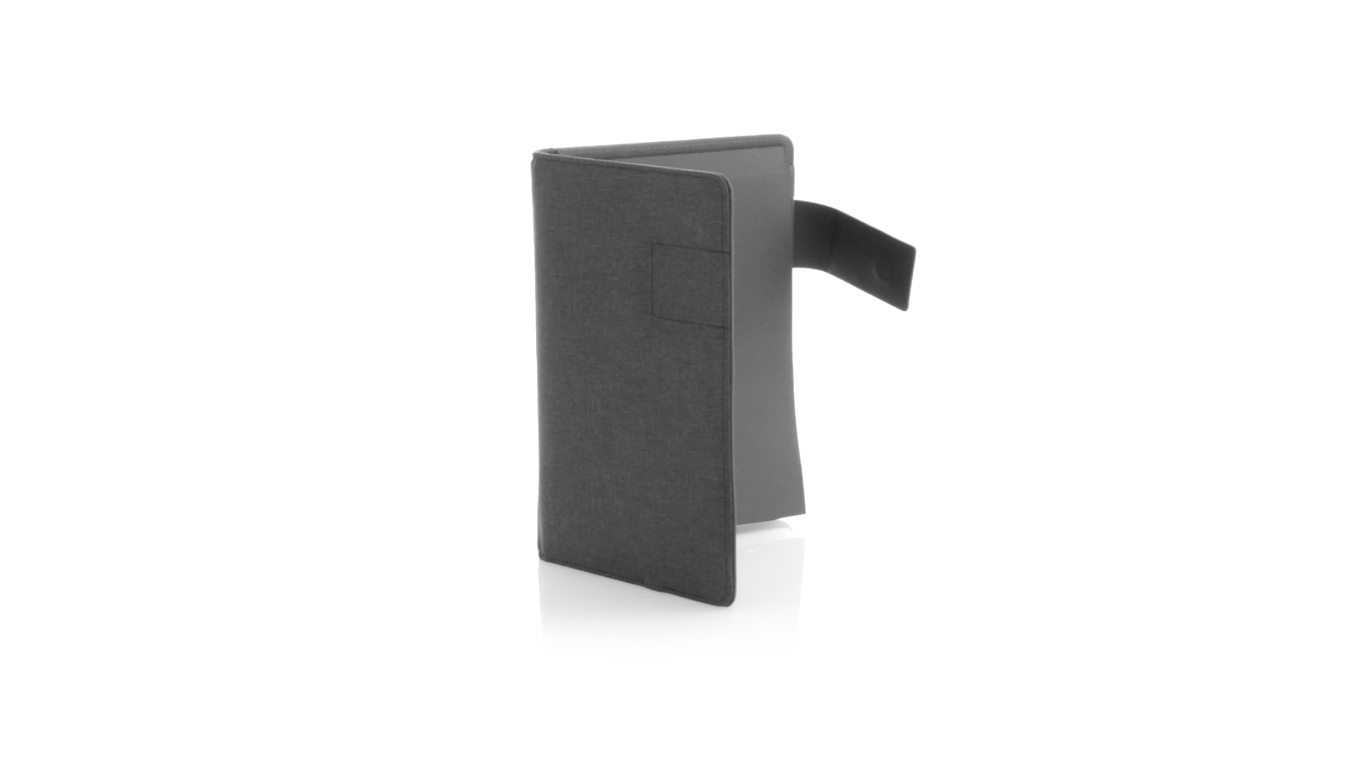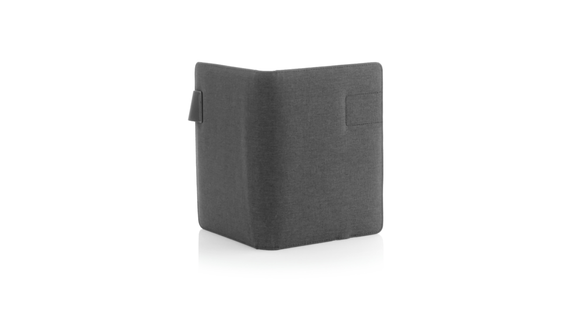 Notizbuch aus weichem 300D Polyester in Graphit-Ausführung mit integrierter Powerbank mit 4.000 mAh Ladekapazität. Schlichtes Design mit Magnetverschluss und Druckfläche aus Metall. Mit einer Vielzahl von Fächern zur Aufbewahrung von Visitenkarten und USB-Sticks, Ständer für Smartphones und Tablets sowie LED-Ladeanzeige im Inneren. Inklusive Notizblock mit 20 A5-Blättern. Der einfache Zugriff auf den externen Akku mittels Micro-USB-Kabel (inklusive), machen aus diesem Notizbuch das perfekte Gadget für Business und Studium.