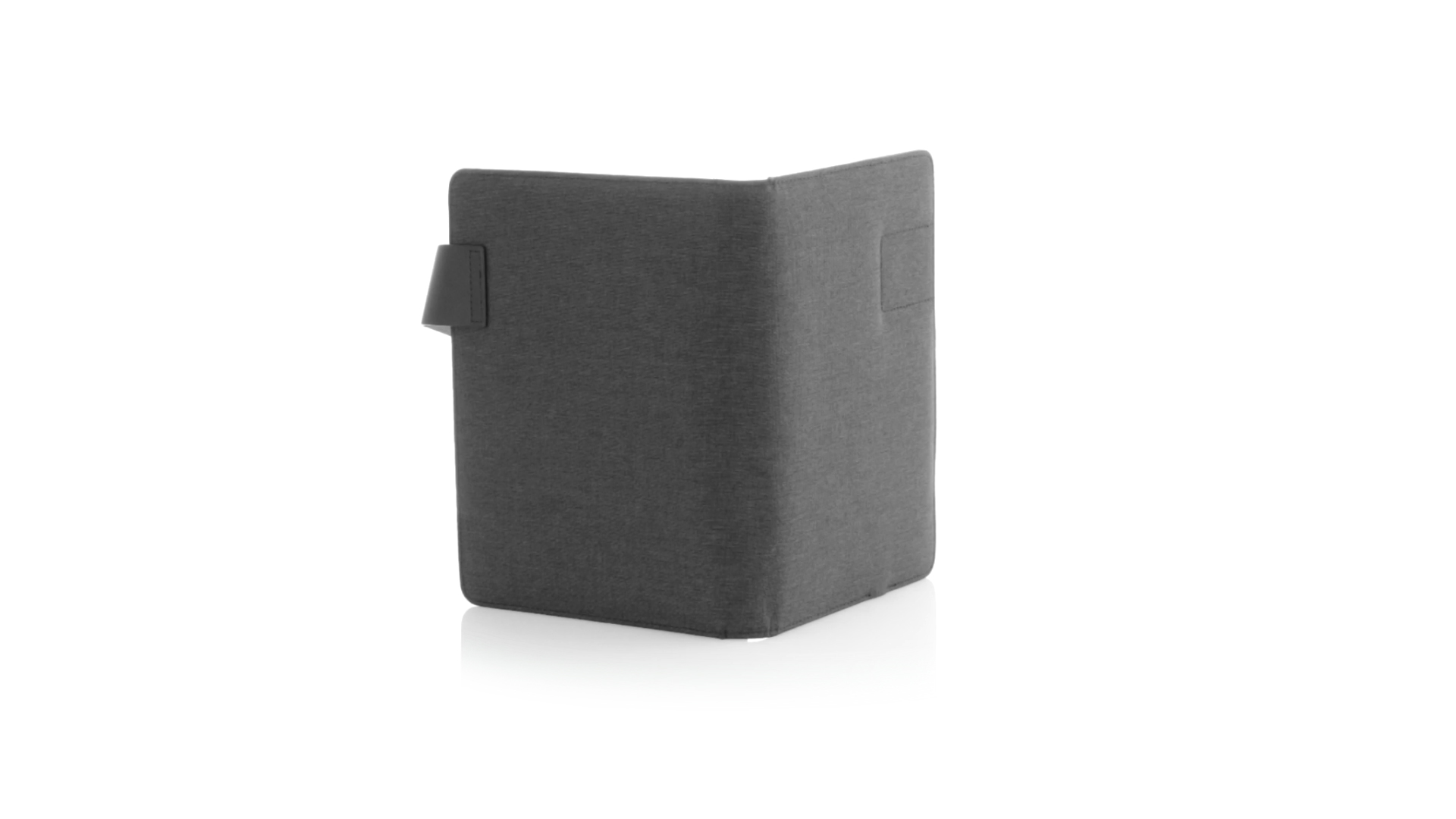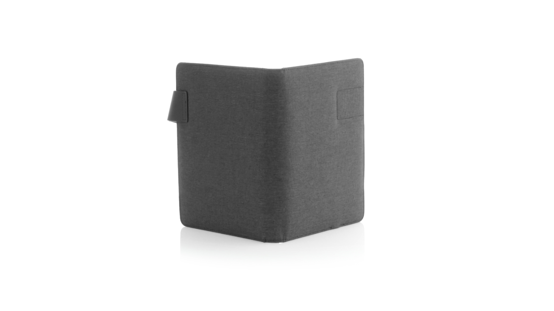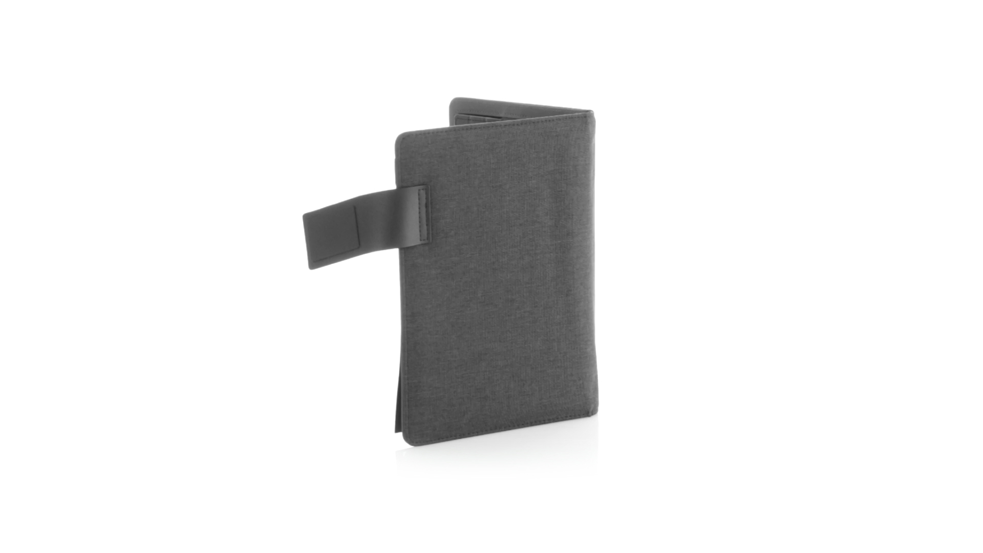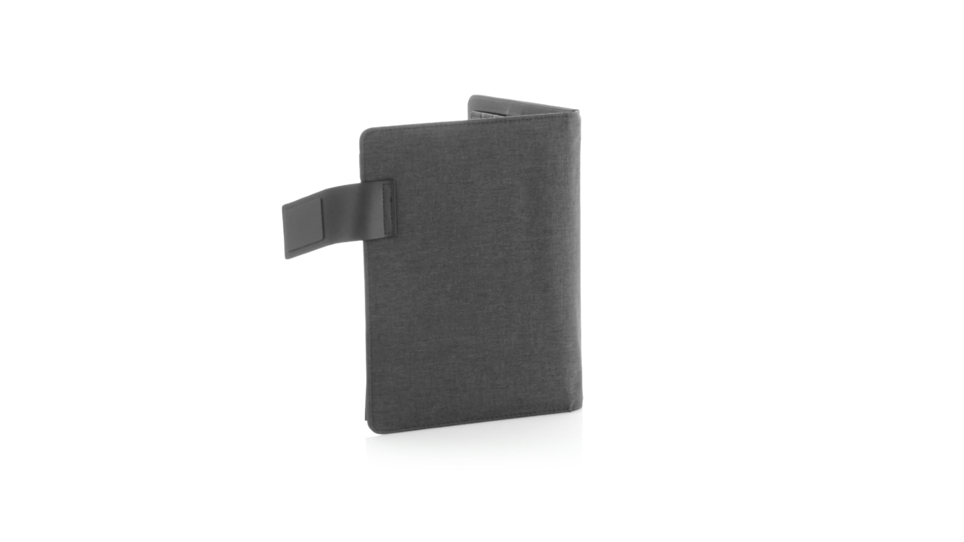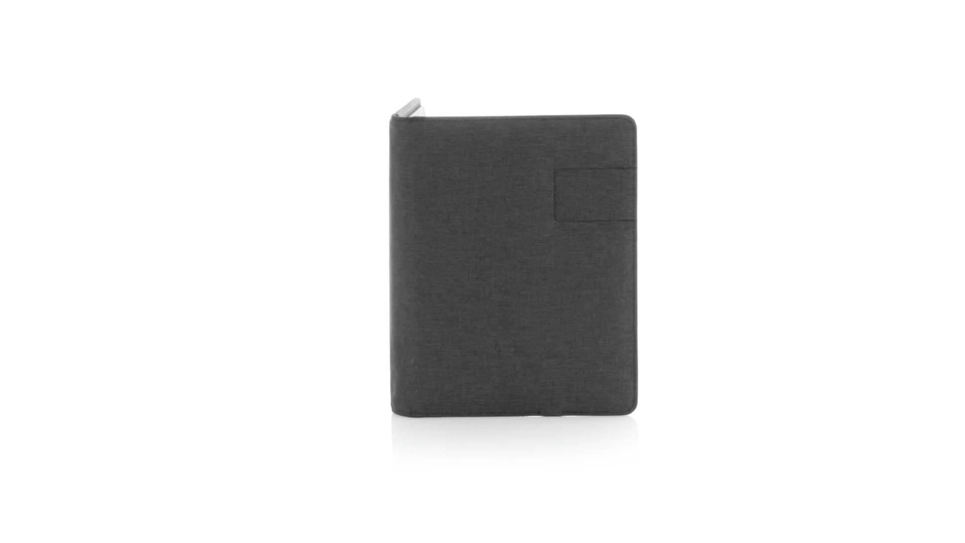Notizbuch aus weichem 300D Polyester in Graphit-Ausführung mit integrierter Powerbank mit 4.000 mAh Ladekapazität. Schlichtes Design mit Magnetverschluss und Druckfläche aus Metall. Mit einer Vielzahl von Fächern zur Aufbewahrung von Visitenkarten und USB-Sticks, Ständer für Smartphones und Tablets sowie LED-Ladeanzeige im Inneren. Inklusive Notizblock mit 20 A5-Blättern. Der einfache Zugriff auf den externen Akku mittels Micro-USB-Kabel (inklusive), machen aus diesem Notizbuch das perfekte Gadget für Business und Studium.