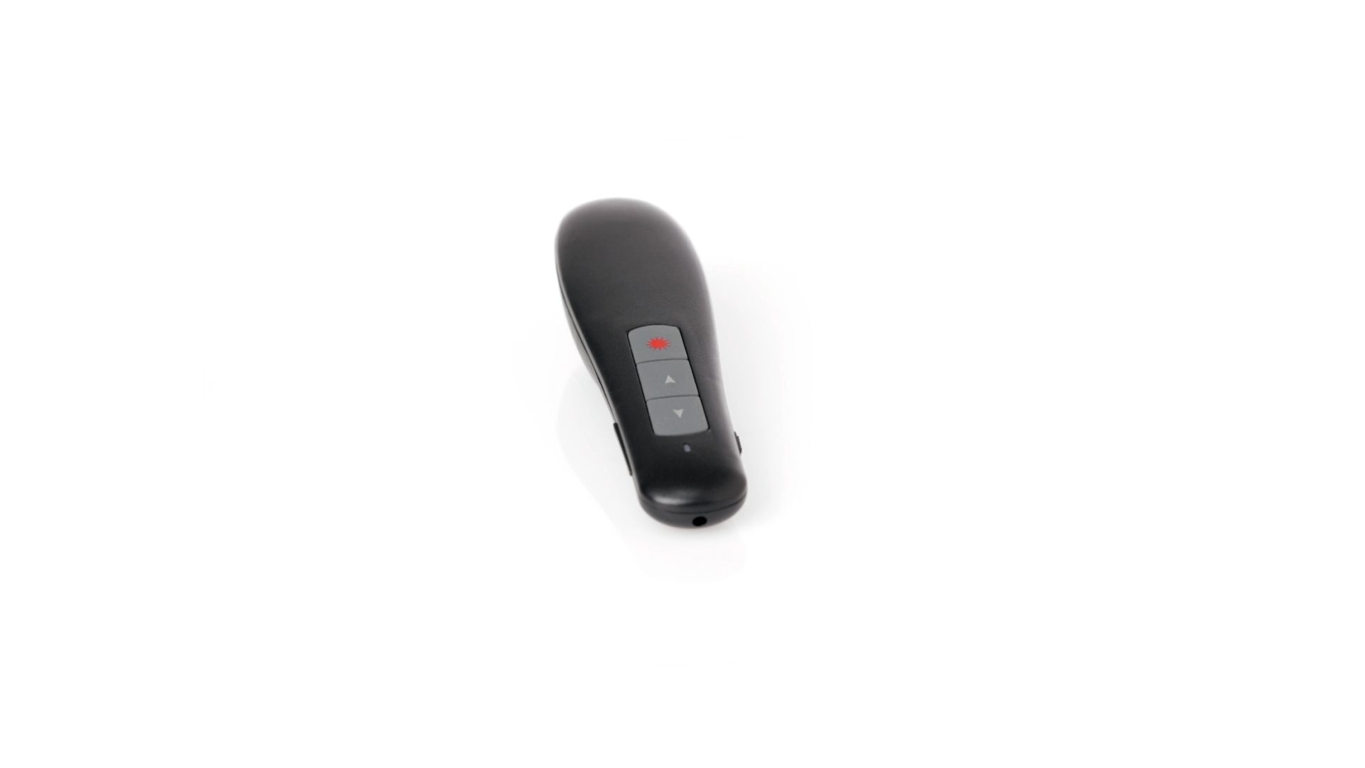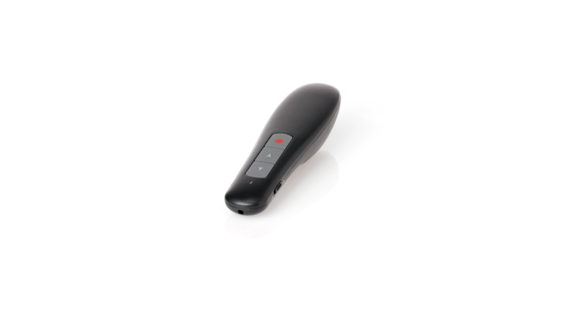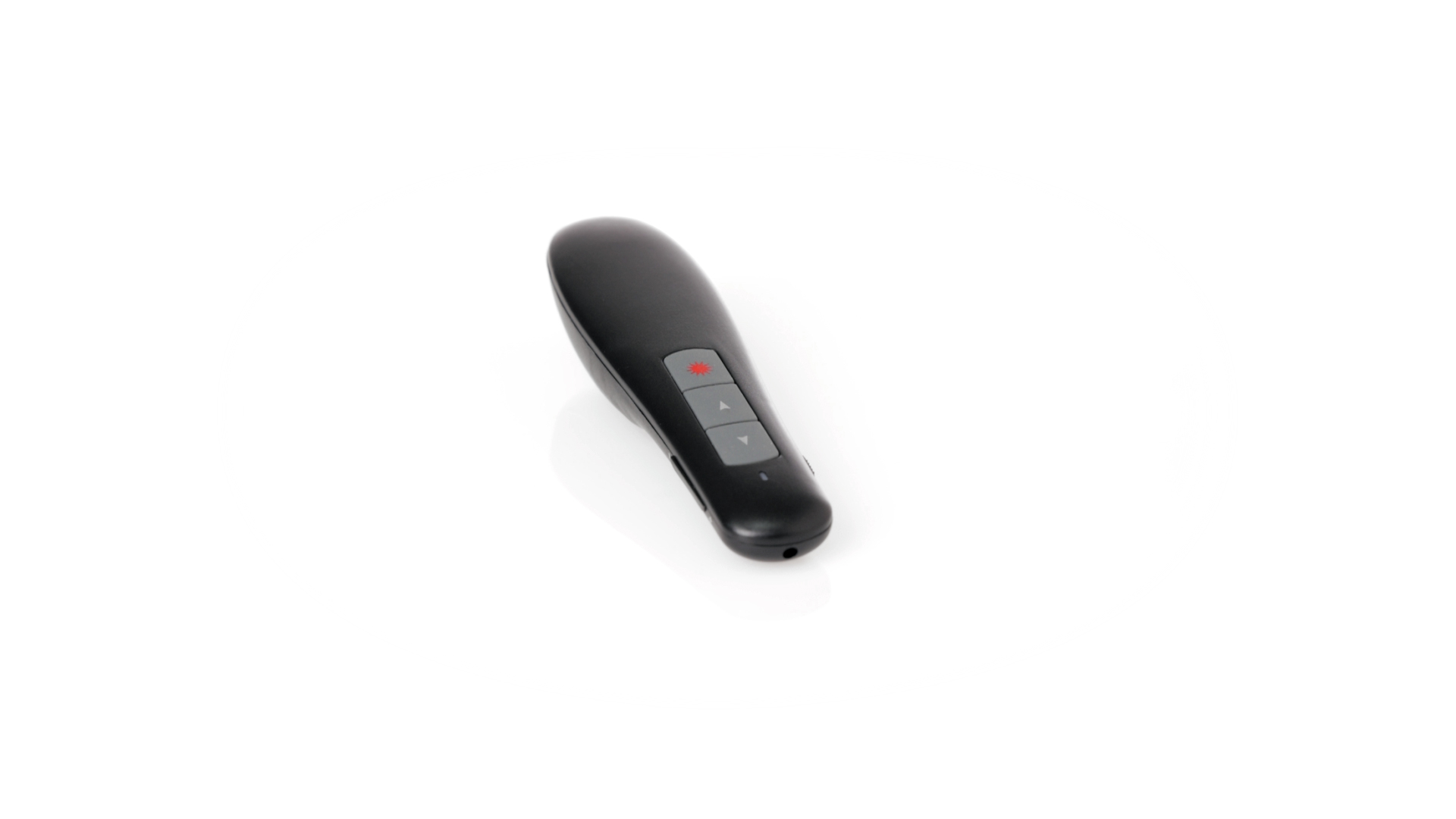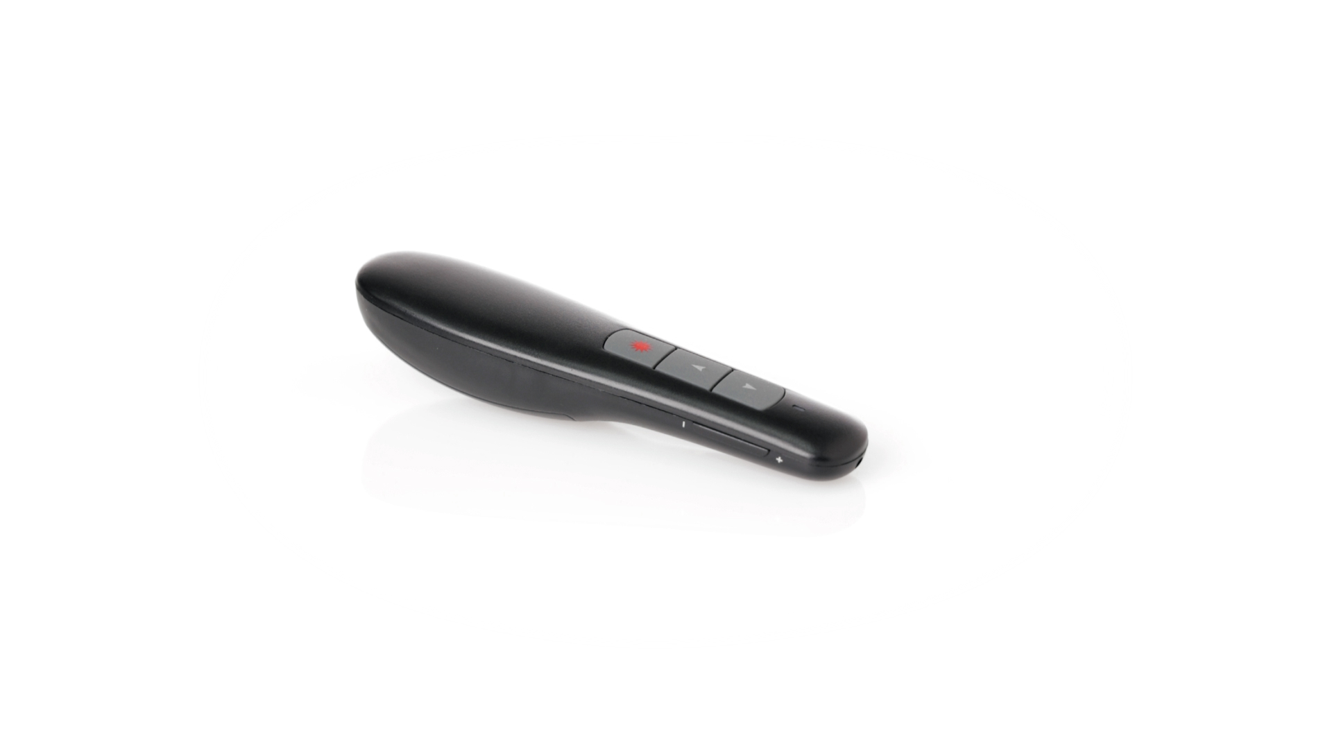 Puntero láser inalámbrico para presentaciones. De diseño ergonómico, incluye accesorio plug play para conectarlo al puerto USB del ordenador, sin necesidad de instalar software adicional para su correcto funcionamiento. Compatible con multitud de sistemas operativos (Windows, OS X, Linux y Android). Con botones avance/ pausa/ retroceso/volumen y alimentación a pilas: 2xAAA incluidas. Presentado en elegante y resistente estuche de cartón negro, con funda e interior troquelado en espuma. Manual de instrucciones en español e inglés.