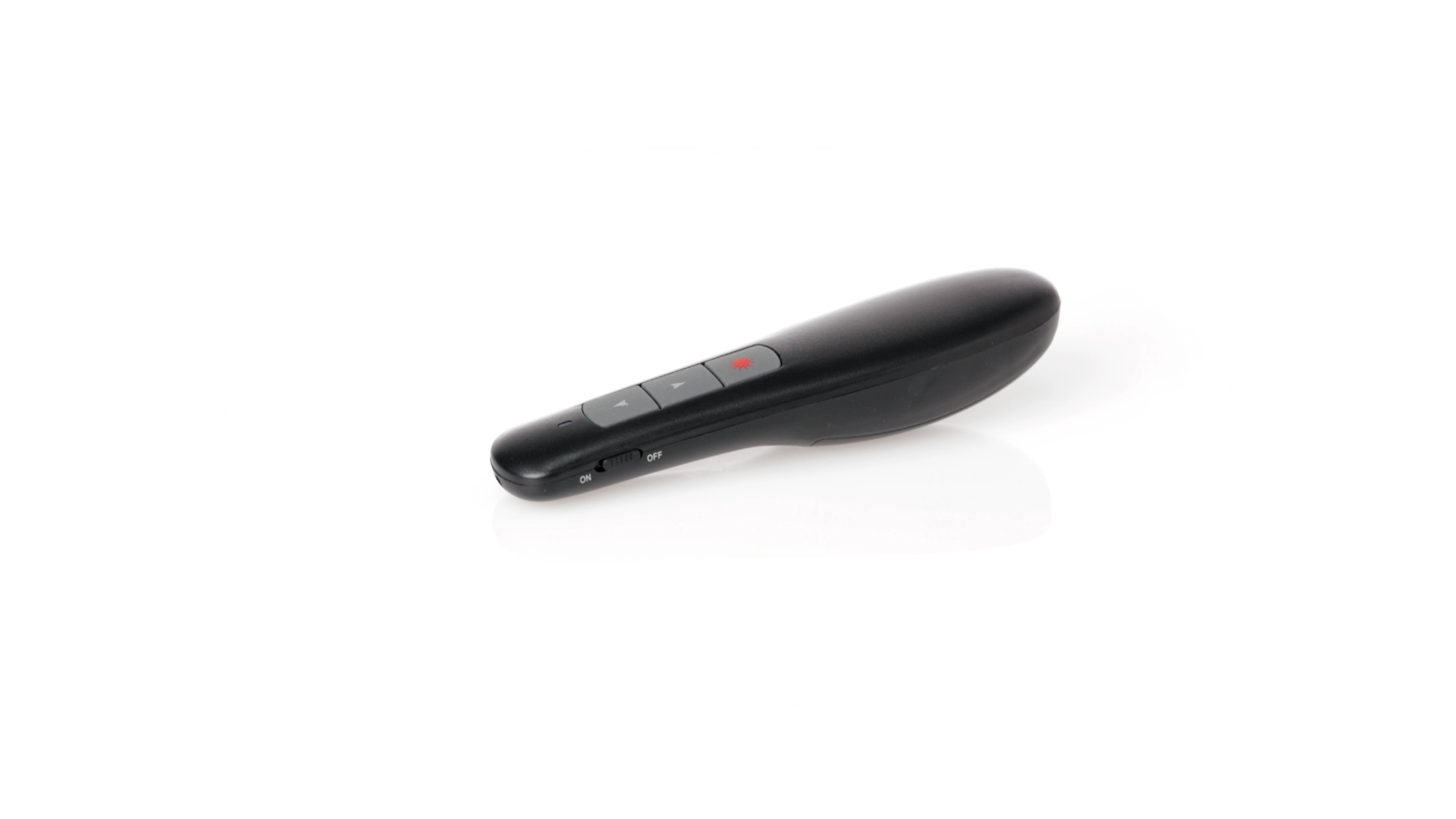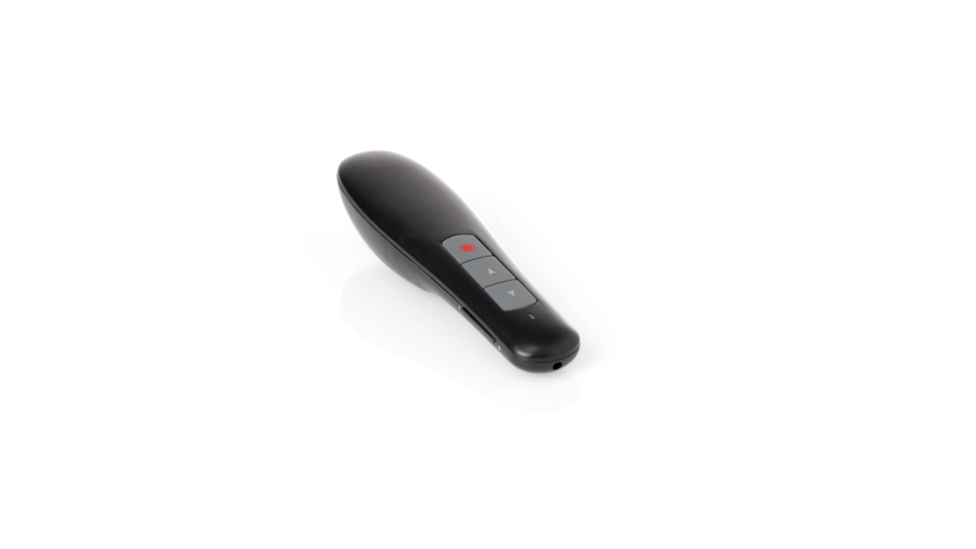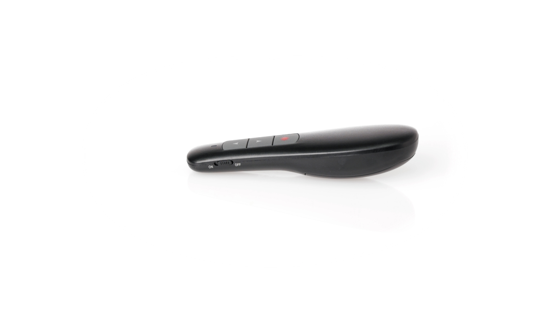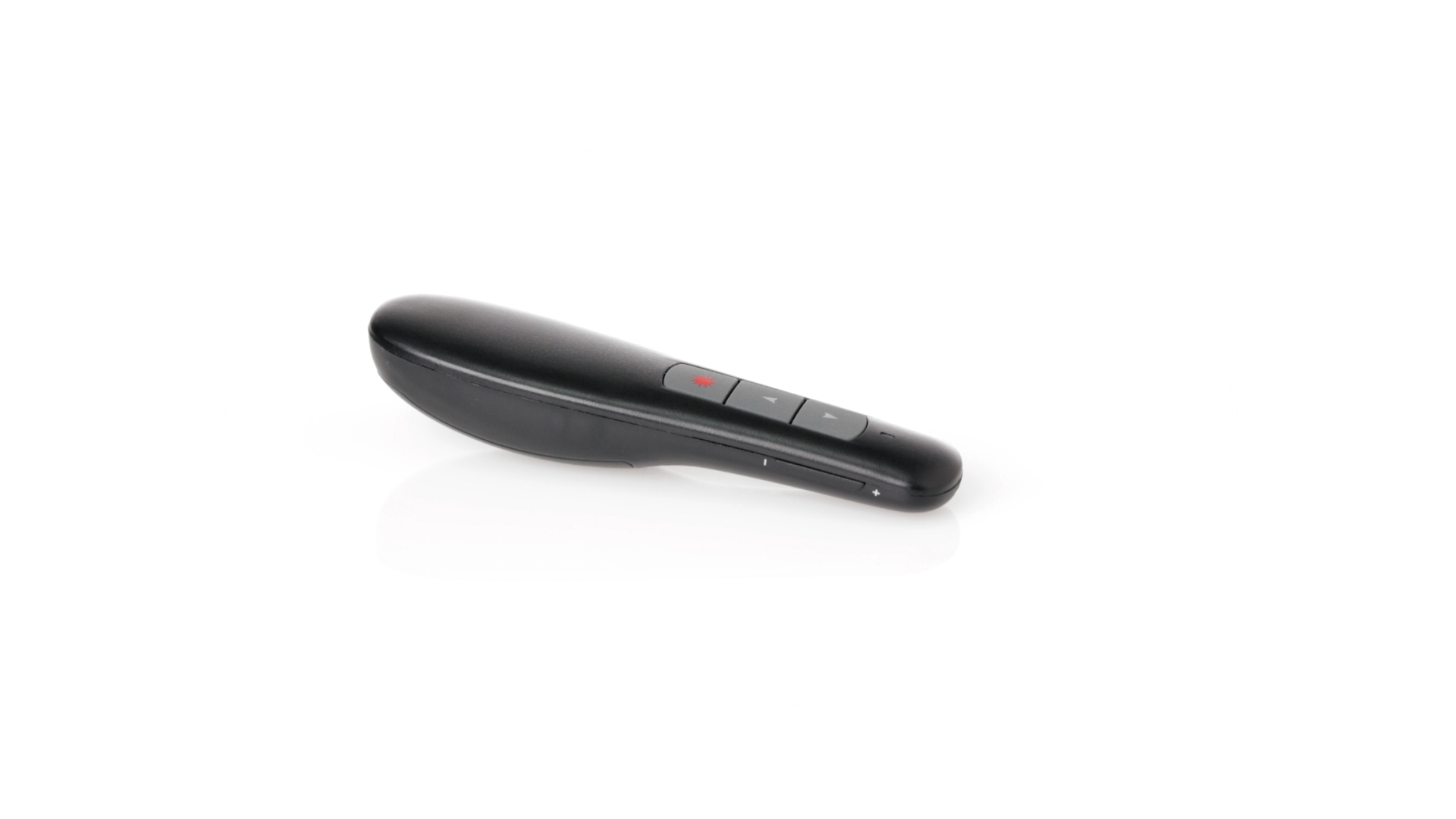 Puntero láser inalámbrico para presentaciones. De diseño ergonómico, incluye accesorio plug play para conectarlo al puerto USB del ordenador, sin necesidad de instalar software adicional para su correcto funcionamiento. Compatible con multitud de sistemas operativos (Windows, OS X, Linux y Android). Con botones avance/ pausa/ retroceso/volumen y alimentación a pilas: 2xAAA incluidas. Presentado en elegante y resistente estuche de cartón negro, con funda e interior troquelado en espuma. Manual de instrucciones en español e inglés.
