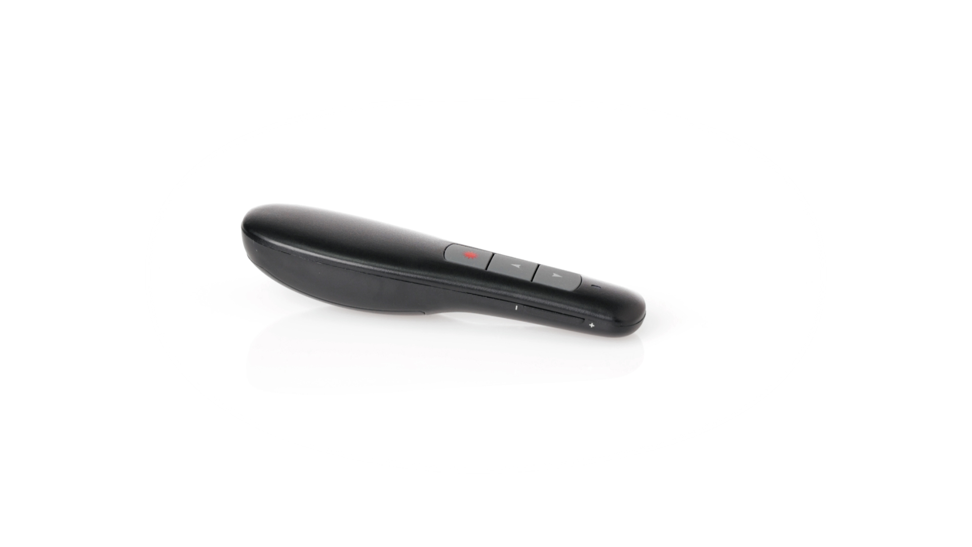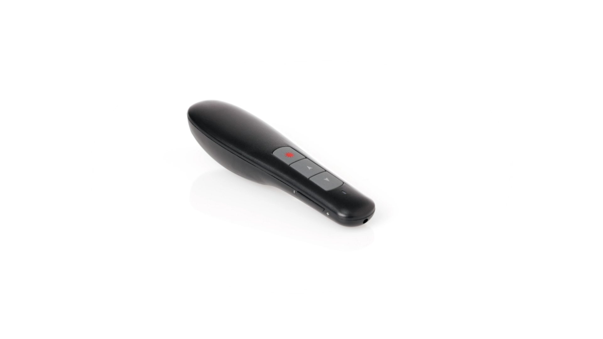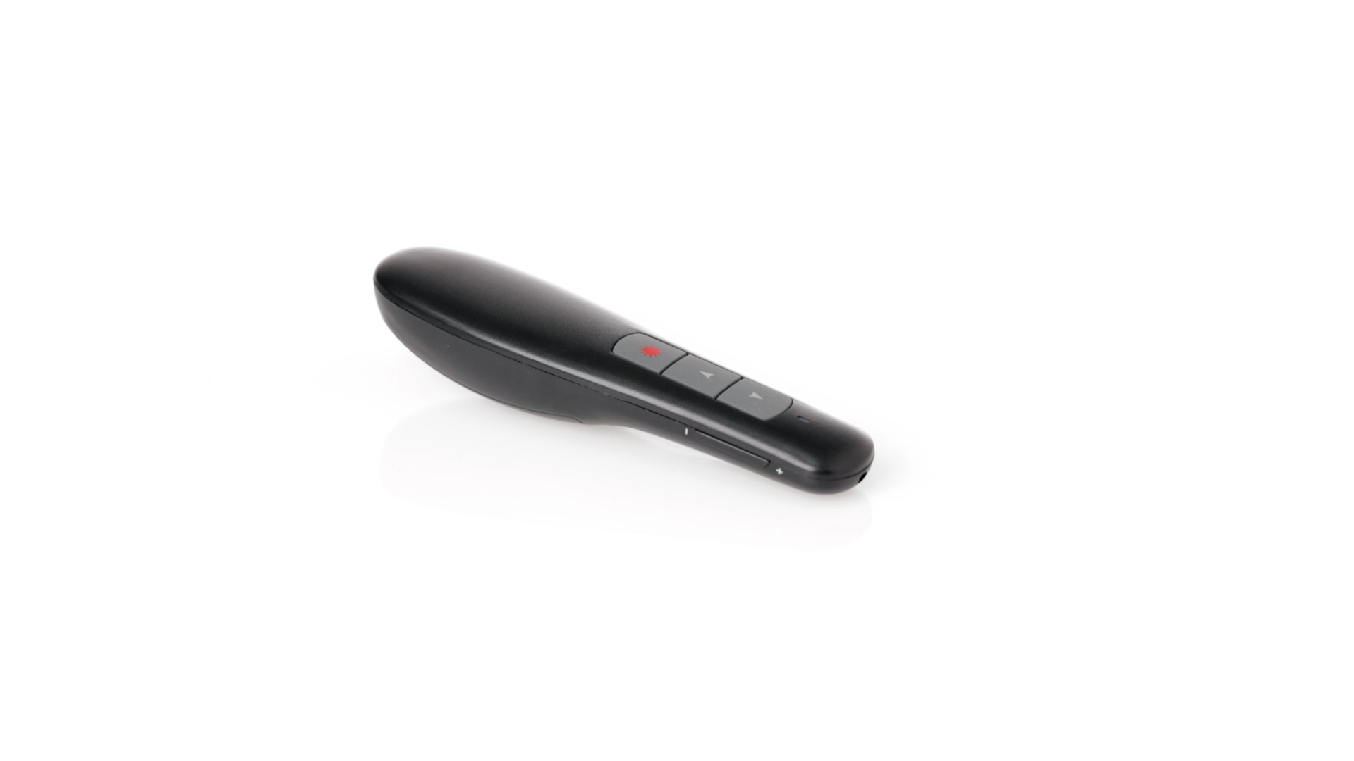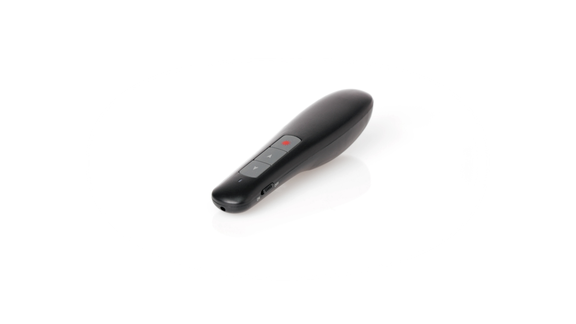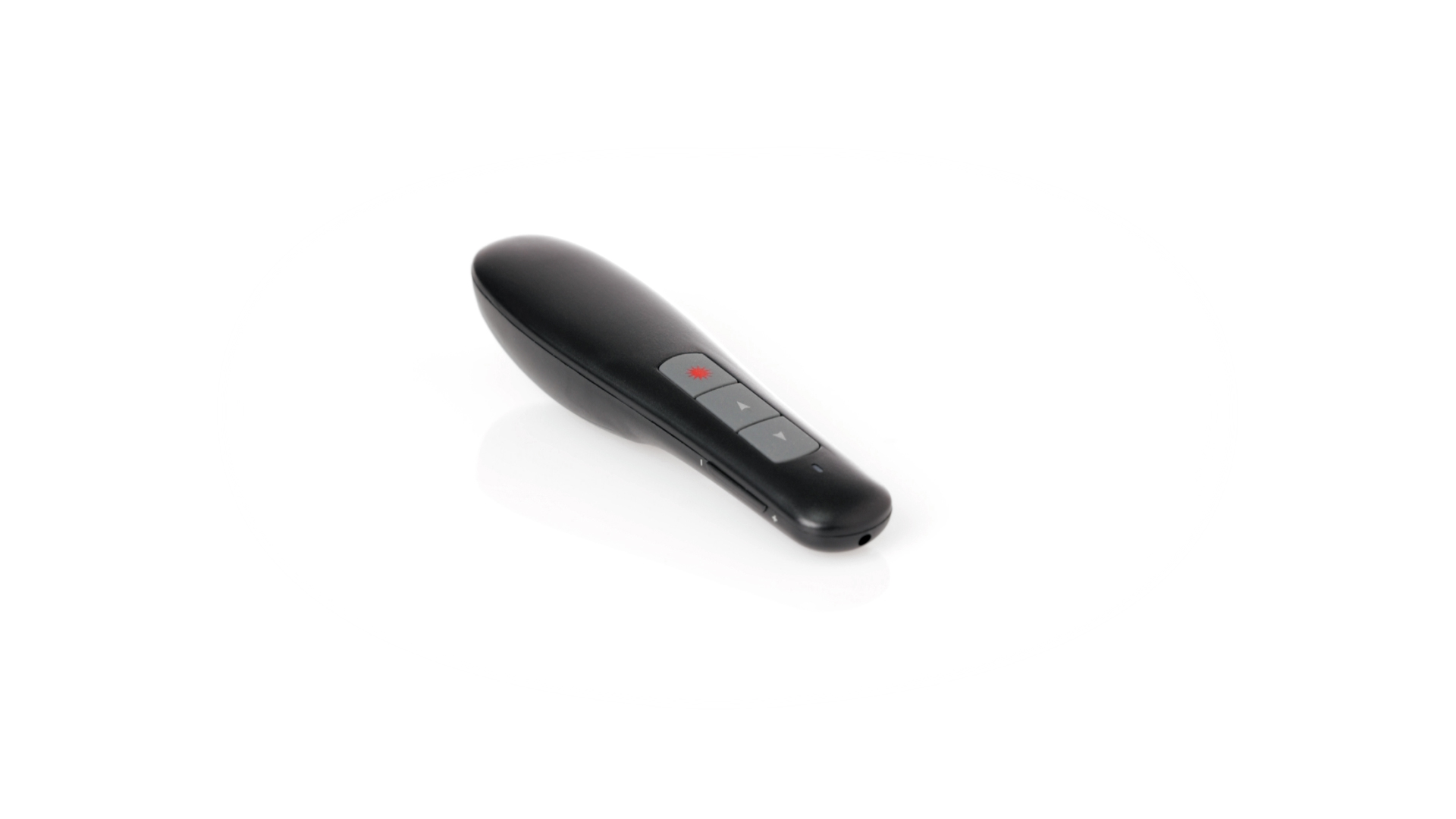 Puntero láser inalámbrico para presentaciones. De diseño ergonómico, incluye accesorio plug play para conectarlo al puerto USB del ordenador, sin necesidad de instalar software adicional para su correcto funcionamiento. Compatible con multitud de sistemas operativos (Windows, OS X, Linux y Android). Con botones avance/ pausa/ retroceso/volumen y alimentación a pilas: 2xAAA incluidas. Presentado en elegante y resistente estuche de cartón negro, con funda e interior troquelado en espuma. Manual de instrucciones en español e inglés.