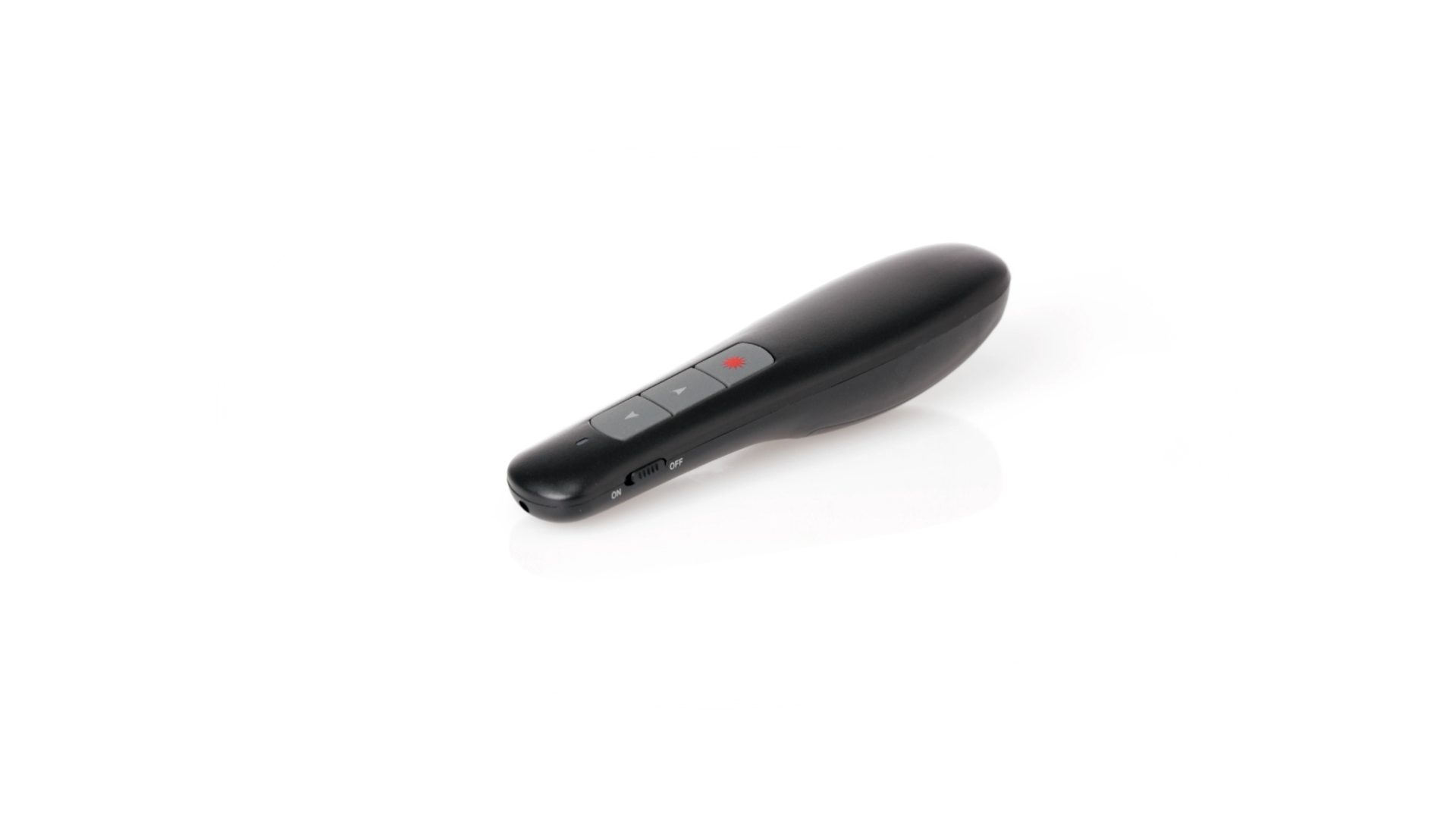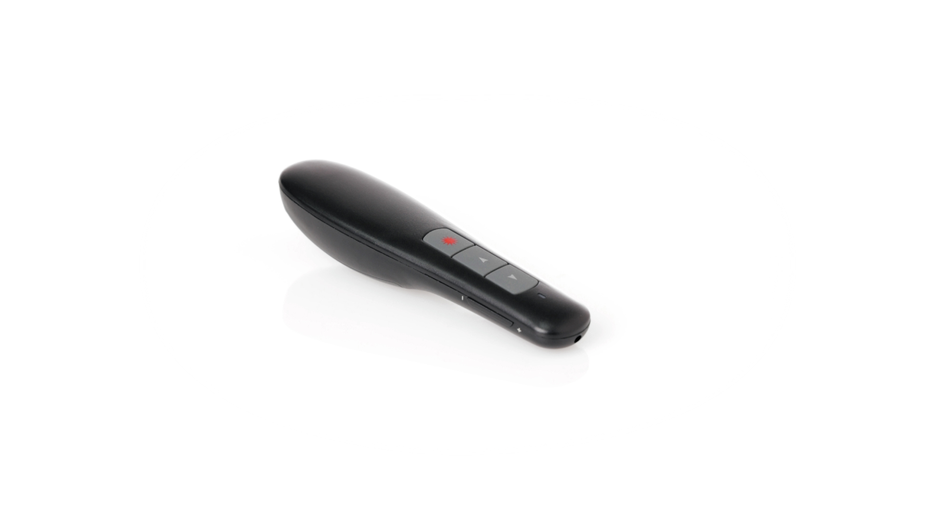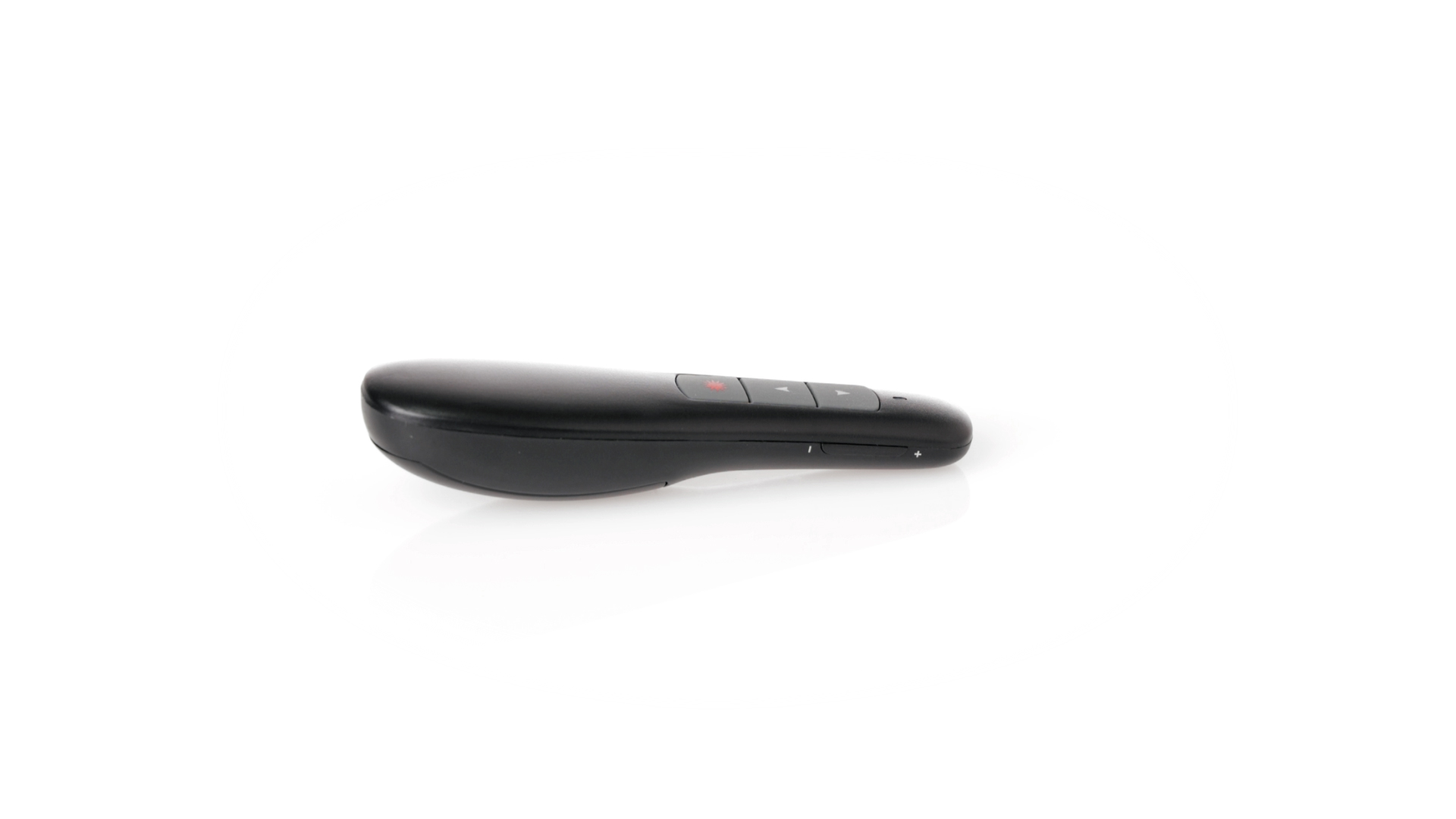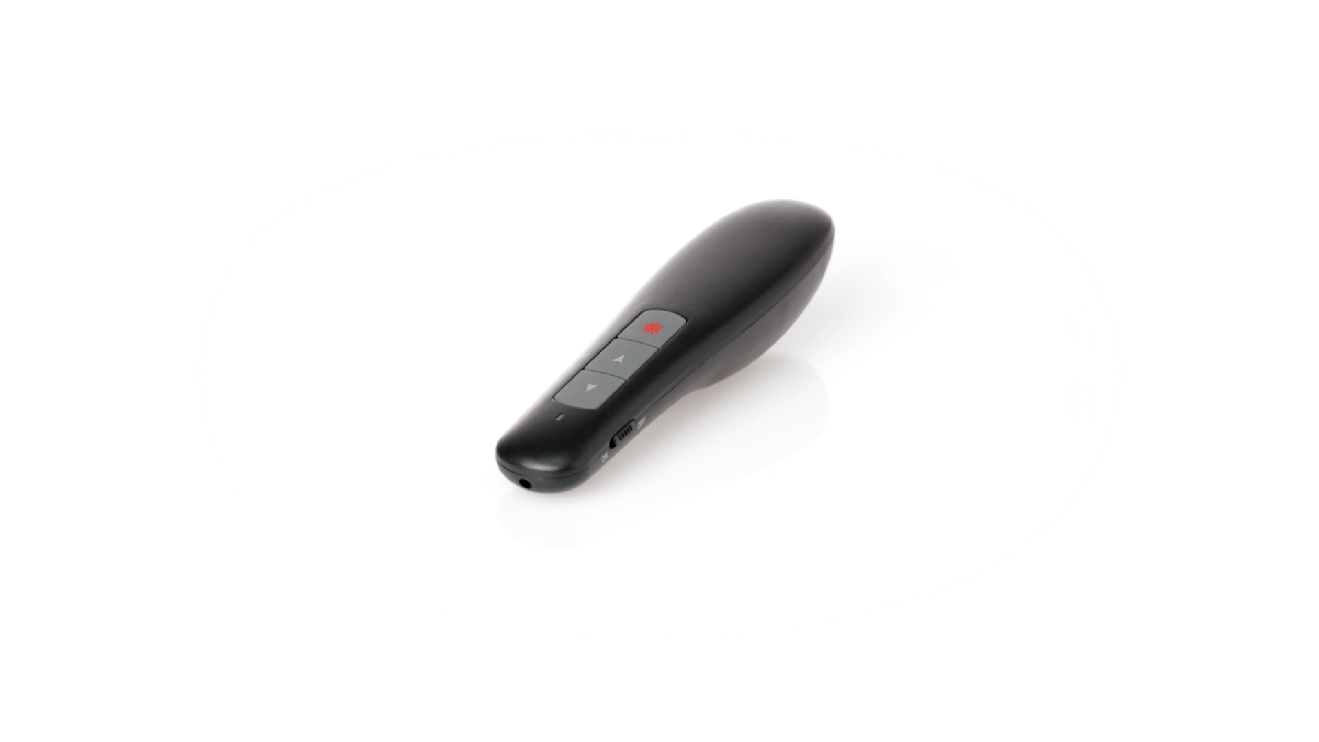 Puntero láser inalámbrico para presentaciones. De diseño ergonómico, incluye accesorio plug play para conectarlo al puerto USB del ordenador, sin necesidad de instalar software adicional para su correcto funcionamiento. Compatible con multitud de sistemas operativos (Windows, OS X, Linux y Android). Con botones avance/ pausa/ retroceso/volumen y alimentación a pilas: 2xAAA incluidas. Presentado en elegante y resistente estuche de cartón negro, con funda e interior troquelado en espuma. Manual de instrucciones en español e inglés.