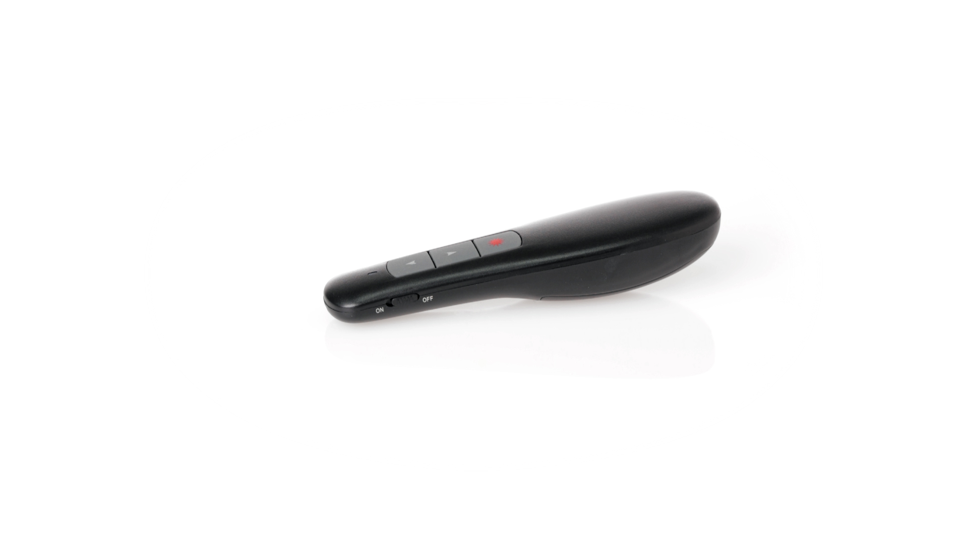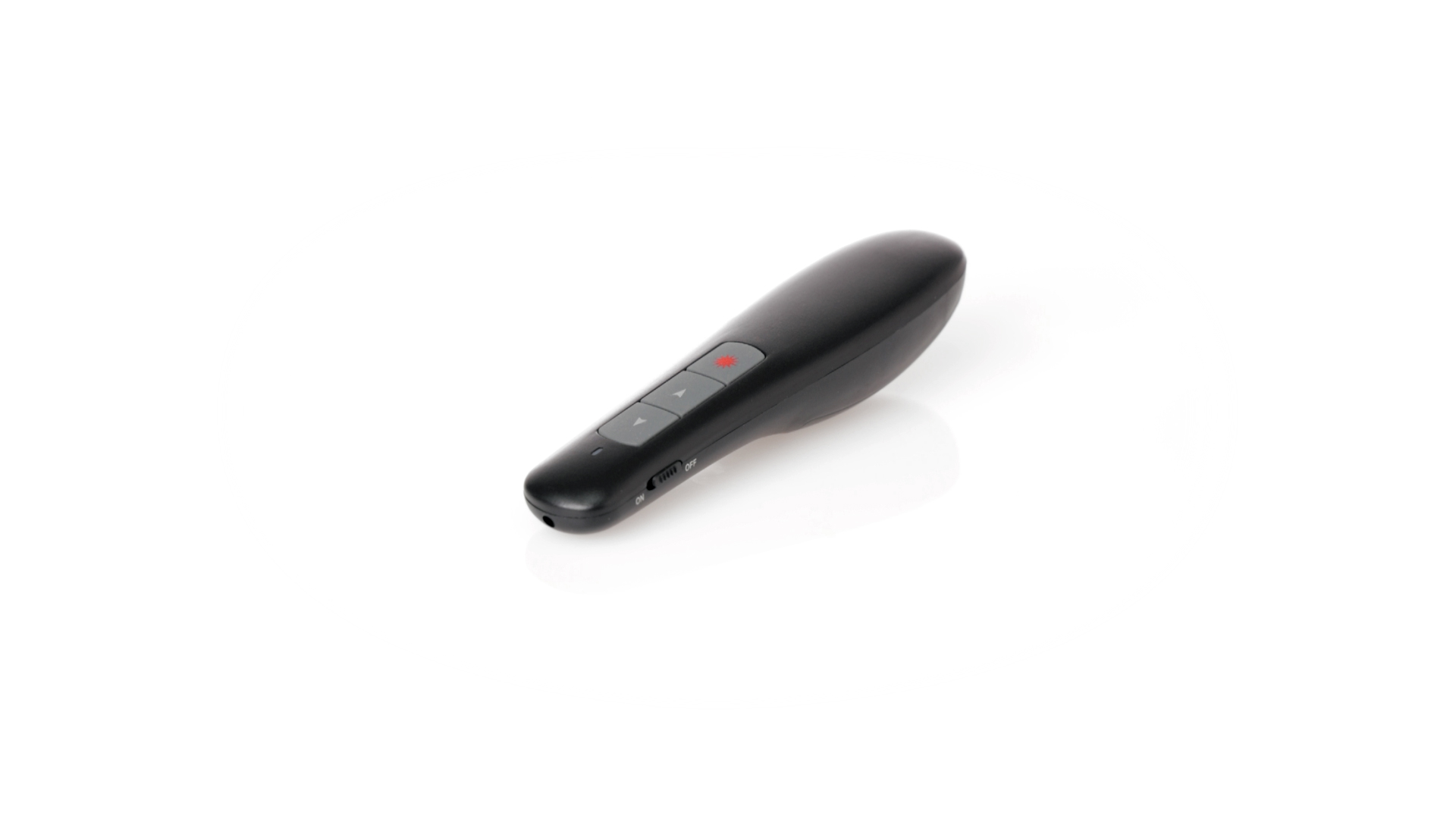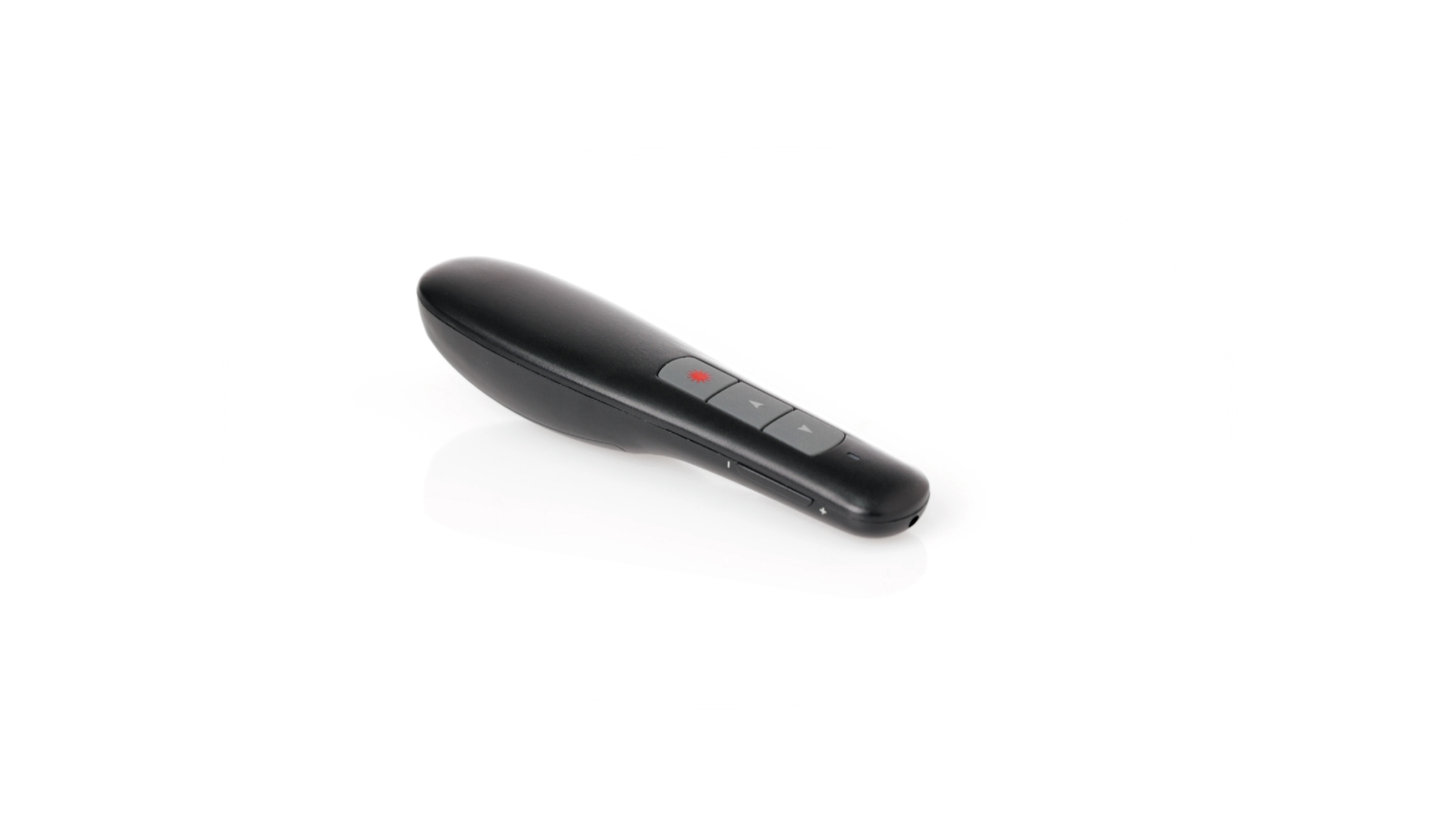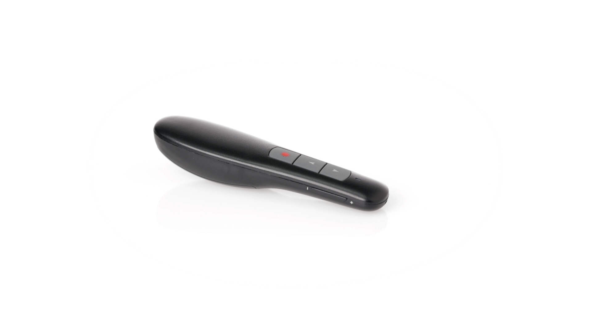 Puntero láser inalámbrico para presentaciones. De diseño ergonómico, incluye accesorio plug play para conectarlo al puerto USB del ordenador, sin necesidad de instalar software adicional para su correcto funcionamiento. Compatible con multitud de sistemas operativos (Windows, OS X, Linux y Android). Con botones avance/ pausa/ retroceso/volumen y alimentación a pilas: 2xAAA incluidas. Presentado en elegante y resistente estuche de cartón negro, con funda e interior troquelado en espuma. Manual de instrucciones en español e inglés.