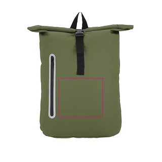 Dieser Rolltop-Rucksack ist aus PU-beschichtetem, recyceltem PET aus 600D-Material gefertigt. Er verfügt über reflektierende Streifen an den Schultergurten und um das vordere Reissverschlussfach herum, was die Sicherheit beim Pendeln im Dunkeln erhöht. Sie verfügt über einen Tragegriff, verstellbare, gepolsterte Schultergurte und ein gepolstertes Laptop-Fach im Inneren.