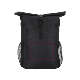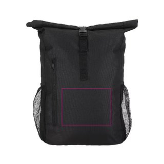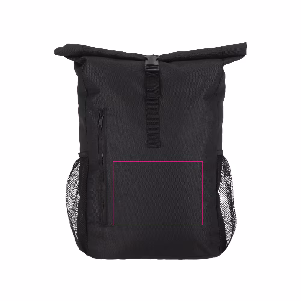 Diese Fahrradtasche im trendigen Rolltop-Design ist aus recyceltem PET hergestellt. Sie verfügt über eine Reissverschlusstasche oben und eine Vordertasche, einen Griff oben, verstellbare, gepolsterte, abnehmbare Schultergurte und zwei Clips, um die Tasche beim Radfahren am Fahrrad zu befestigen. Die beiden seitlichen Netztaschen sind ideal für Wasserflaschen oder Regenschirme.
