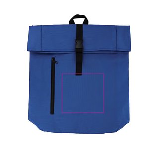 Dieser praktische Rucksack im trendigen Rolltop-Design ist aus recyceltem PET gefertigt. Er verfügt über verstellbare, gepolsterte Schultergurte, einen Griff an der Oberseite und eine Reissverschlusstasche auf der Vorderseite, die sich ideal für kleinere Utensilien eignet.
