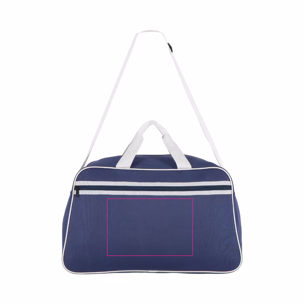 Beliebte Reise- und Sporttasche aus strapazierfähigem 600D recyceltem PET. Ausgestattet mit einem Frontfach mit Reissverschluss, Tragegriffen und einem verstellbaren Schultergurt für bequemen Transport.