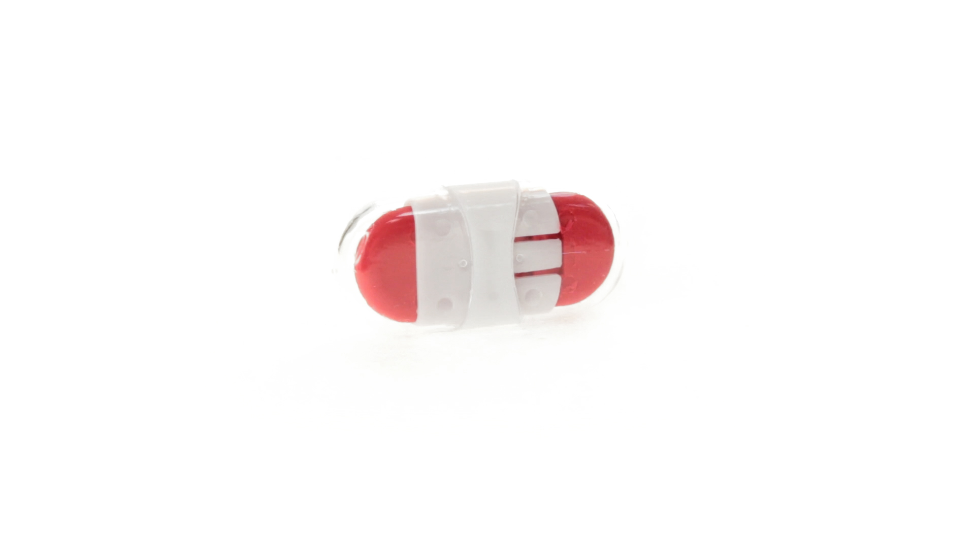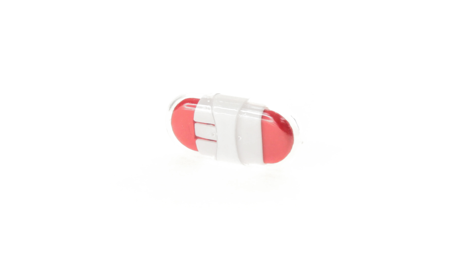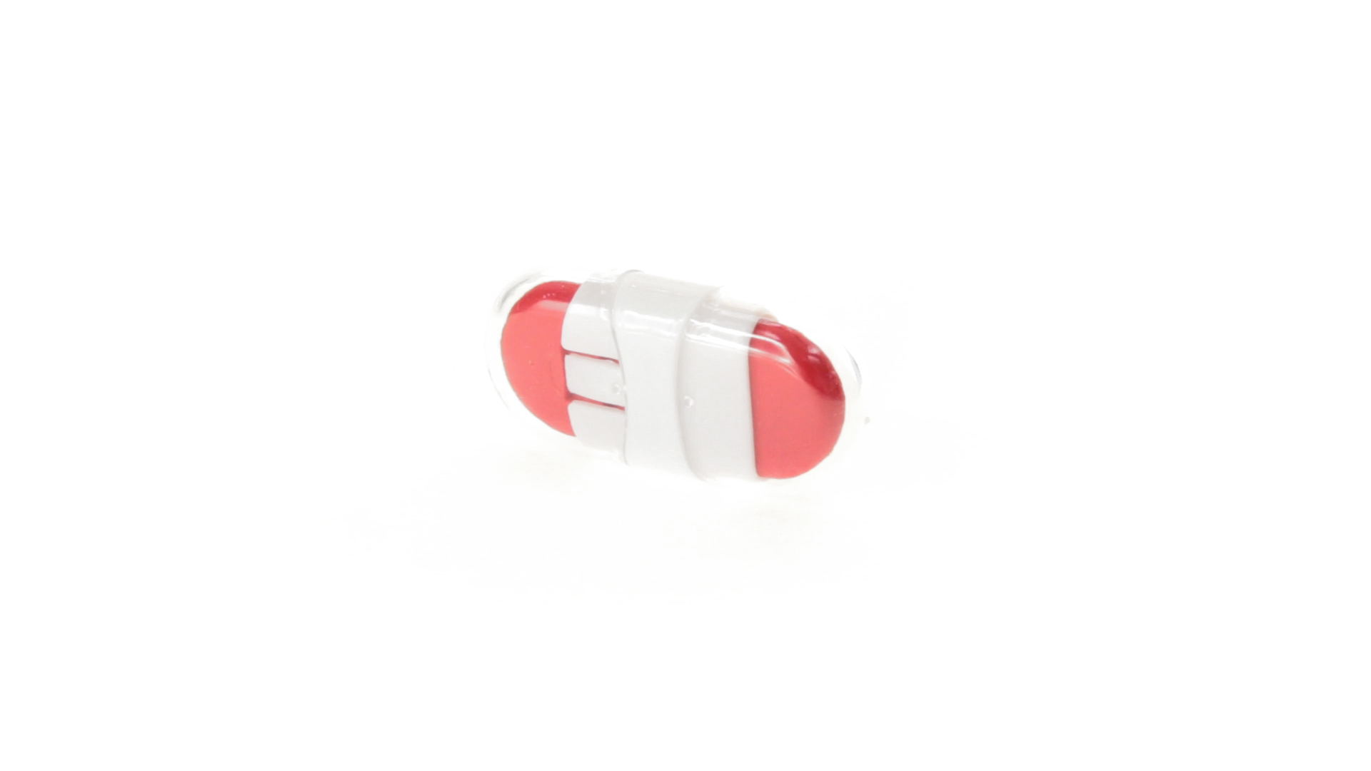 Originelles Radiergummi in fröhlichen Farben mit weissem Sicherheitsgehäuse und transparenter Kappe.