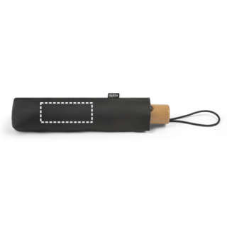 Automatik Taschenschirm aus recyceltem Polyester (100% rPET) 190T Pongé mit Fiberglas-Speichen und Holzgriff. Dieser Regenschirm lässt sich 3fach schliessen, ist windfest und ist mit automatischer Öffnung und Schliessung ausgestattet. Geliefert in einer Hülle. Regenschirm: ø990 x 285 mm | Beutel: ø55 x 240 mm
