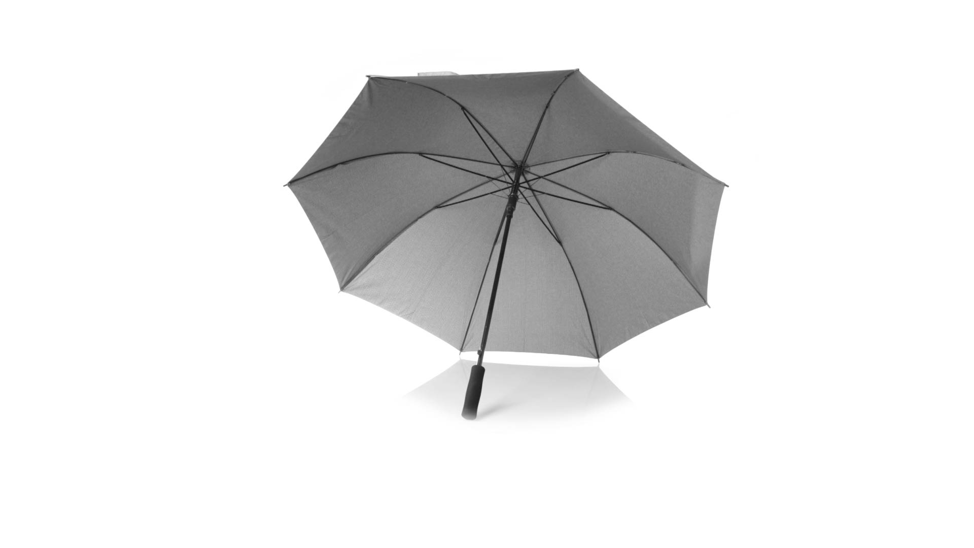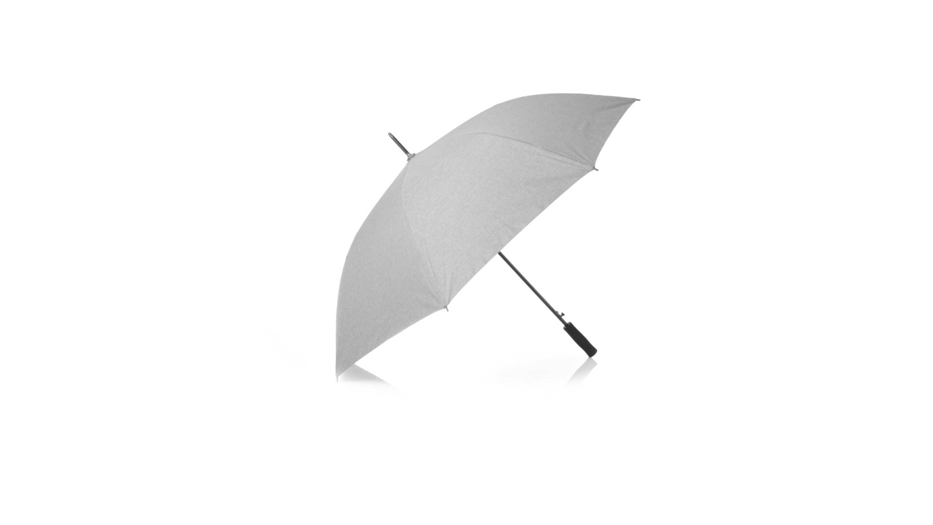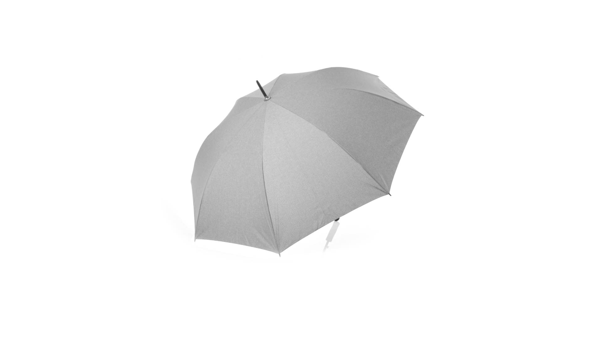 Hochwertiger Regenschirm mit 130 cm Durchmesser. Hergestellt aus strapazierfähigem 150D-Polyestermaterial und in einem eleganten marmorierten Grauton. Automatisch öffnend, mit Fiberglasrippen, winddichtem System und Klettverschluss. Mit ergonomischem Griff aus weichem EVA und präsentiert in einer recycelten Tasche.