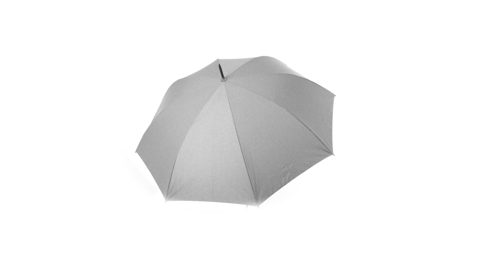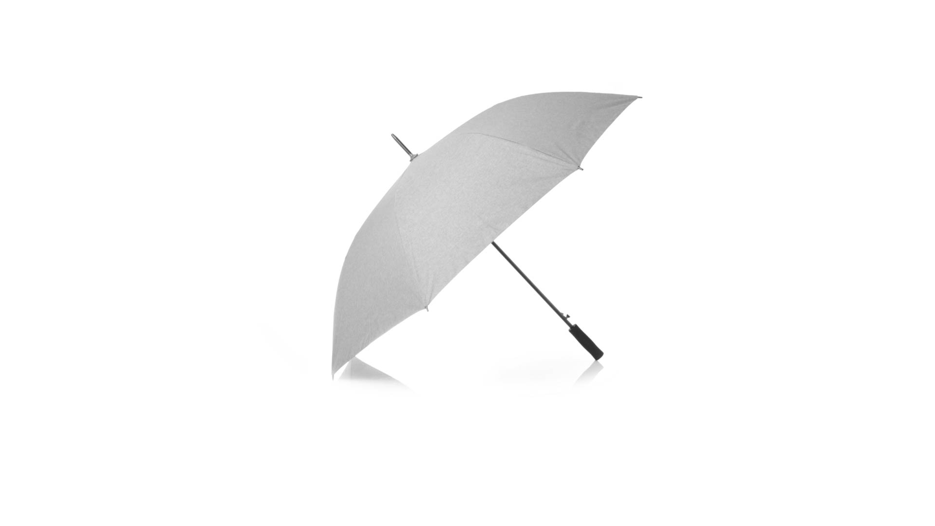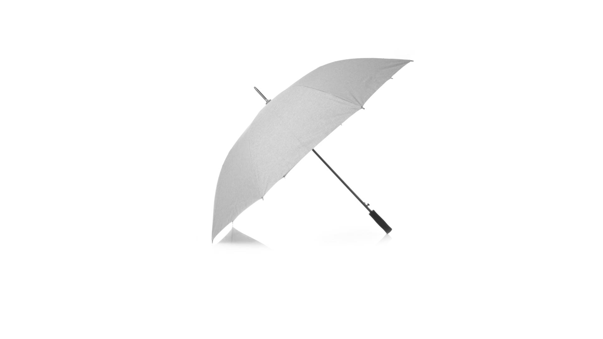 Hochwertiger Regenschirm mit 130 cm Durchmesser. Hergestellt aus strapazierfähigem 150D-Polyestermaterial und in einem eleganten marmorierten Grauton. Automatisch öffnend, mit Fiberglasrippen, winddichtem System und Klettverschluss. Mit ergonomischem Griff aus weichem EVA und präsentiert in einer recycelten Tasche.