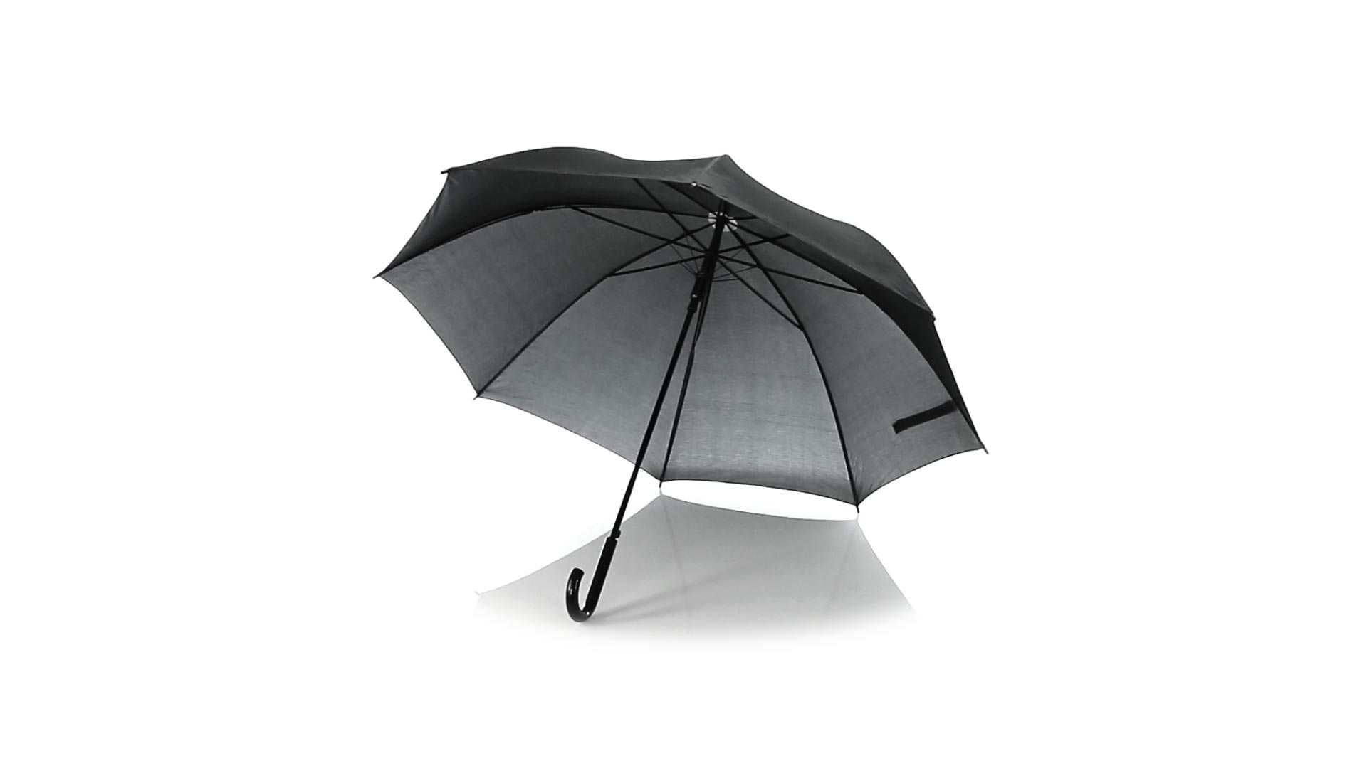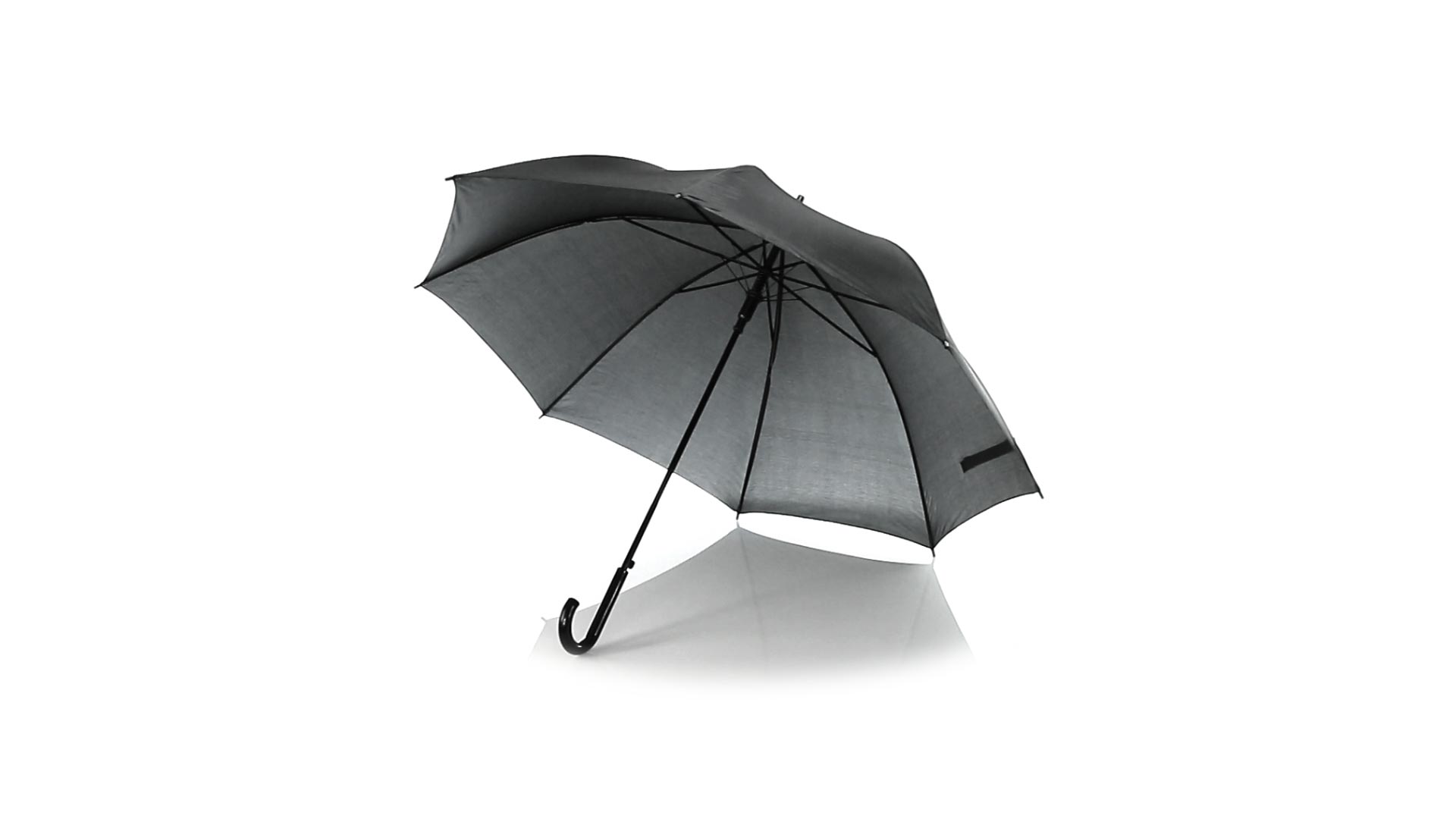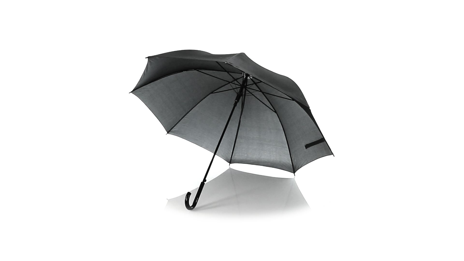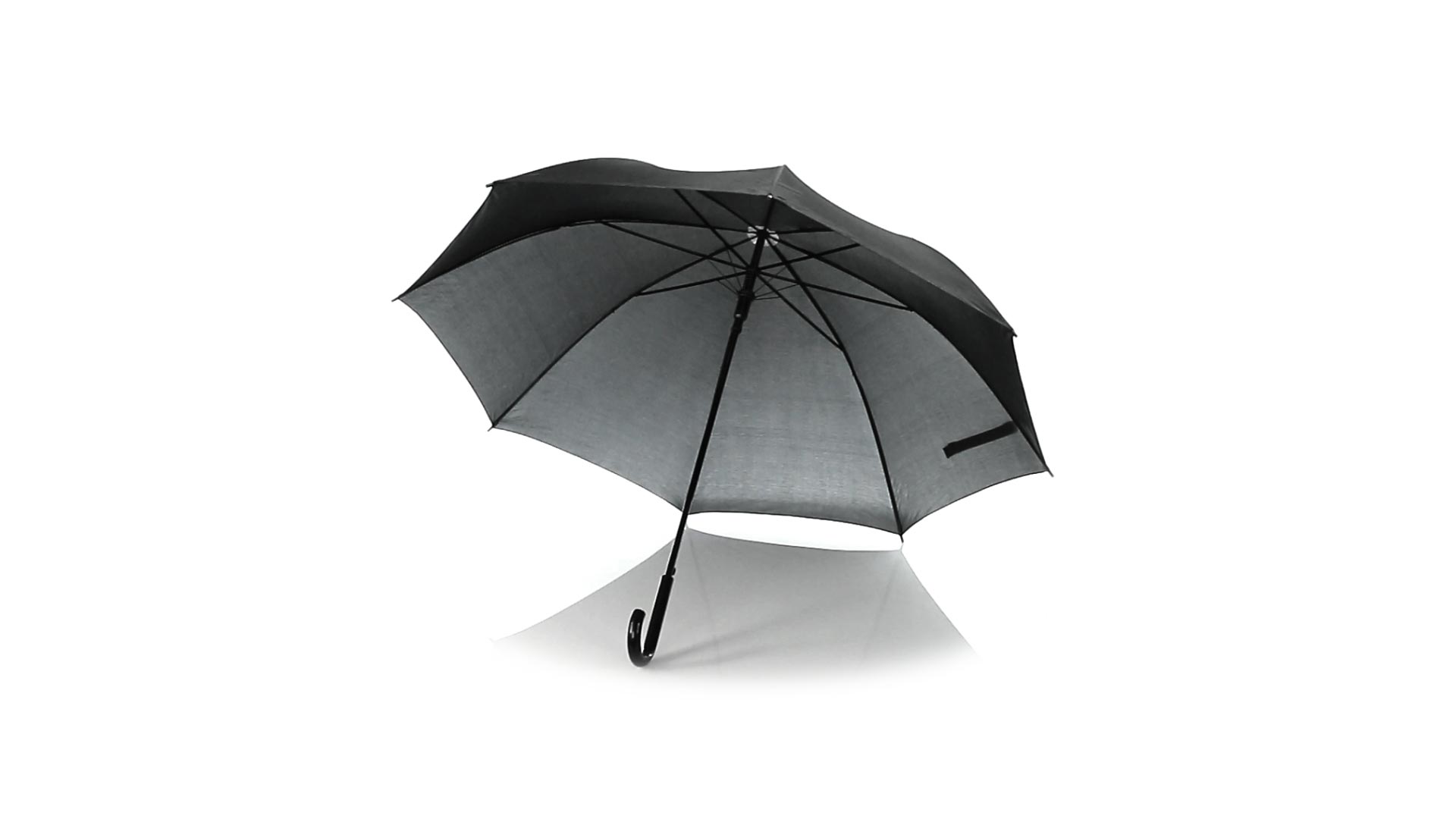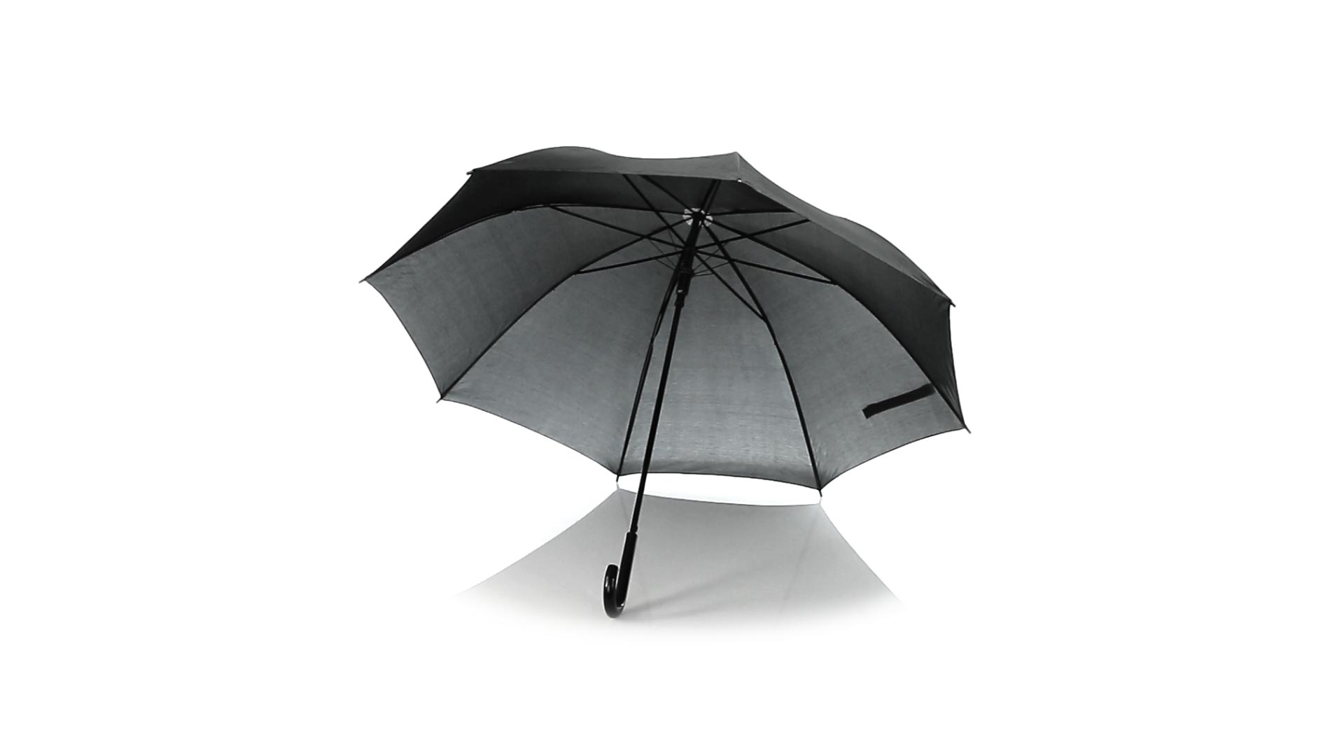 Regenschirm mit 8 Panelen aus resistentem Polyester in einer Vielzahl von kräftigen Farben. Mit einem Durchmesser von 105 cm, automatischer Öffnung sowie Metallstäben in Schwarz und Griff in passender Farbe.