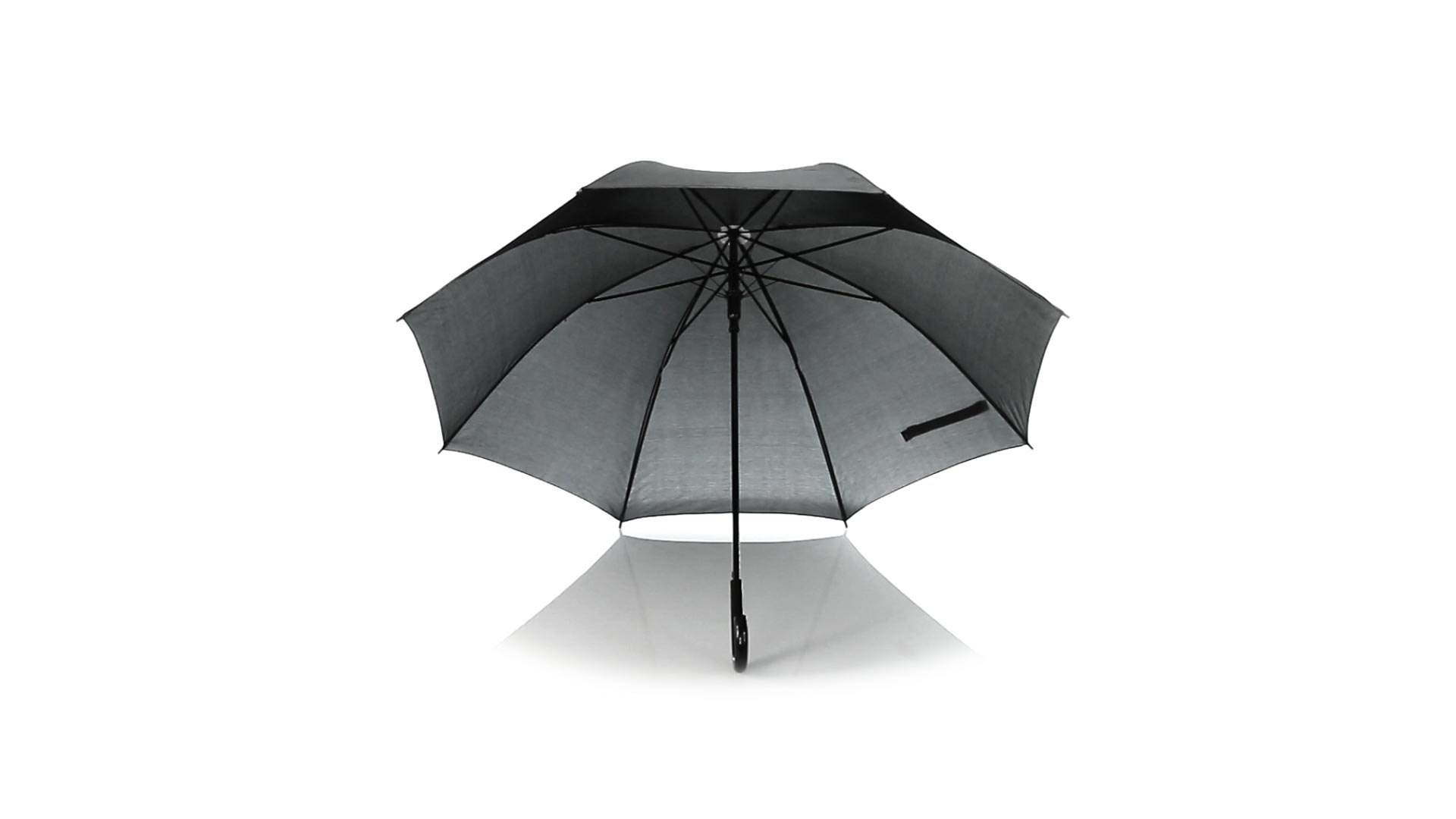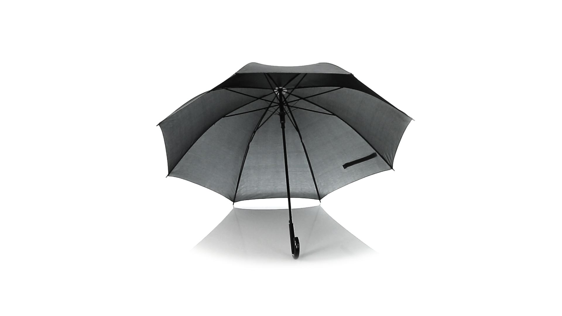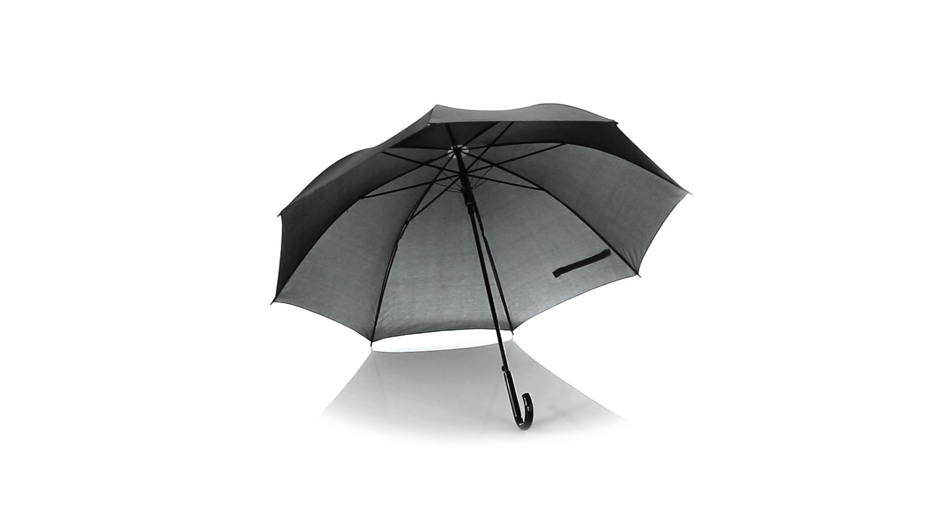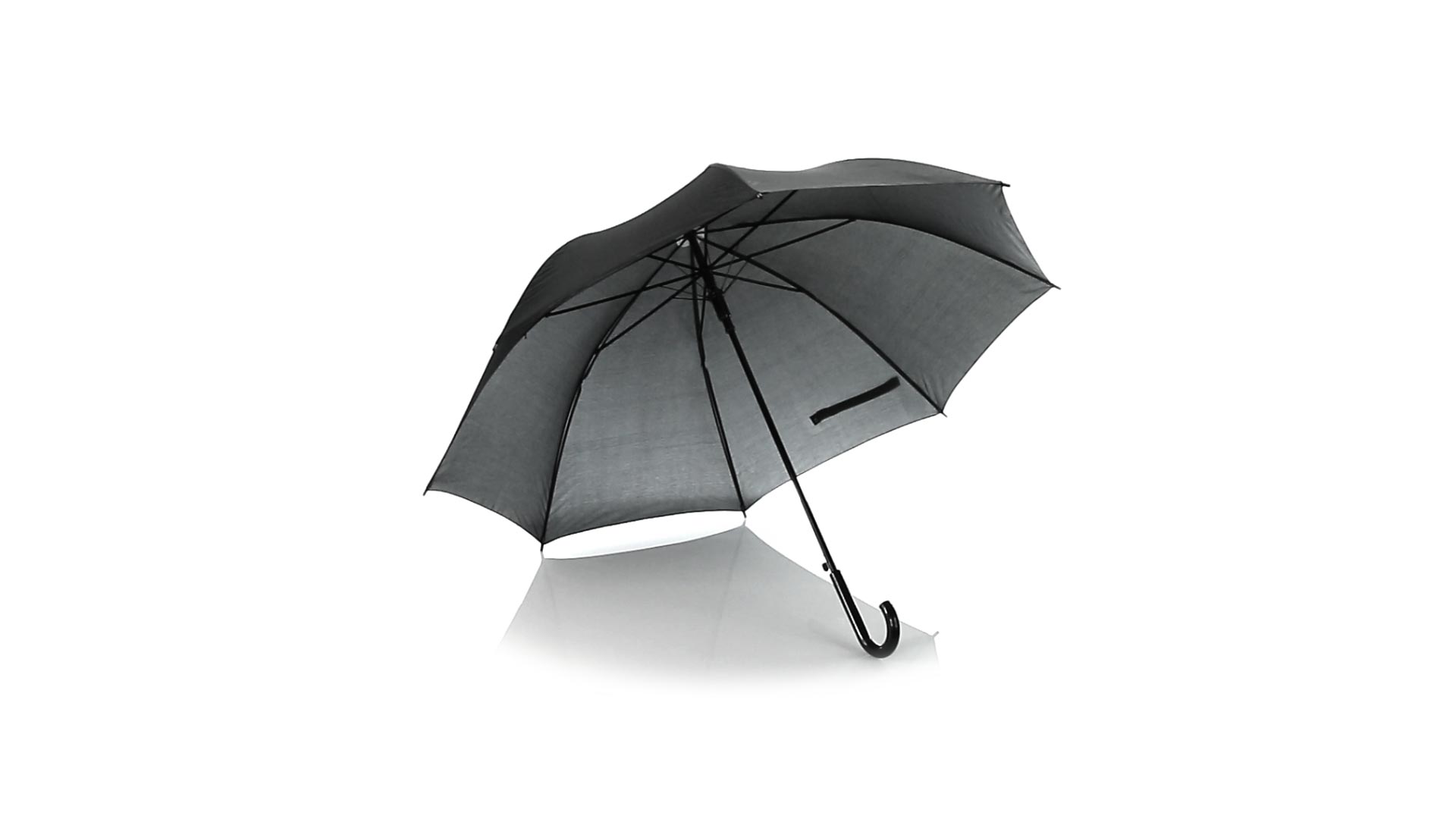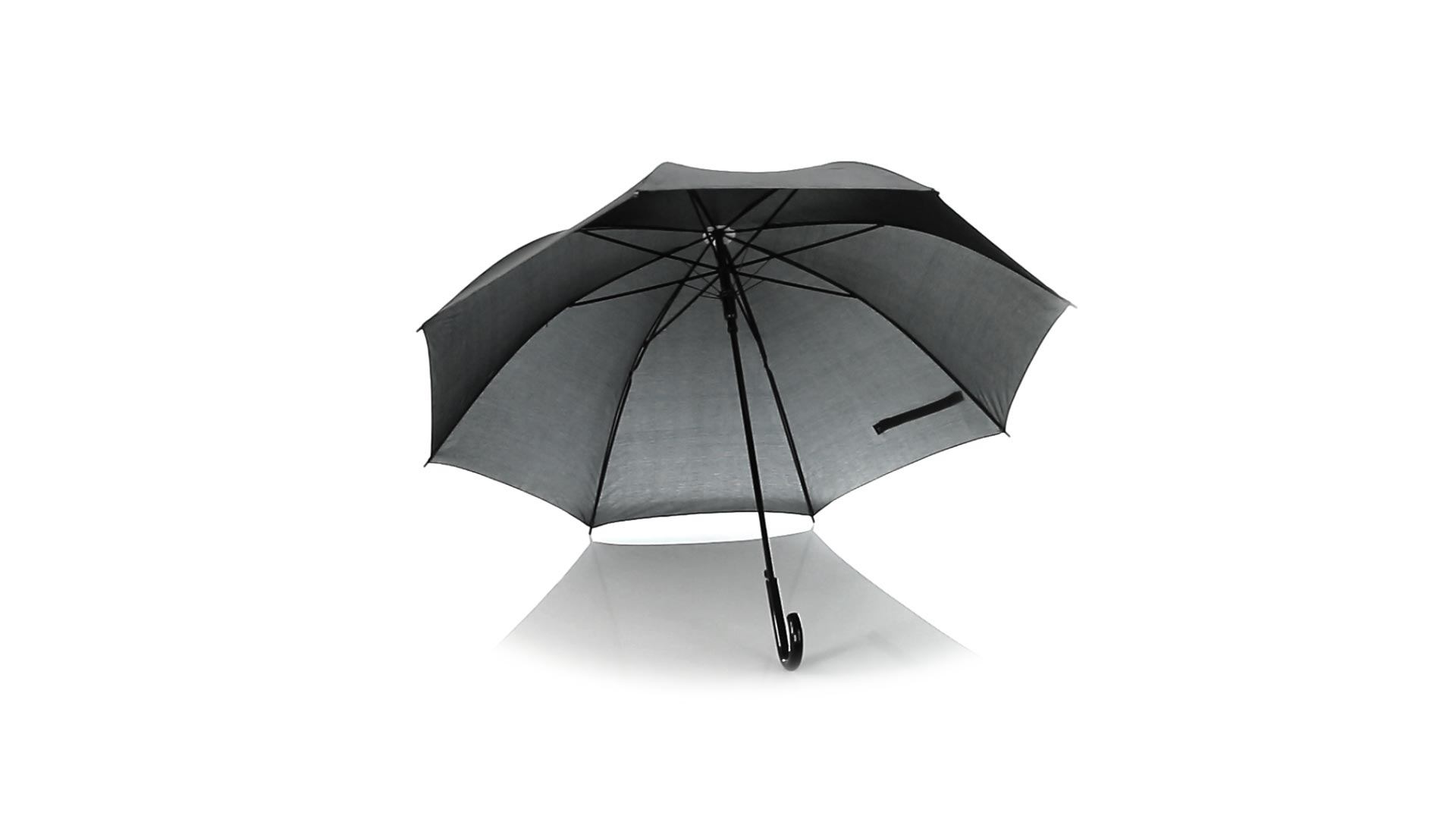 Regenschirm mit 8 Panelen aus resistentem Polyester in einer Vielzahl von kräftigen Farben. Mit einem Durchmesser von 105 cm, automatischer Öffnung sowie Metallstäben in Schwarz und Griff in passender Farbe.